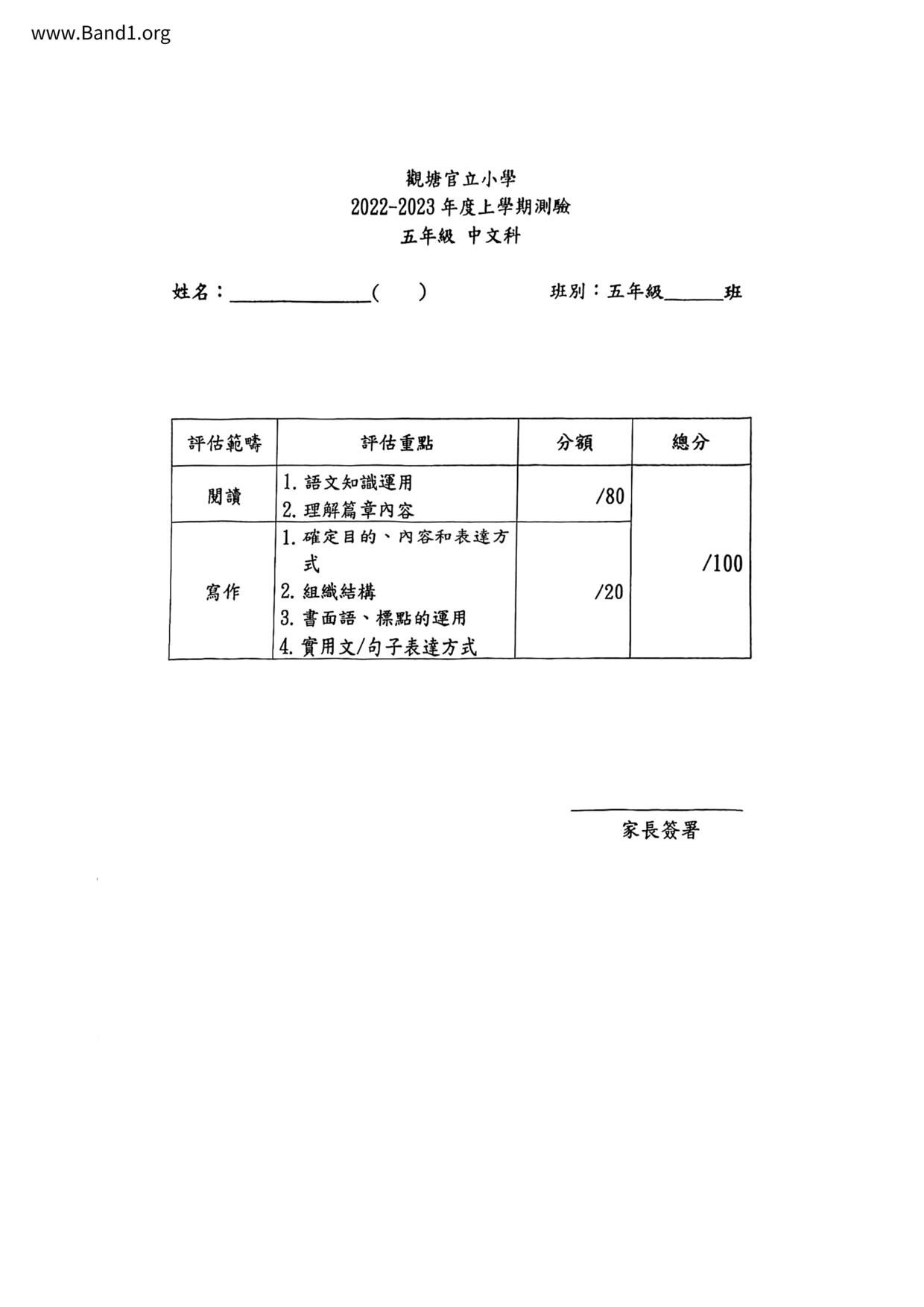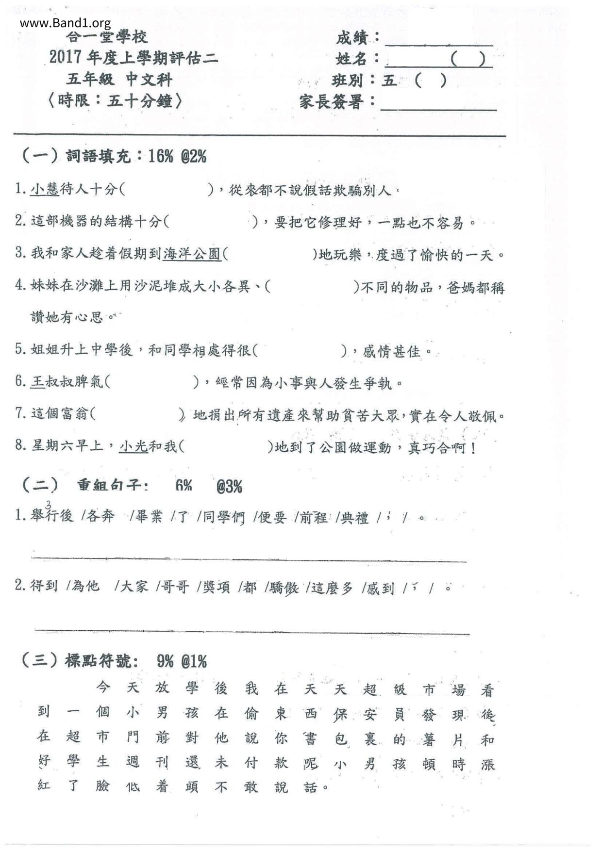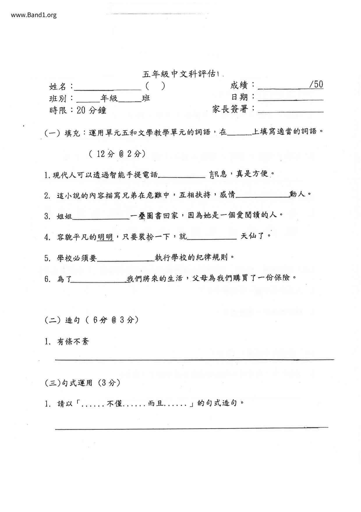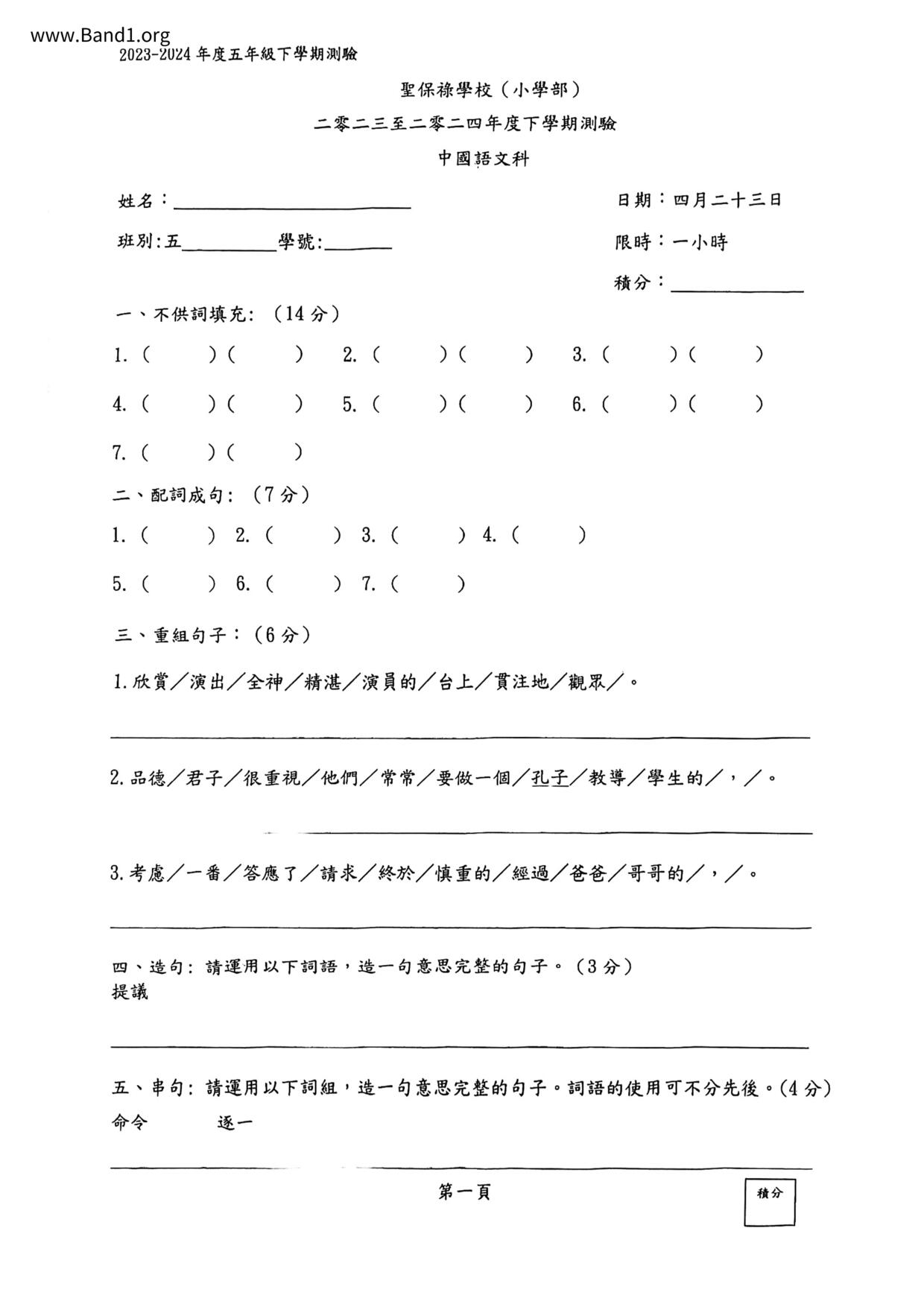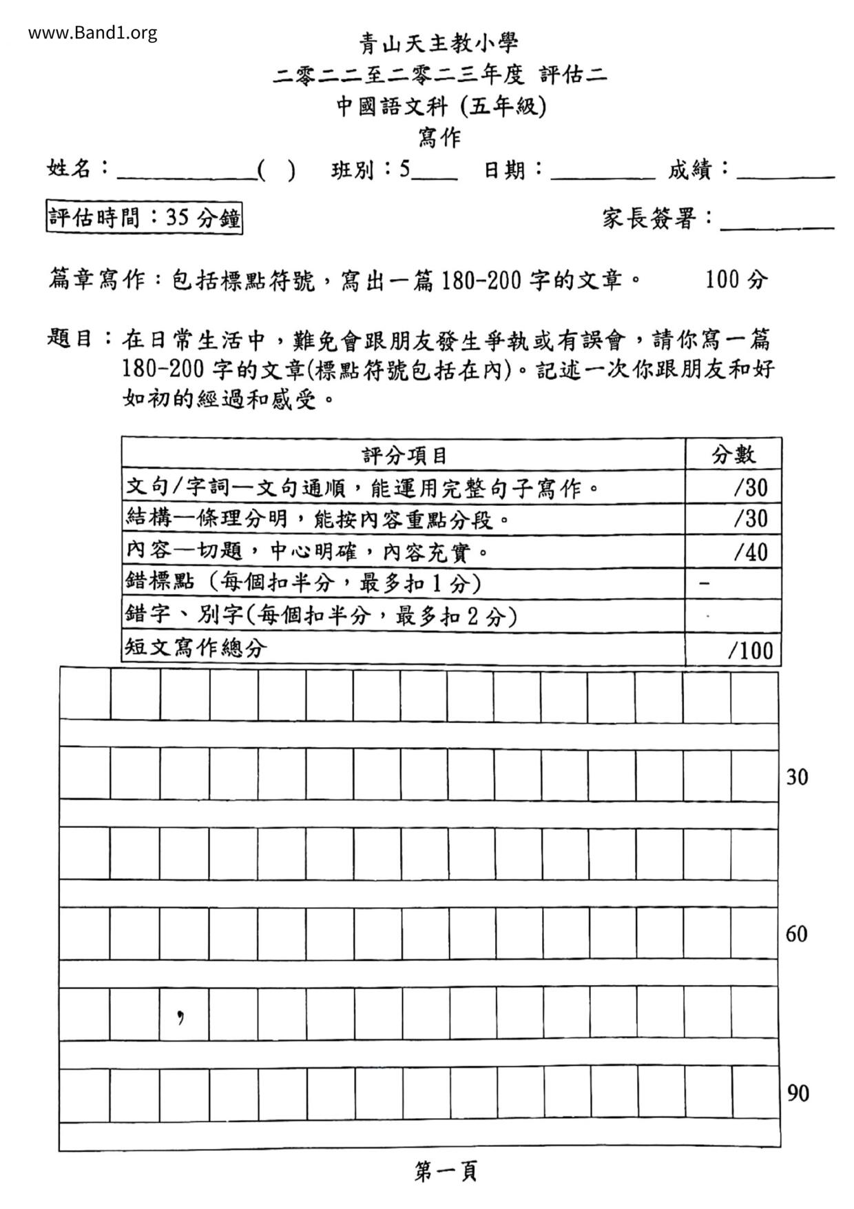 香港 中小學 中文 (HK Chinese) 試卷 pdf