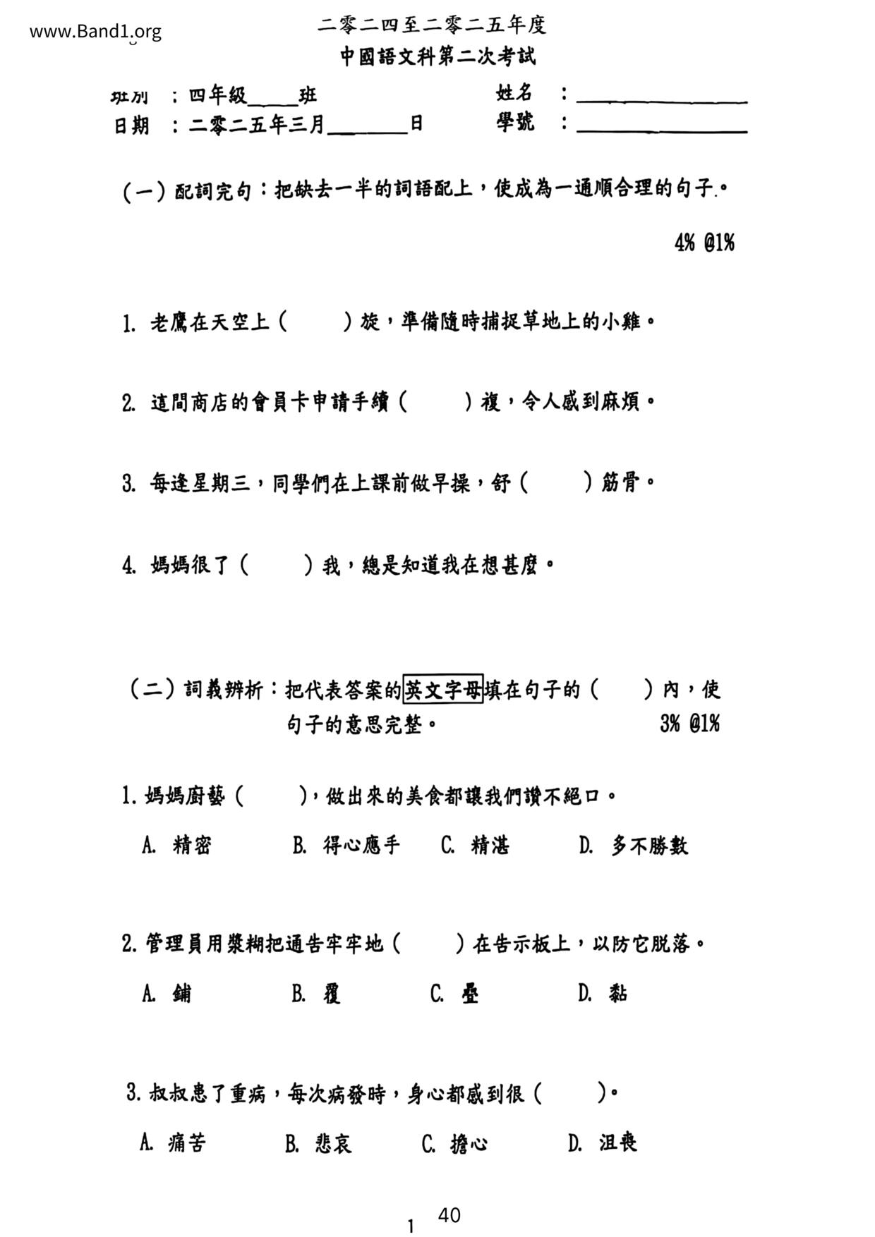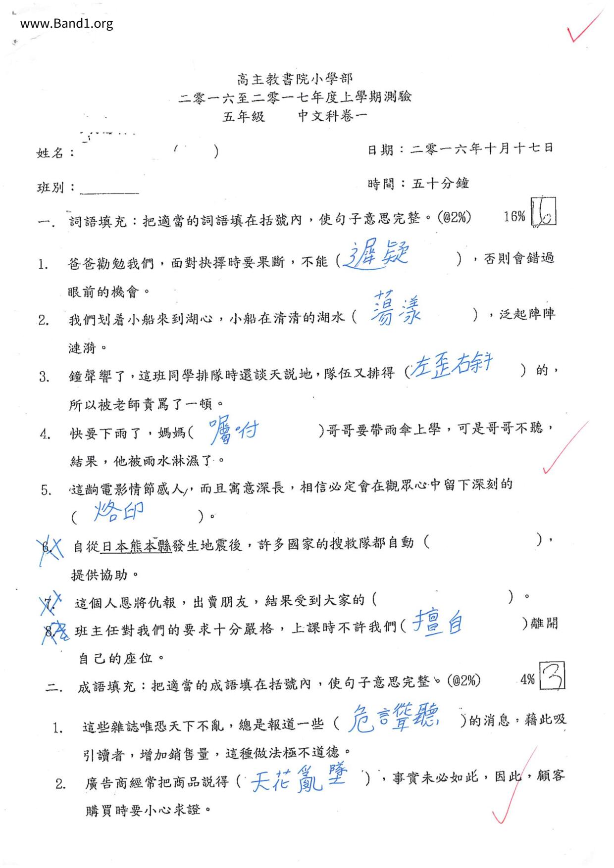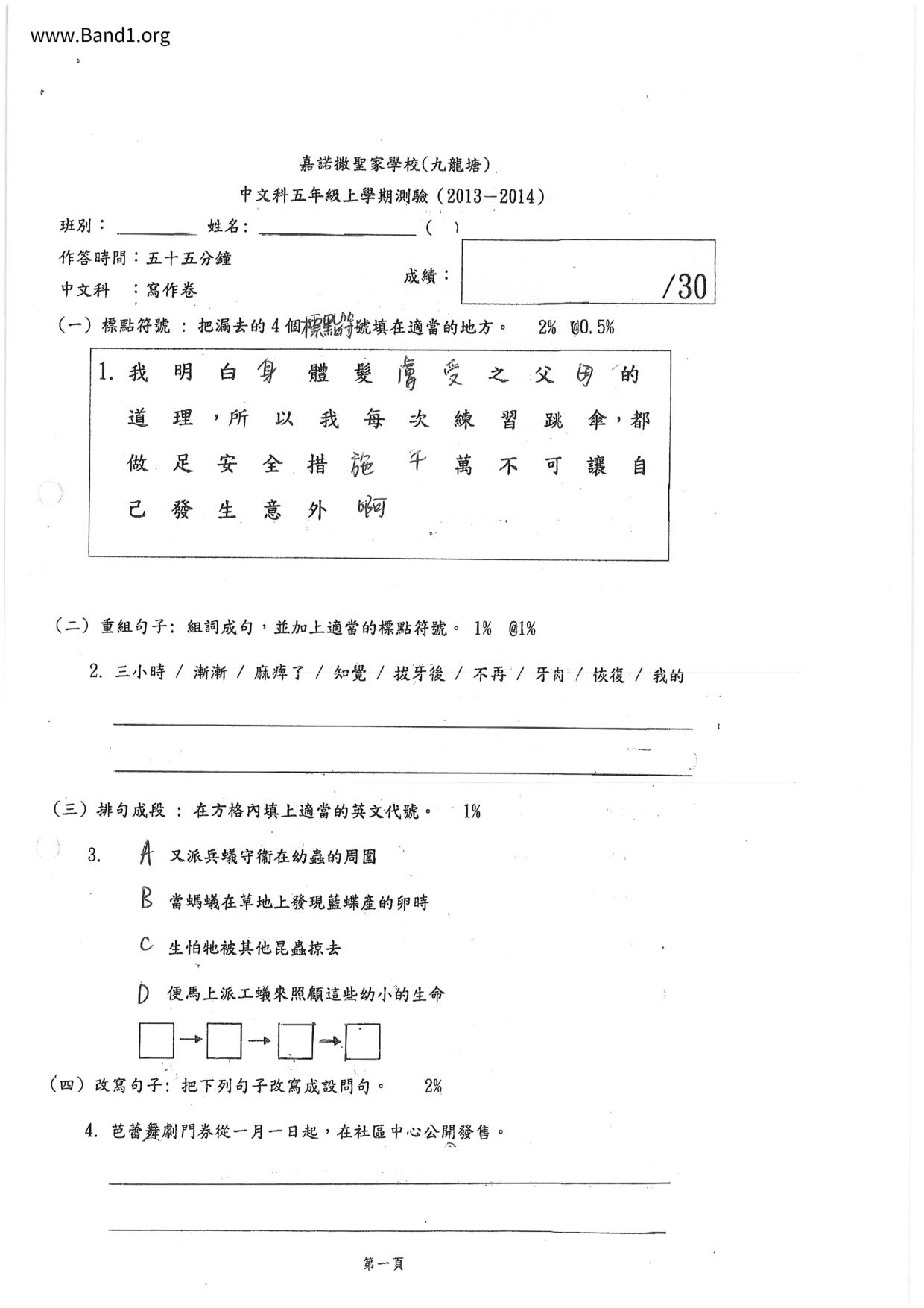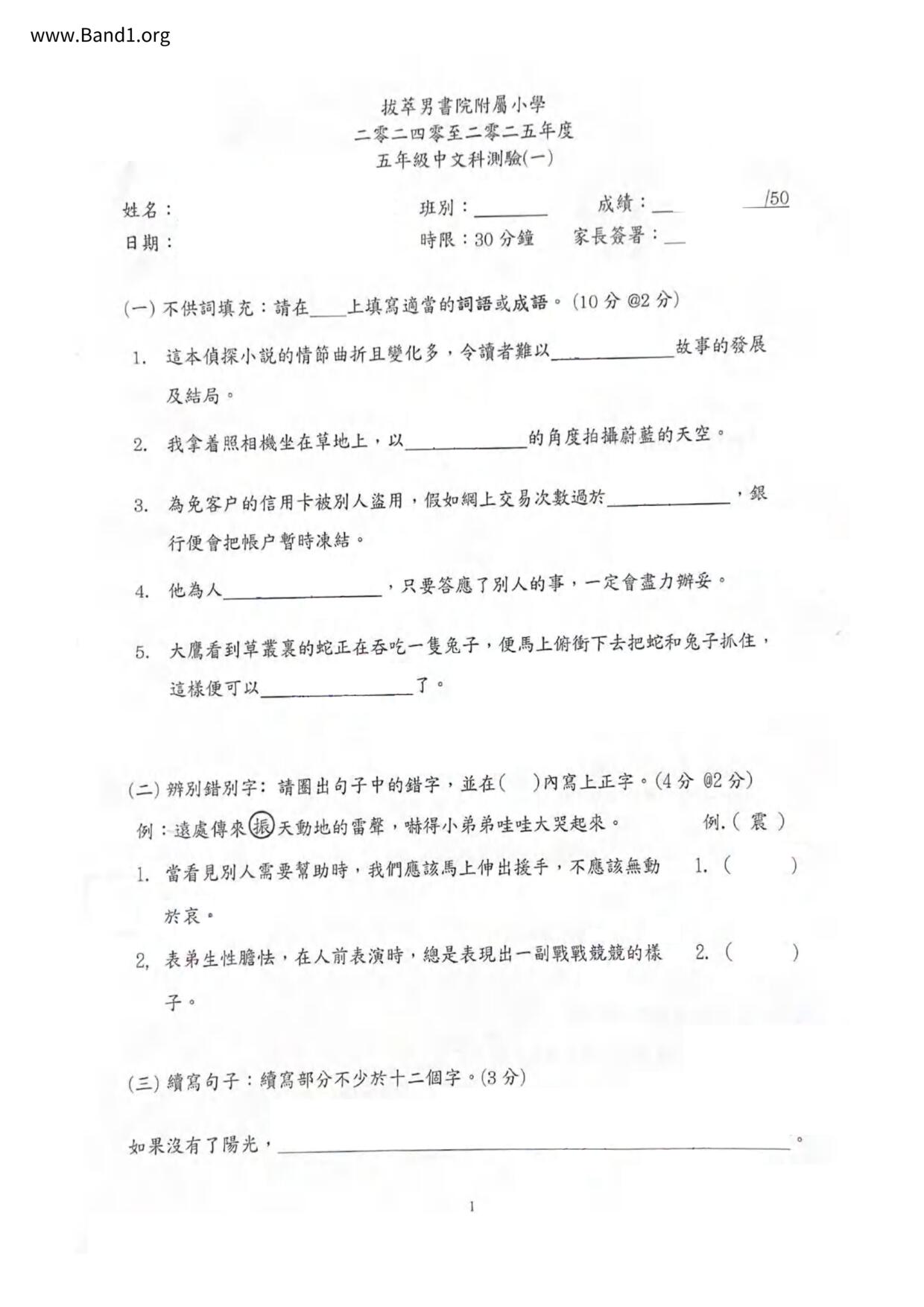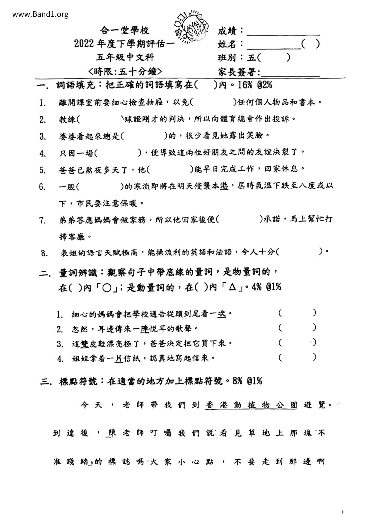 香港 中小學 中文 (HK Chinese) 試卷 pdf