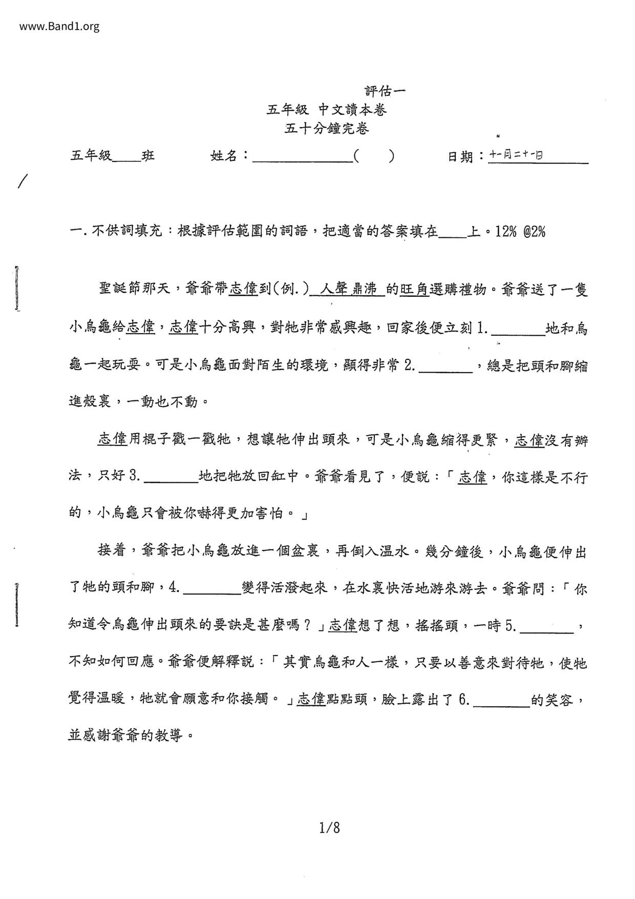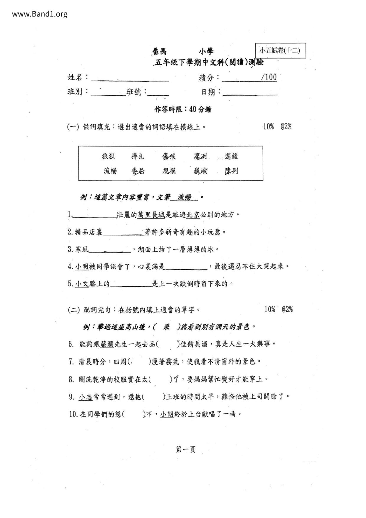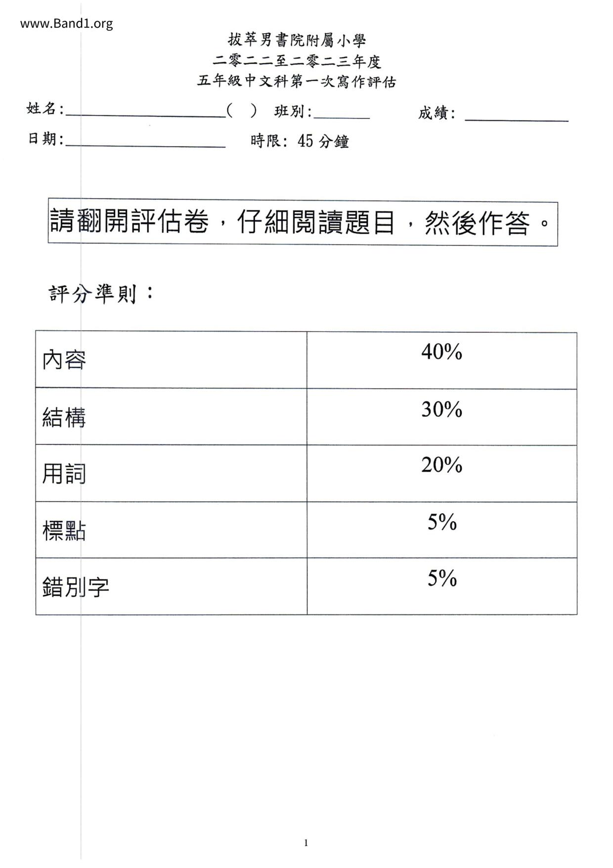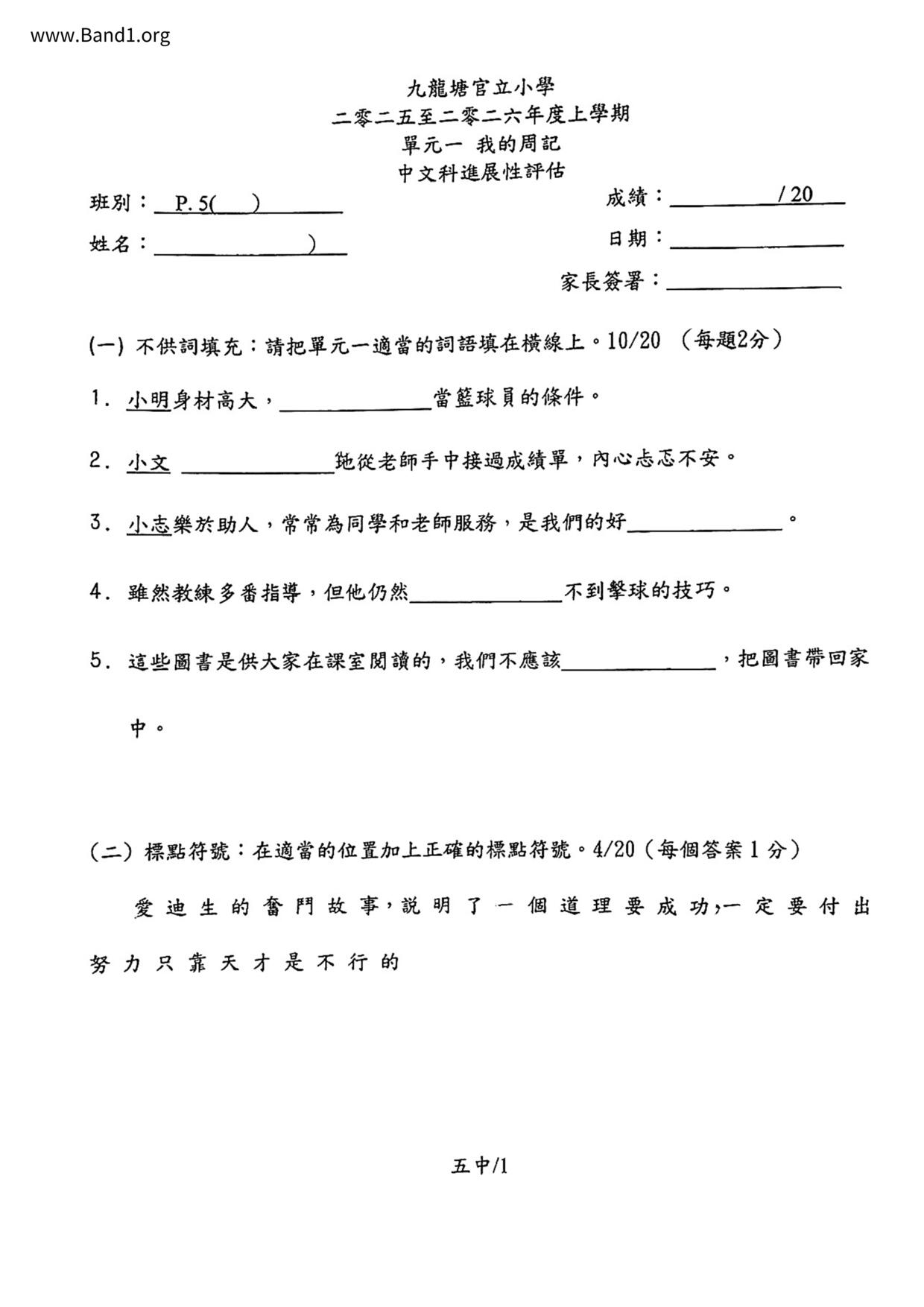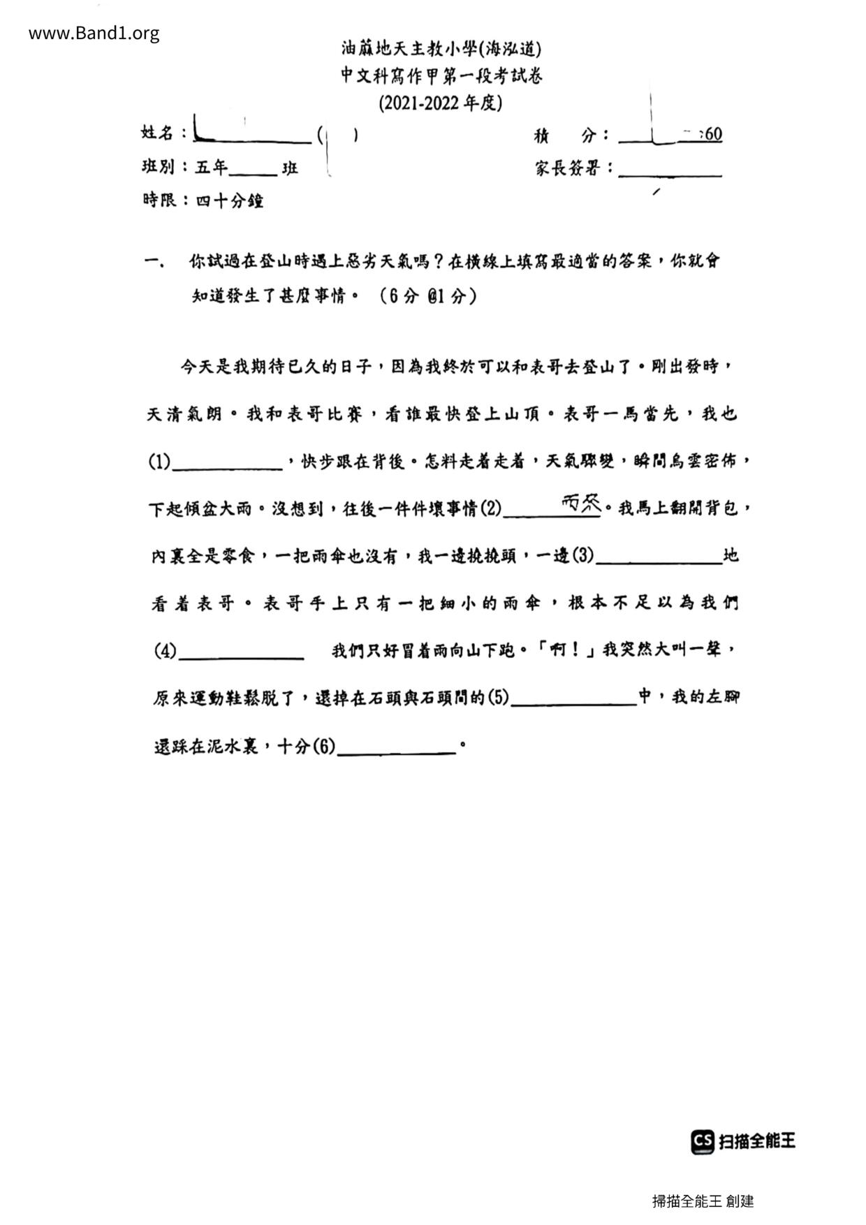 香港 中小學 中文 (HK Chinese) 試卷 pdf