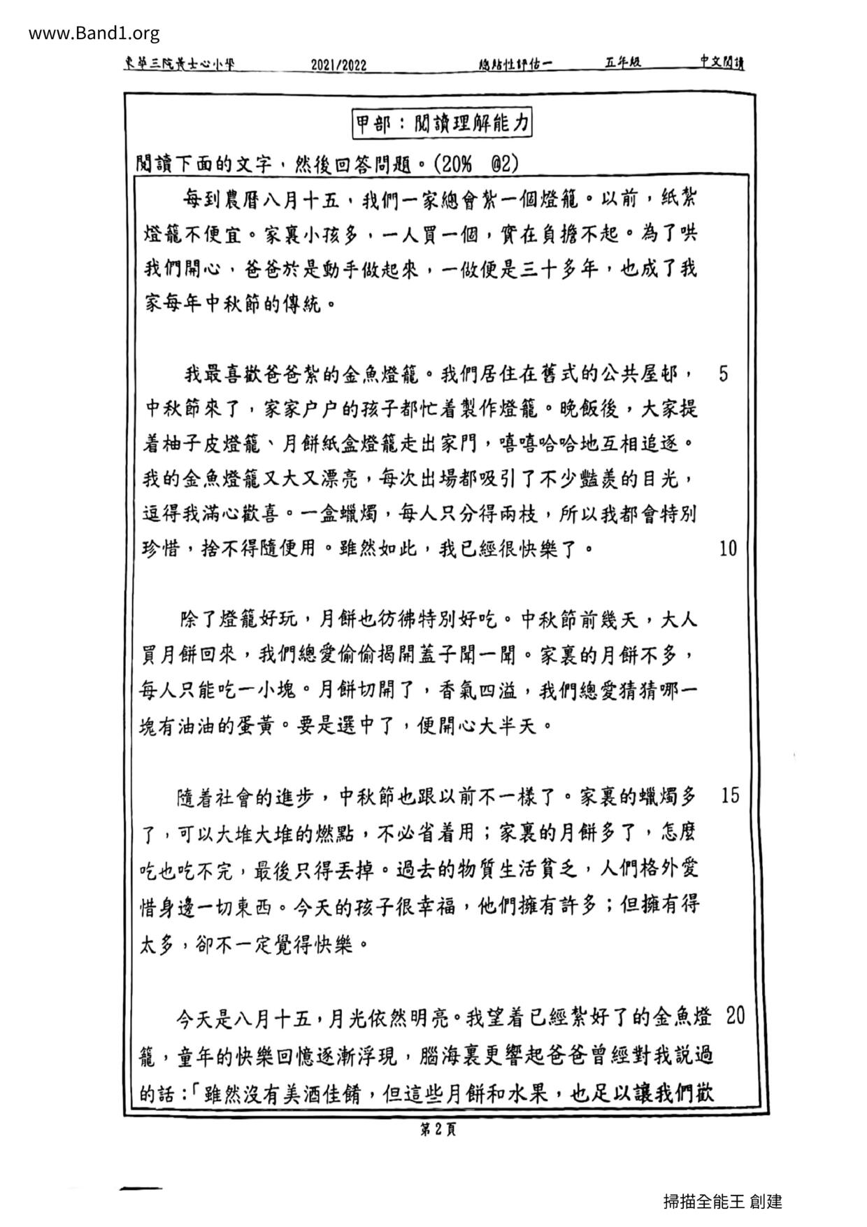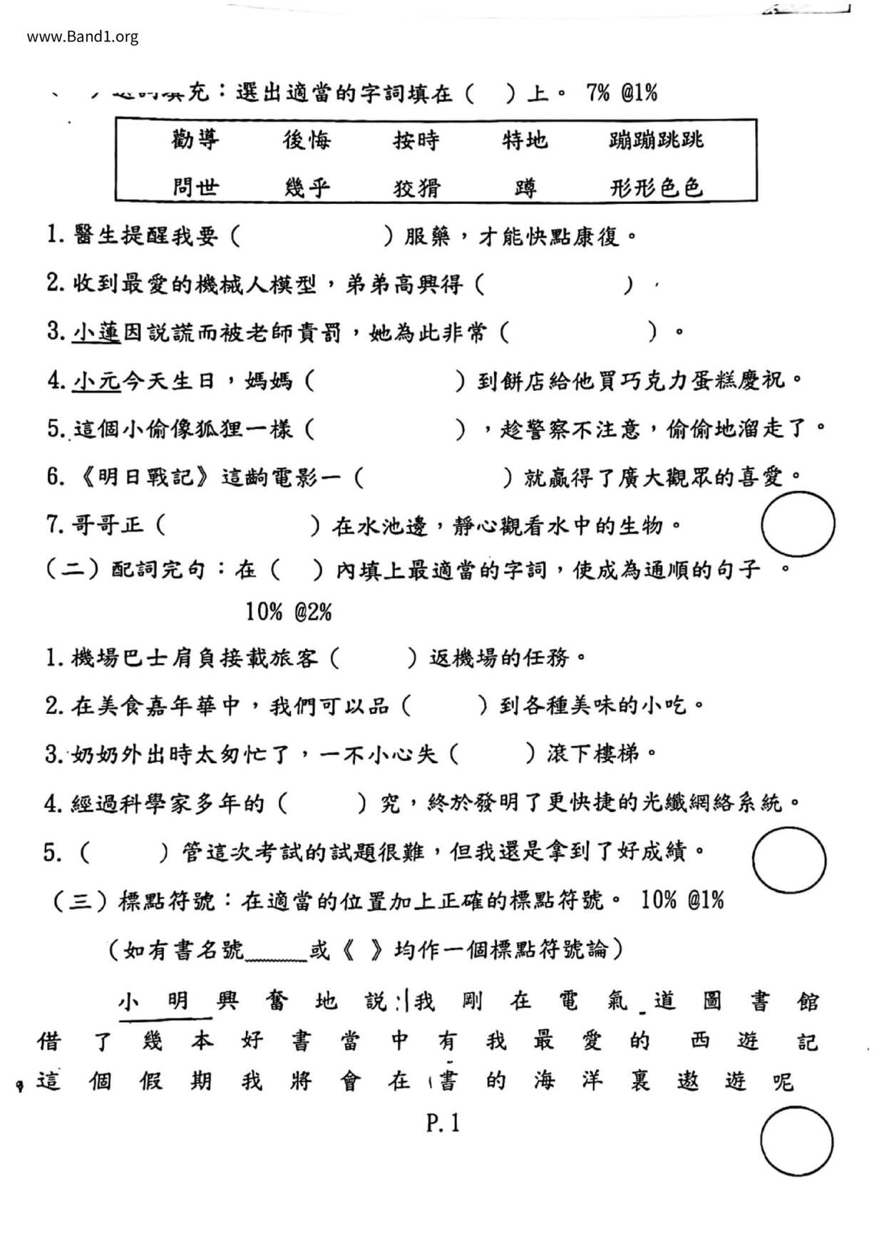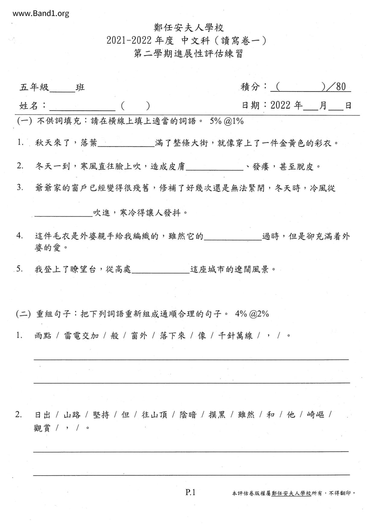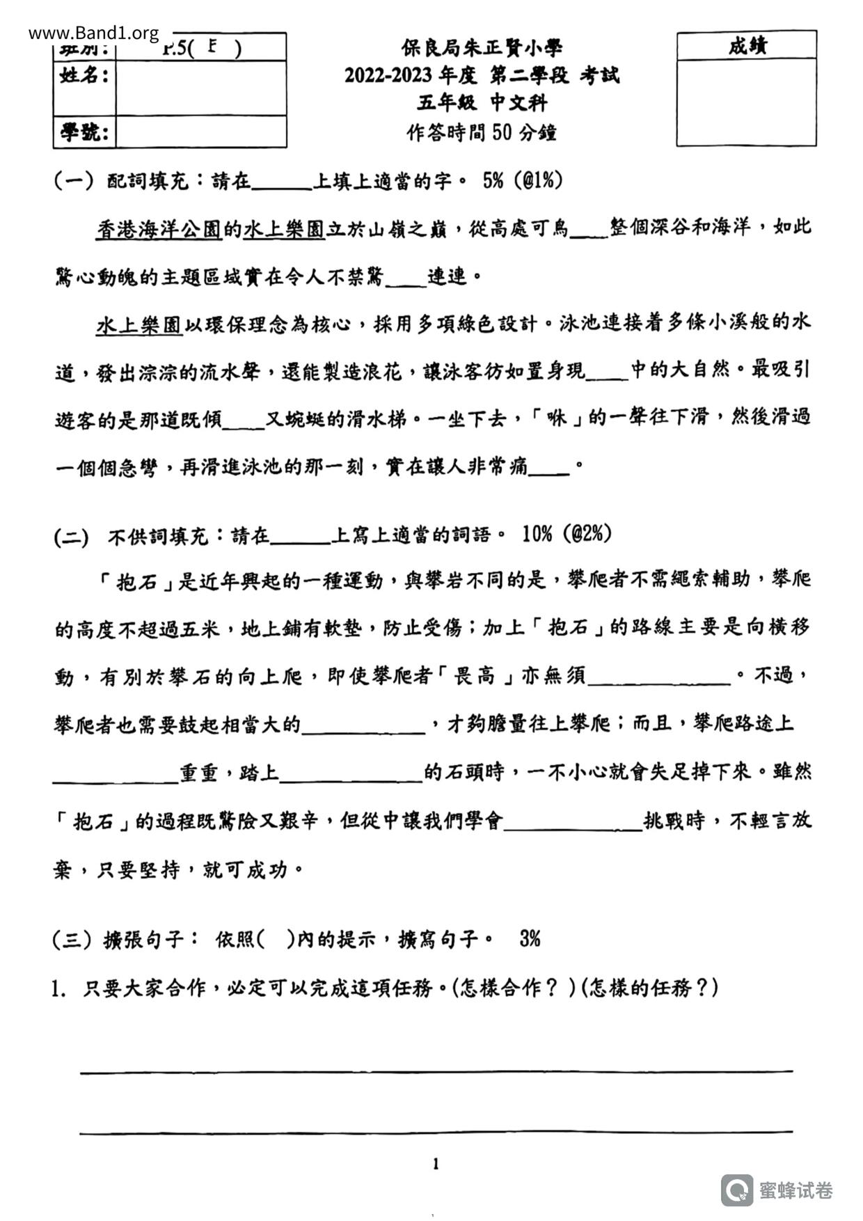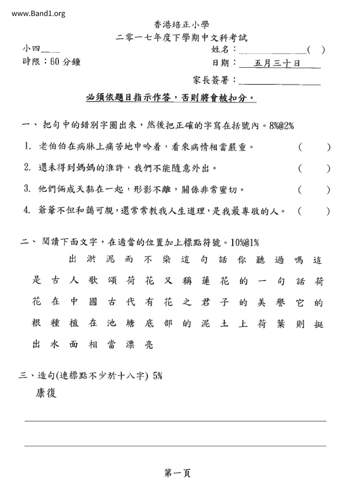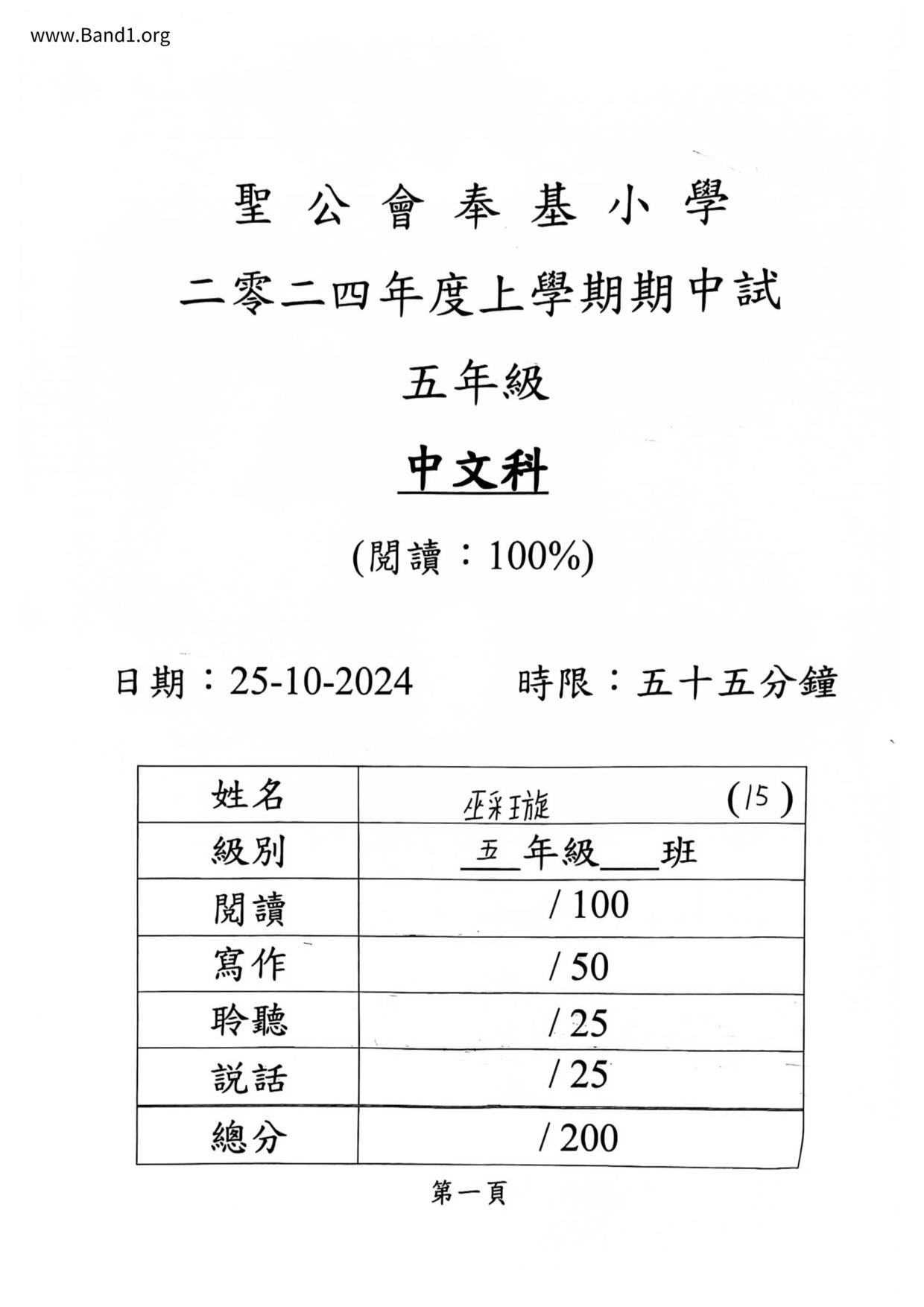 香港 中小學 中文 (HK Chinese) 試卷 pdf