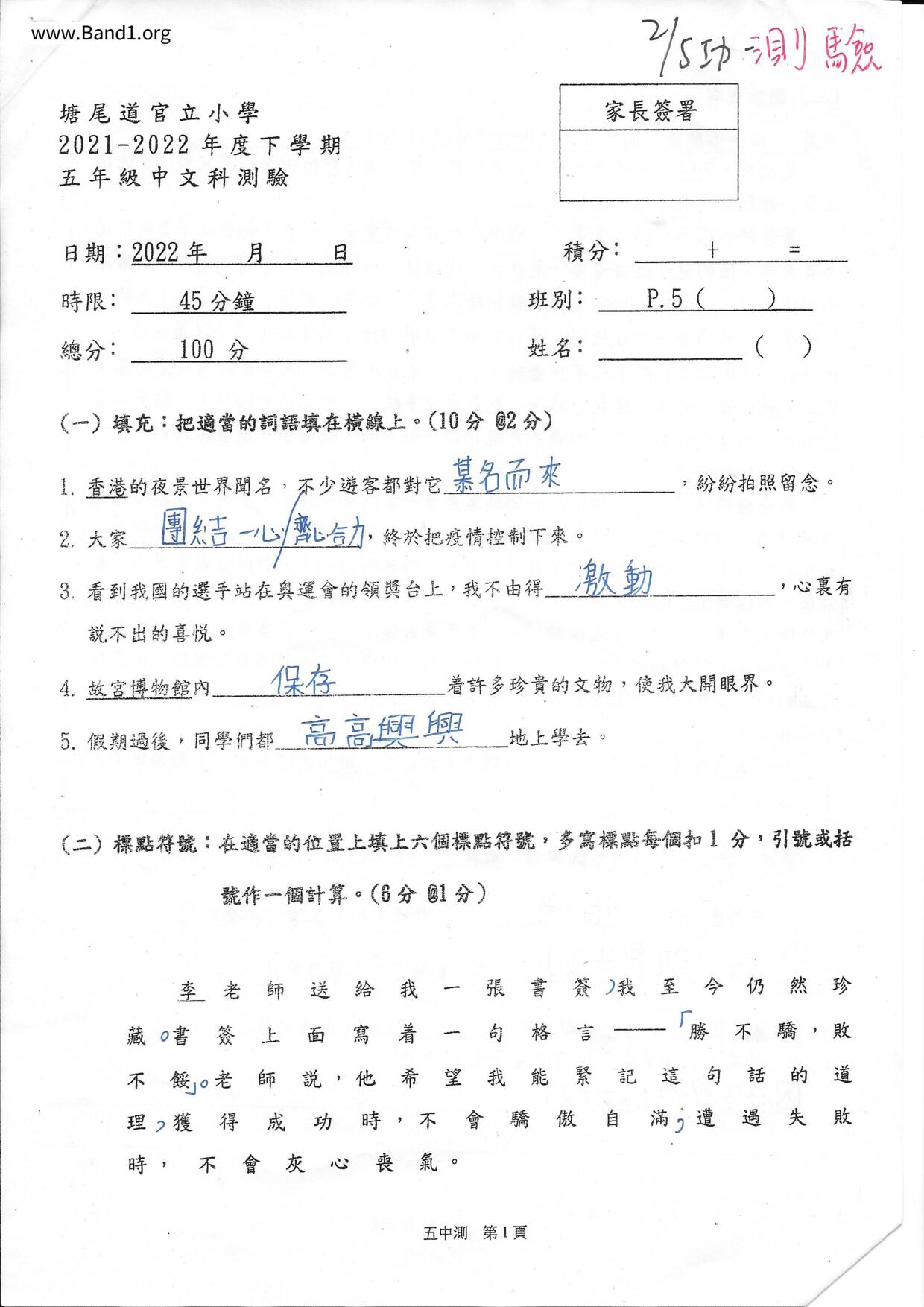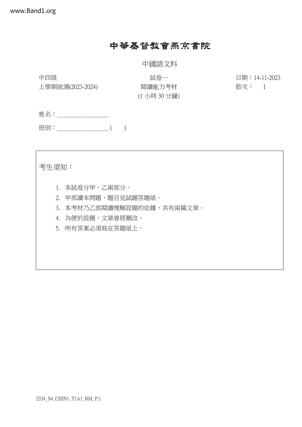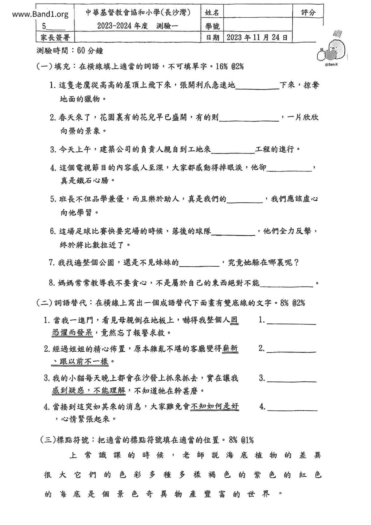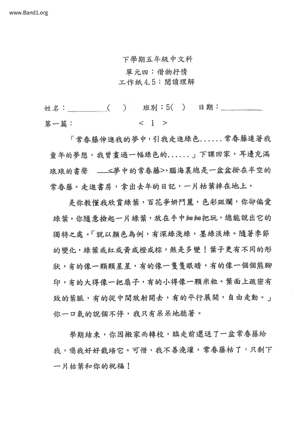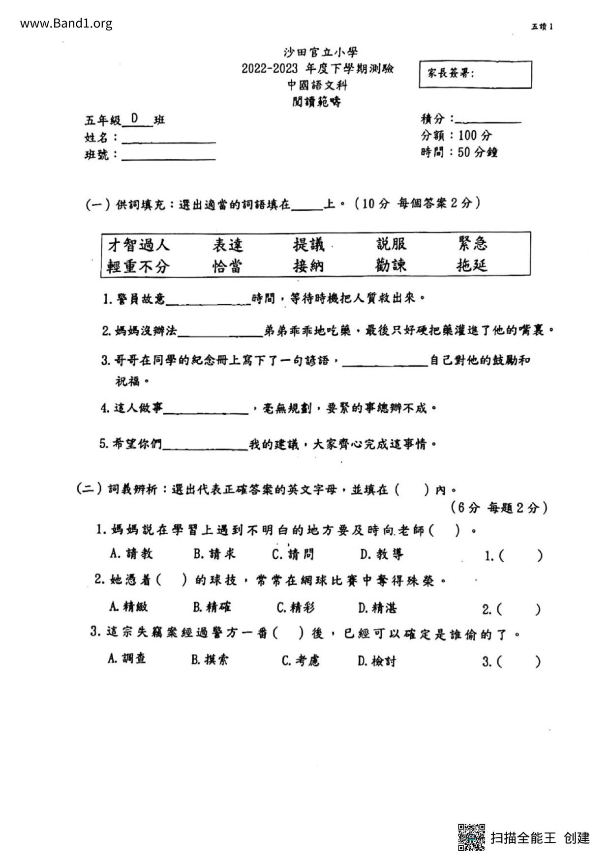香港 中小學 中文 (HK Chinese) 試卷 pdf