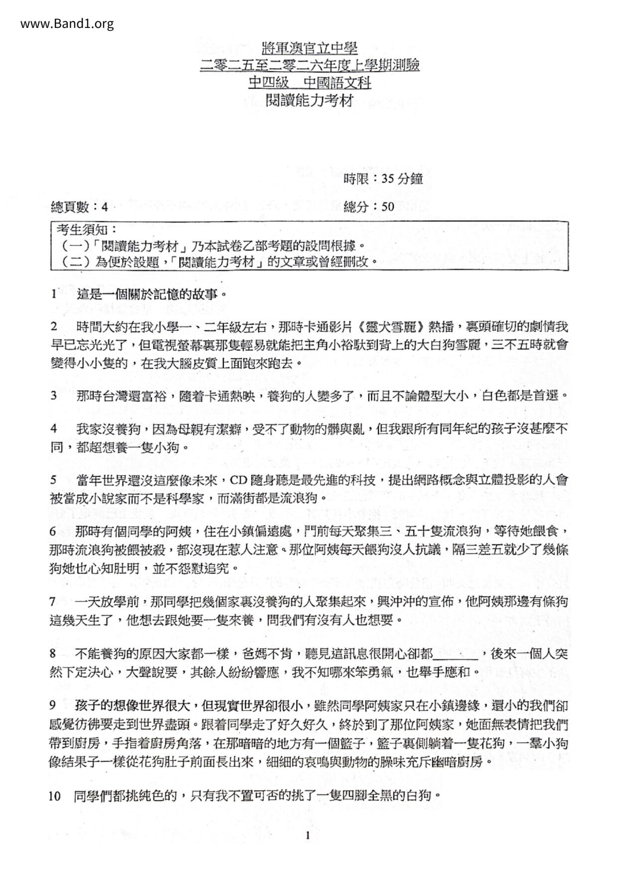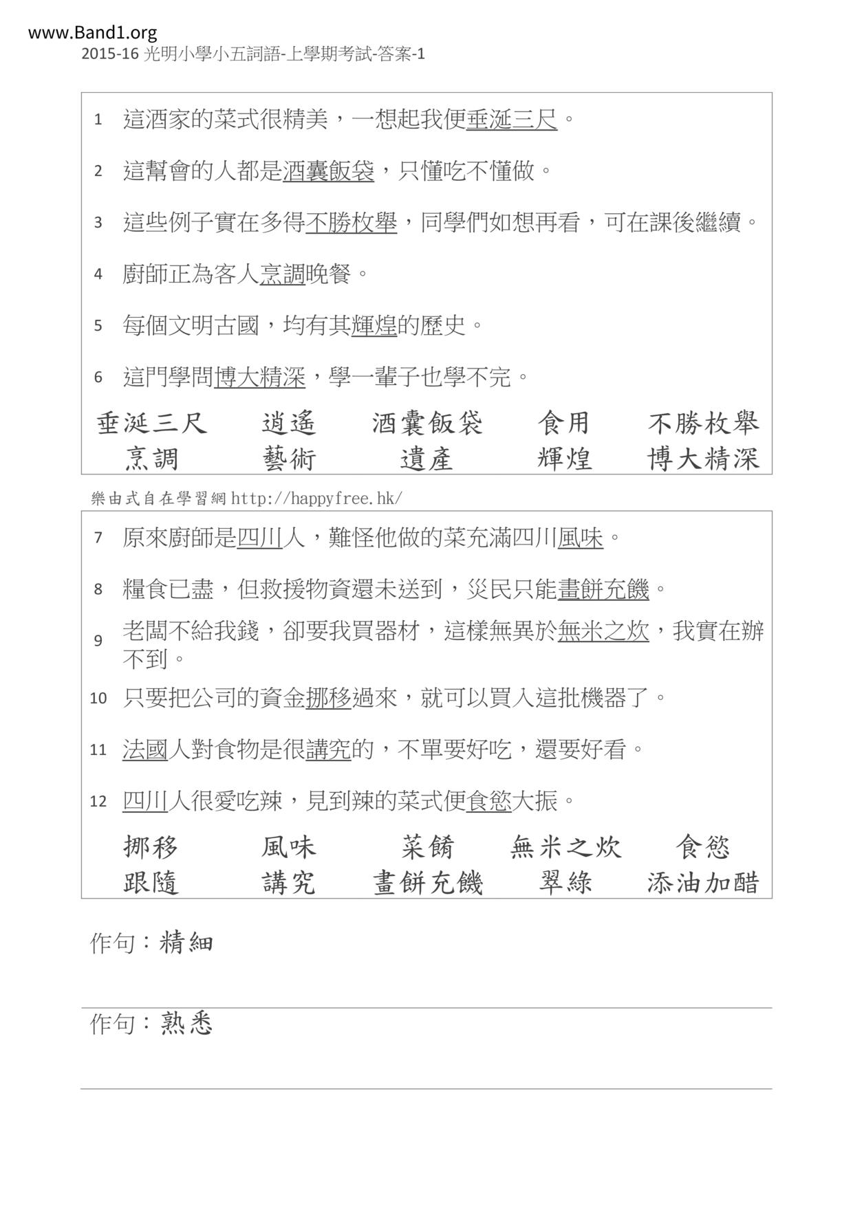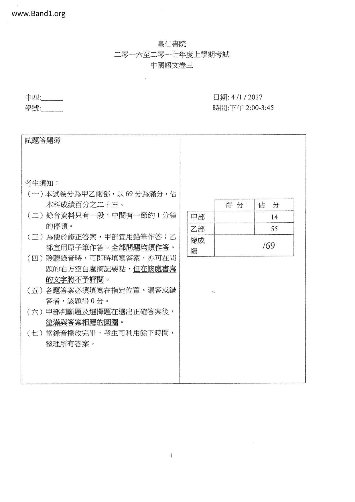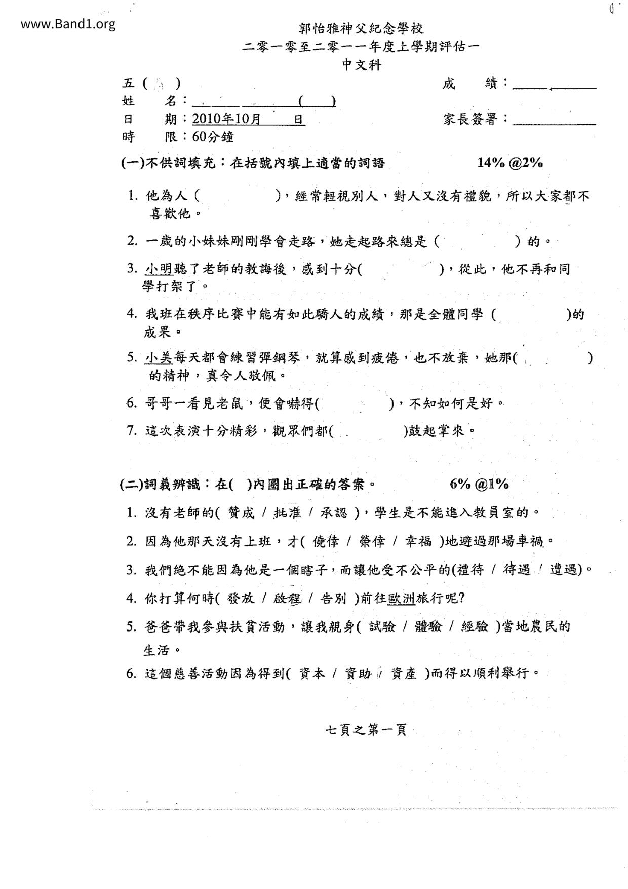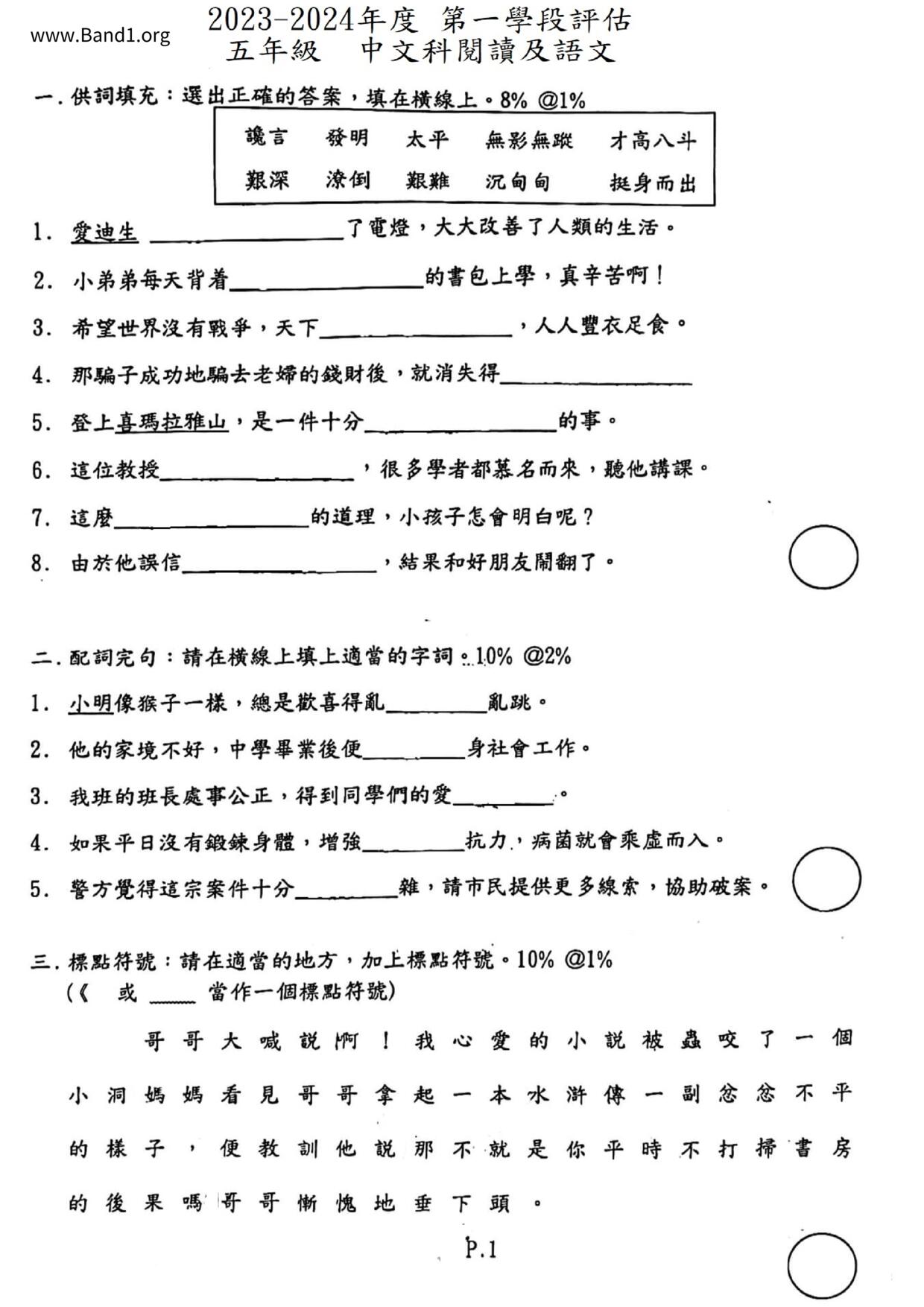 香港 中小學 中文 (HK Chinese) 試卷 pdf