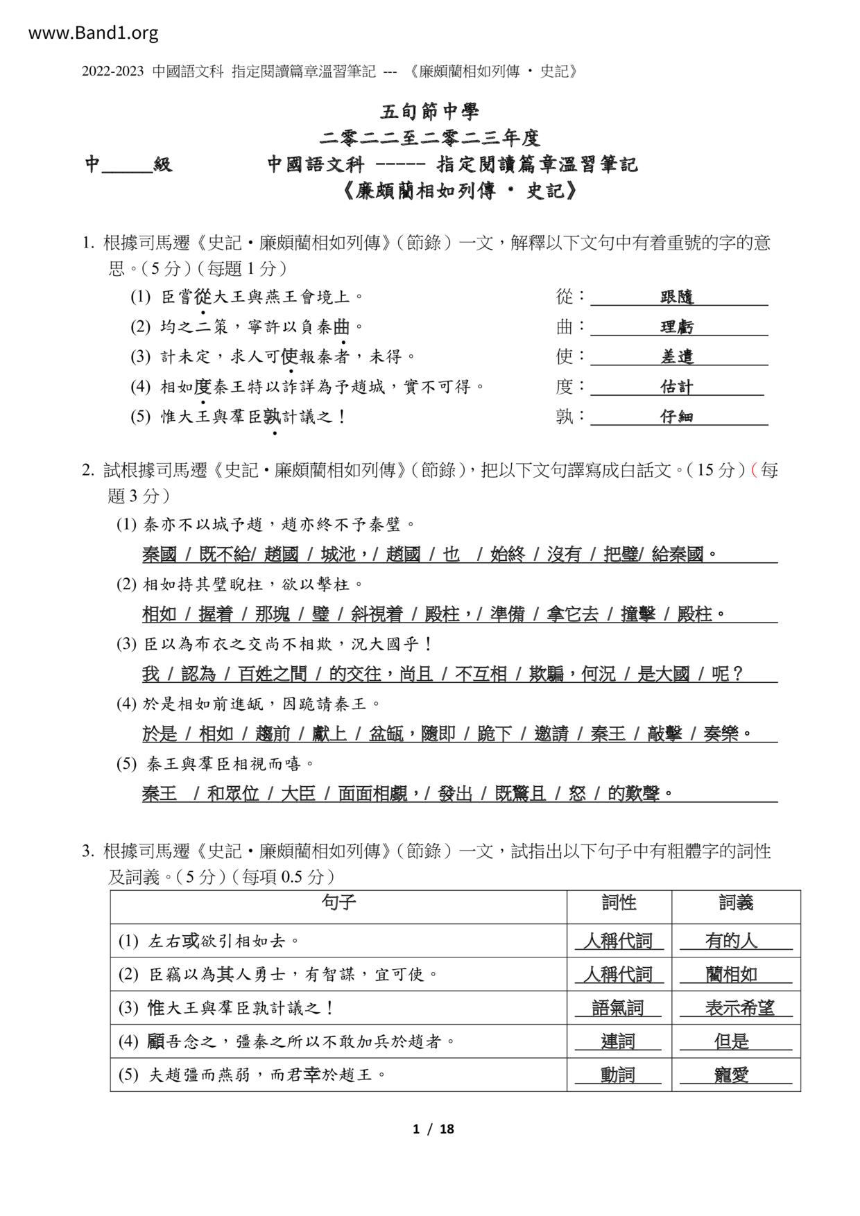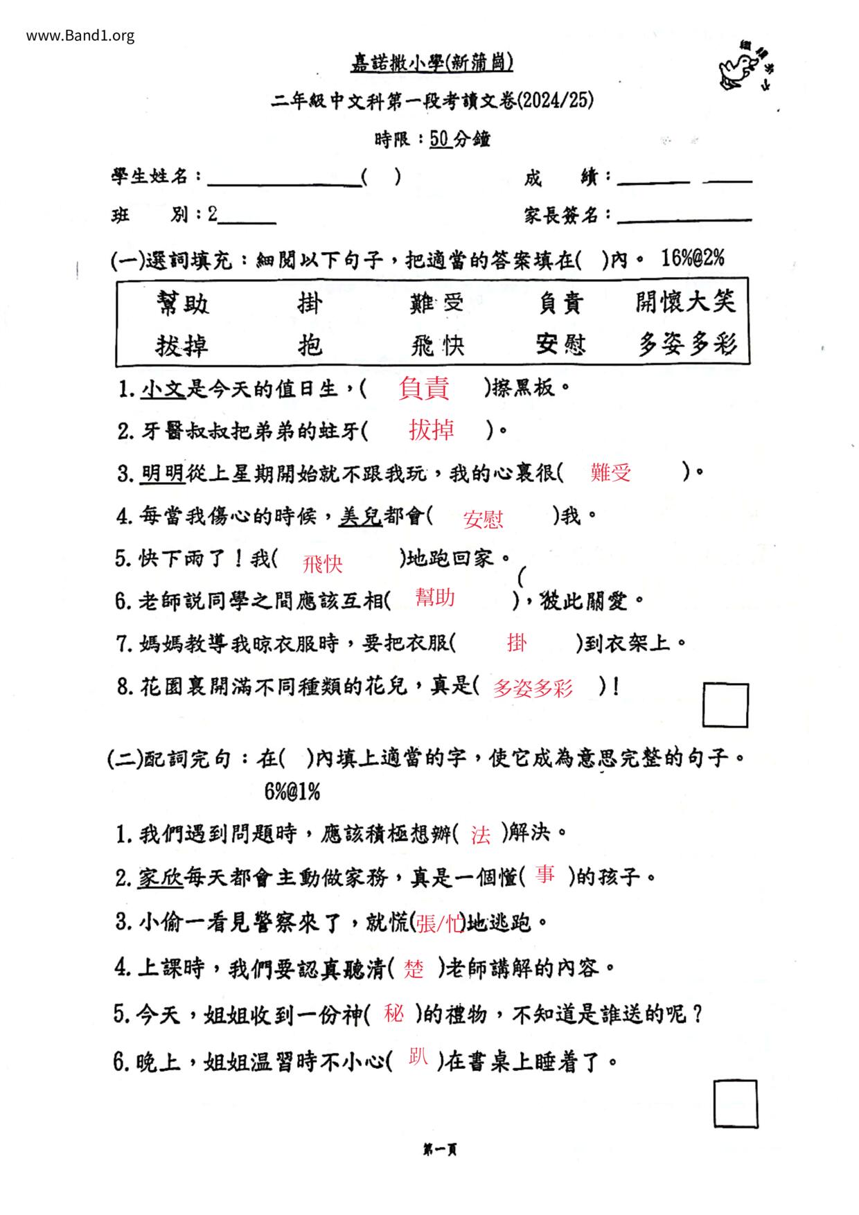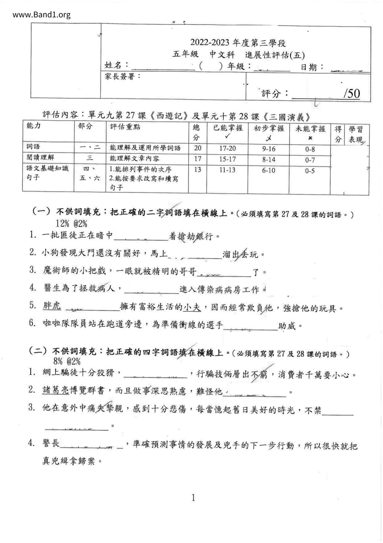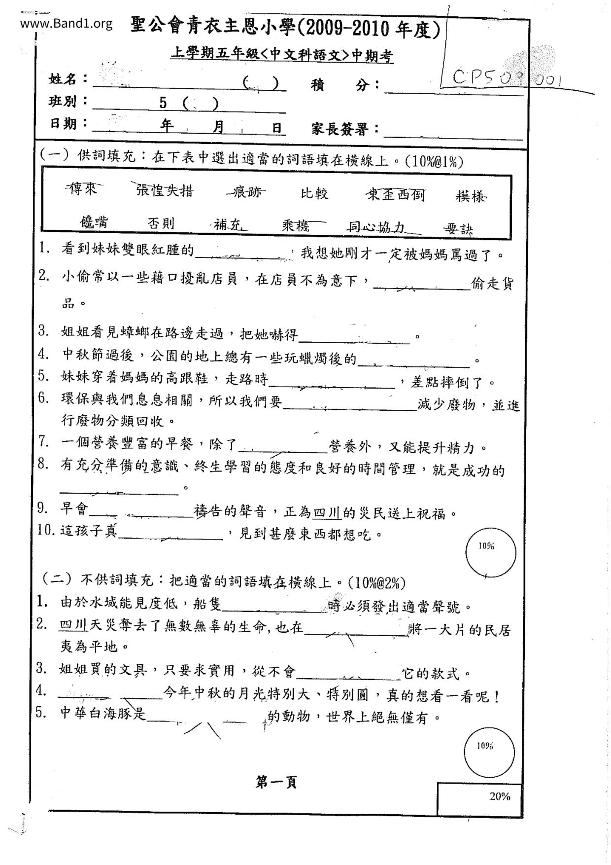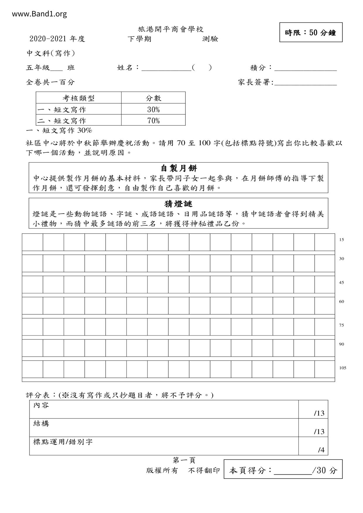 香港 中小學 中文 (HK Chinese) 試卷 pdf
