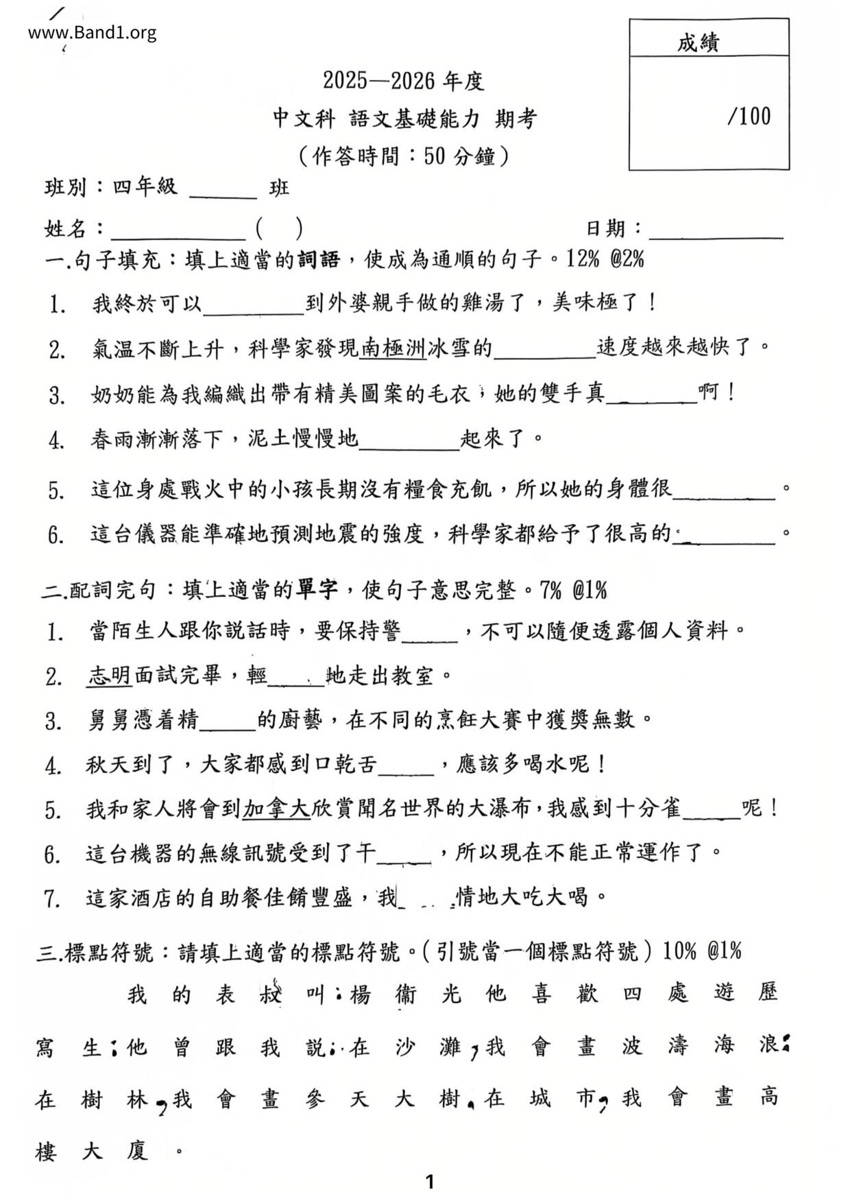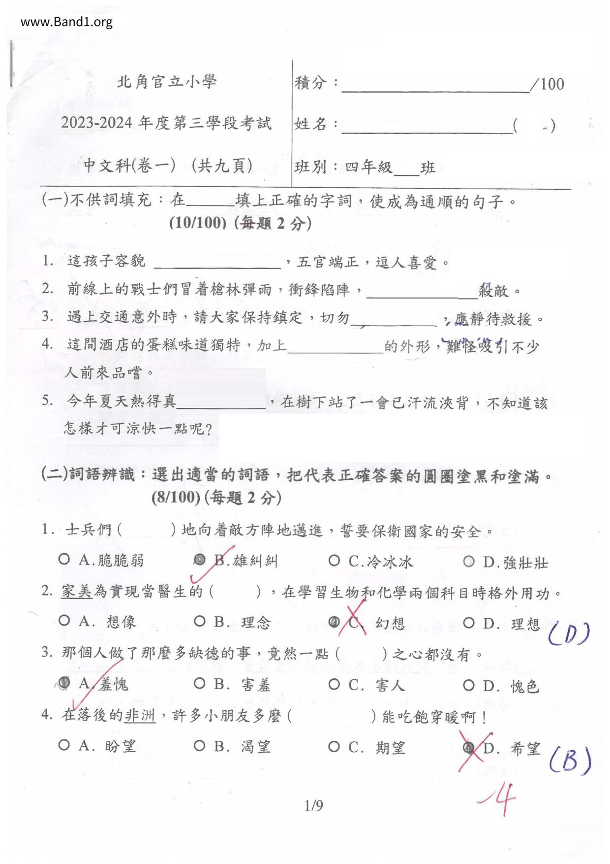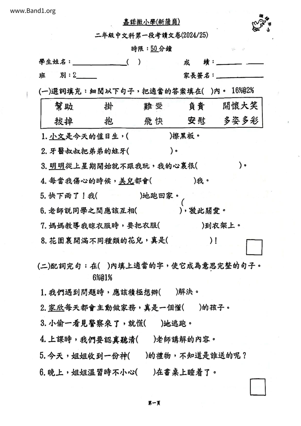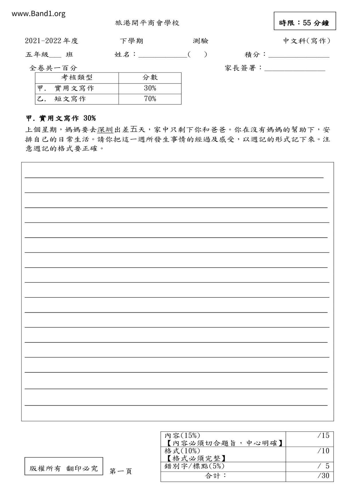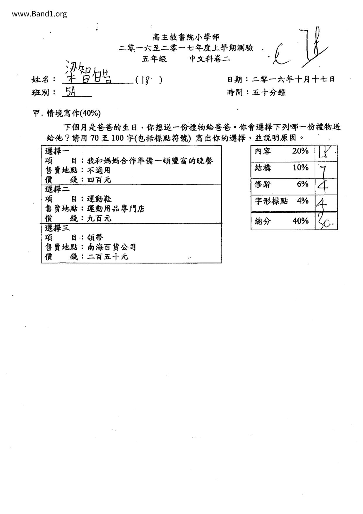香港 中小學 中文 (HK Chinese) 試卷 pdf