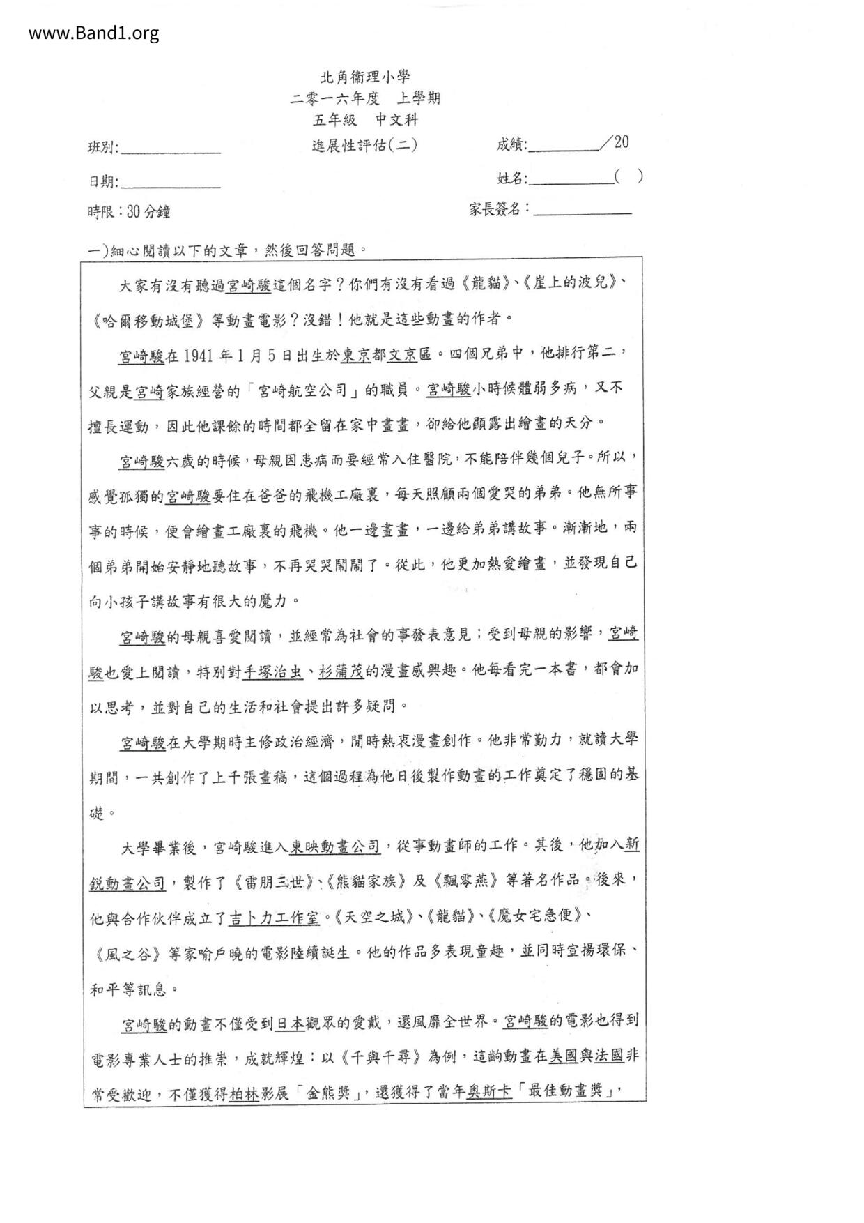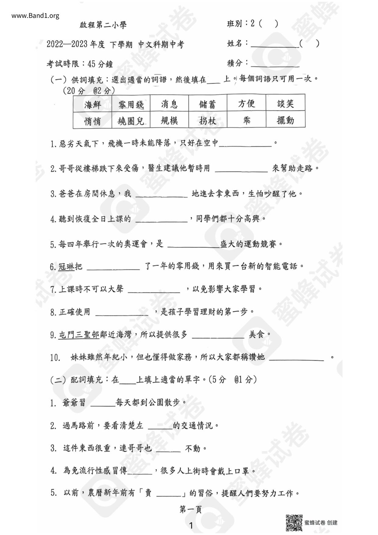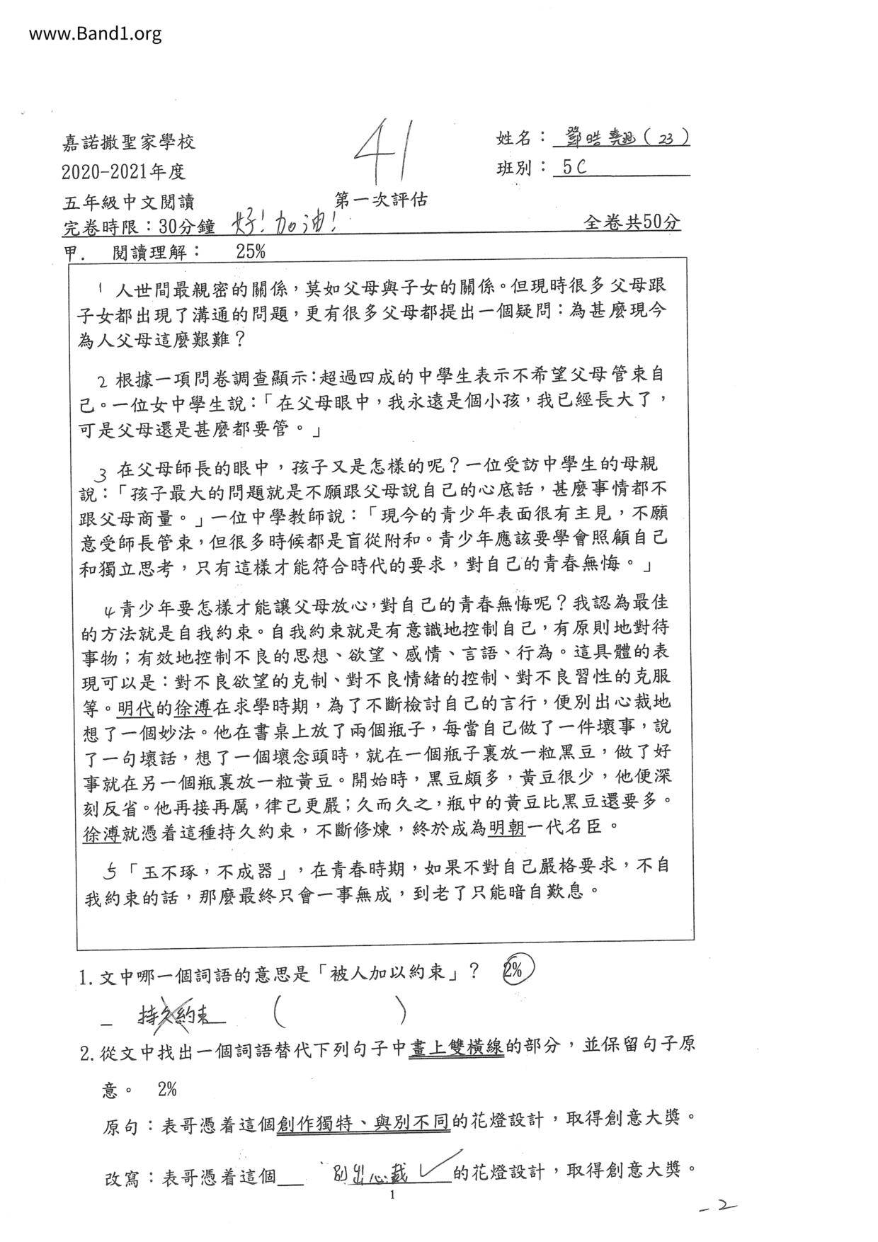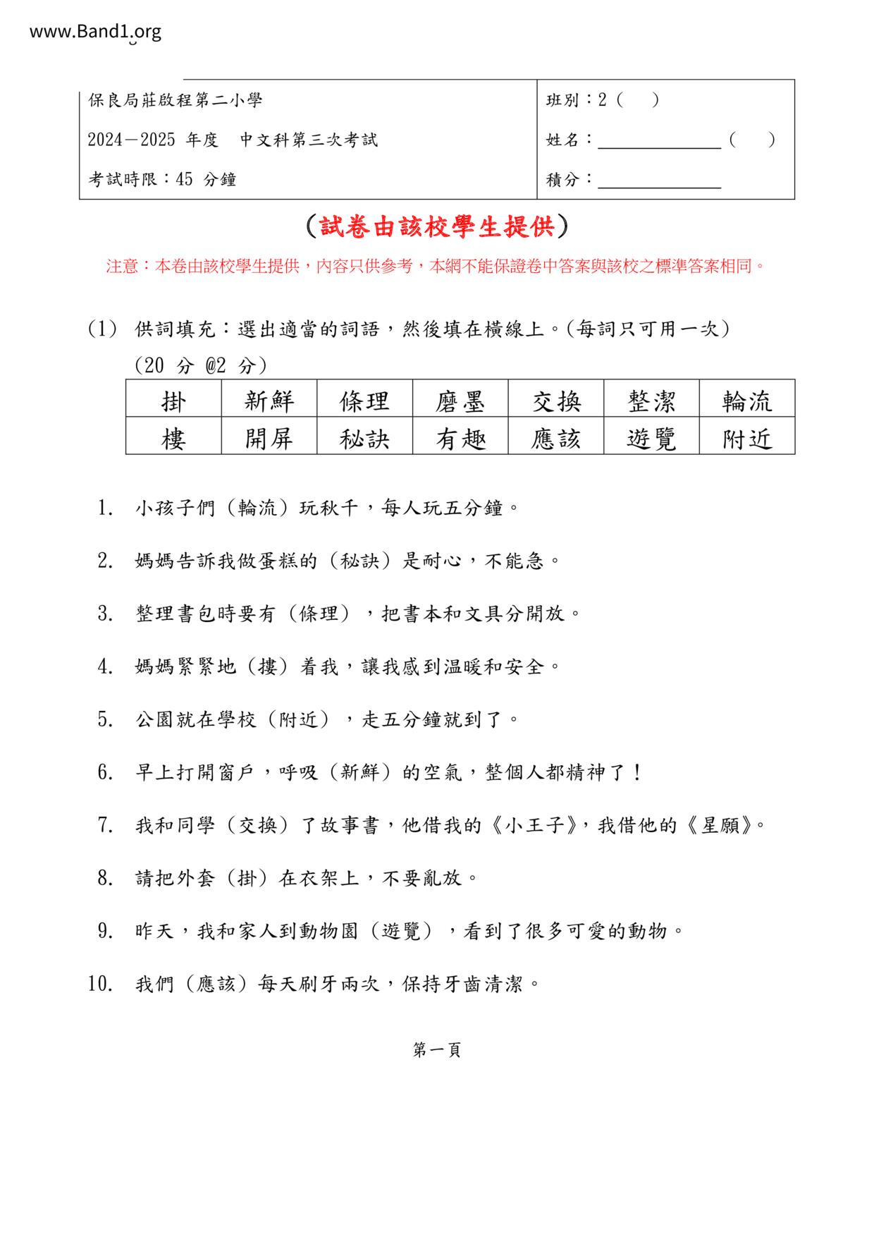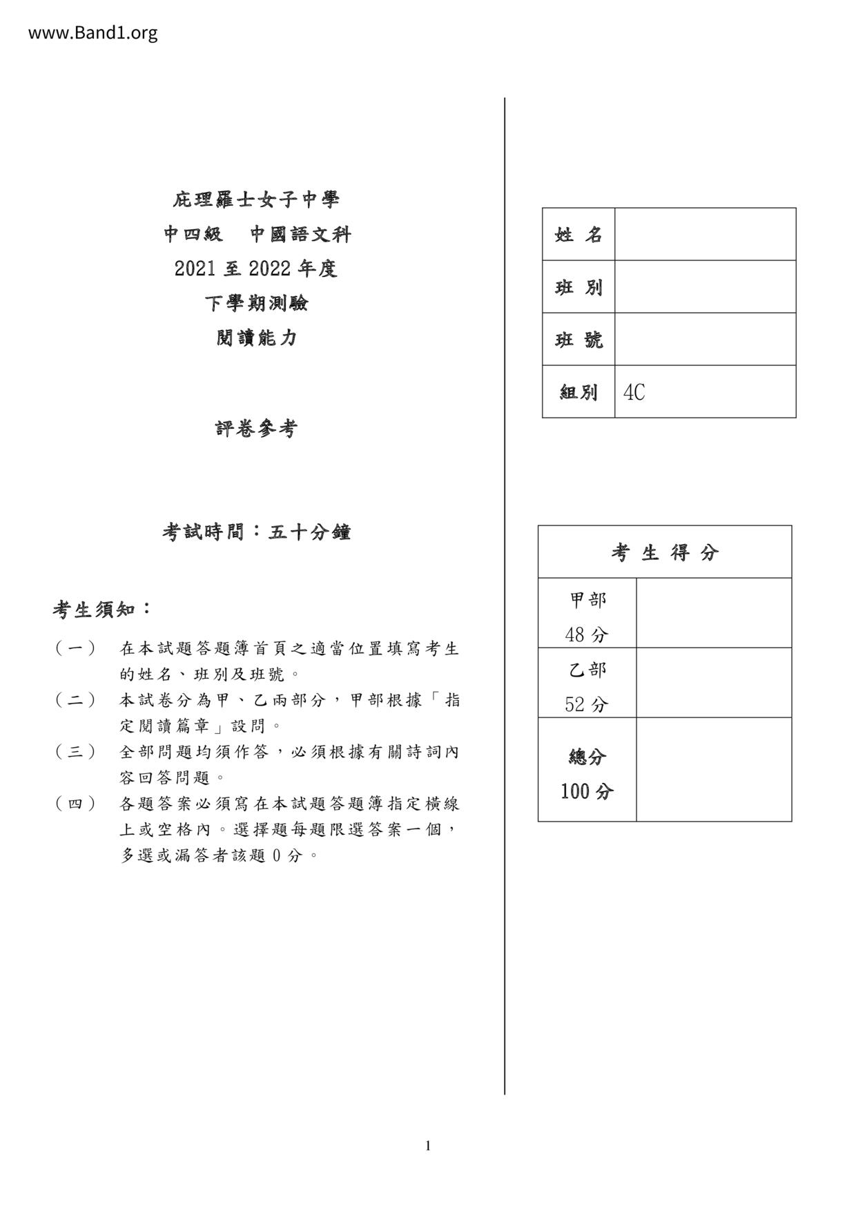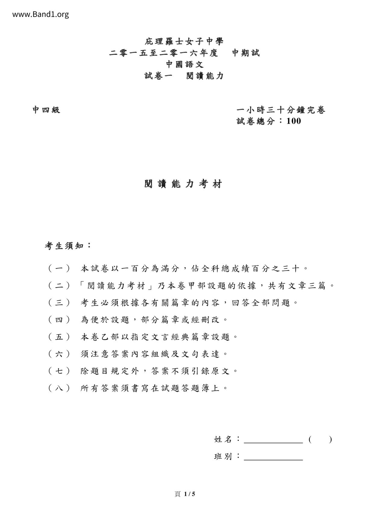 香港 中小學 中文 (HK Chinese) 試卷 pdf