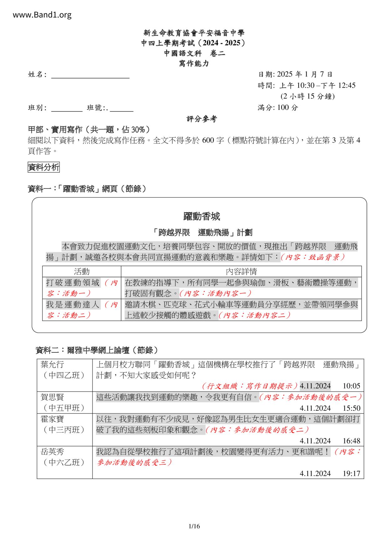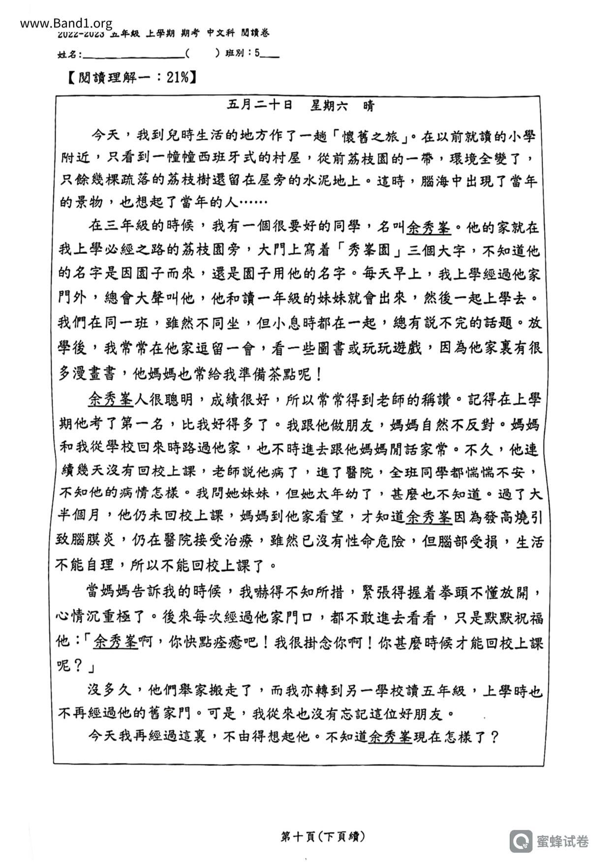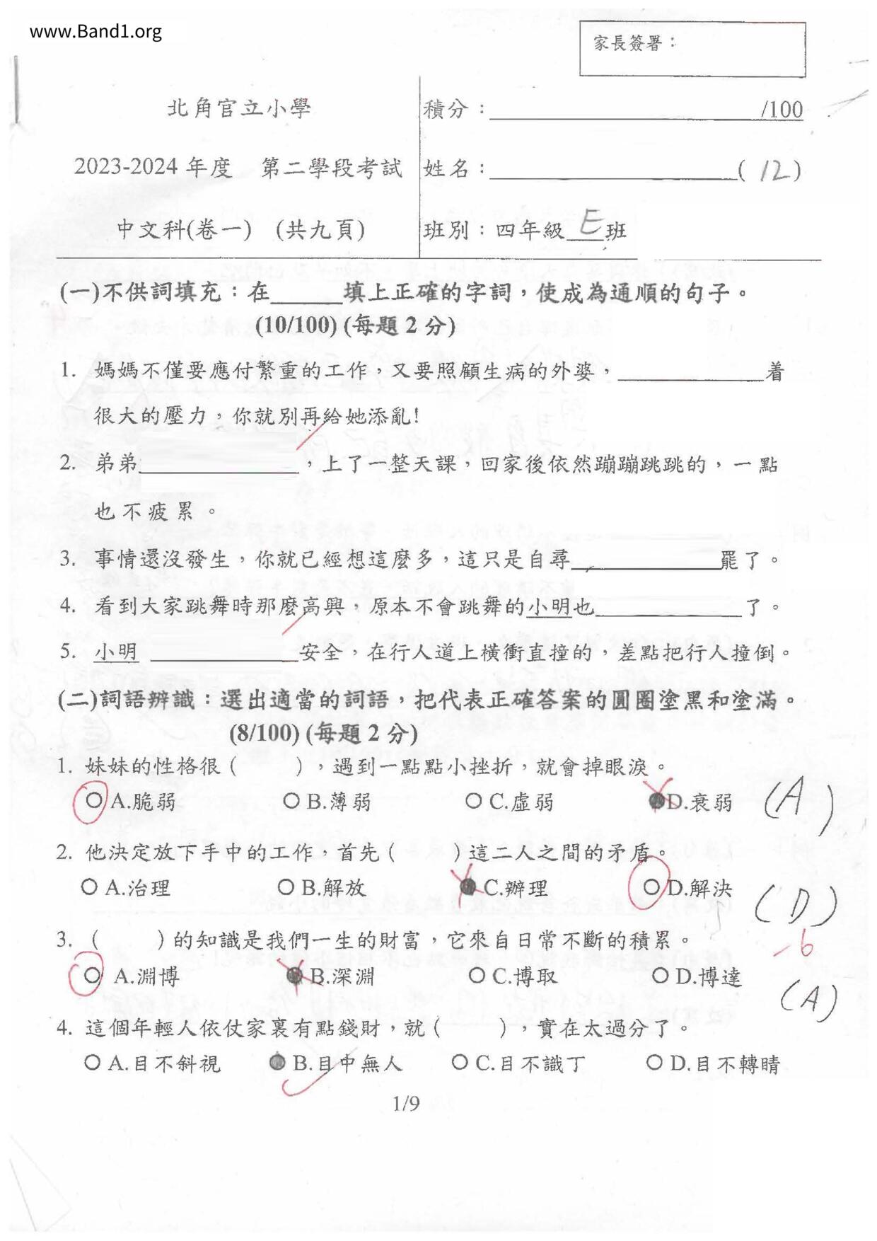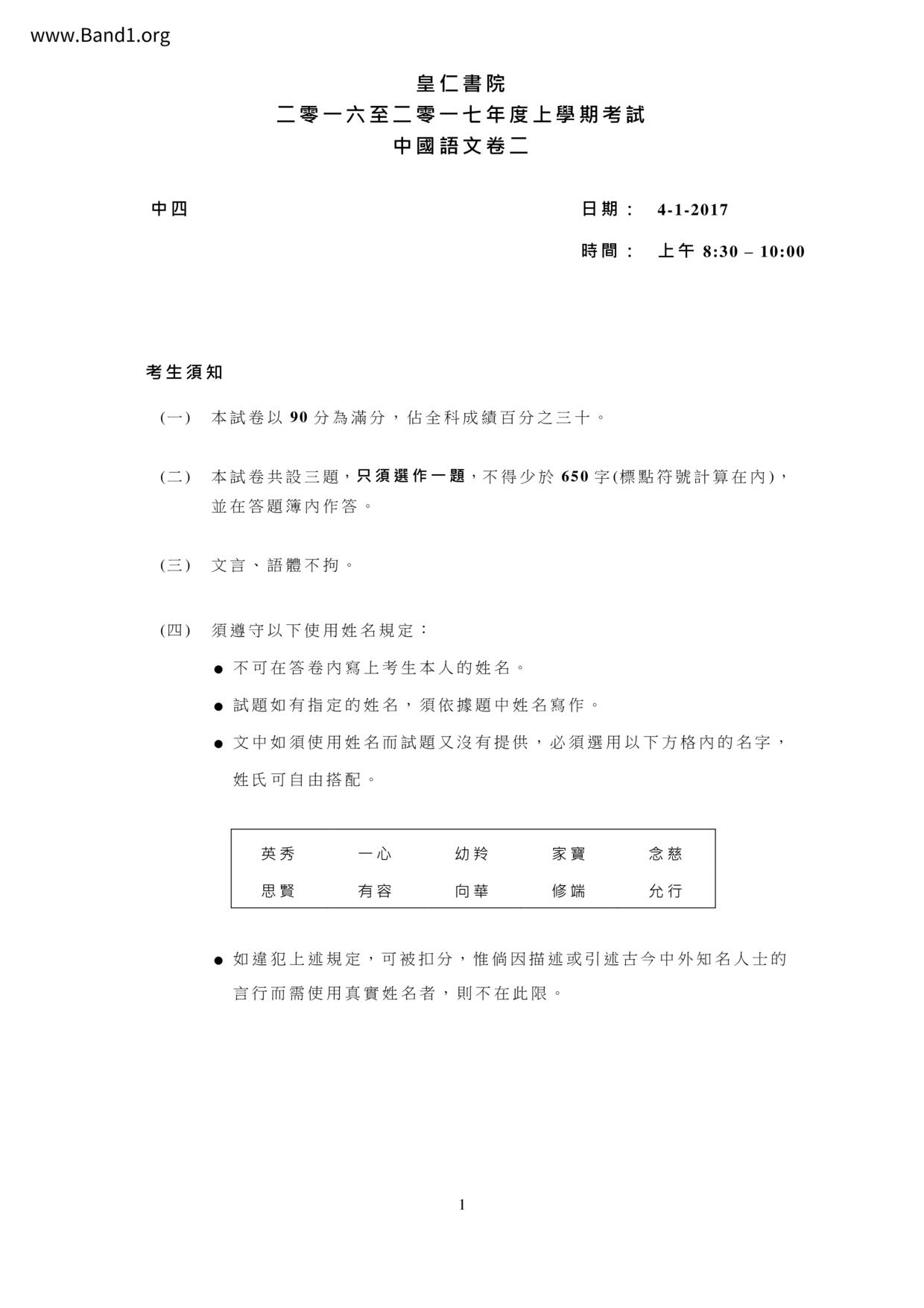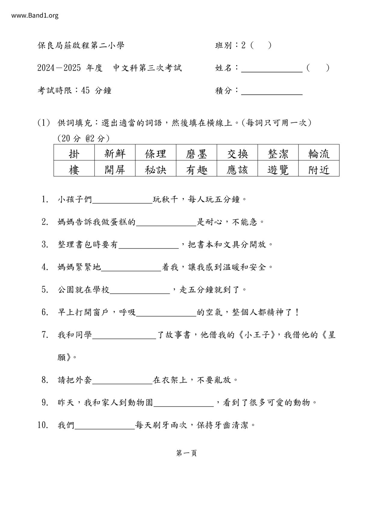 香港 中小學 中文 (HK Chinese) 試卷 pdf