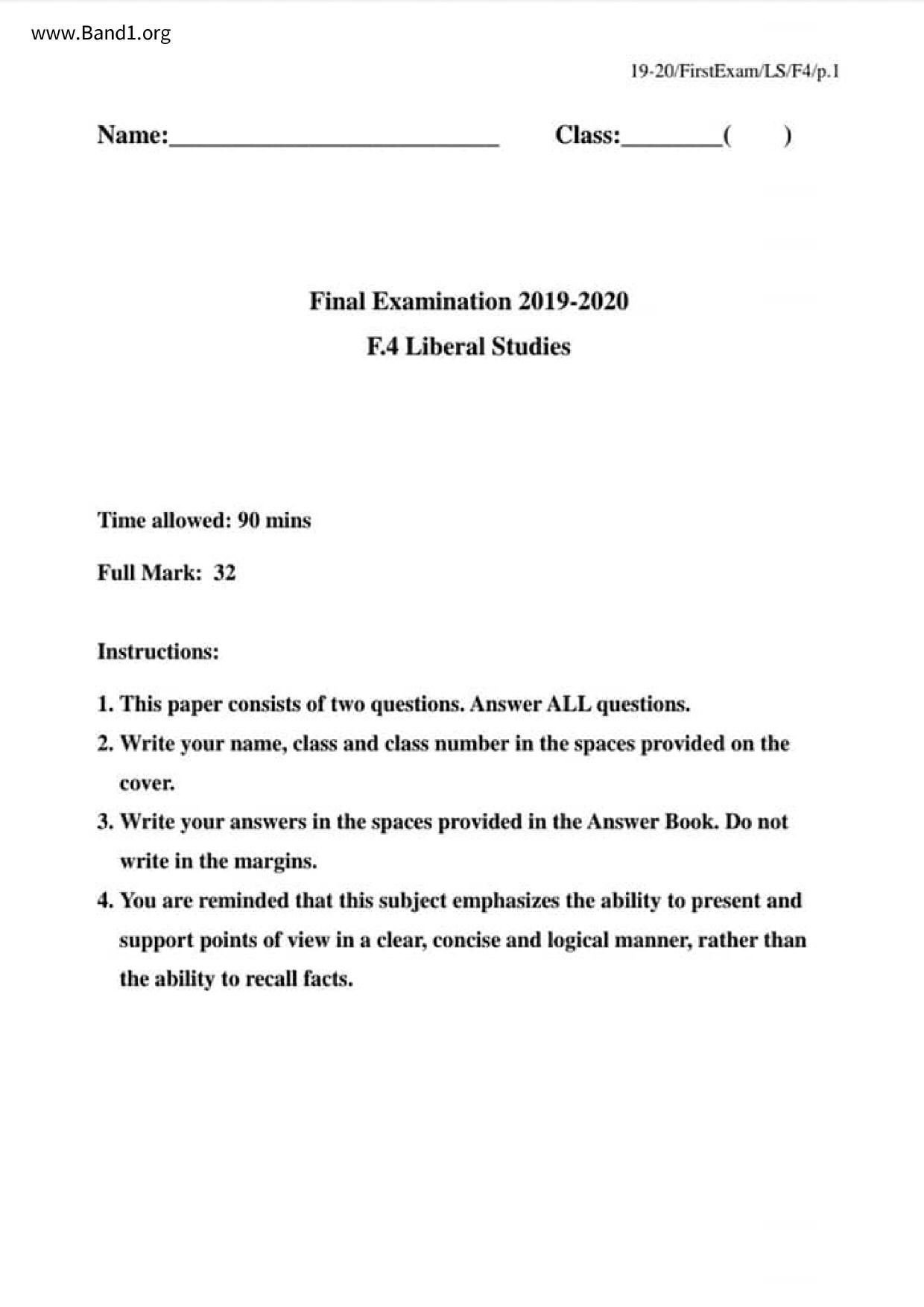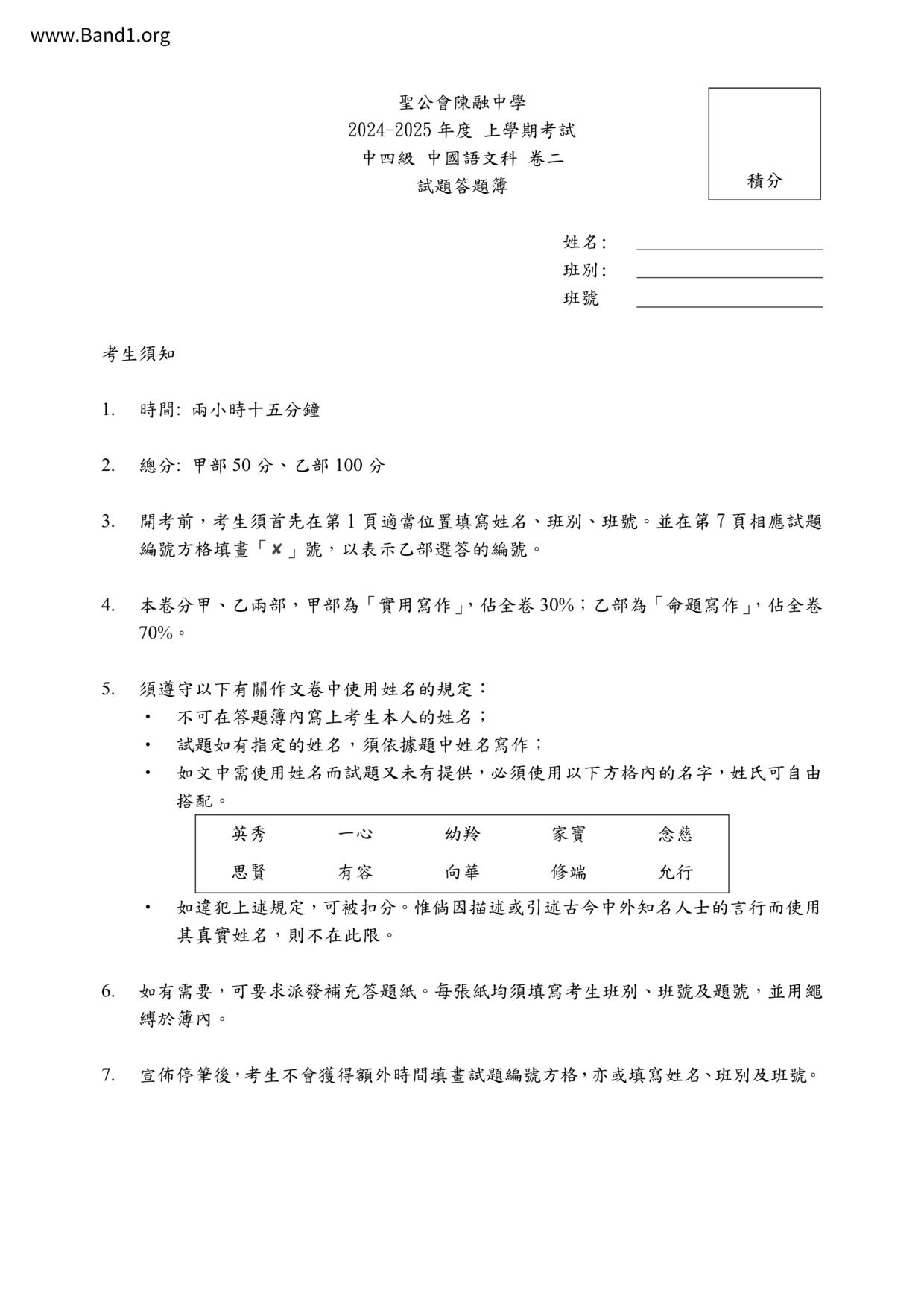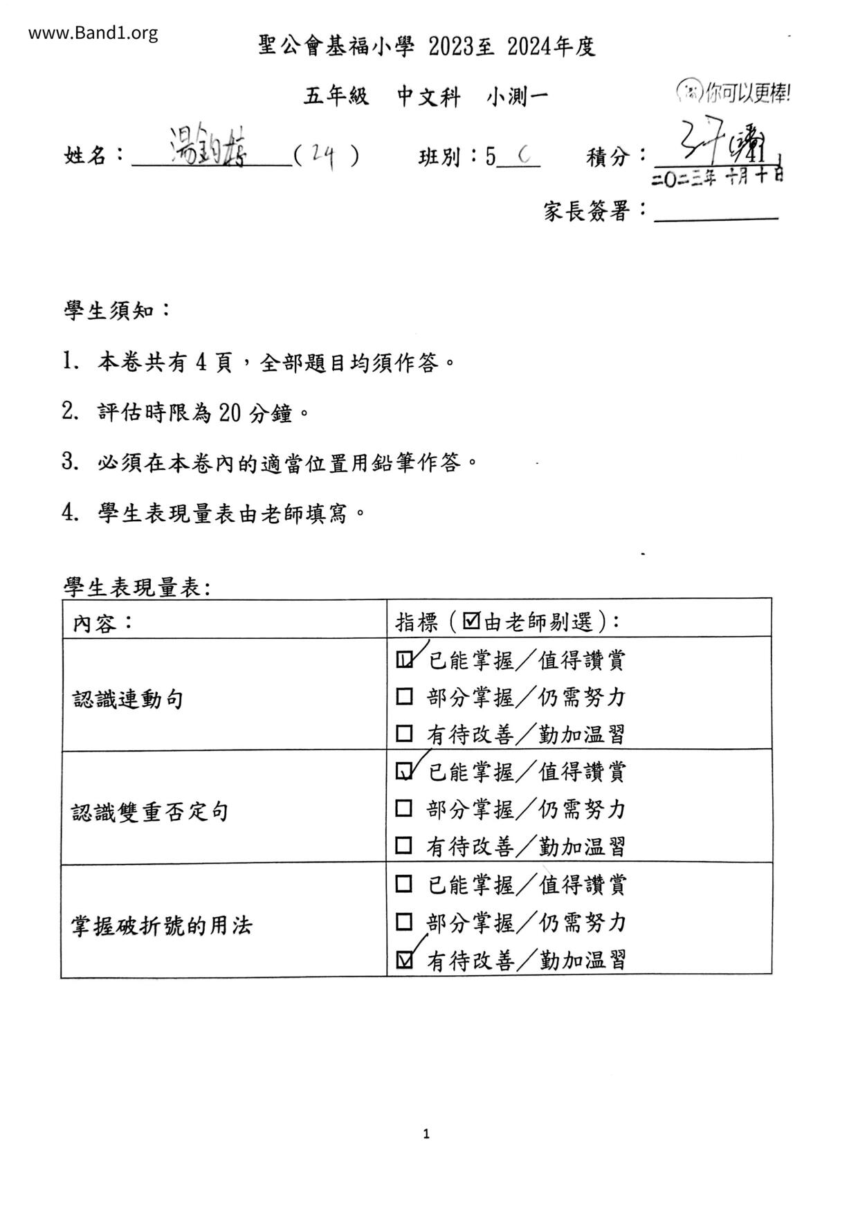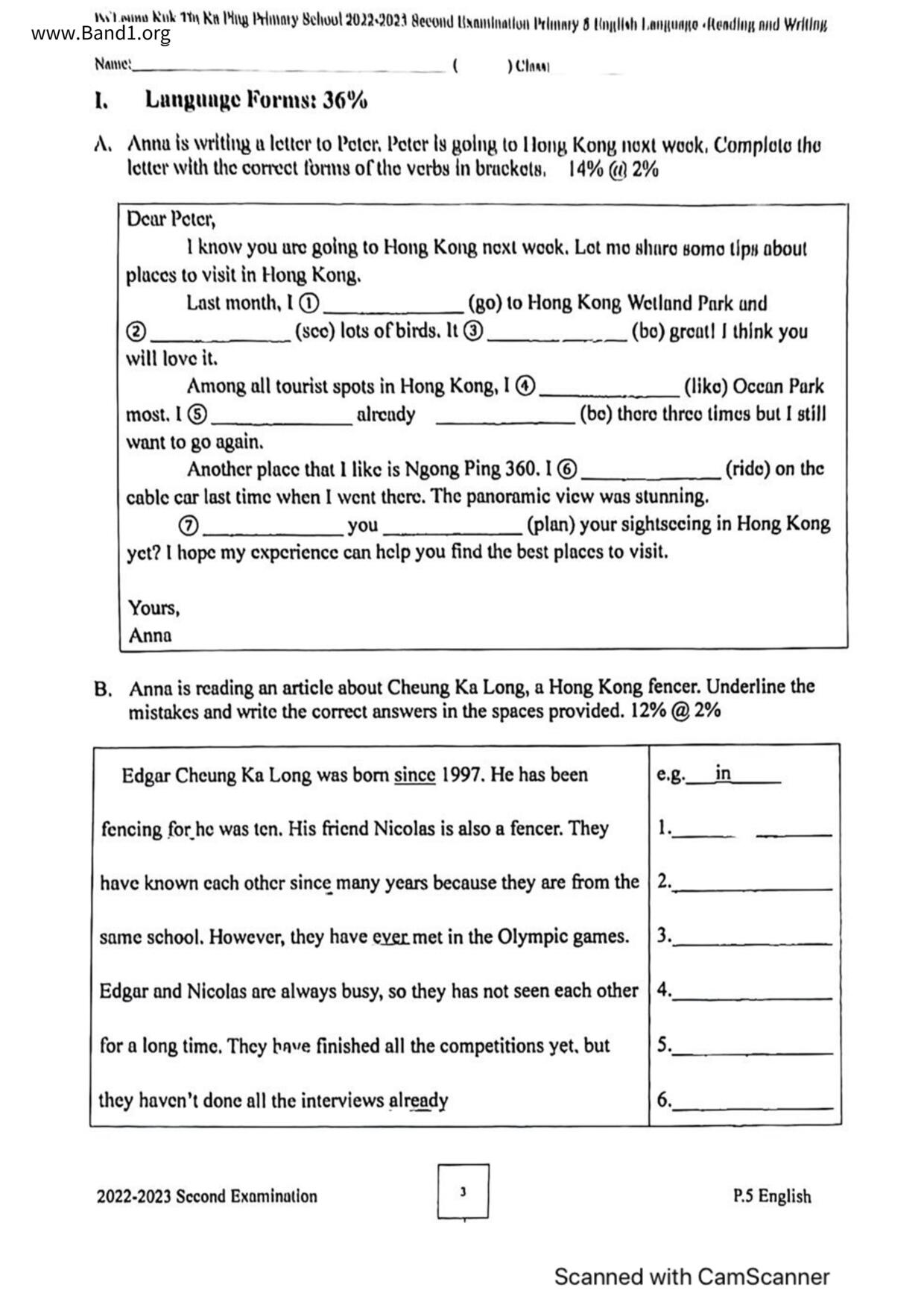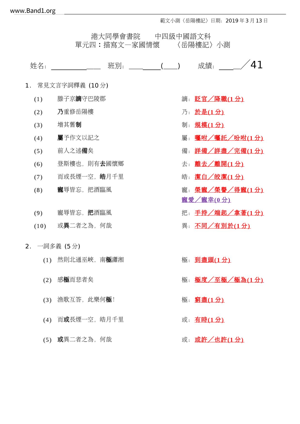 香港 中小學 中文 (HK Chinese) 試卷 pdf