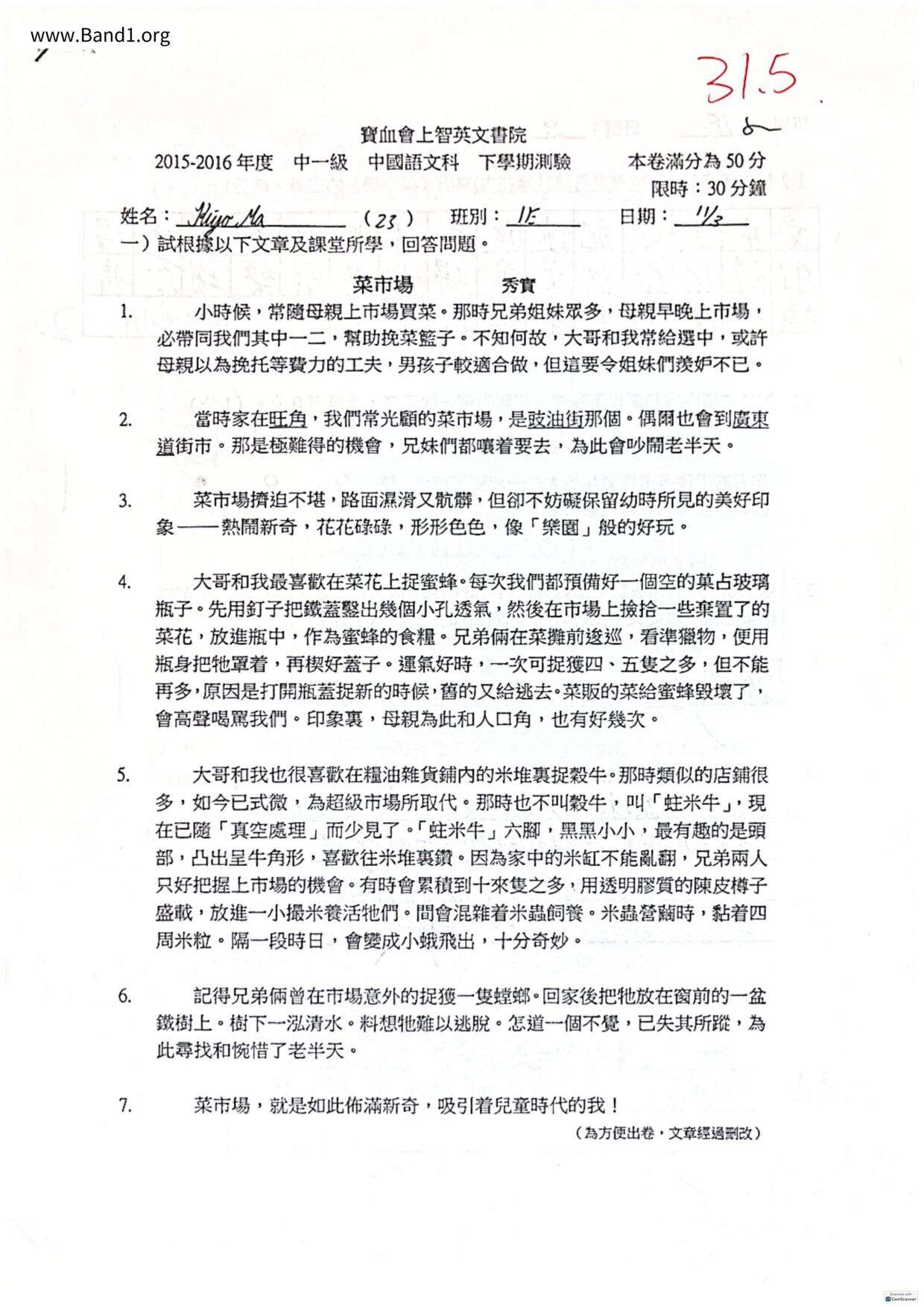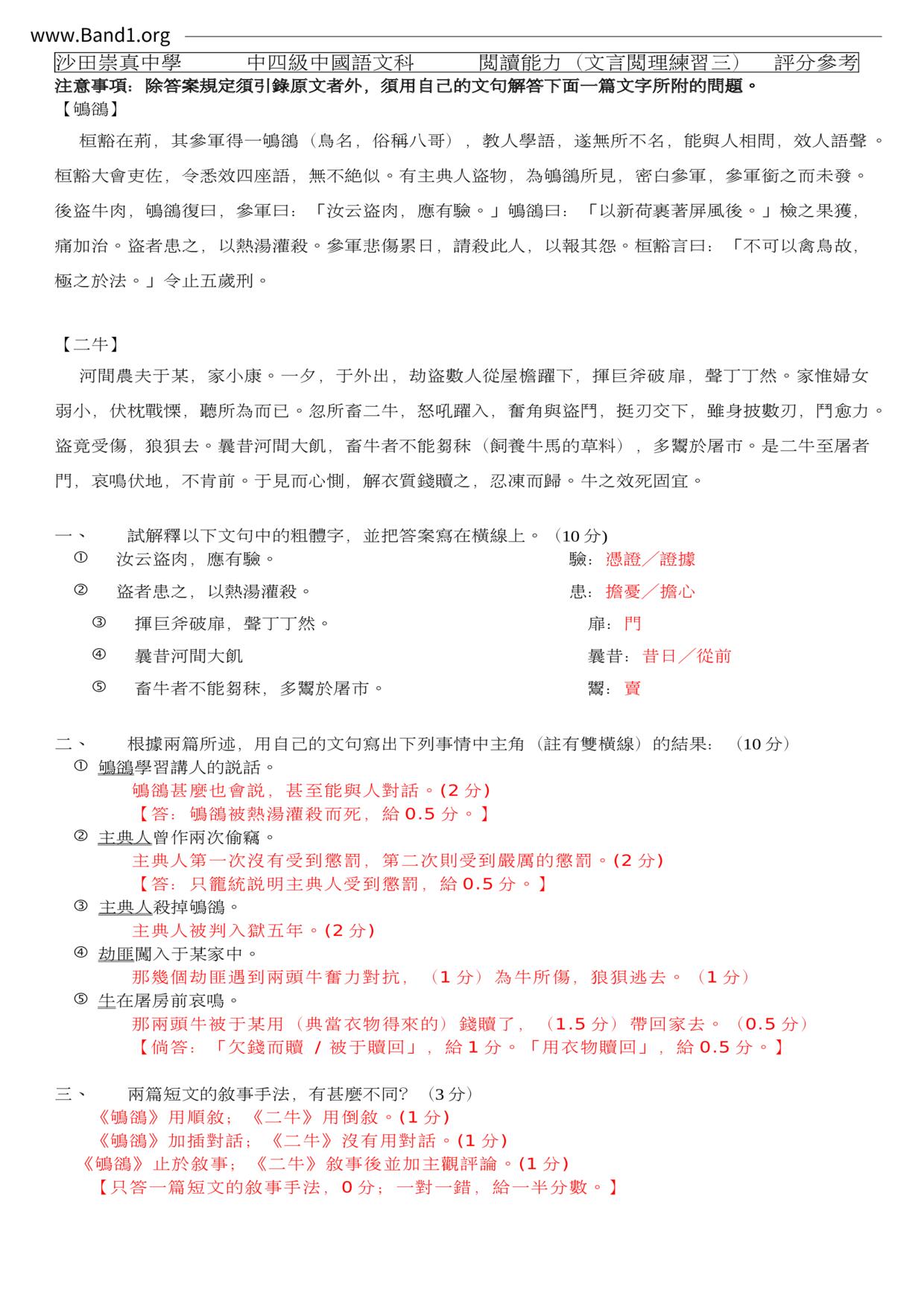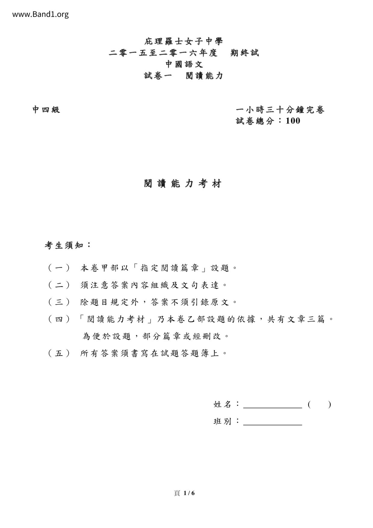 中六 中文 嗇色園主辦可譽中學暨可譽小學