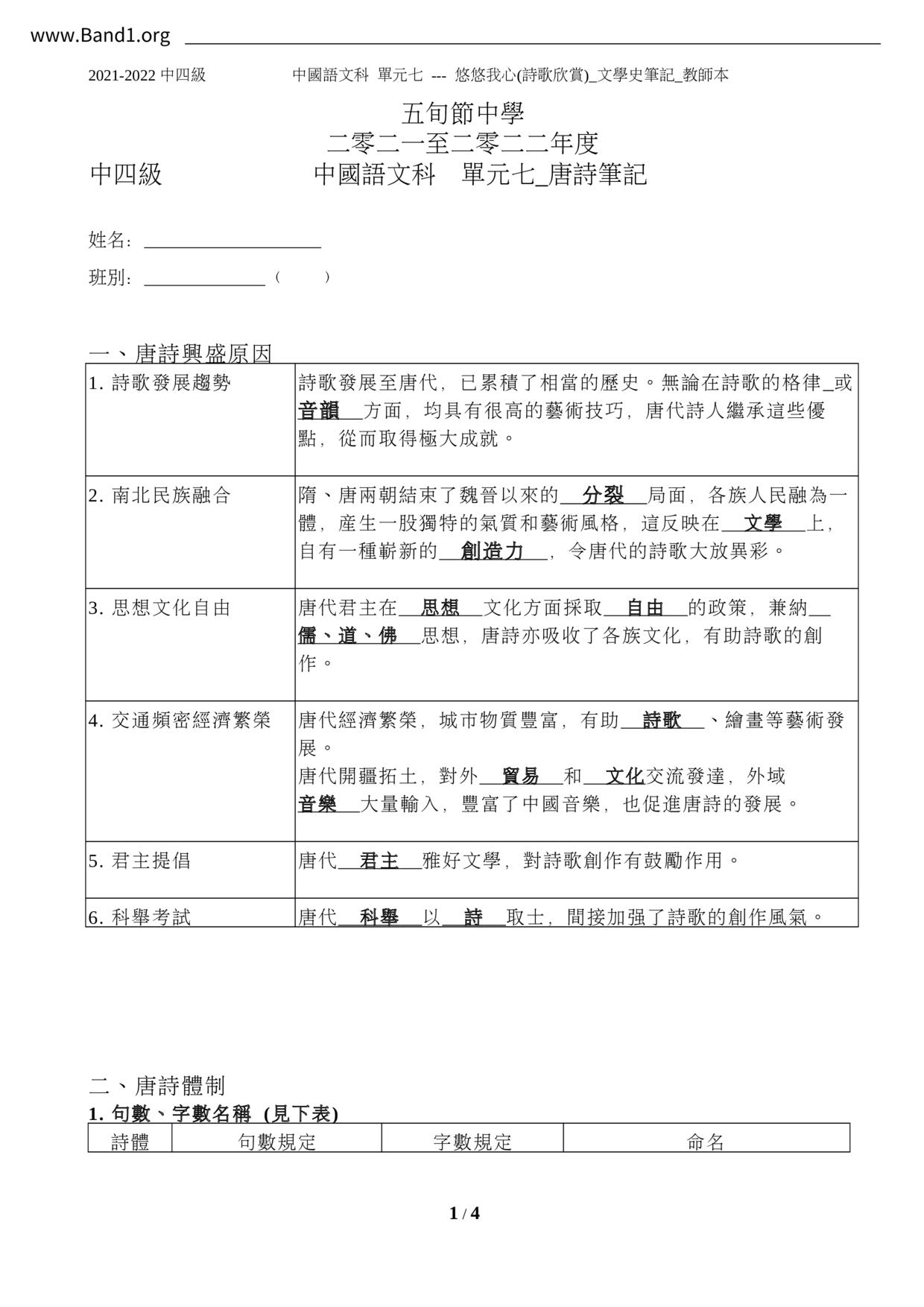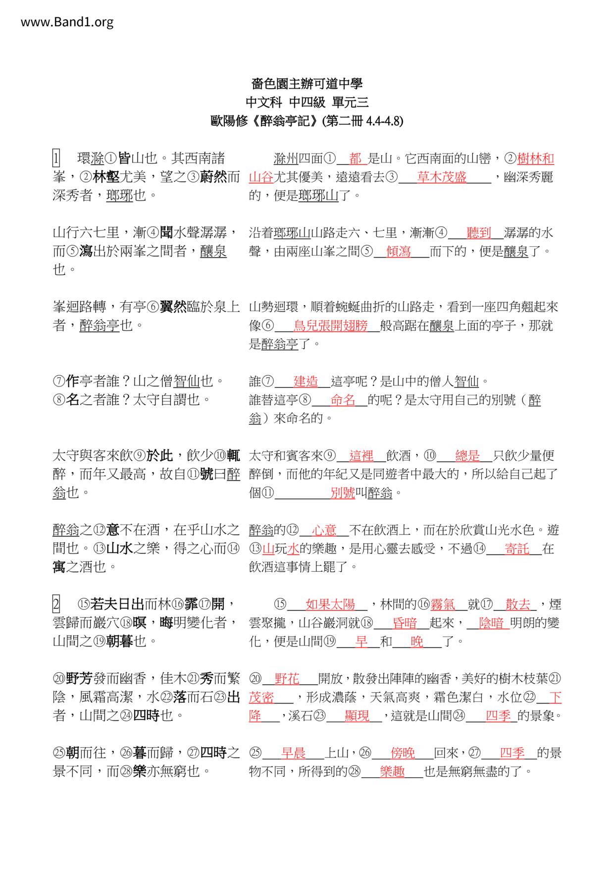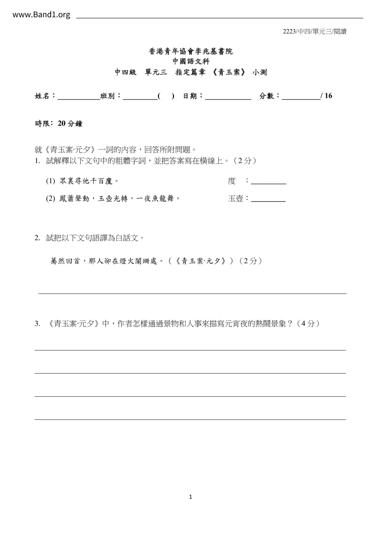 中六 中文 嗇色園主辦可譽中學暨可譽小學