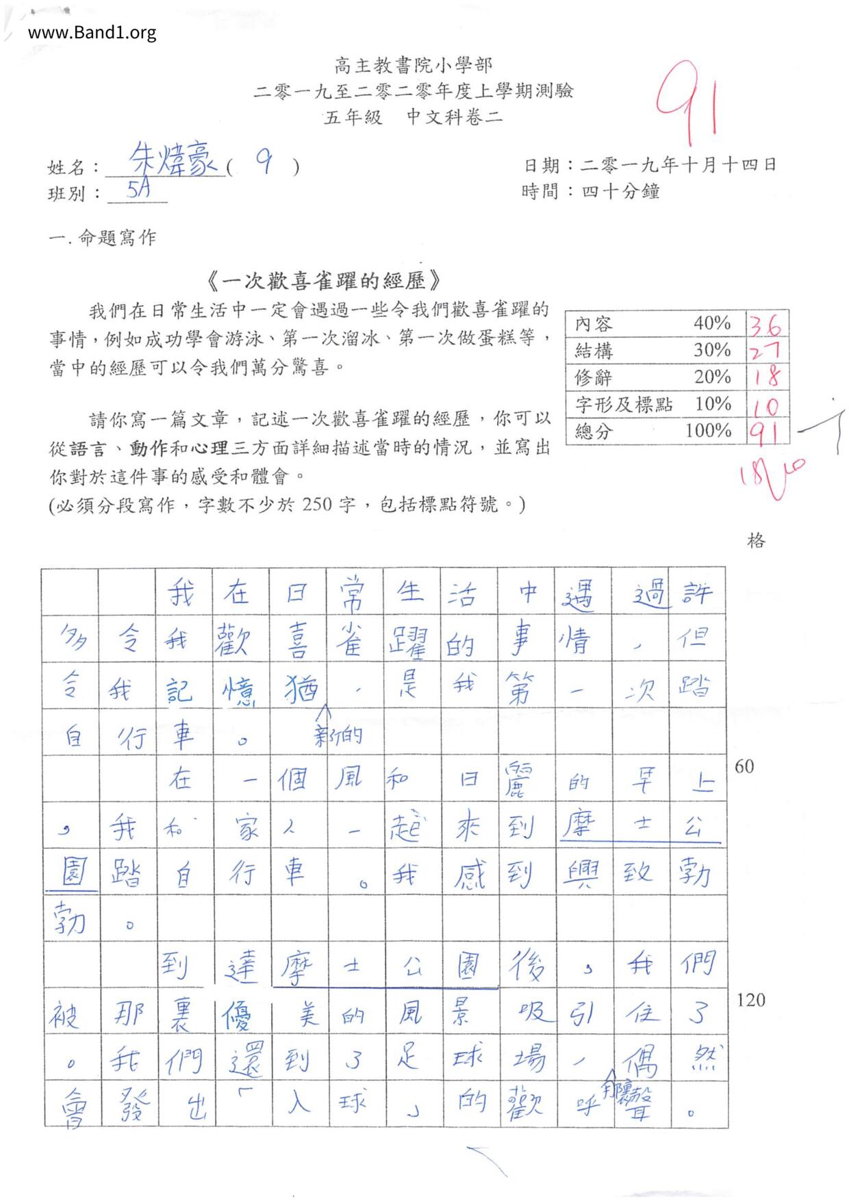 小五 中文 基督教香港信義會馬鞍山信義學校