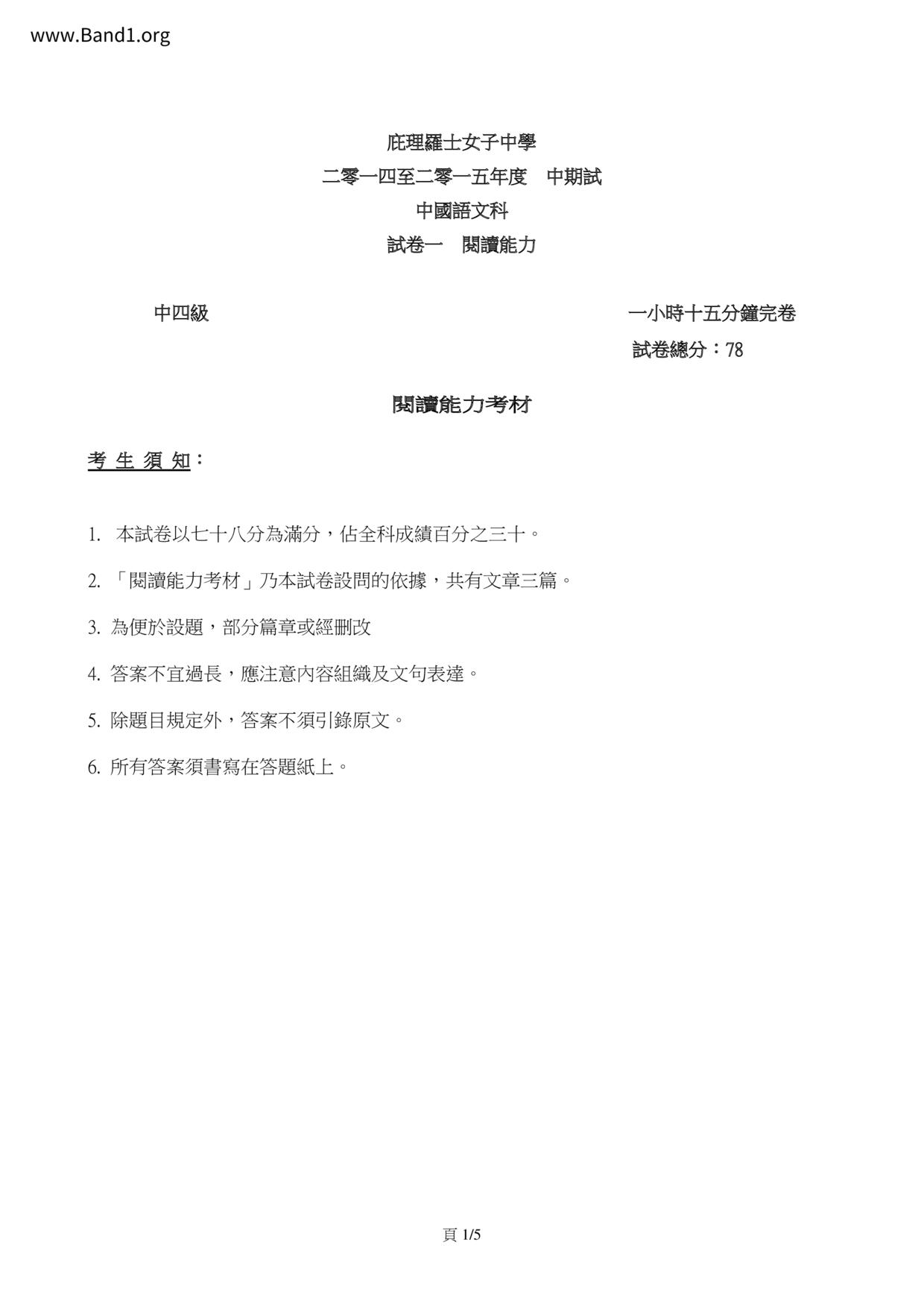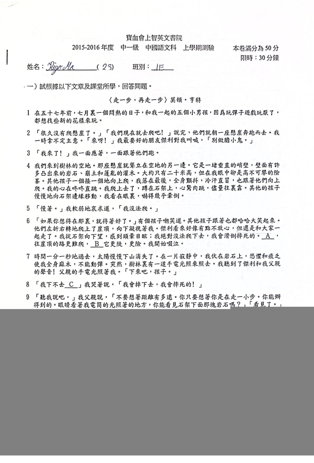 中五 中文 香港華德福教育基金會瑪利亞書院
