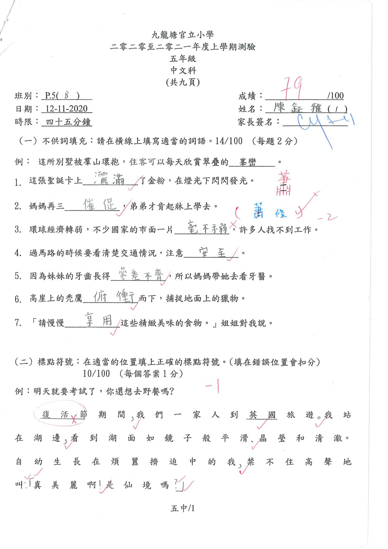 小五 中文 馬頭涌官立小學(紅磡灣)