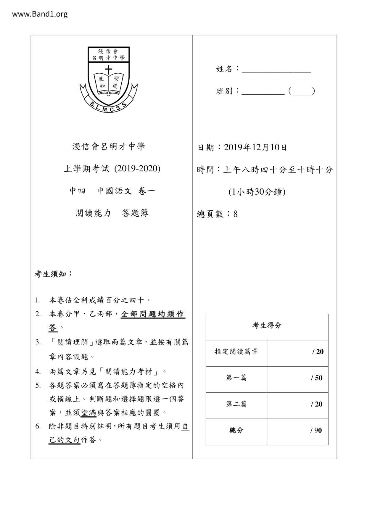 中六 中文 博愛醫院歷屆總理聯誼會梁省德中學