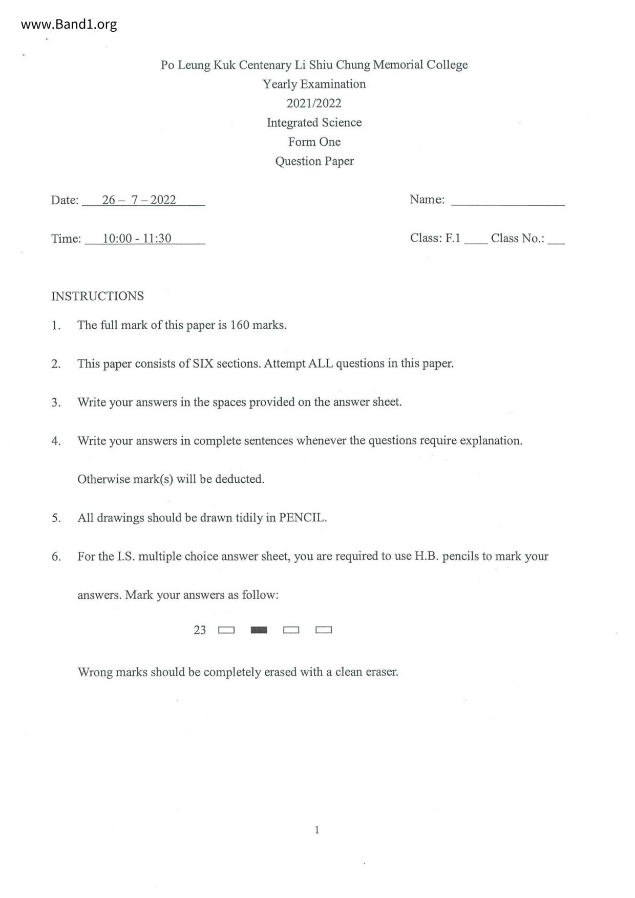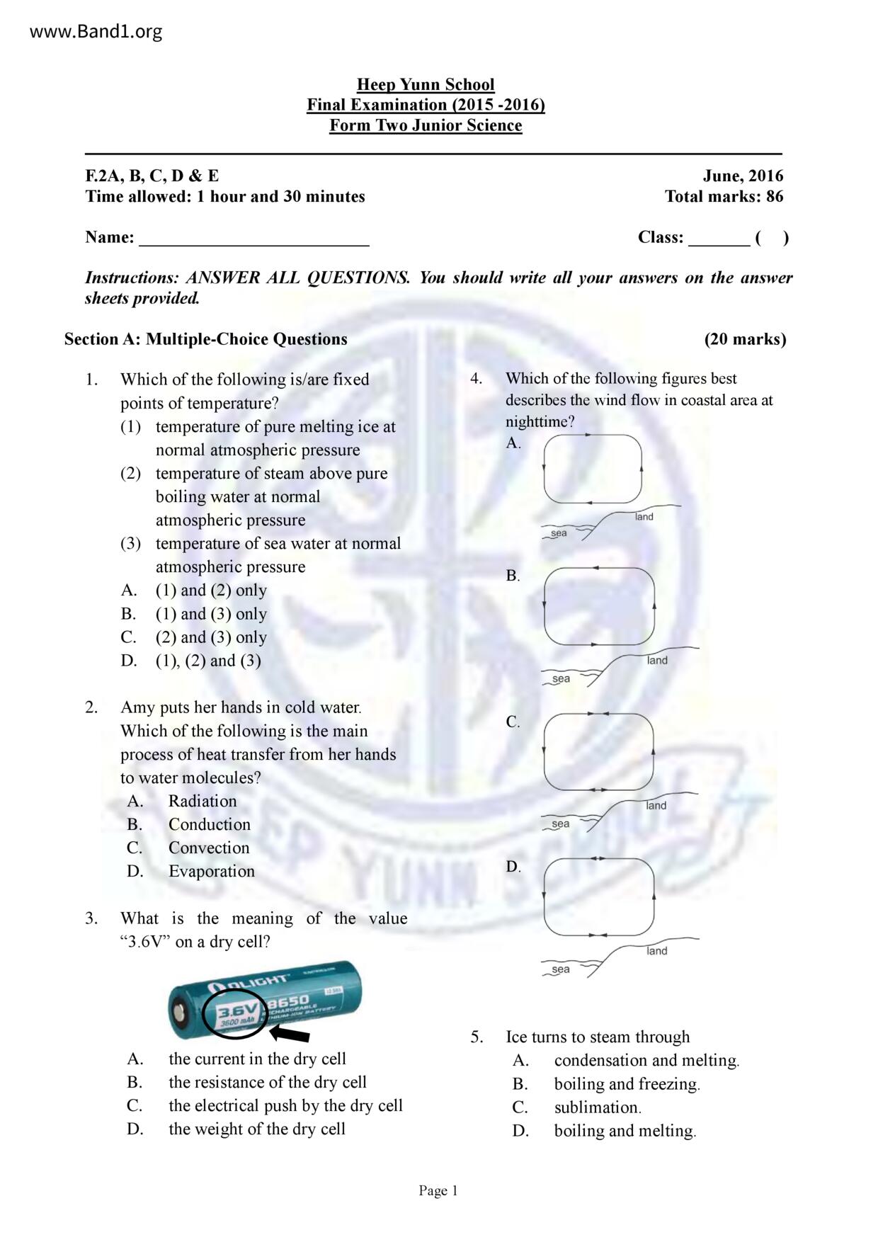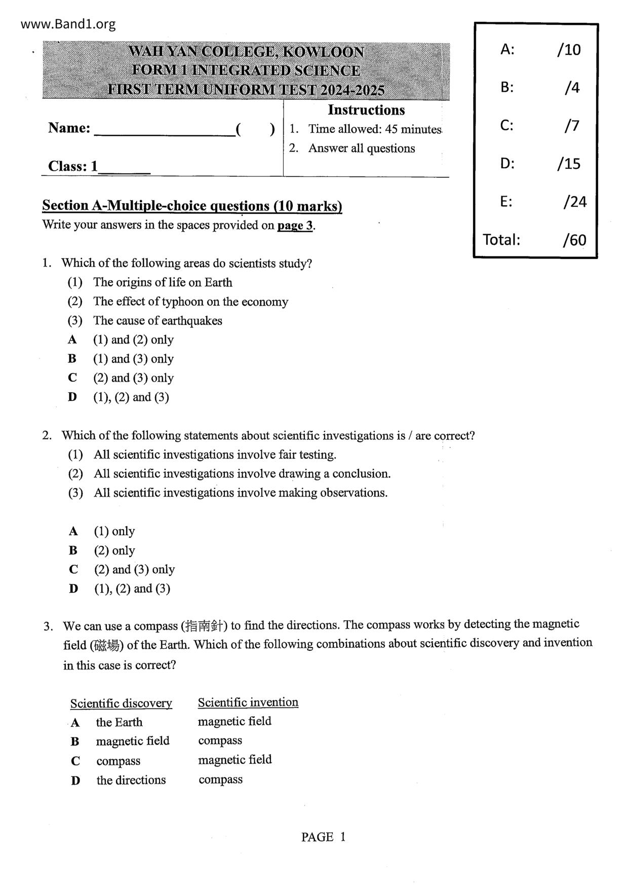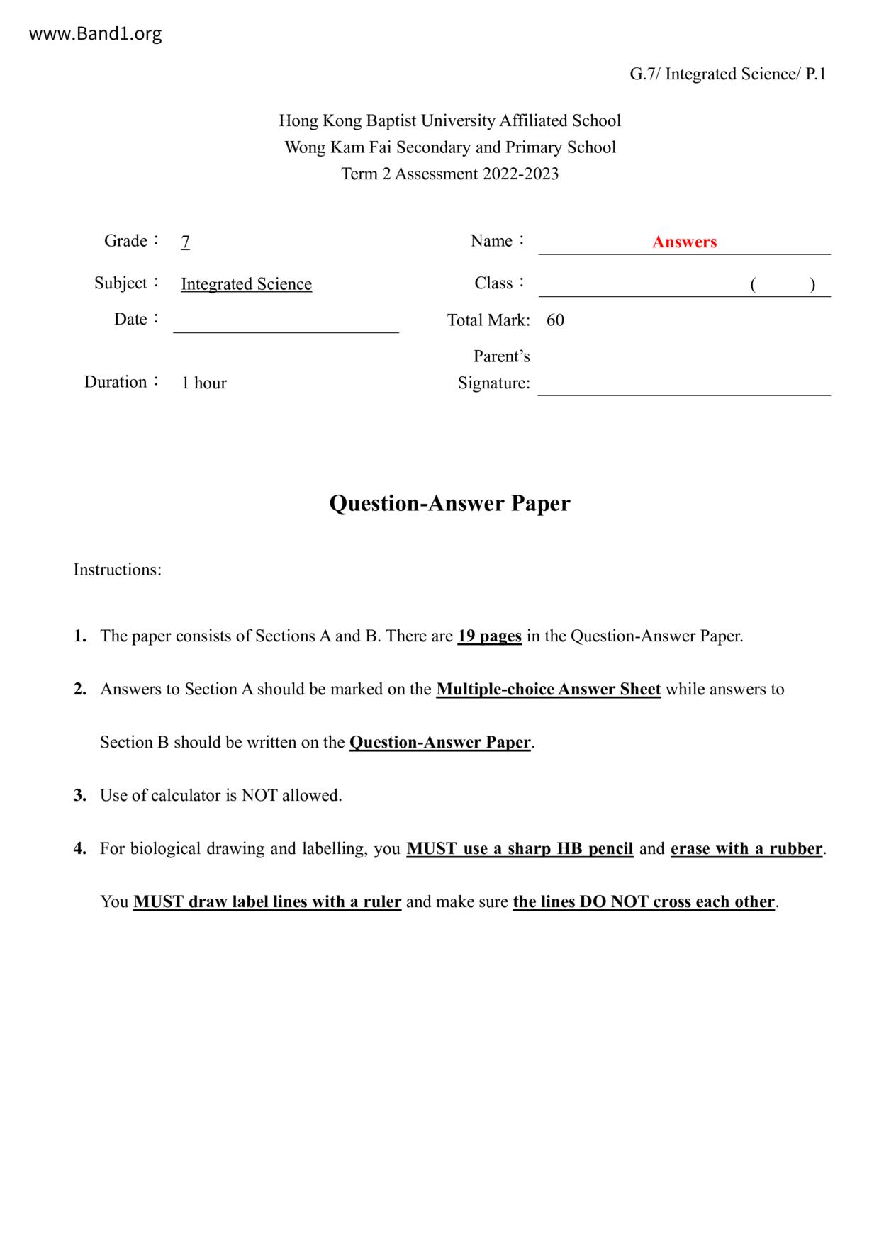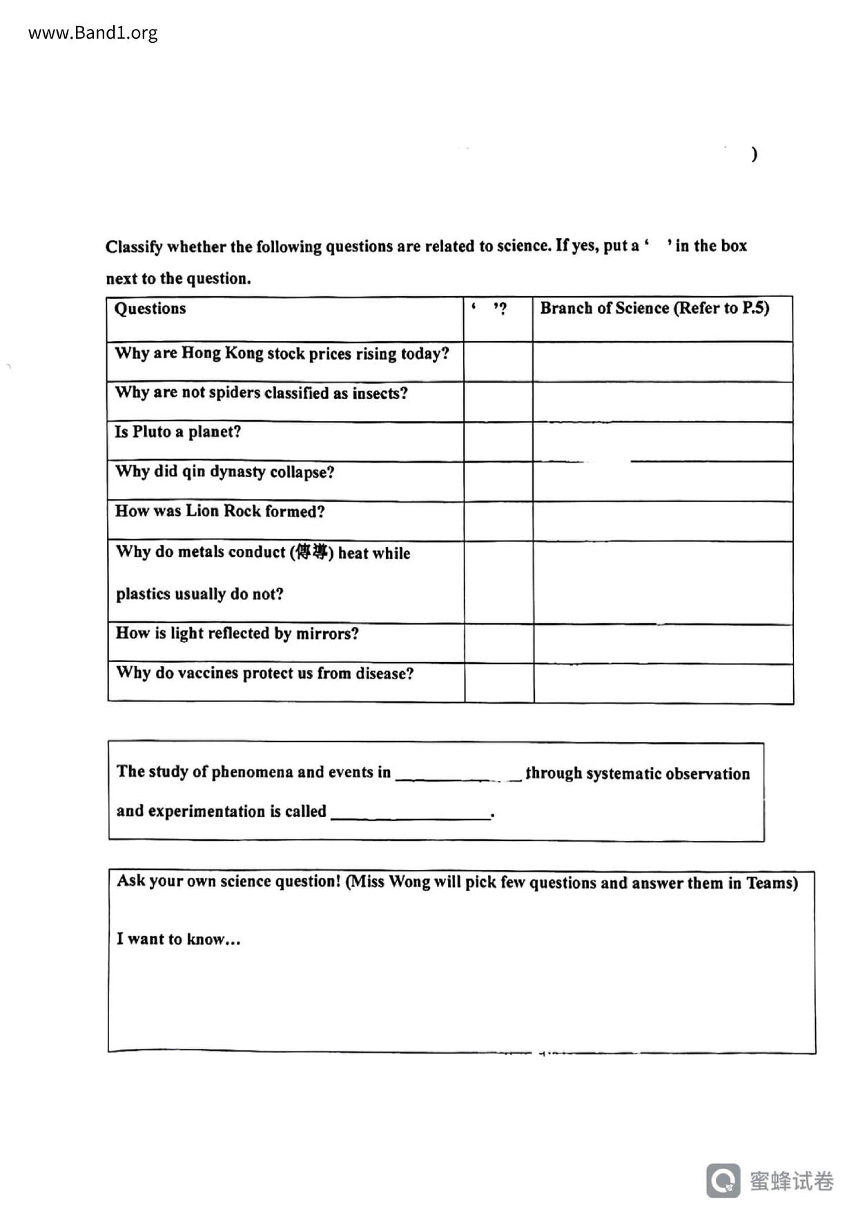 香港 中小學 科學 (HK Science) 試卷 pdf