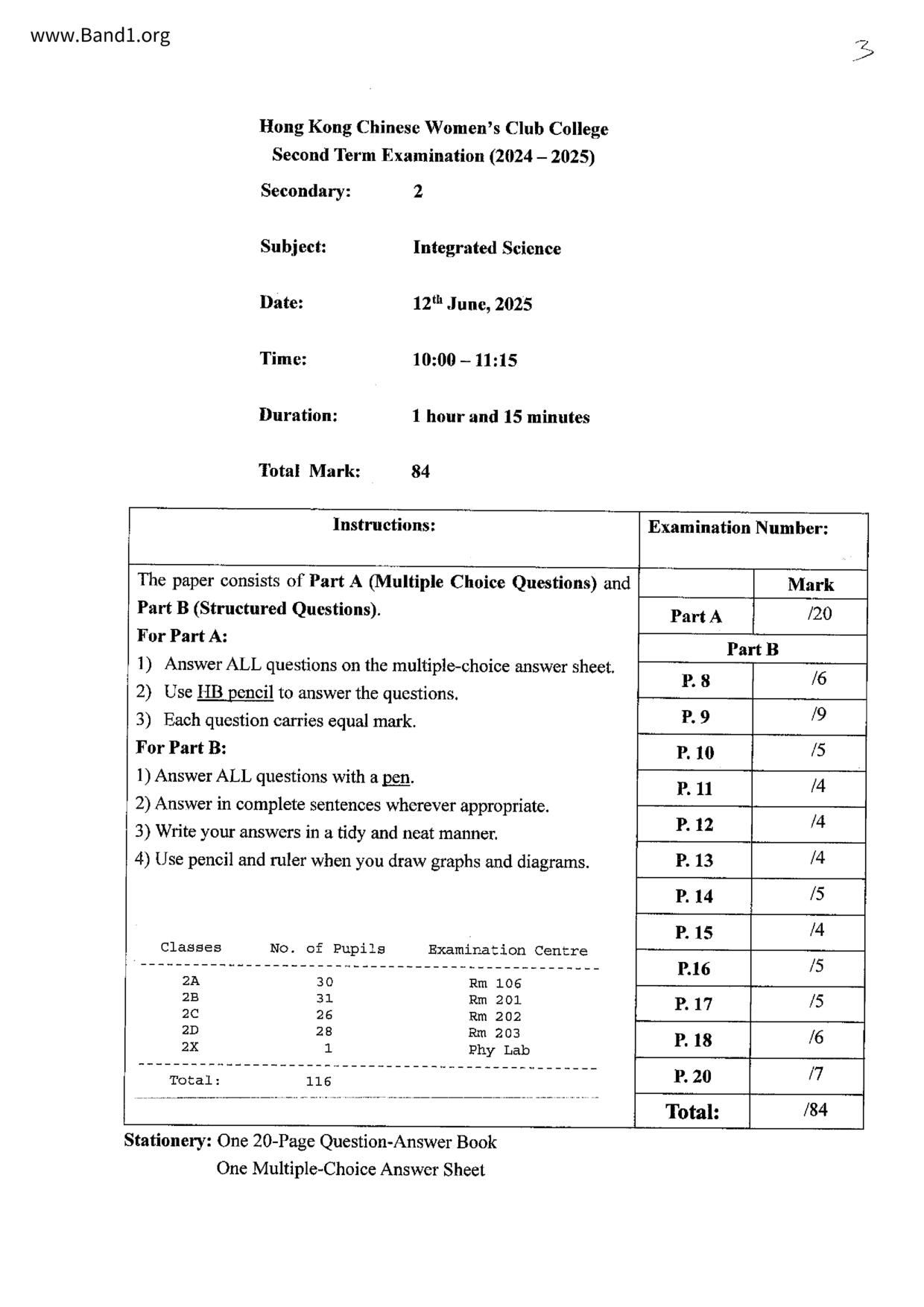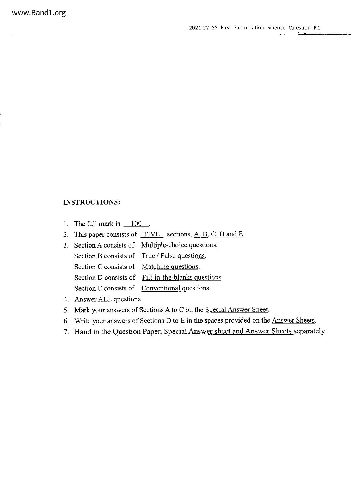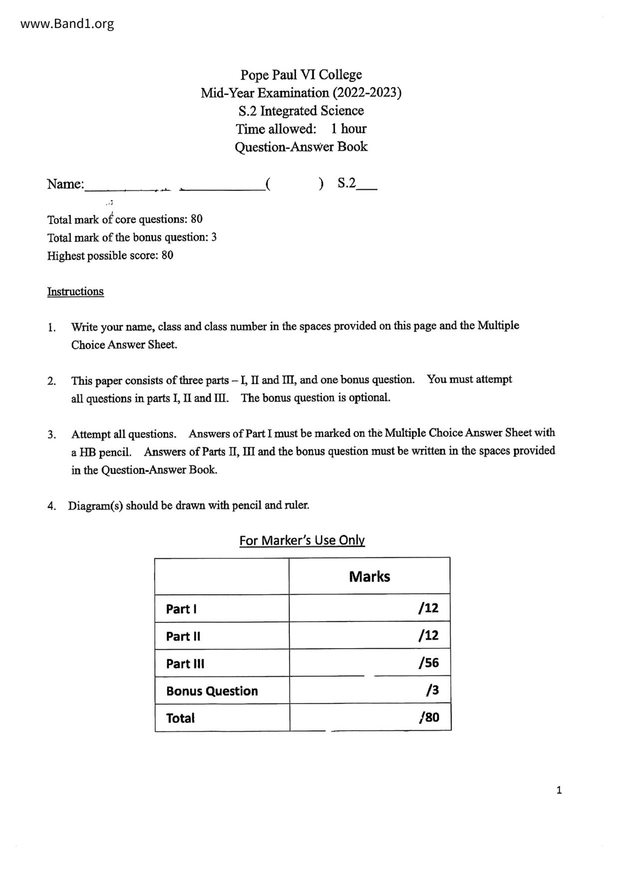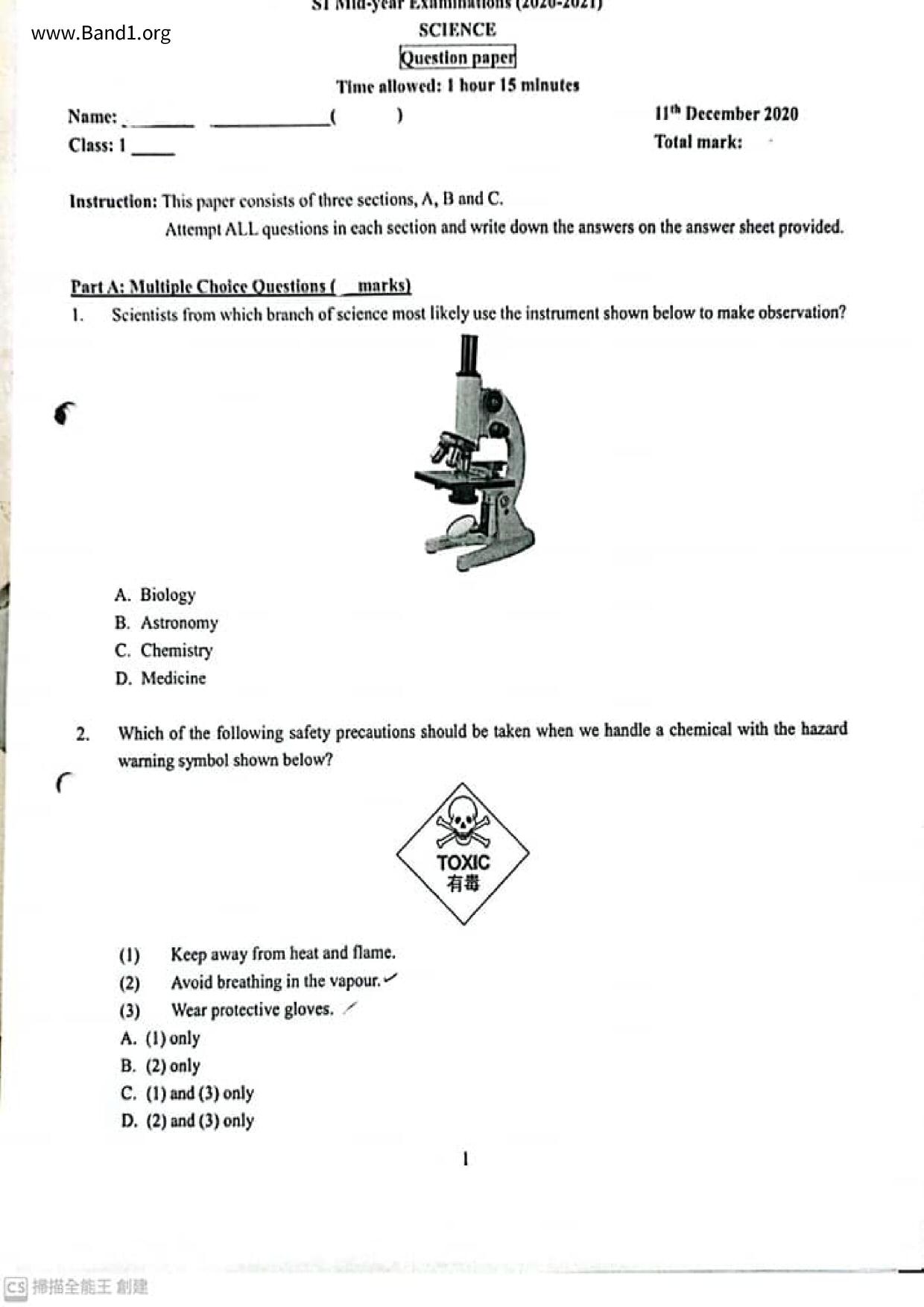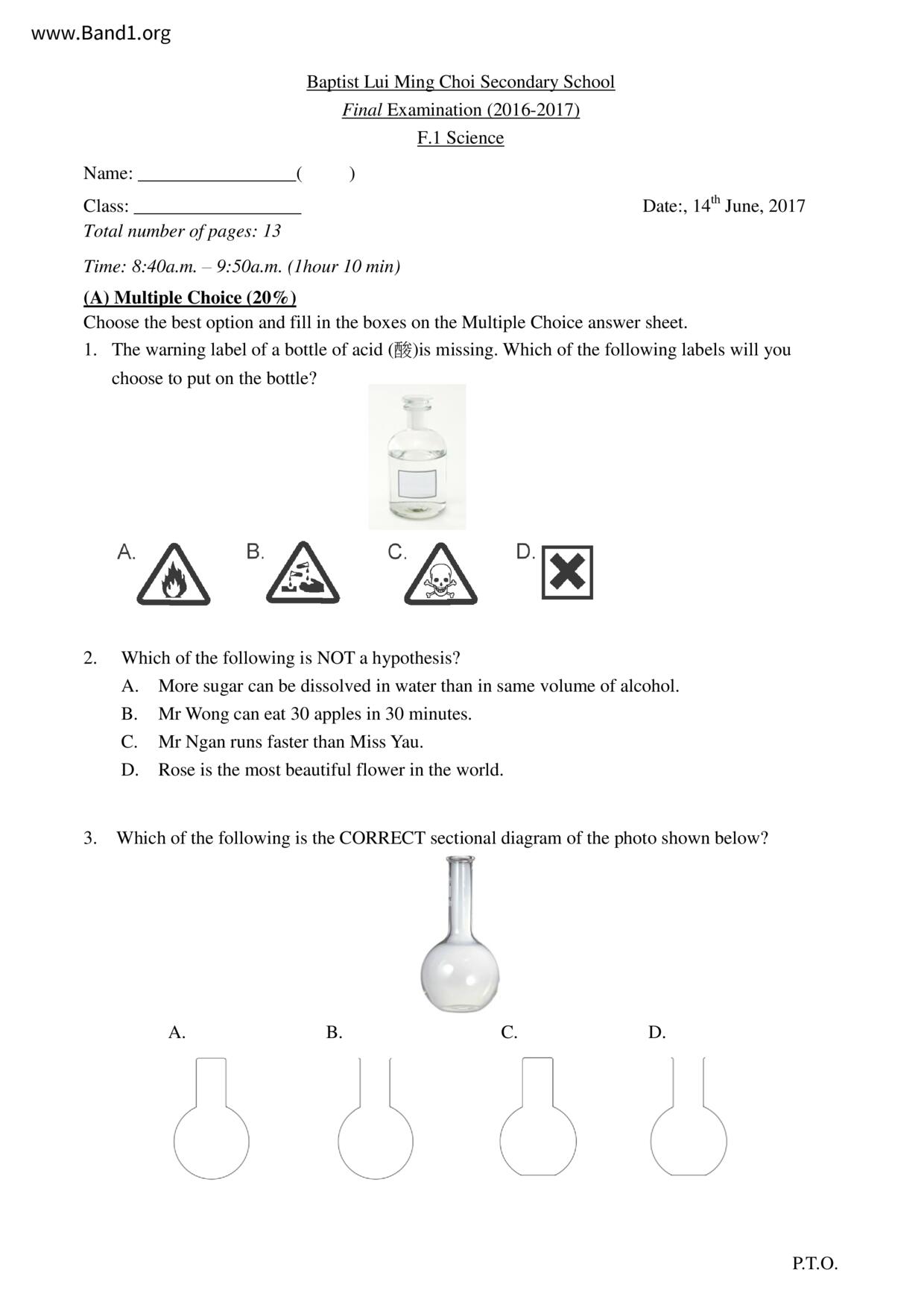 香港 中小學 科學 (HK Science) 試卷 pdf
