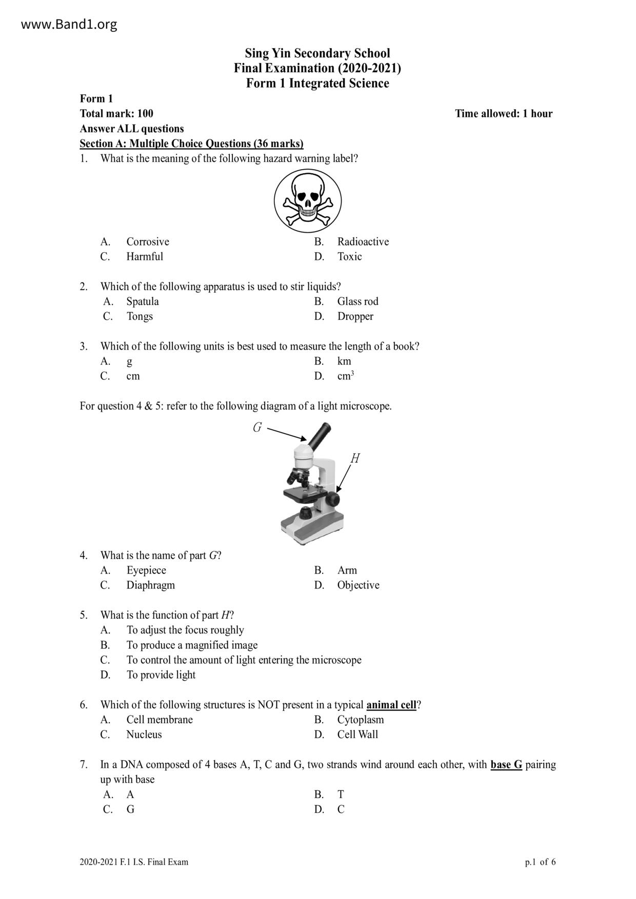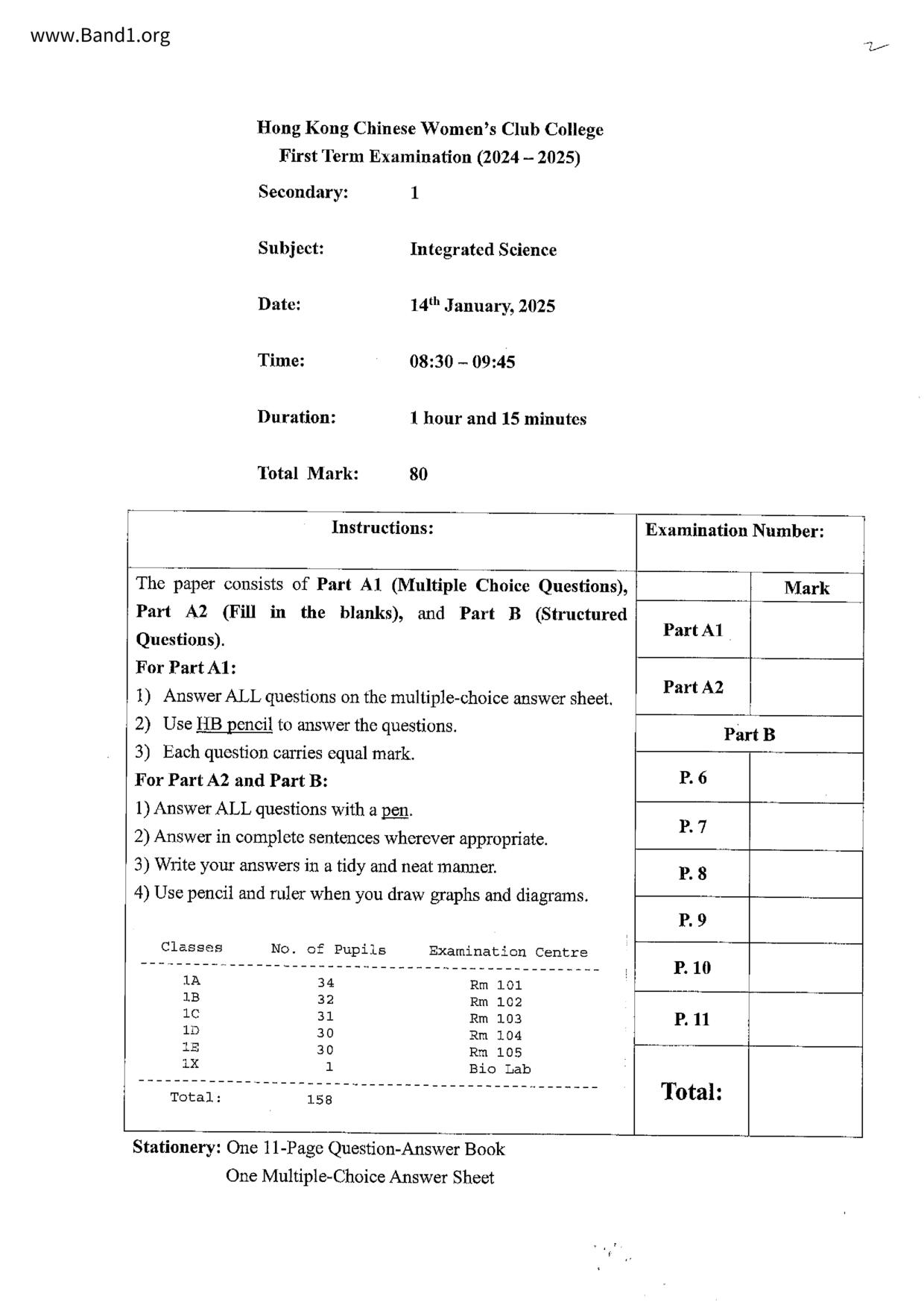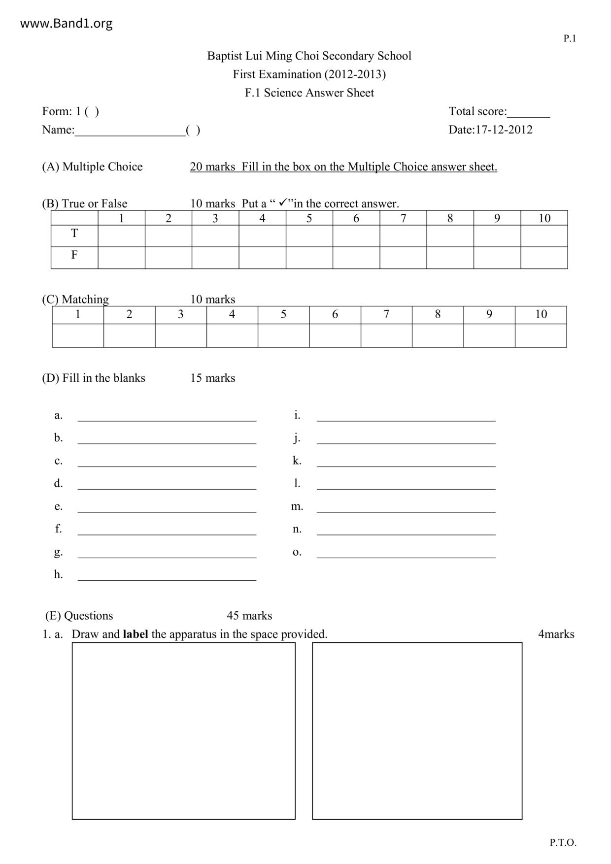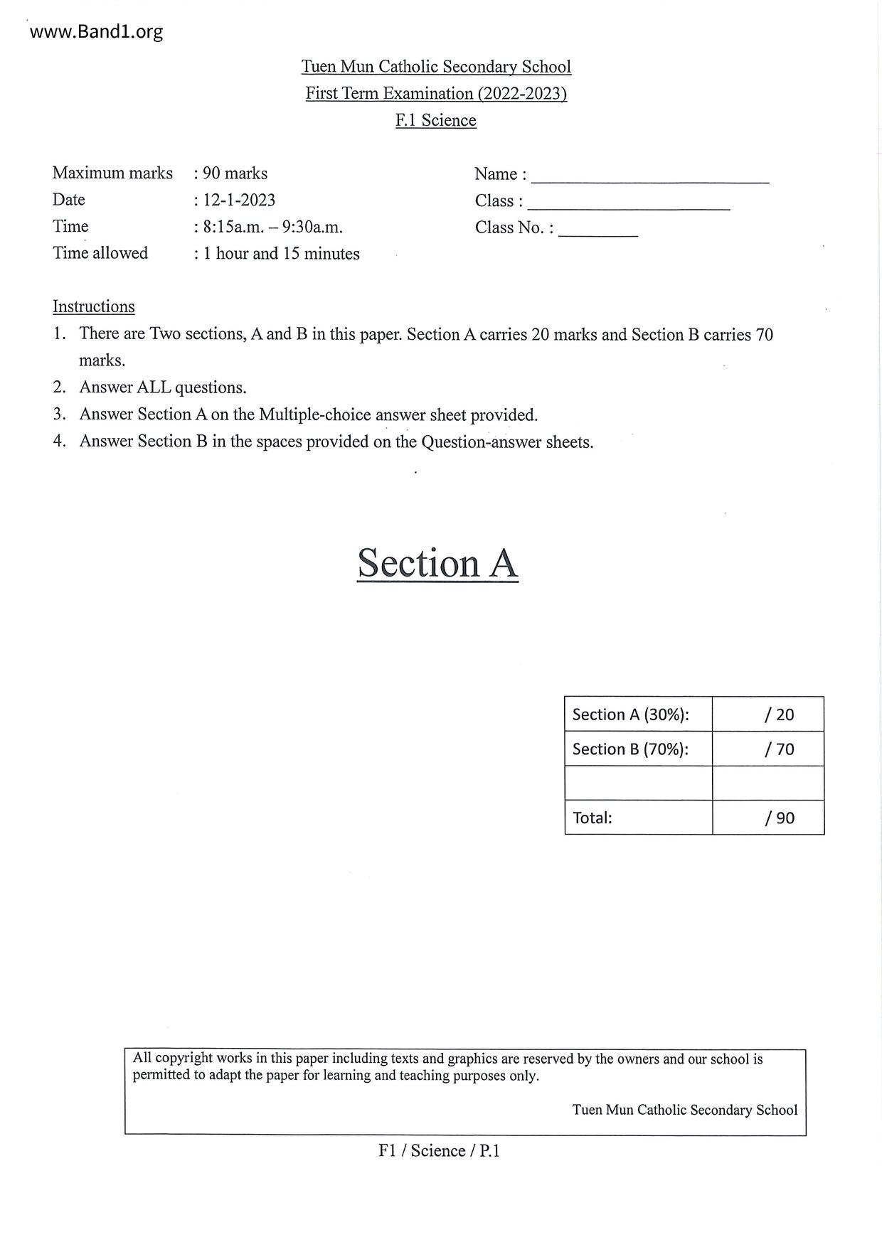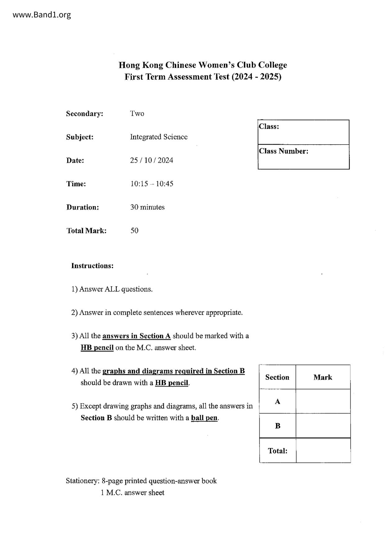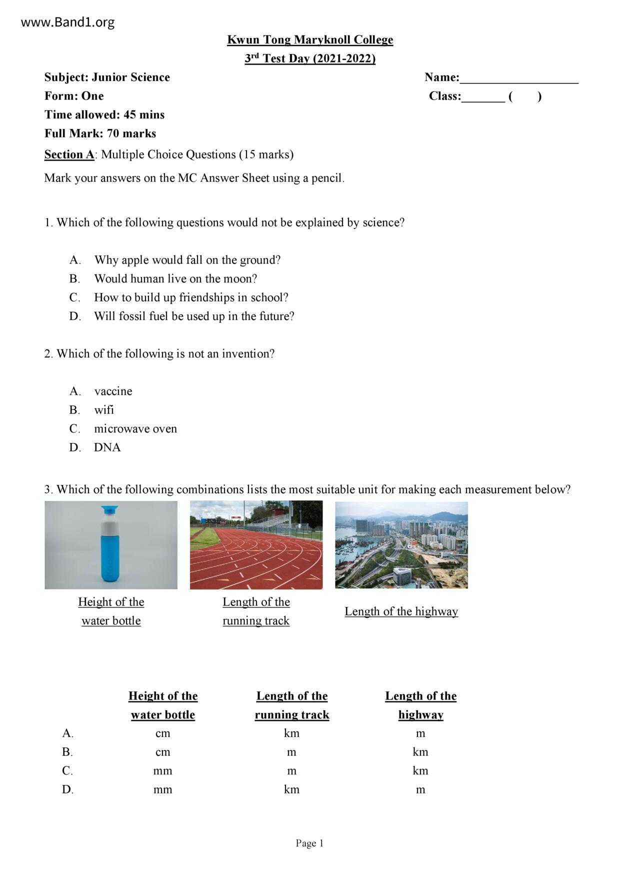 香港 中小學 科學 (HK Science) 試卷 pdf