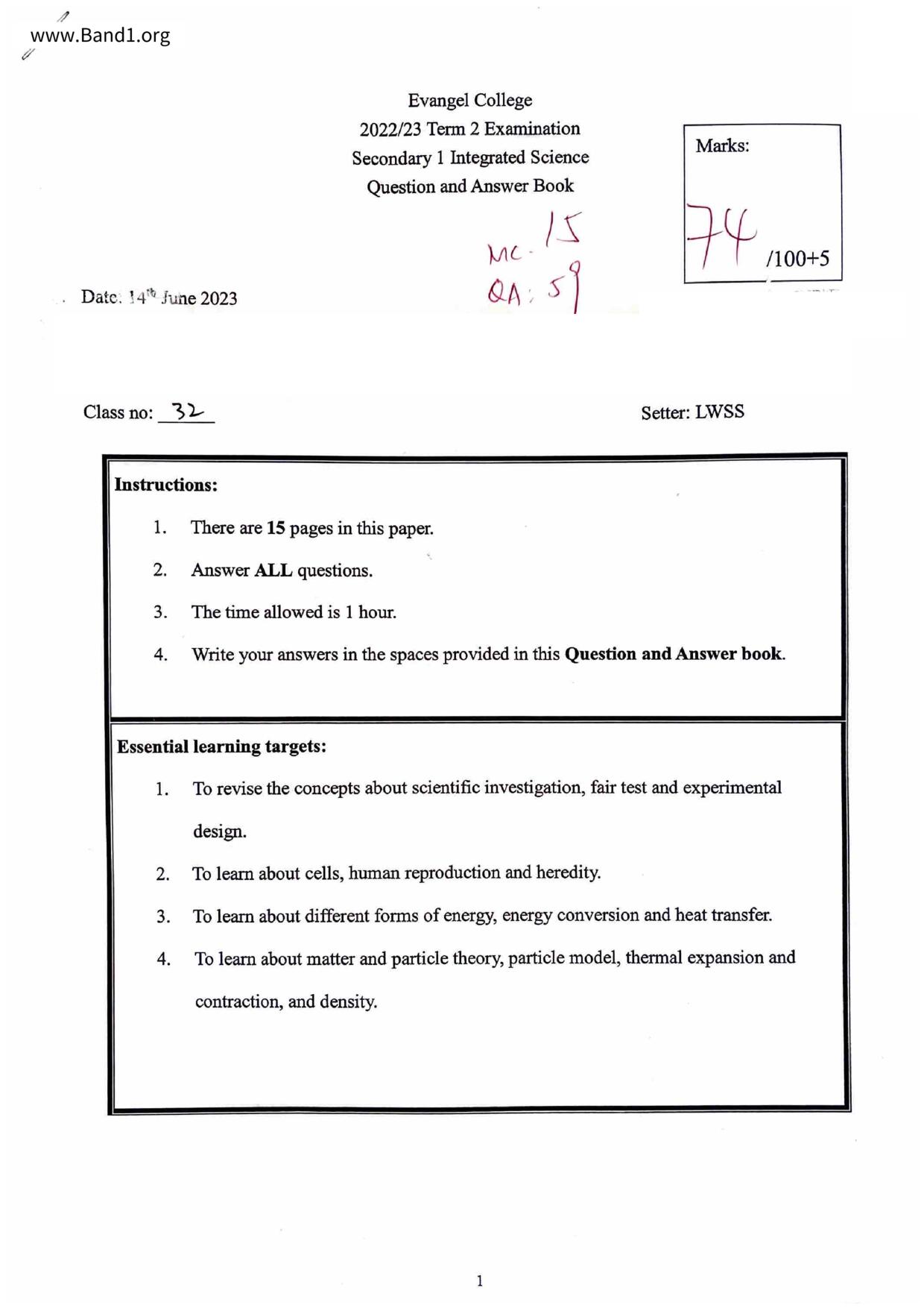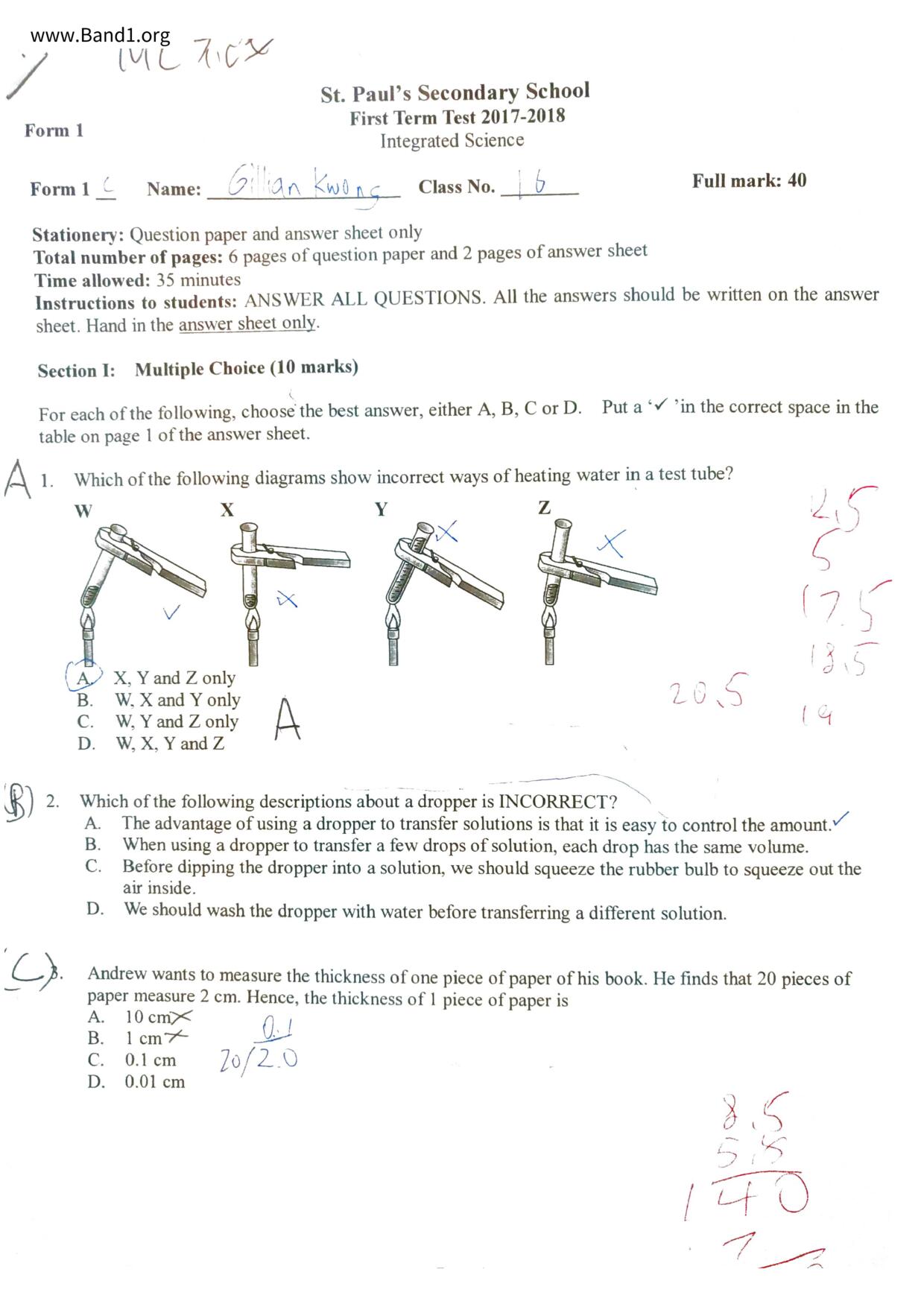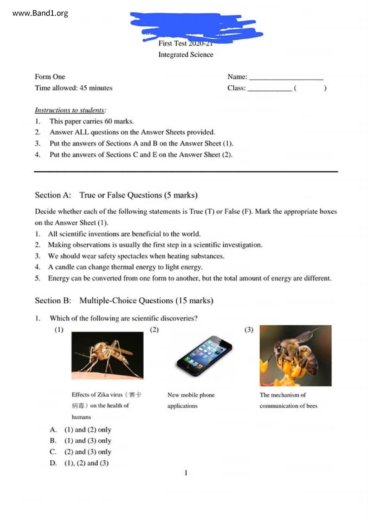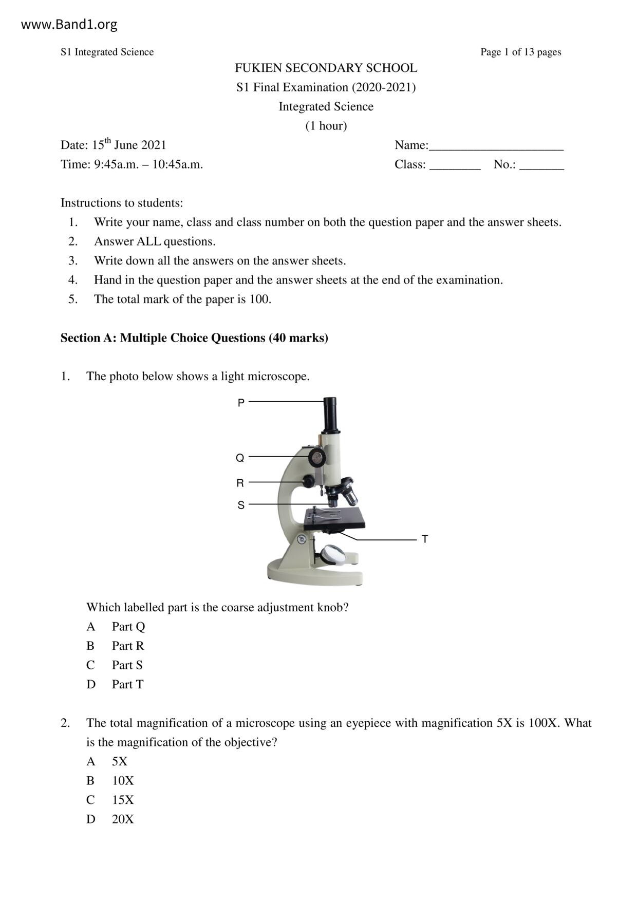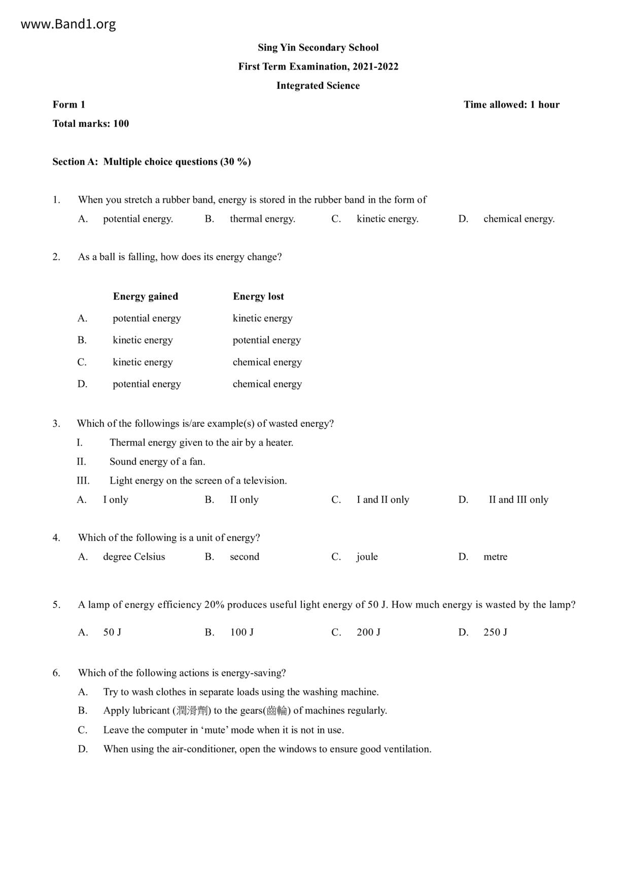 香港 中小學 科學 (HK Science) 試卷 pdf