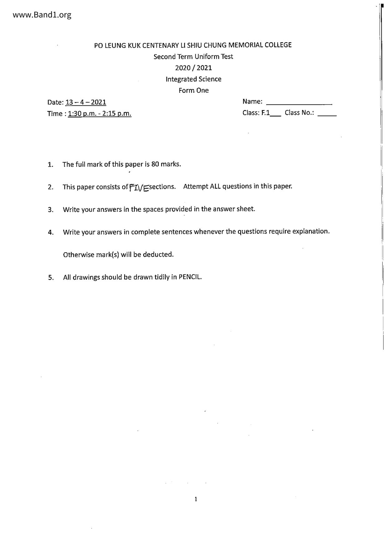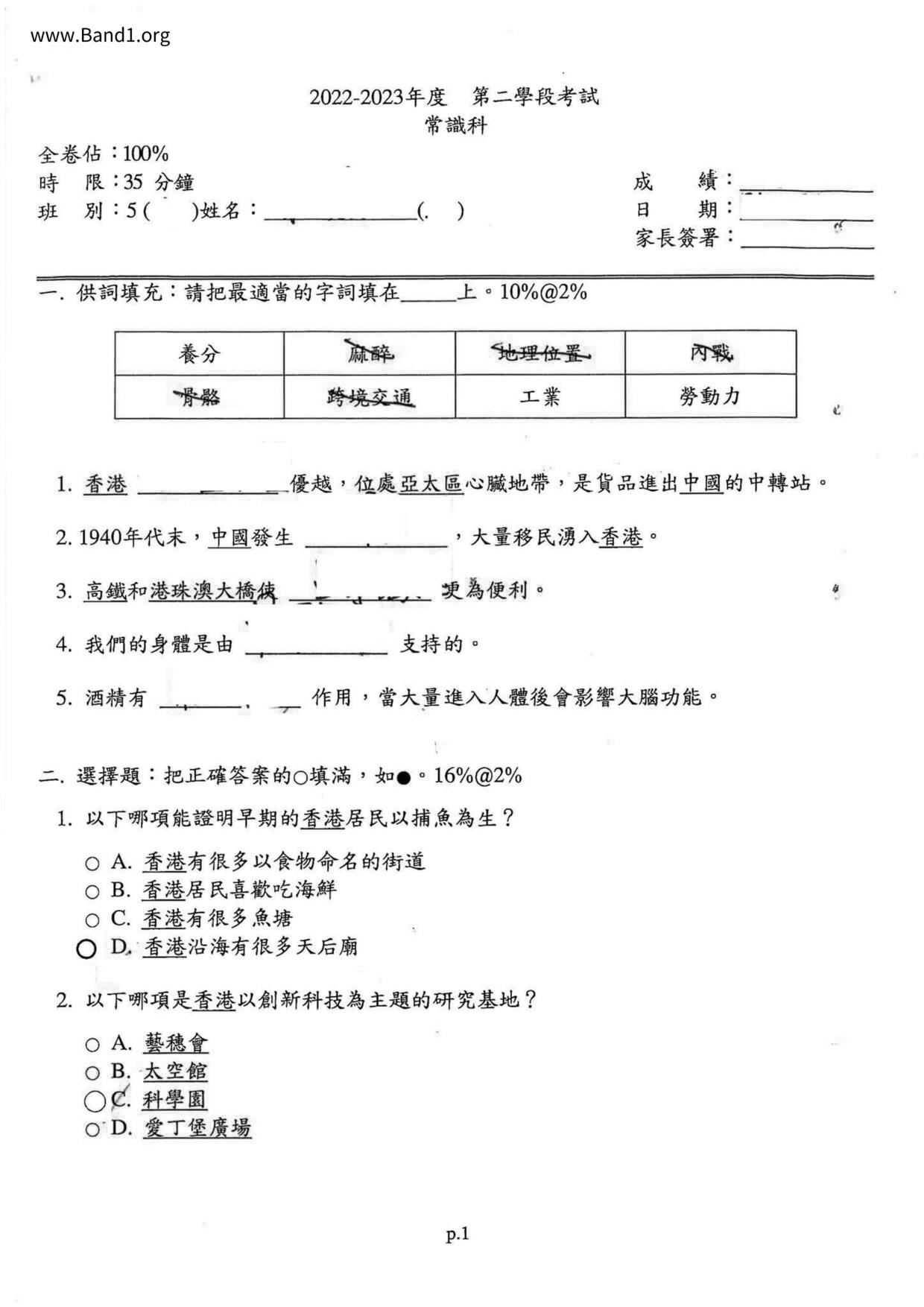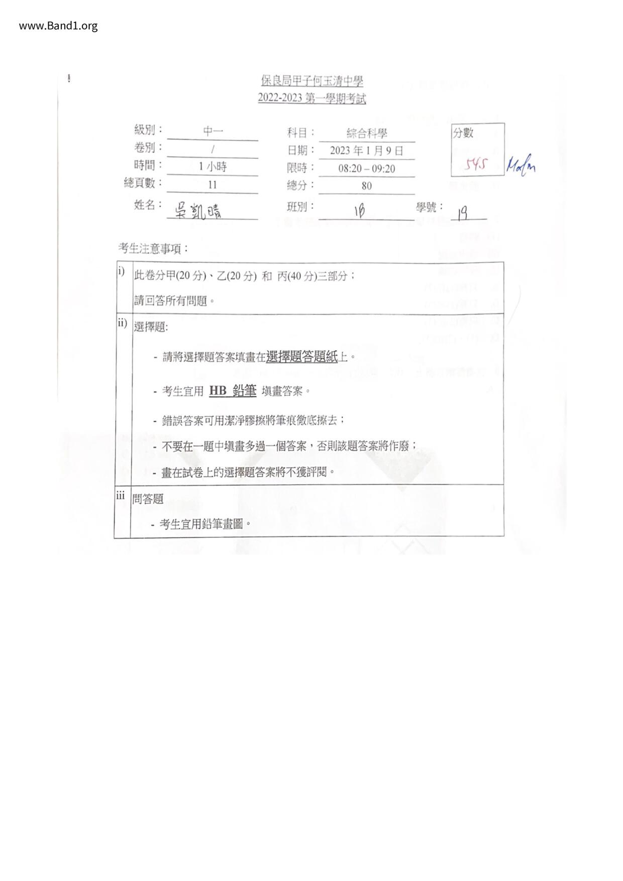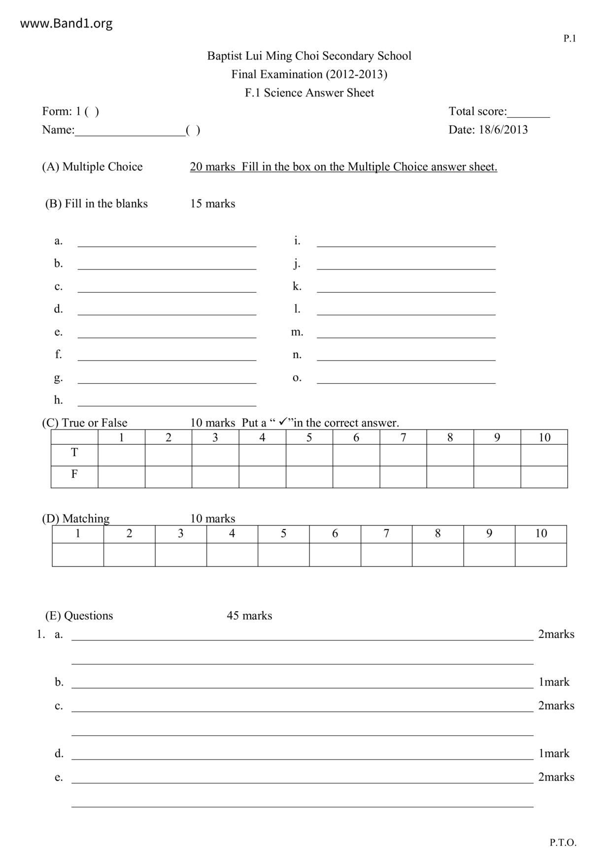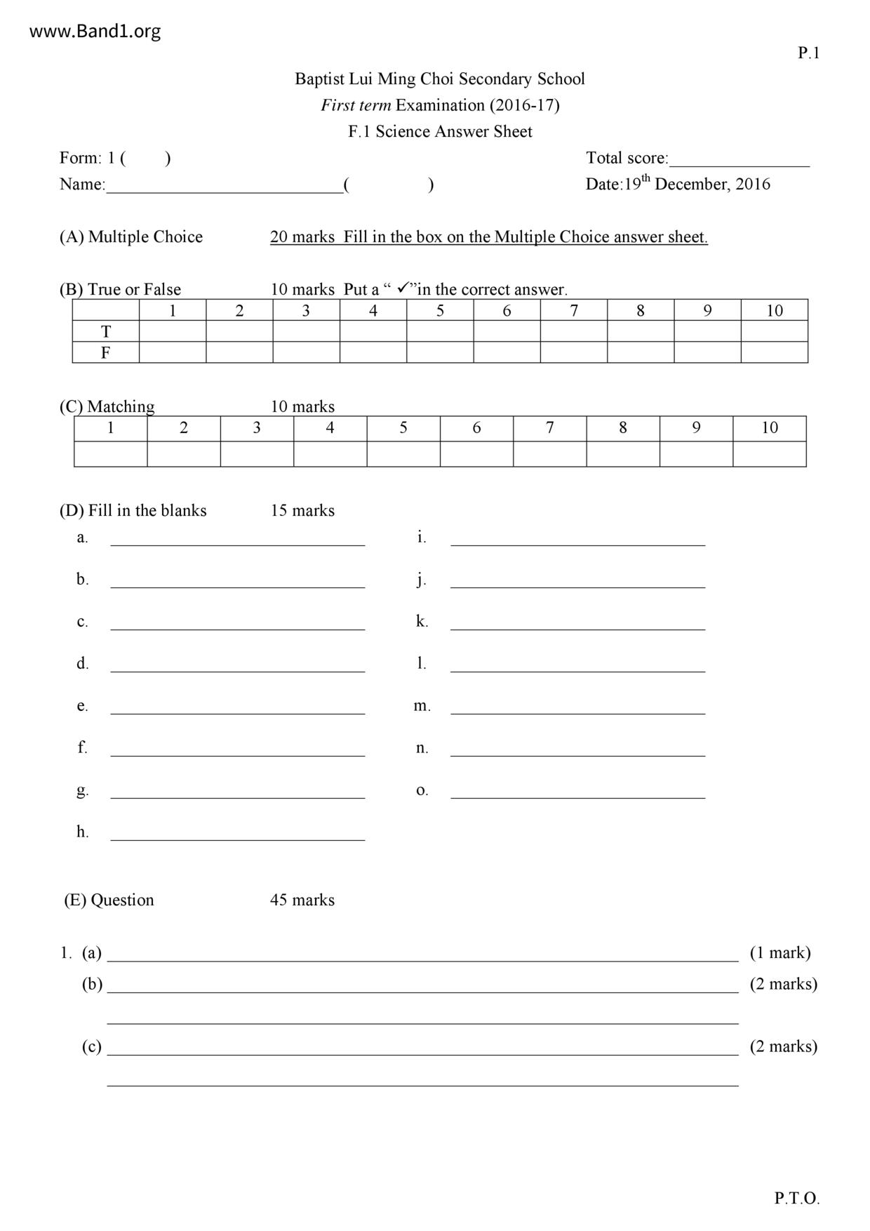 香港 中小學 科學 (HK Science) 試卷 pdf
