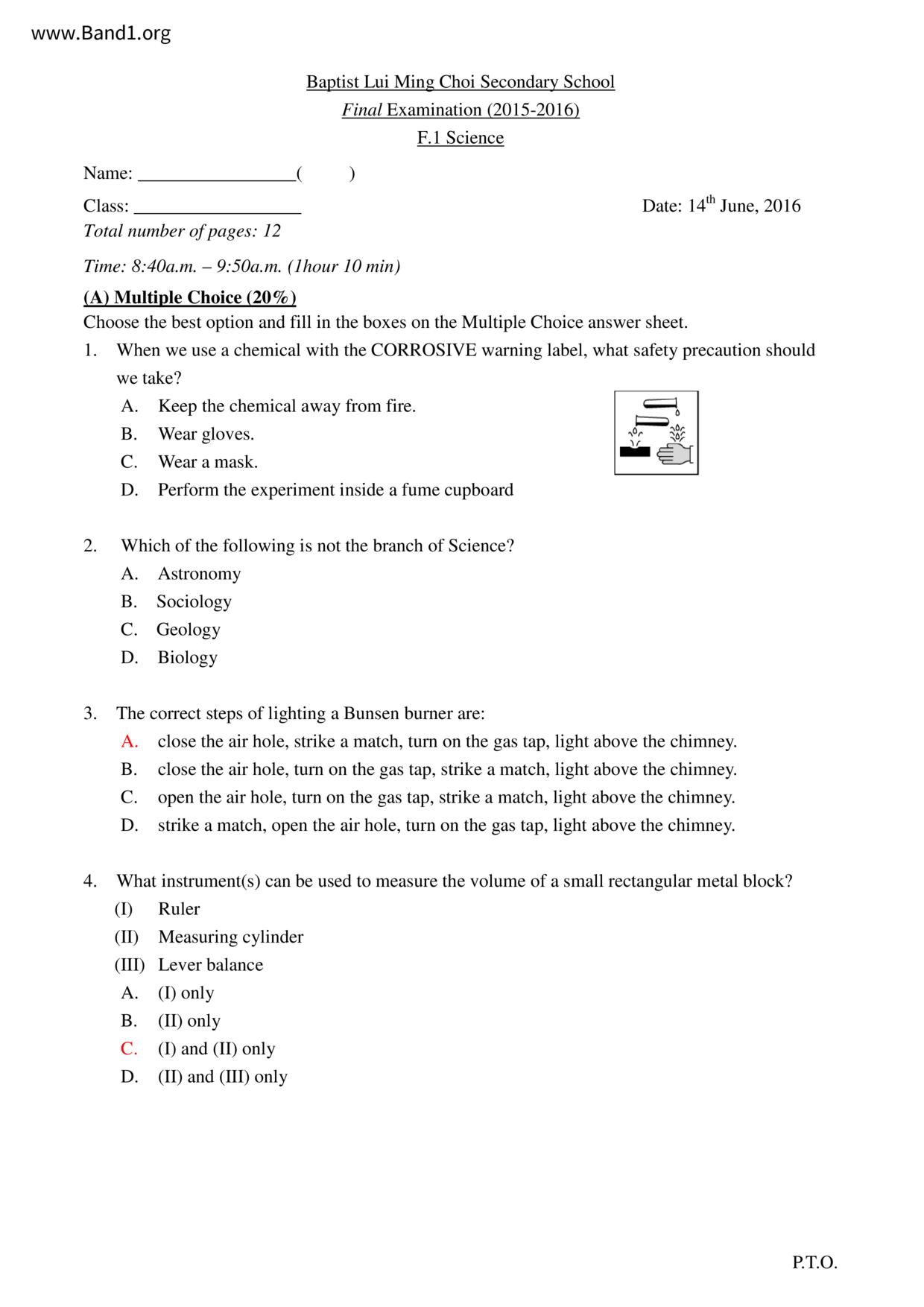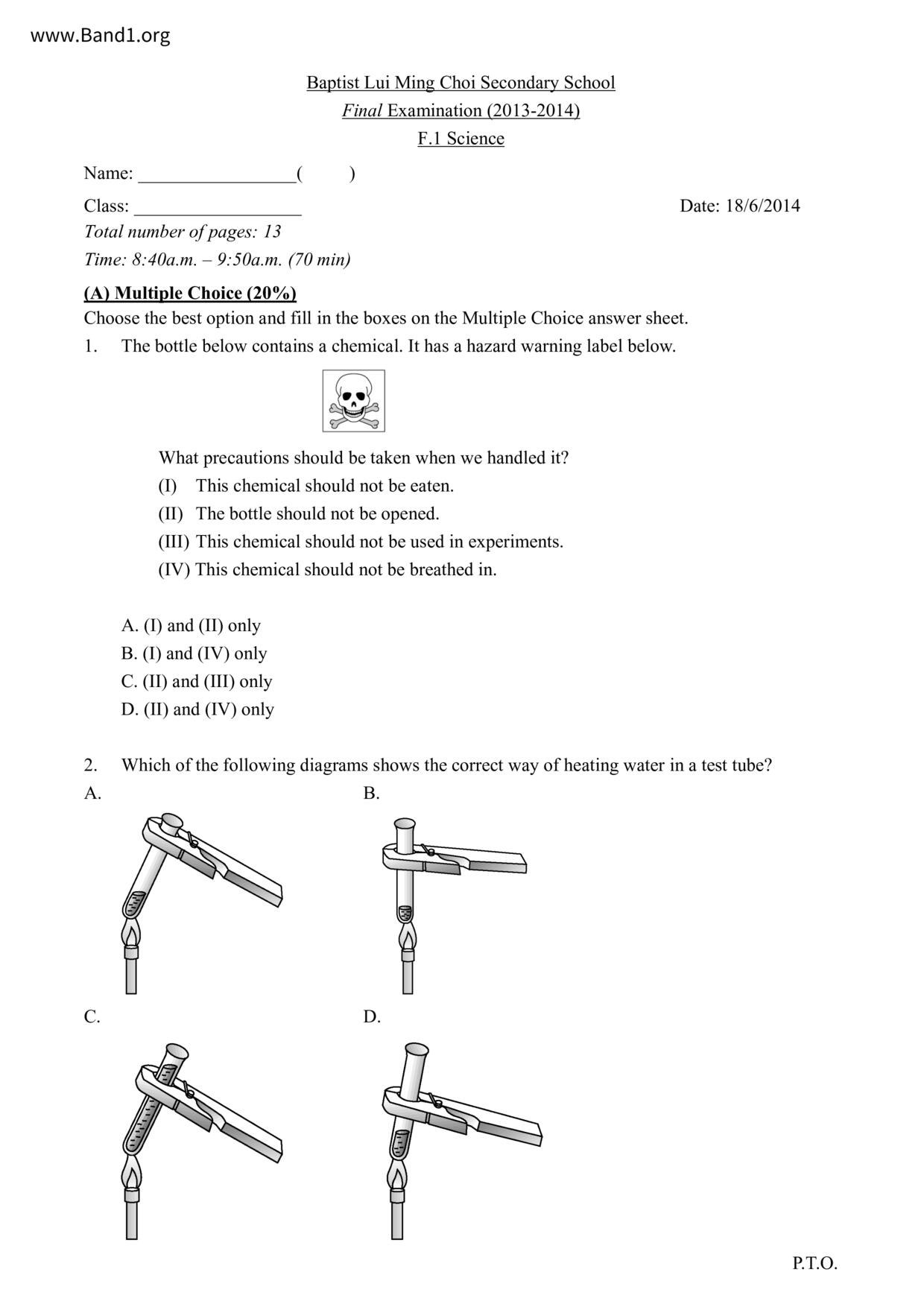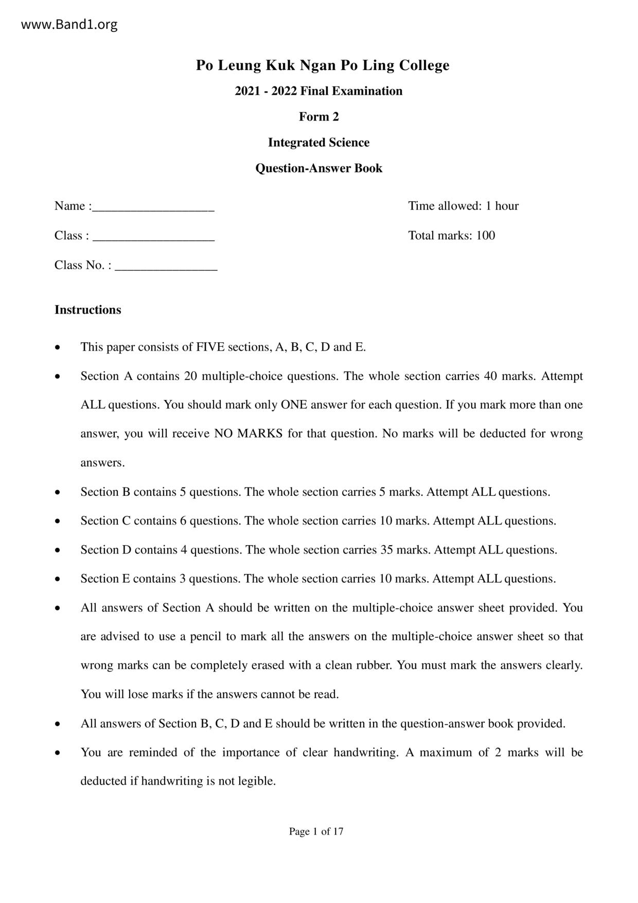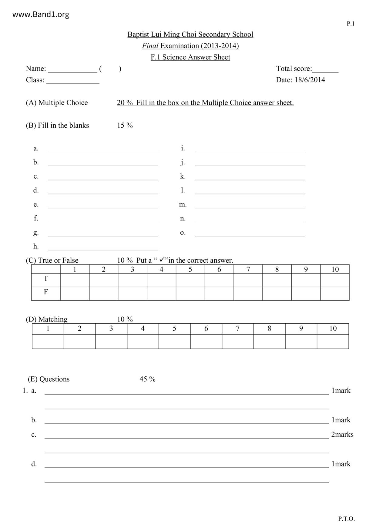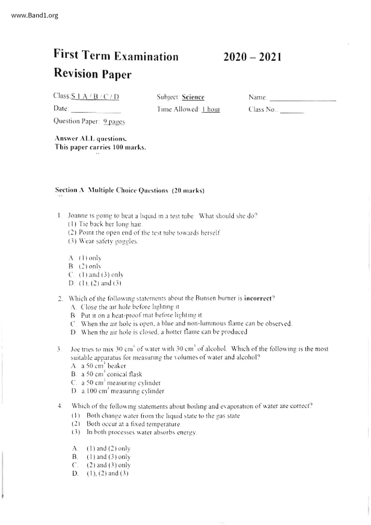 香港 中小學 科學 (HK Science) 試卷 pdf