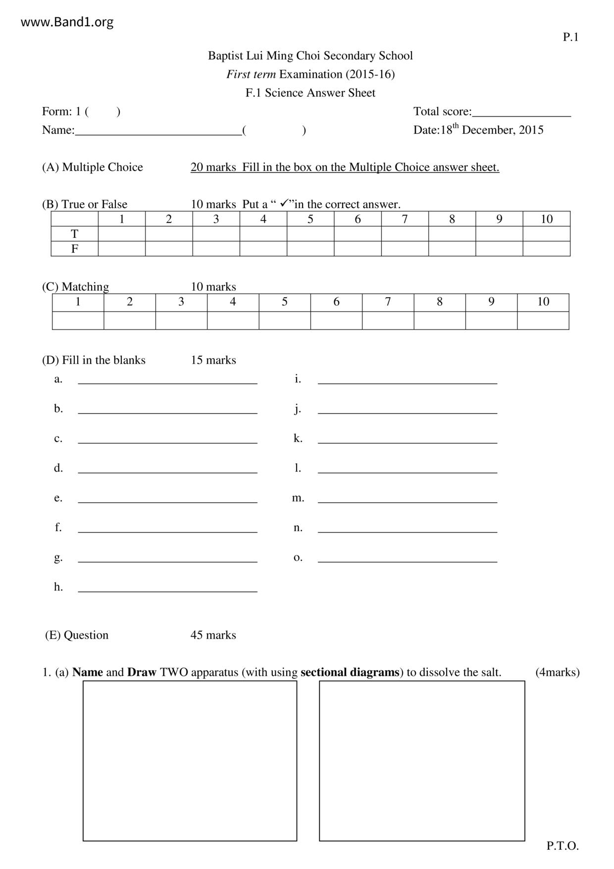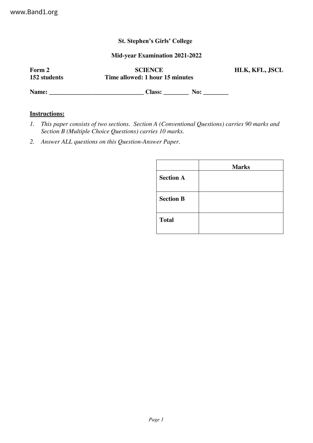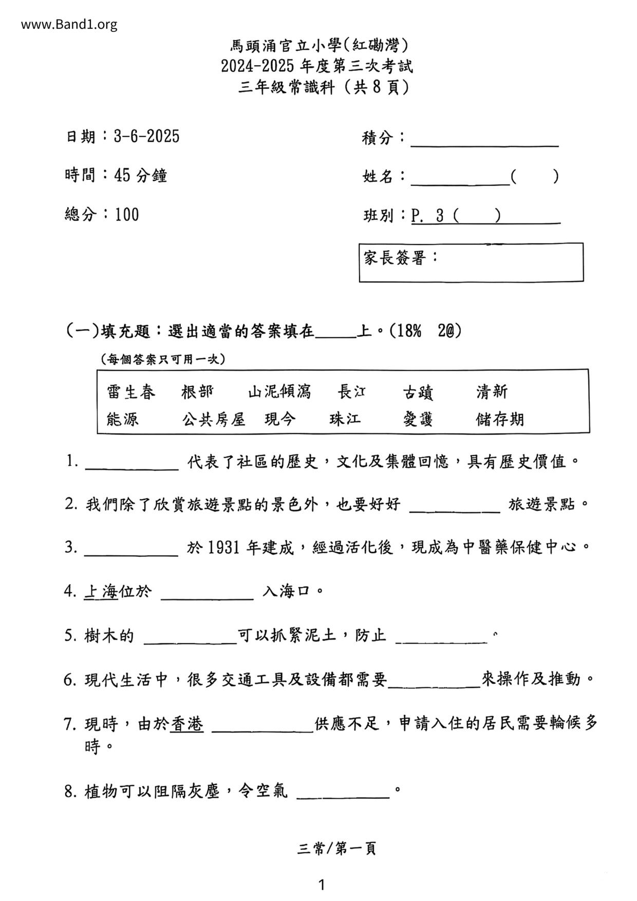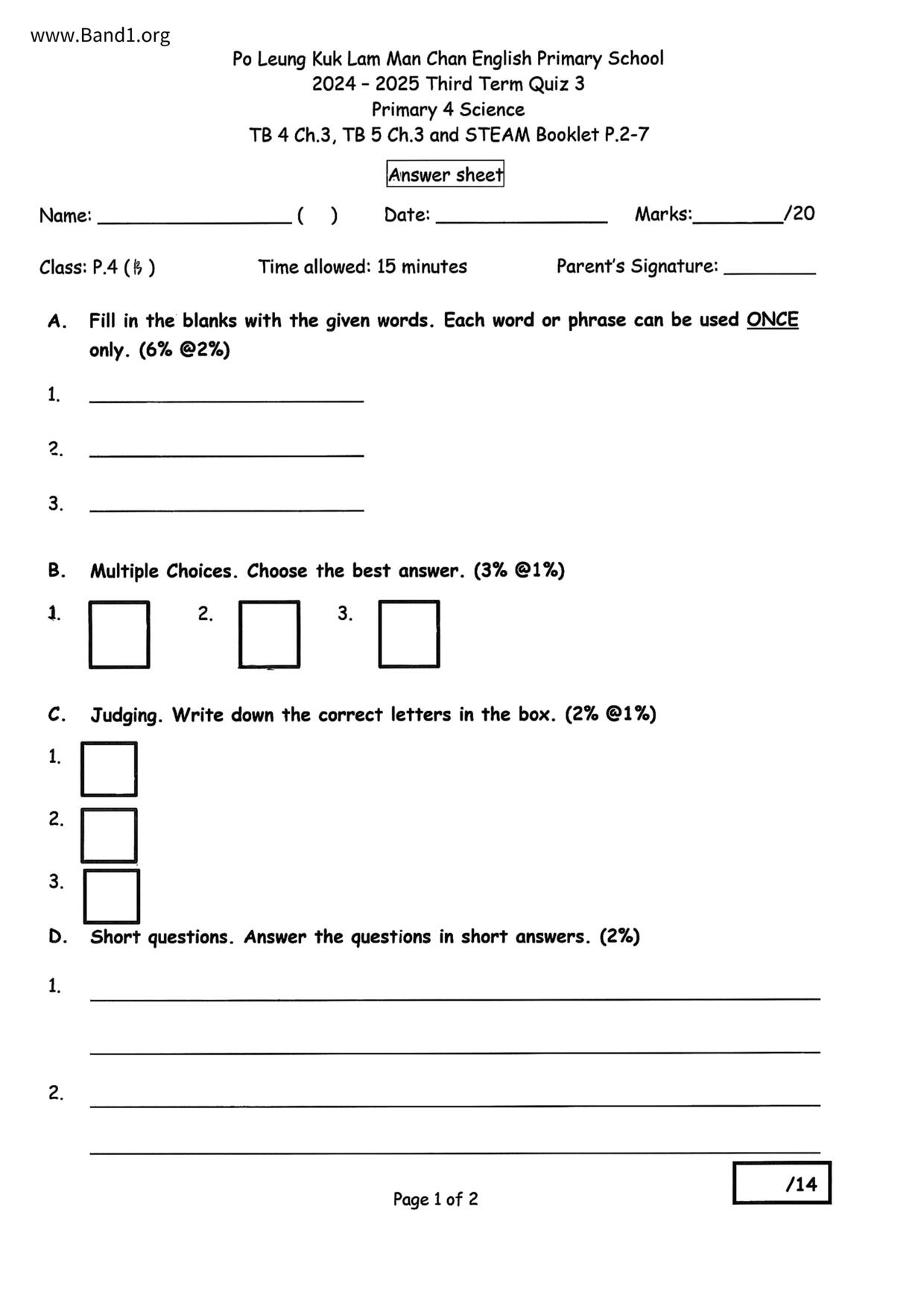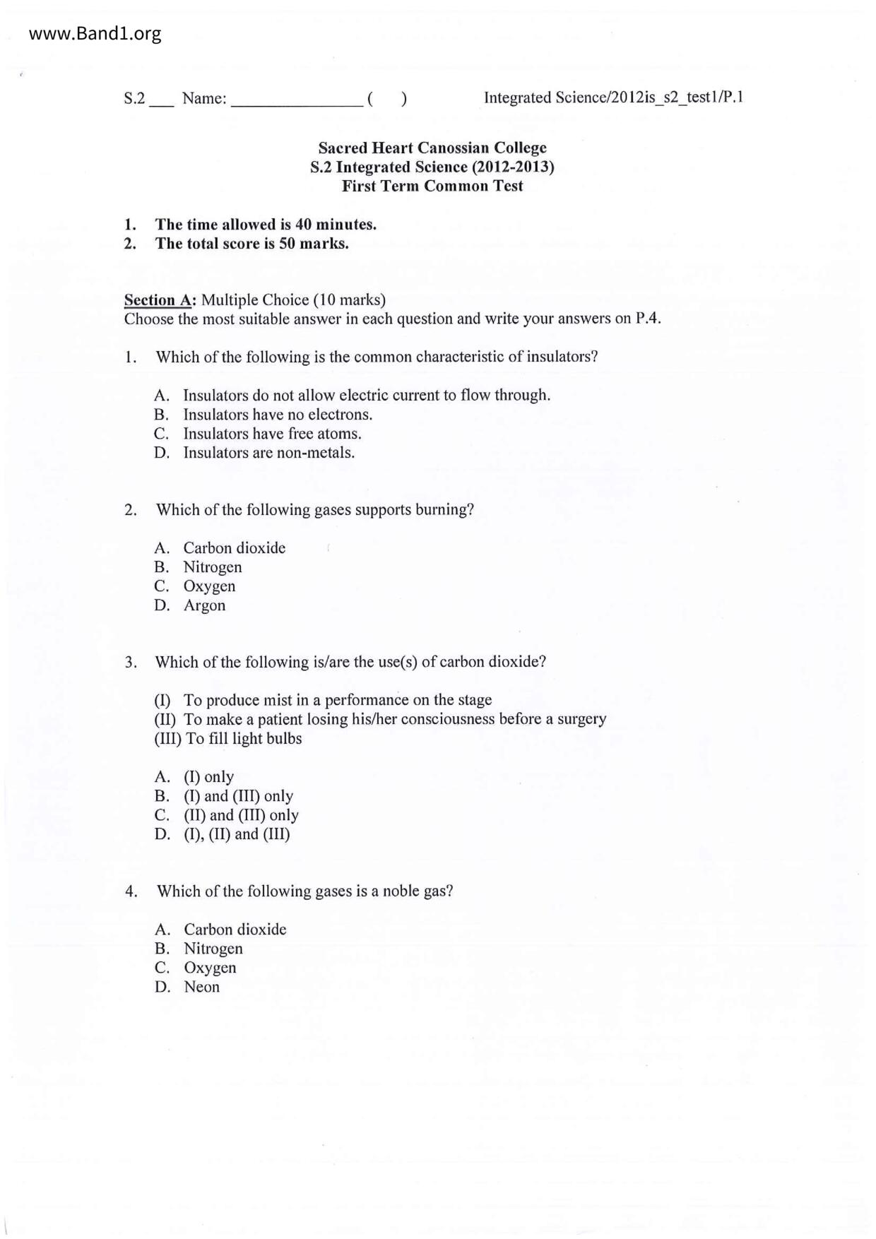香港 中小學 科學 (HK Science) 試卷 pdf