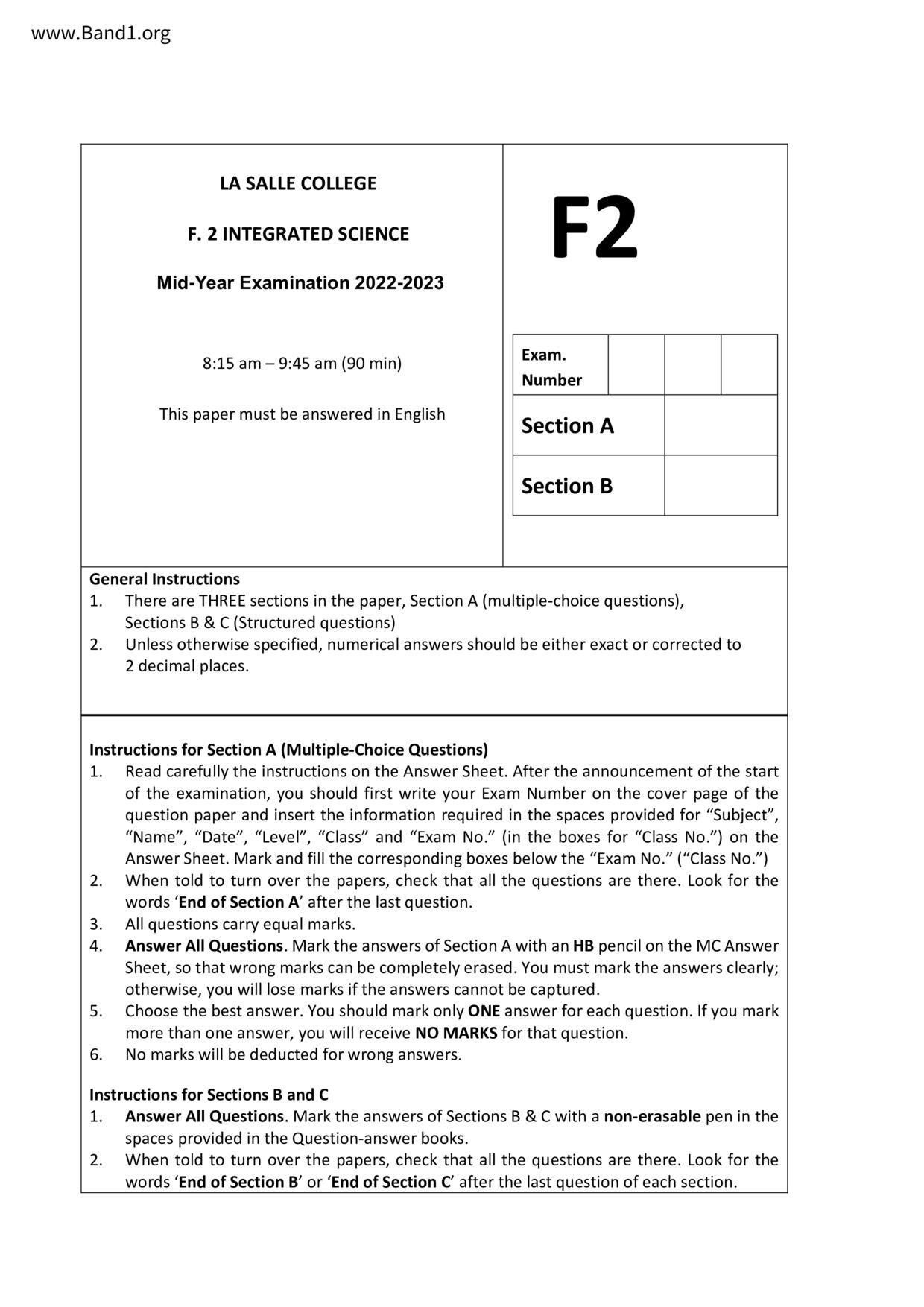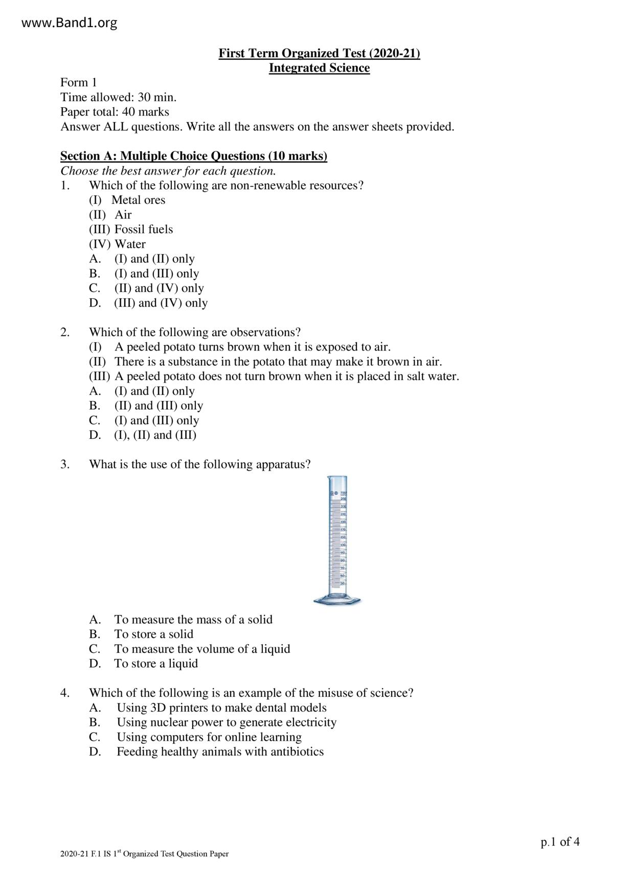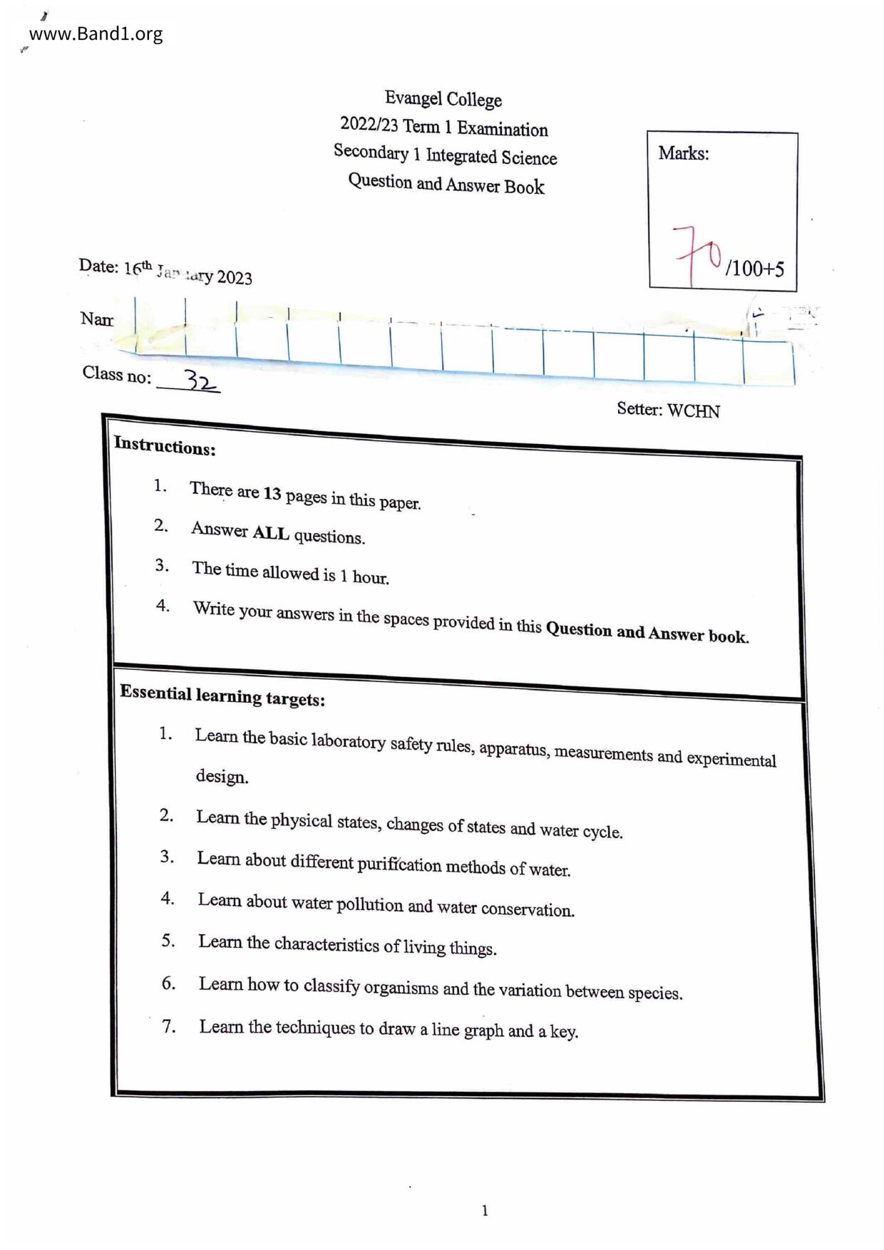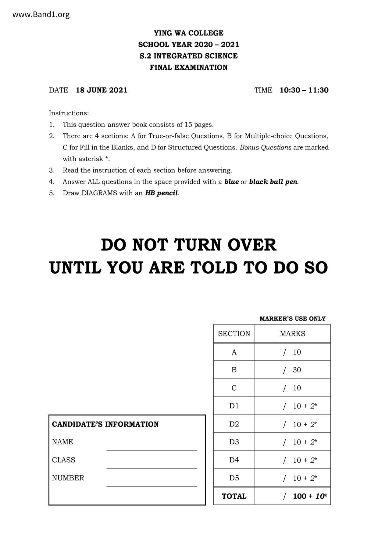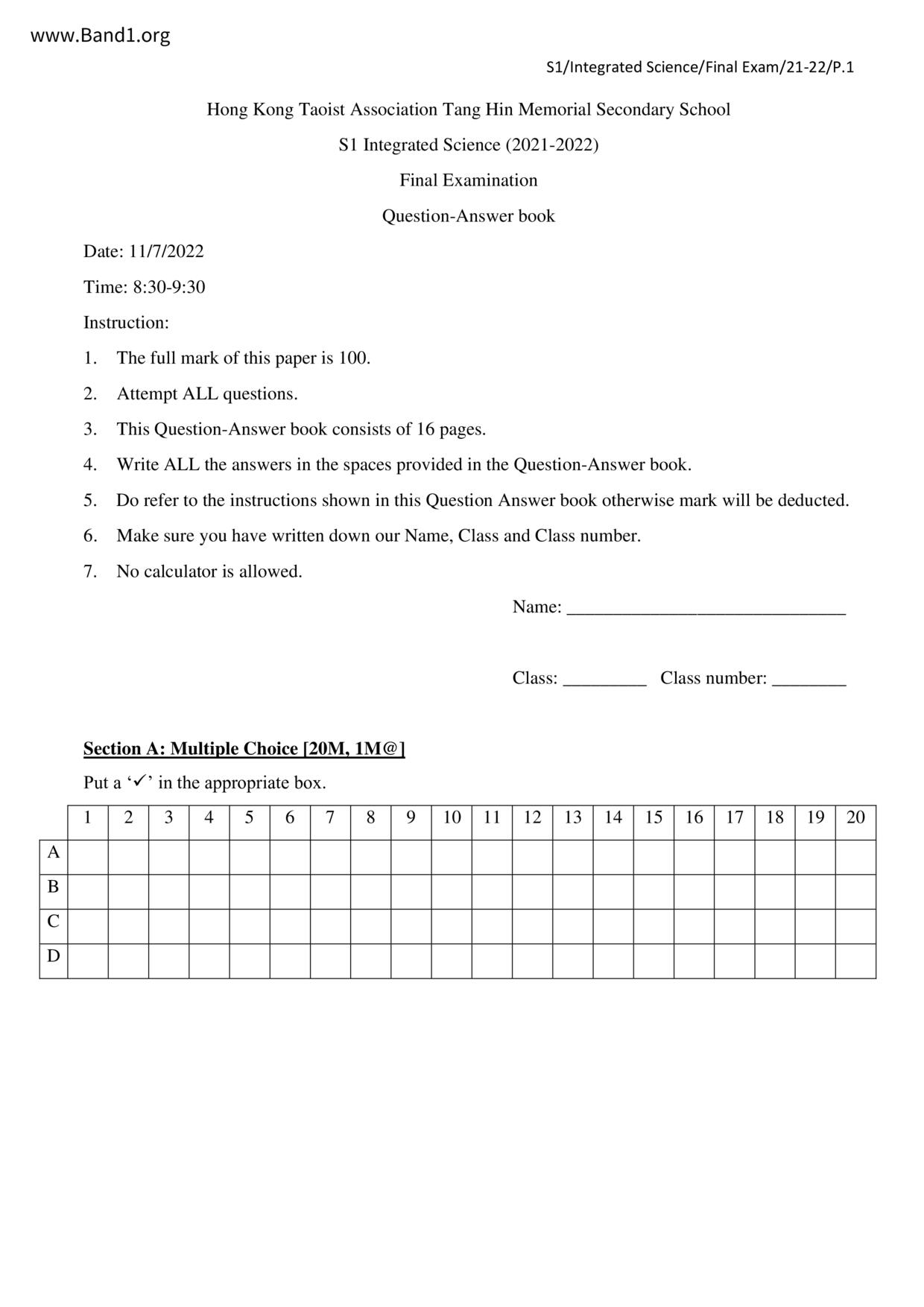 香港 中小學 科學 (HK Science) 試卷 pdf