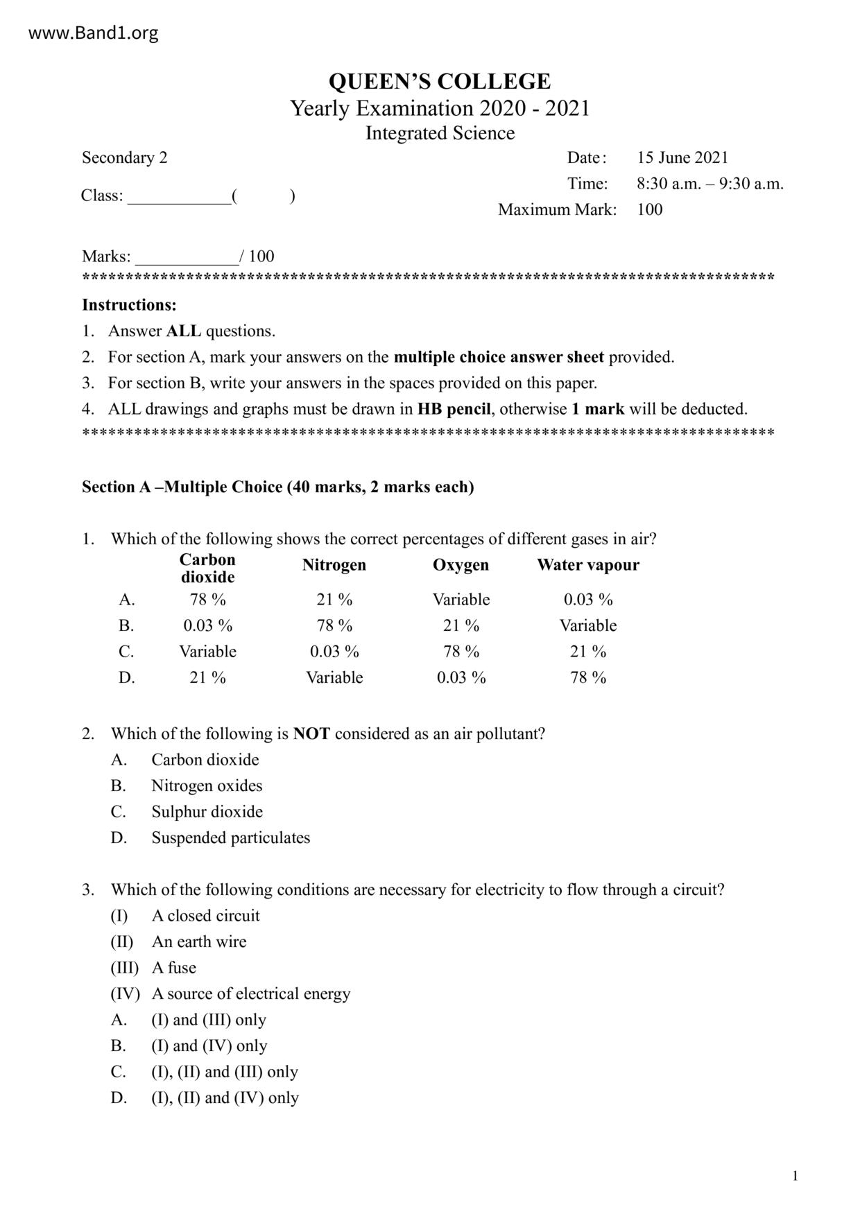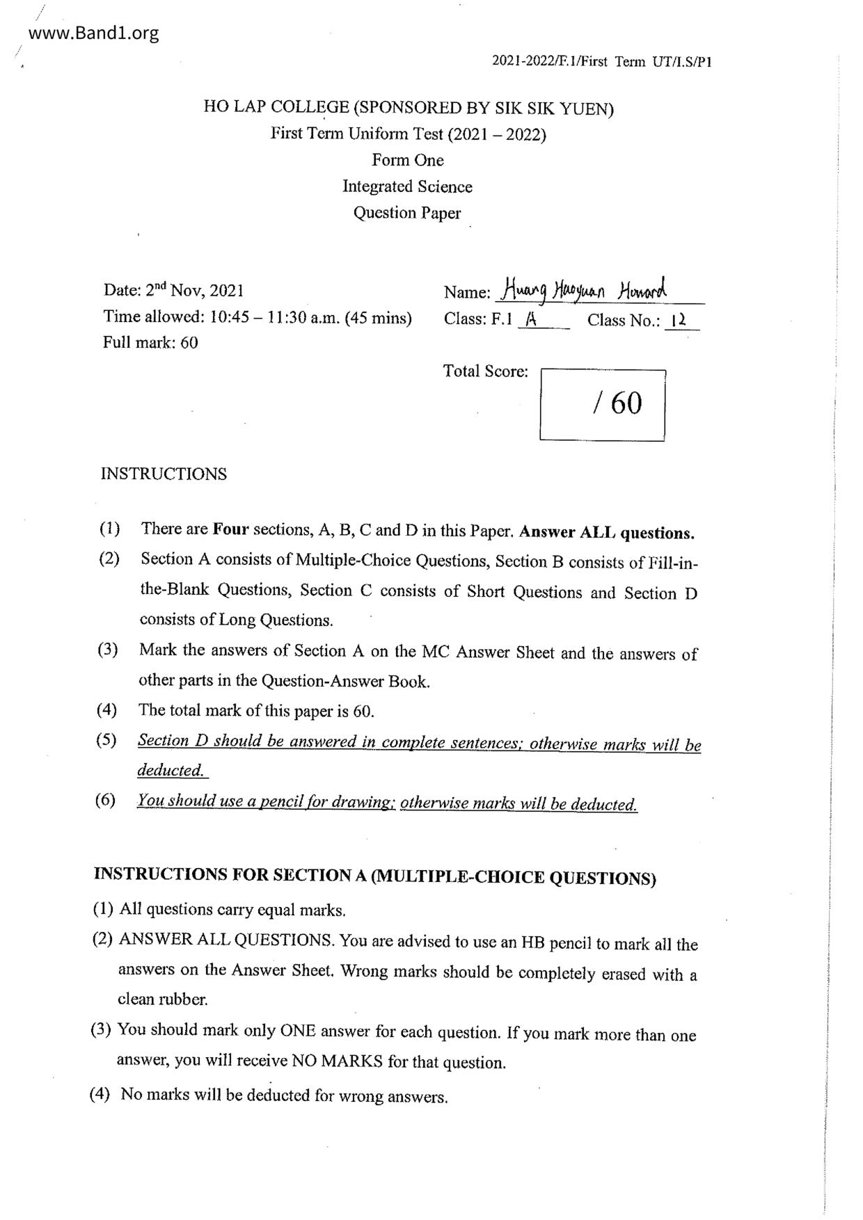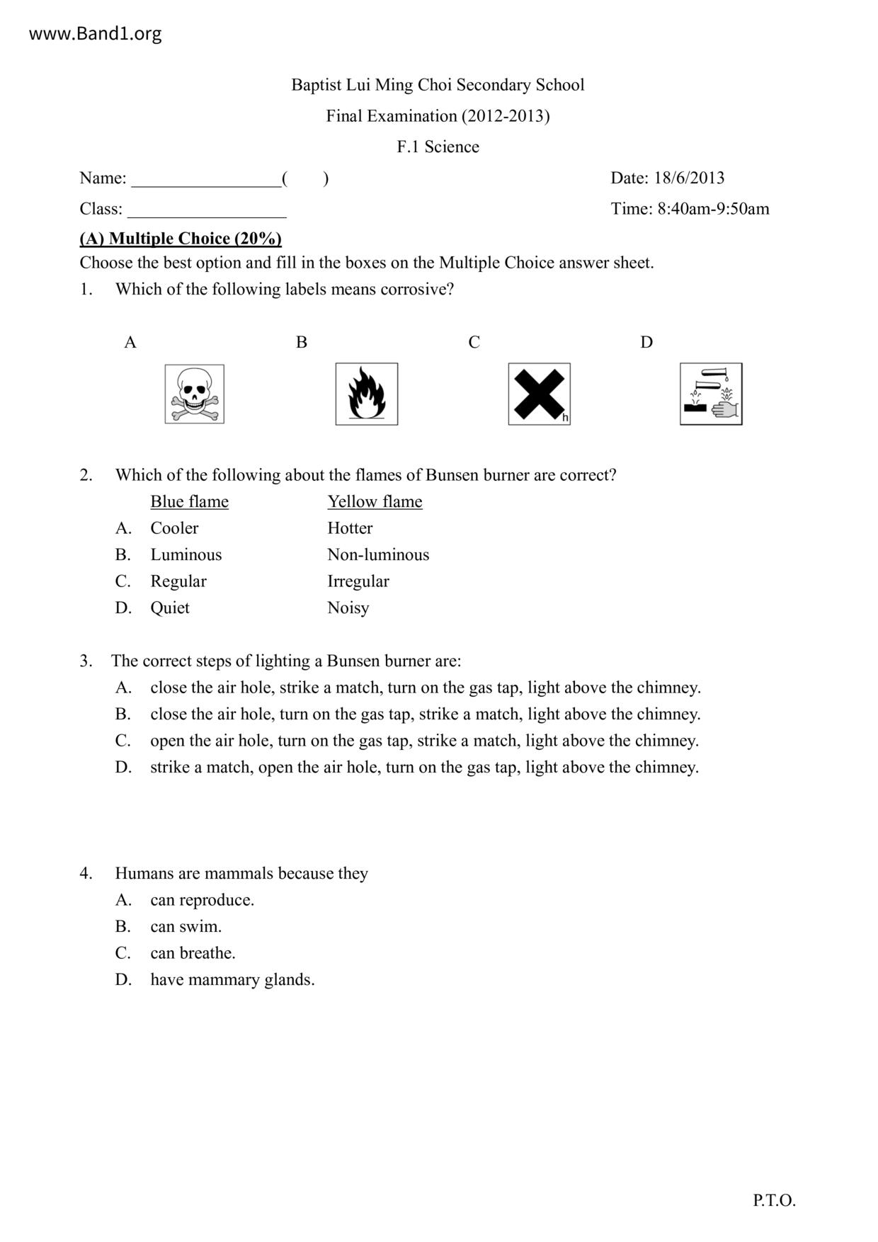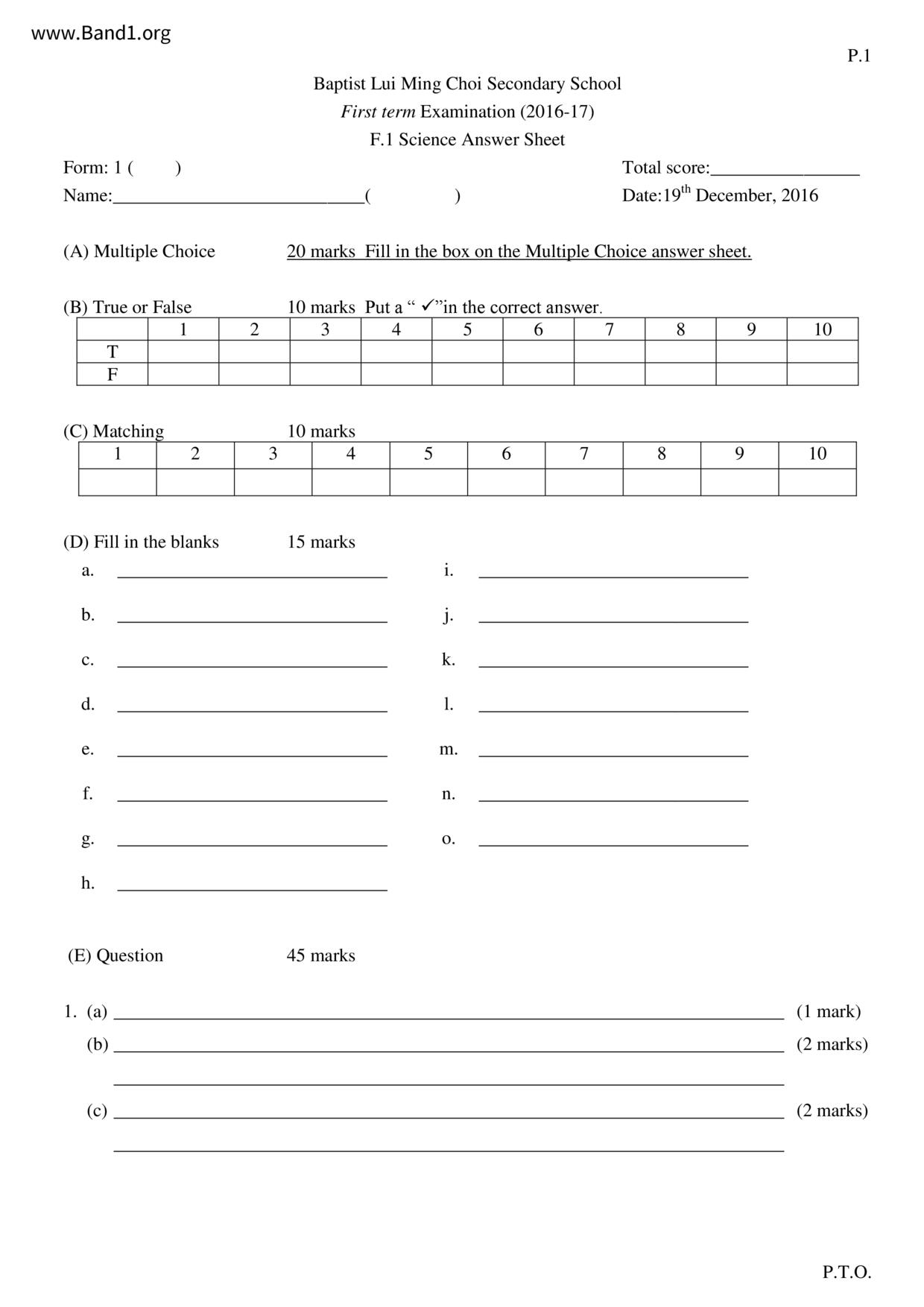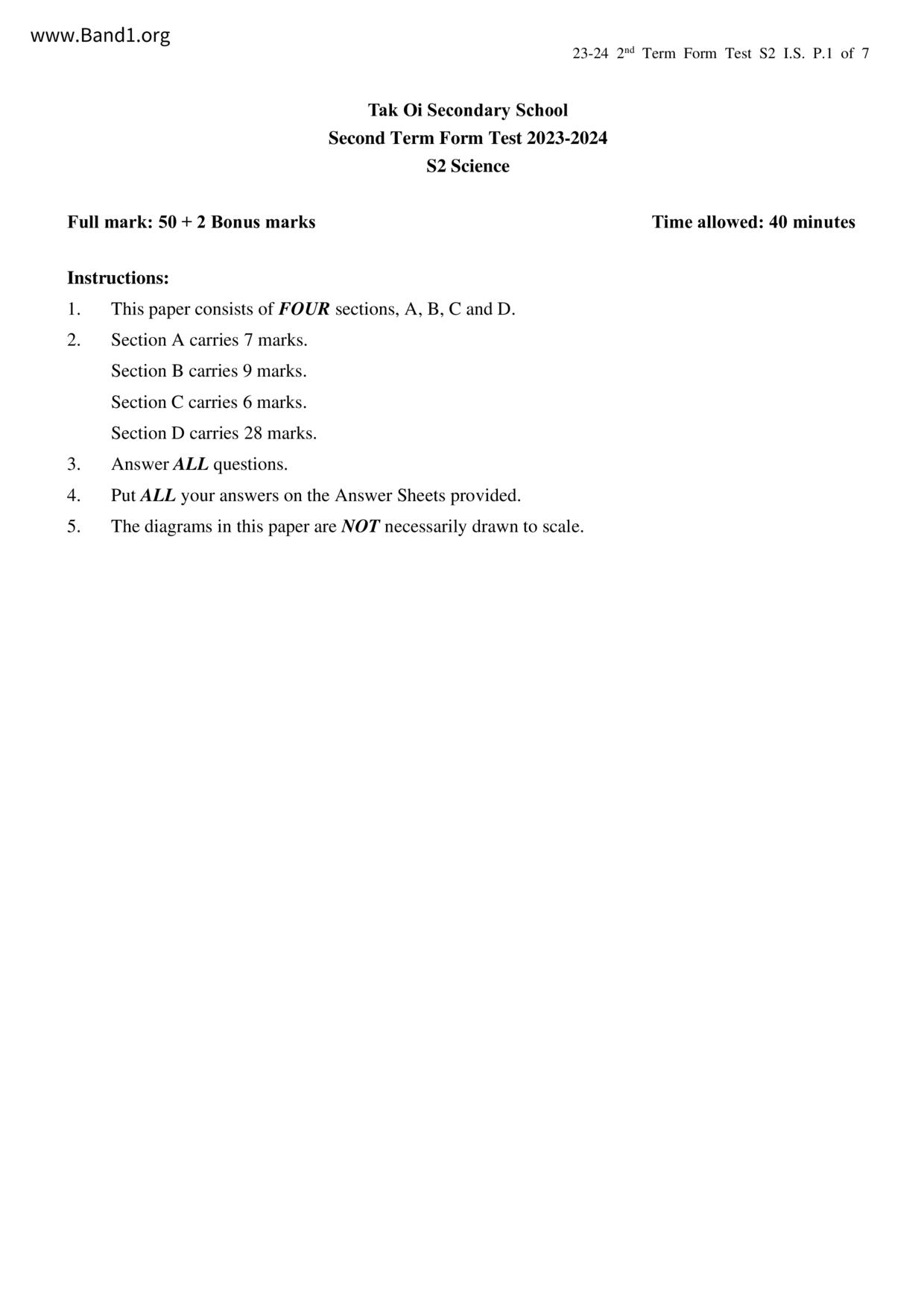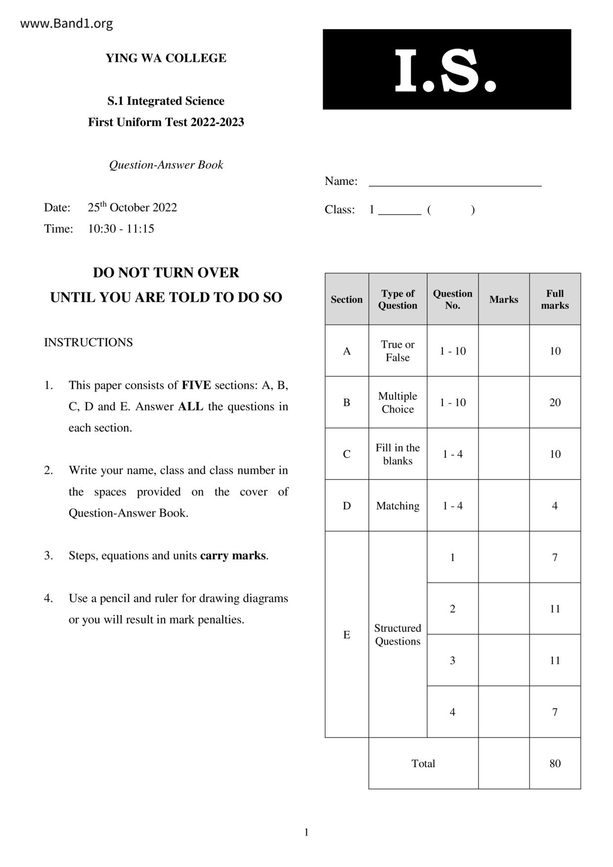 香港 中小學 科學 (HK Science) 試卷 pdf