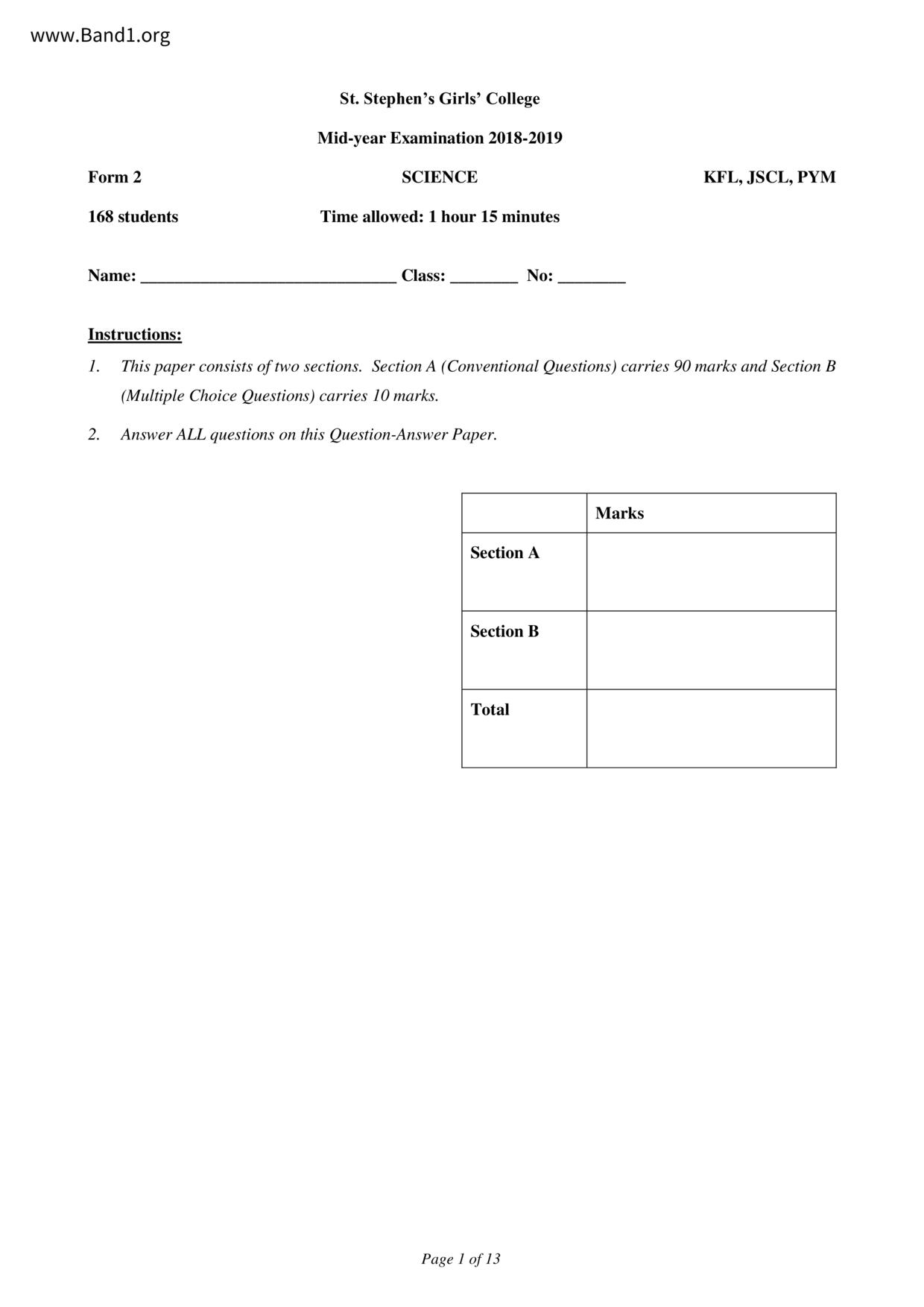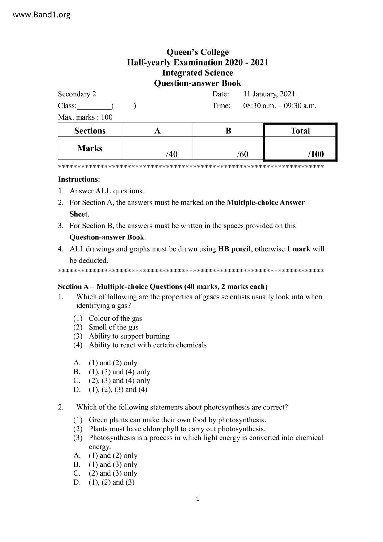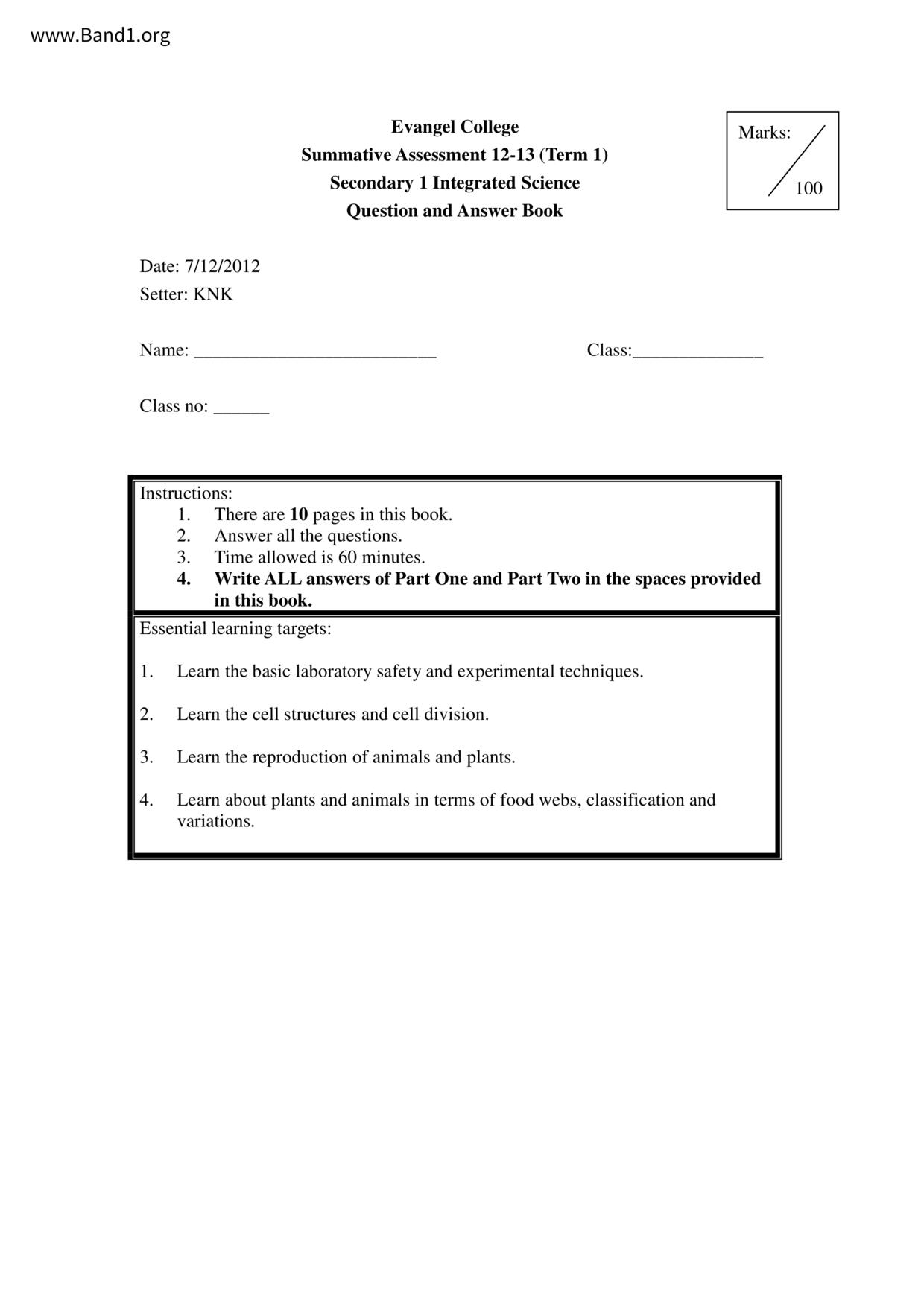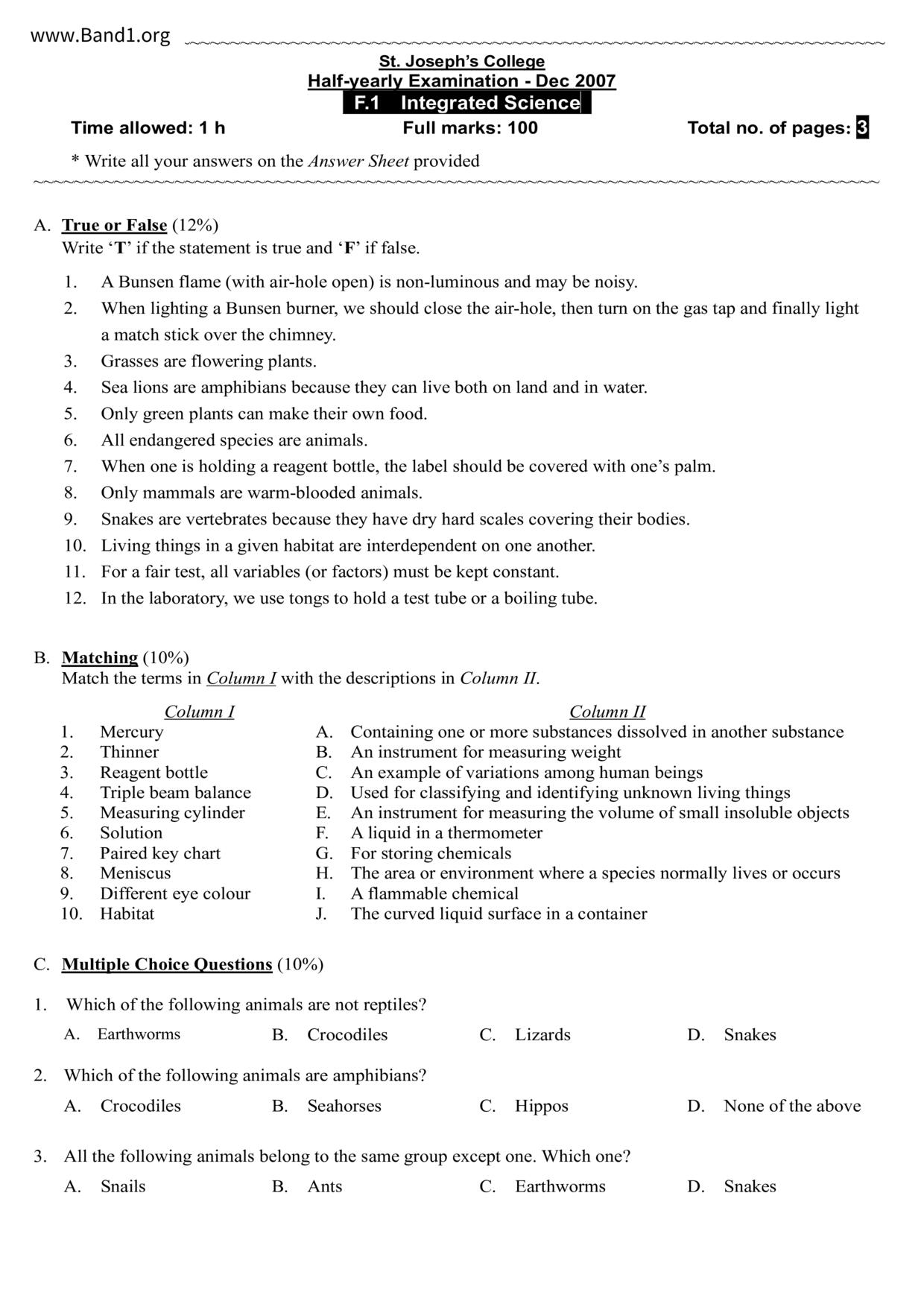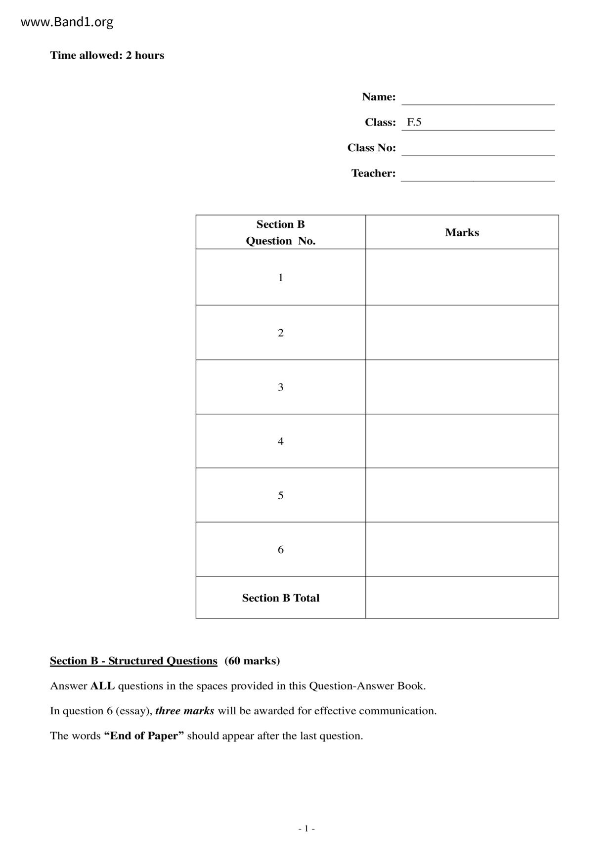 香港 中小學 科學 (HK Science) 試卷 pdf