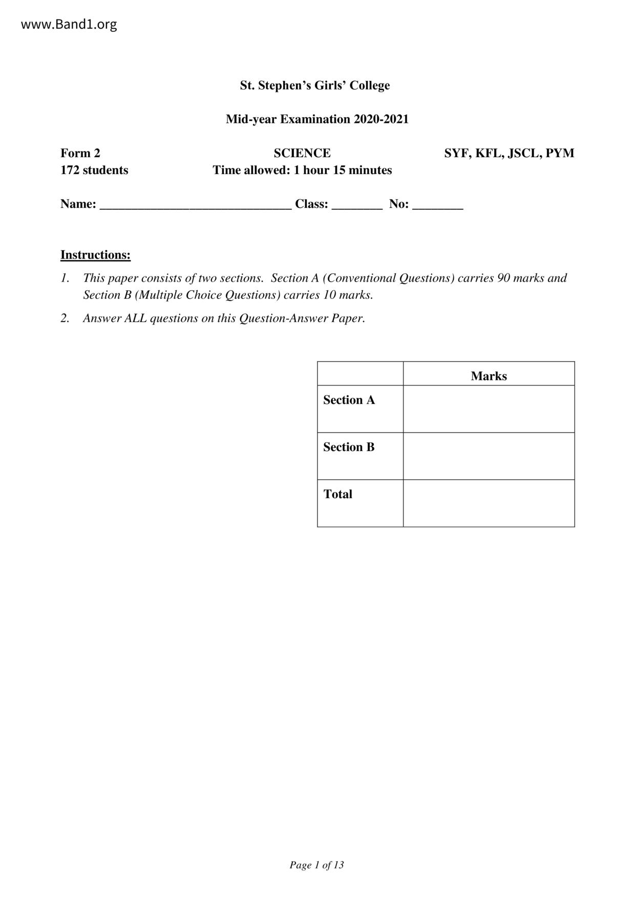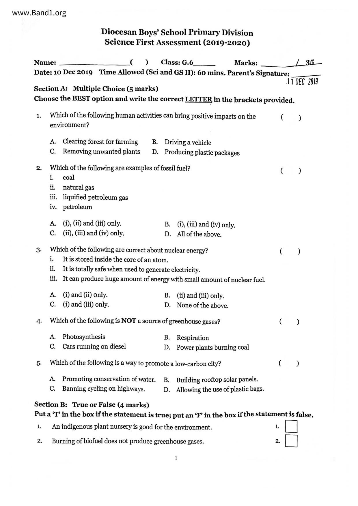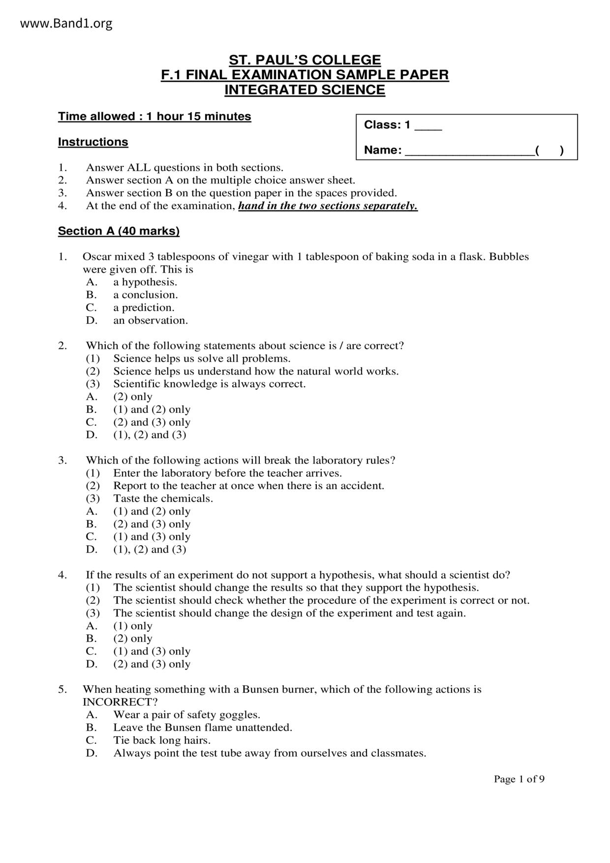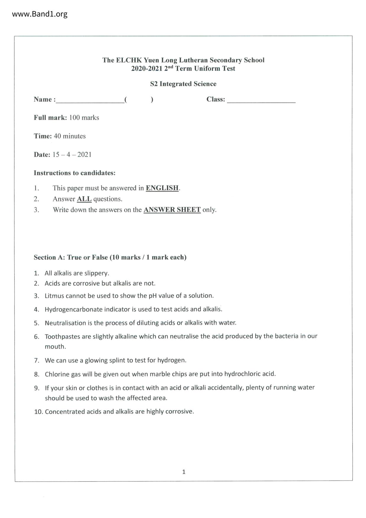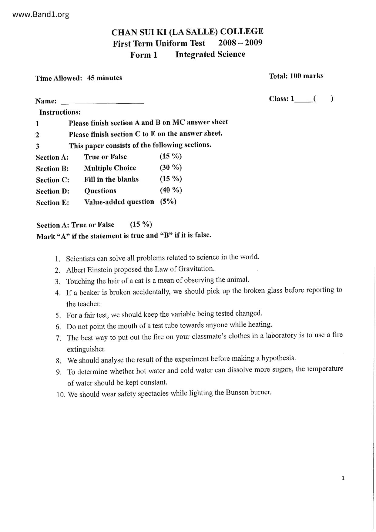 香港 中小學 科學 (HK Science) 試卷 pdf