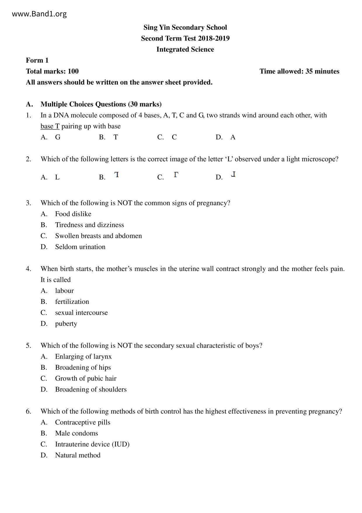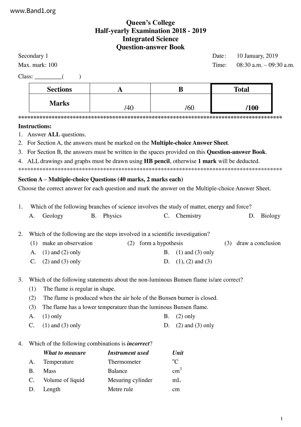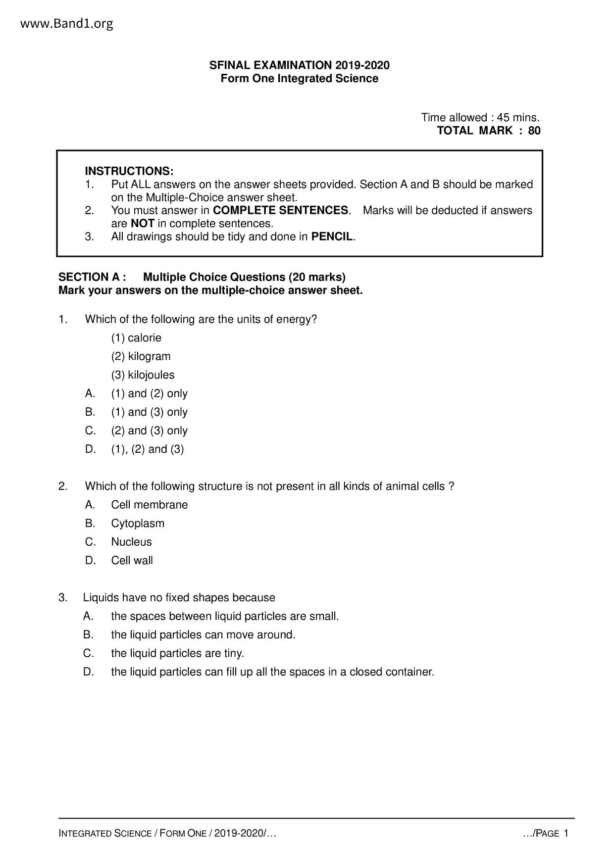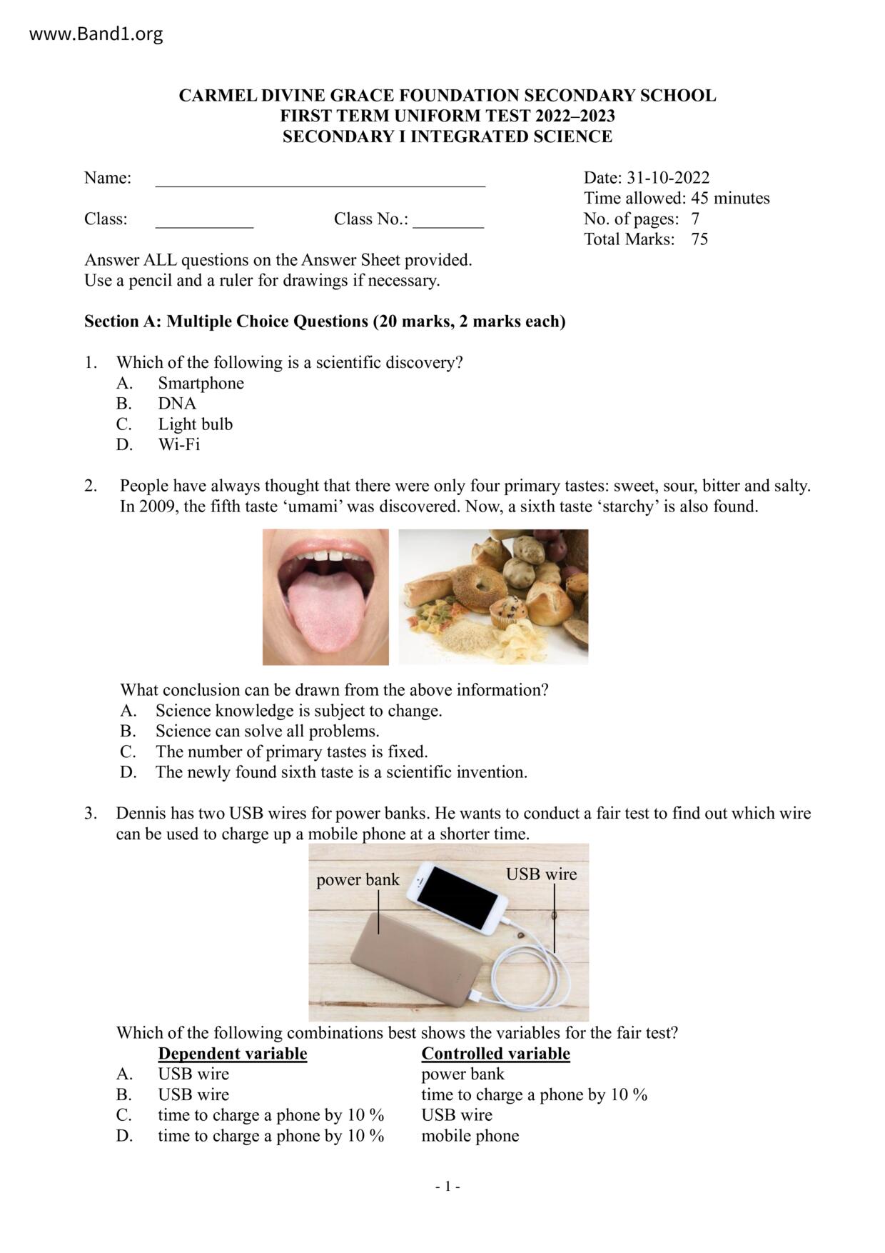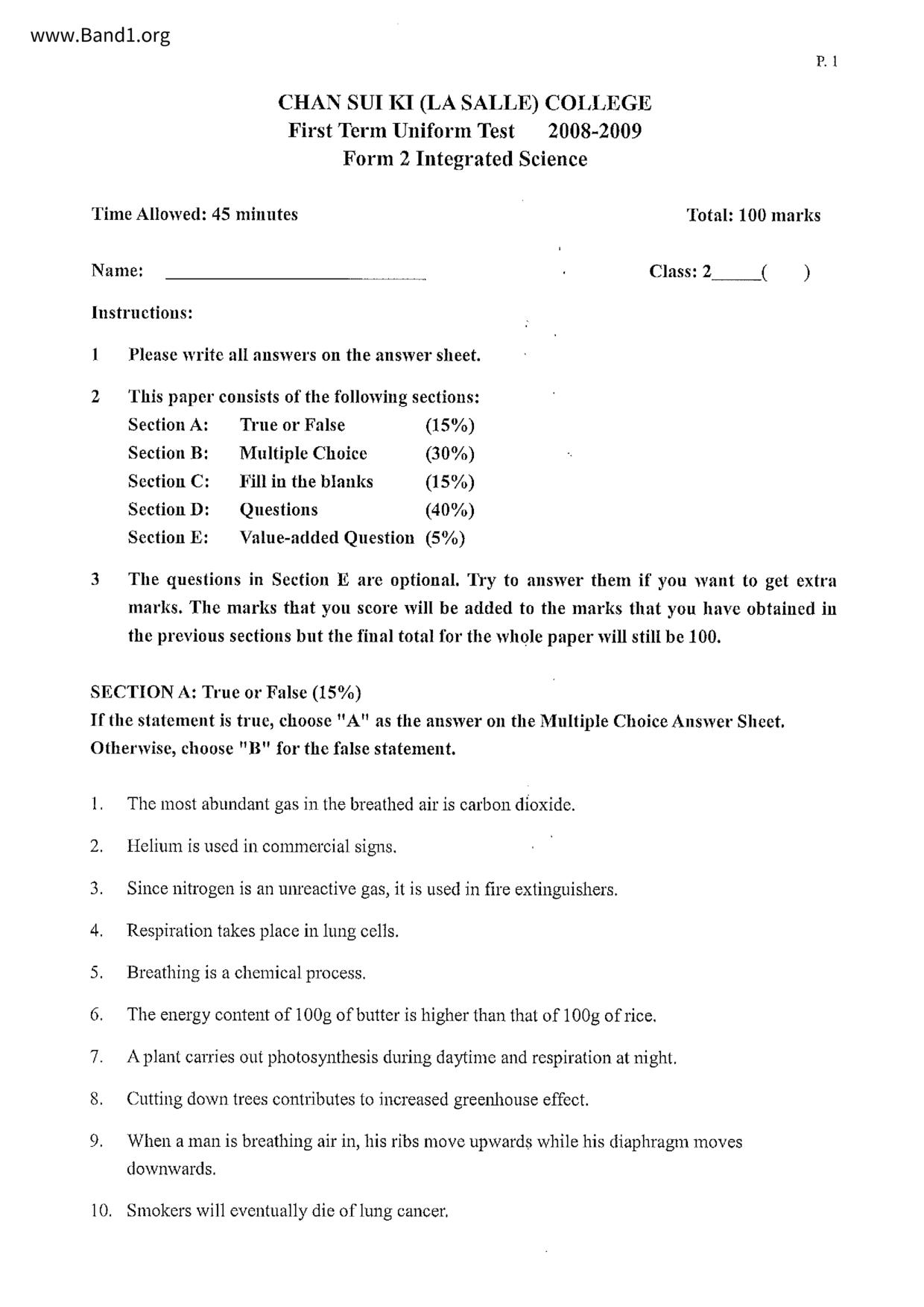香港 中小學 科學 (HK Science) 試卷 pdf