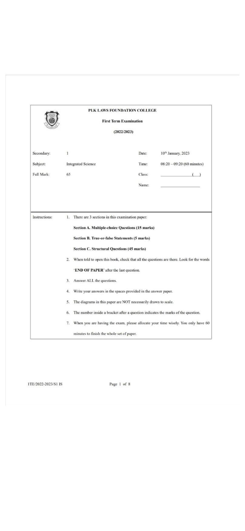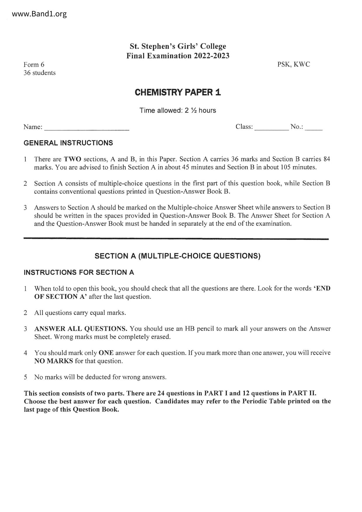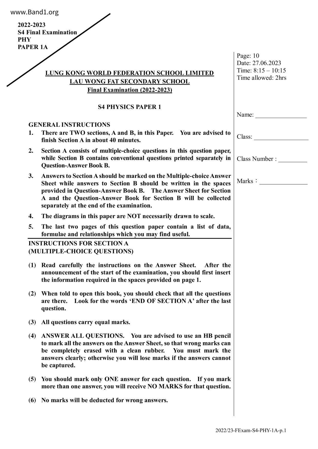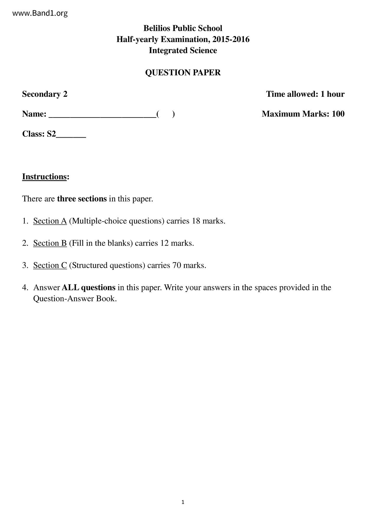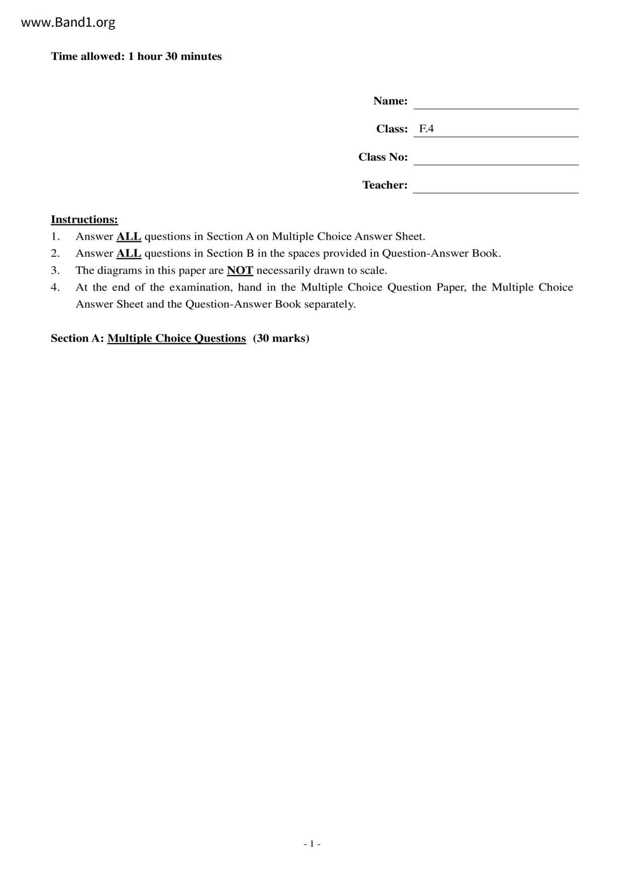 香港 中小學 科學 (HK Science) 試卷 pdf