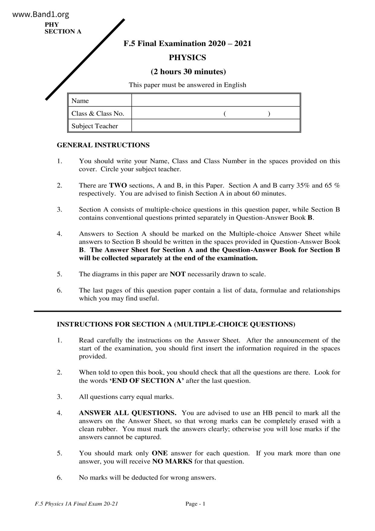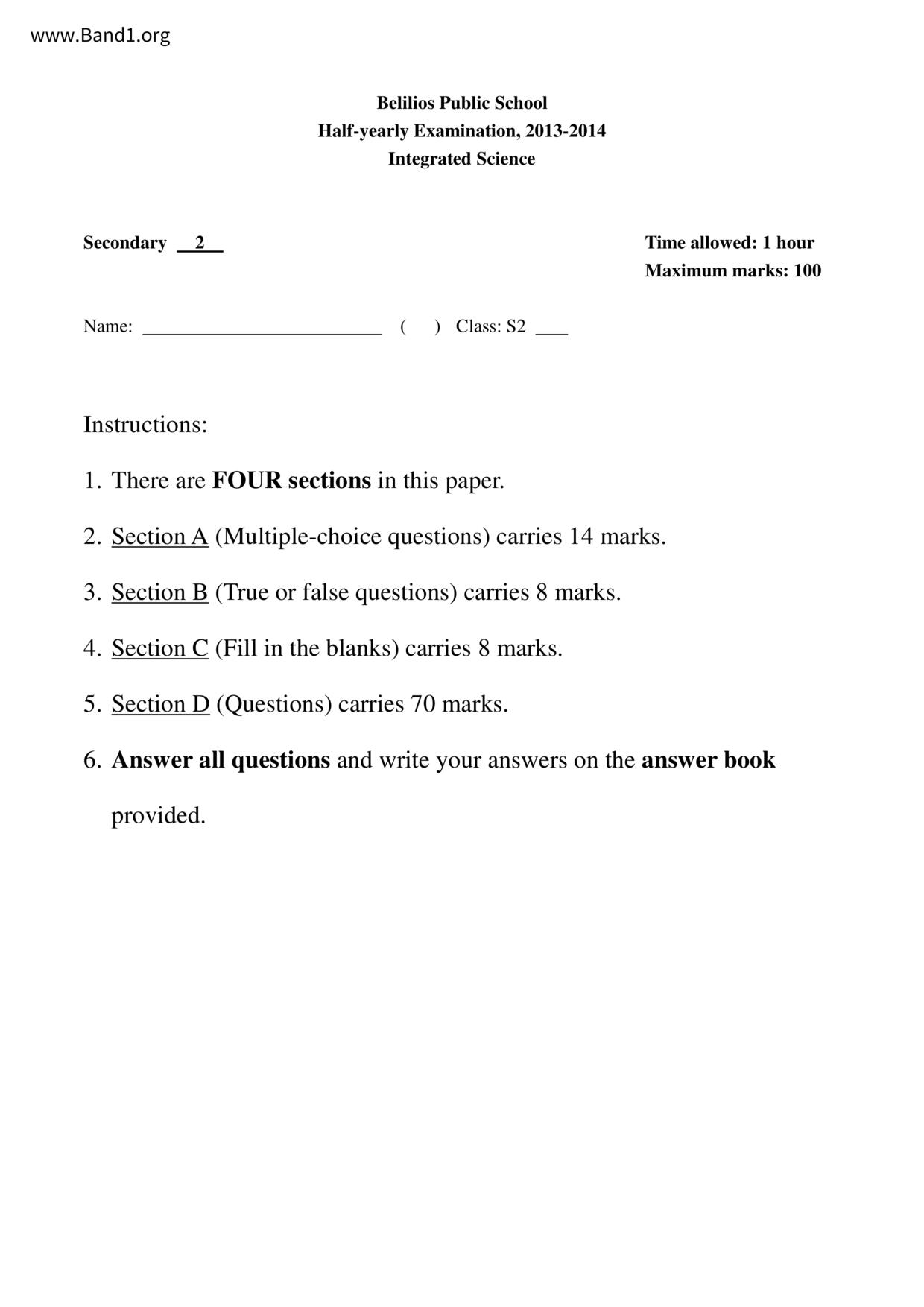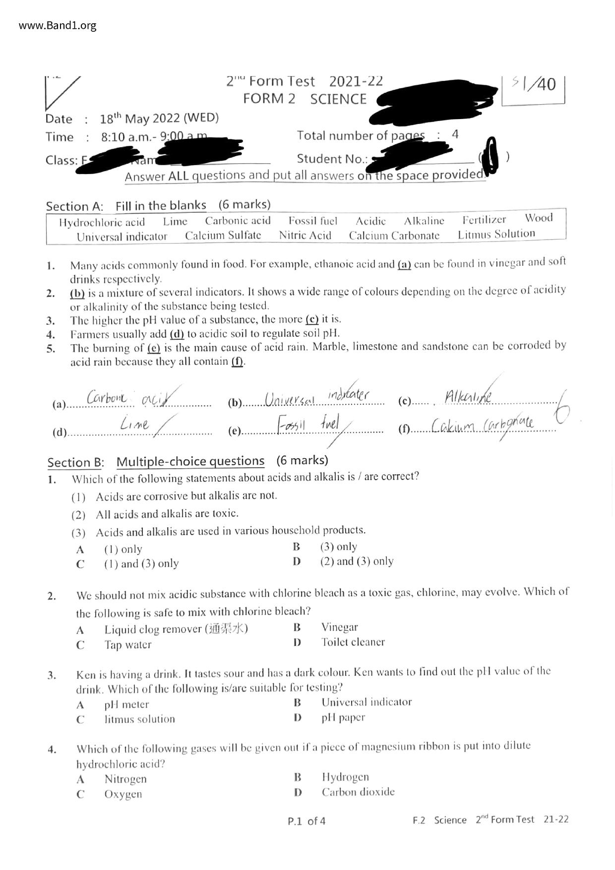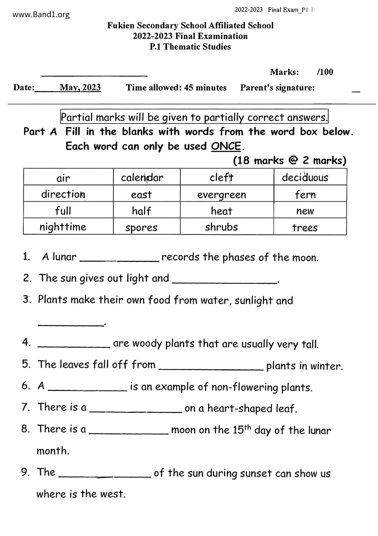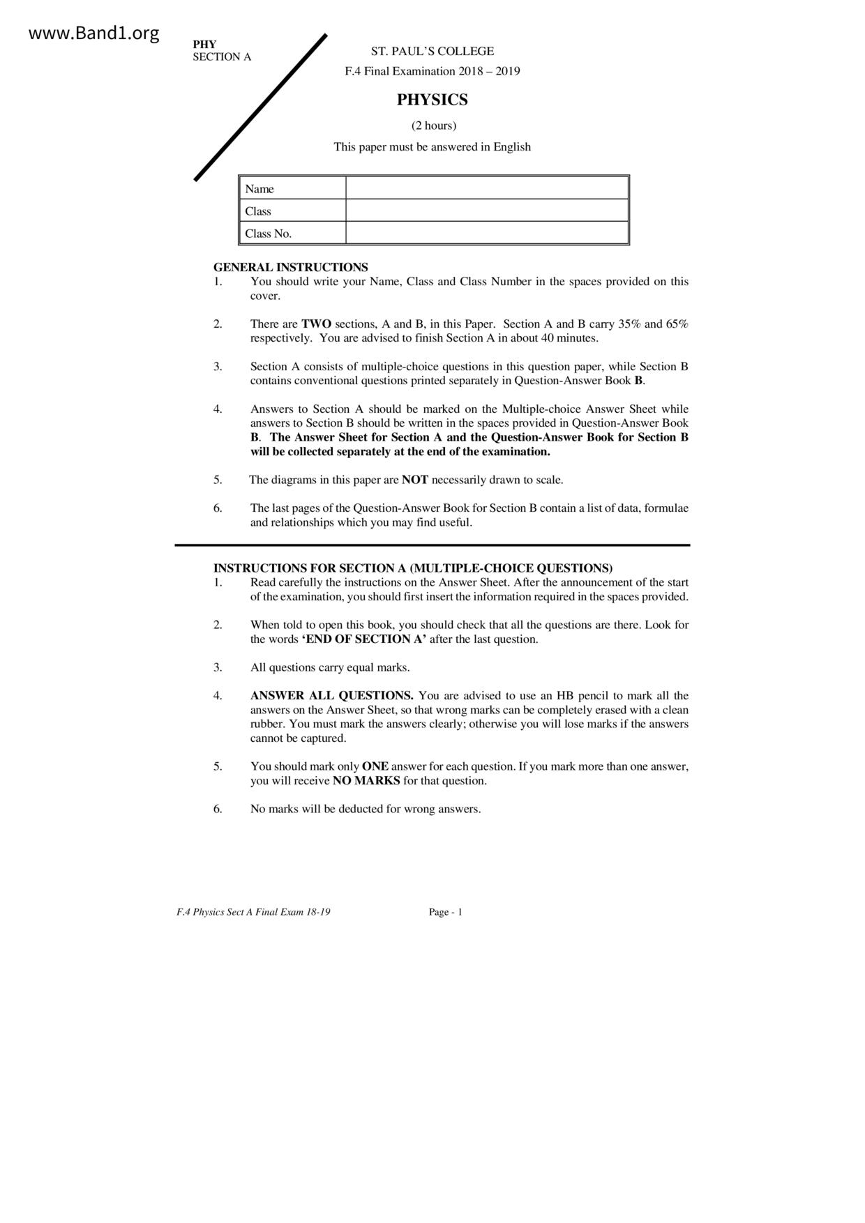 香港 中小學 科學 (HK Science) 試卷 pdf