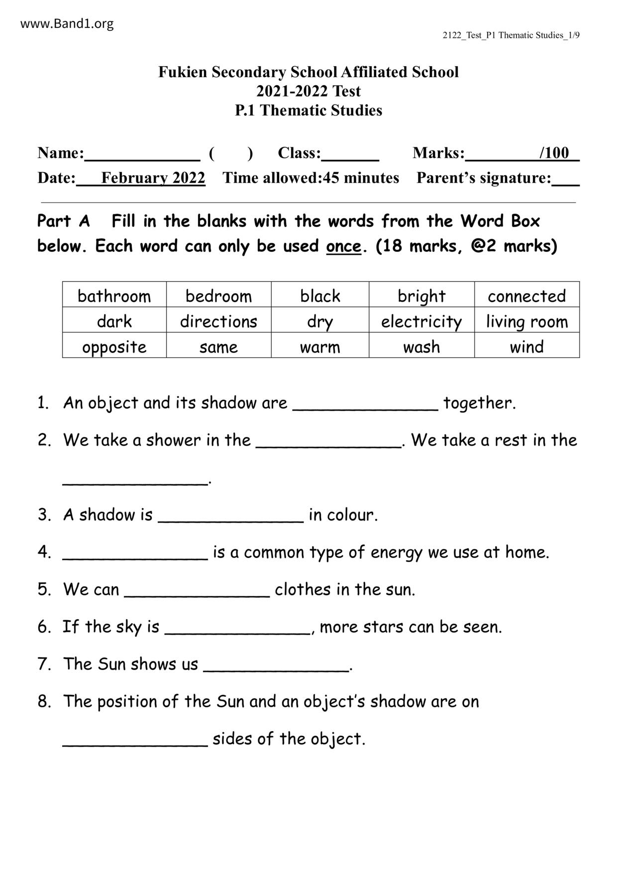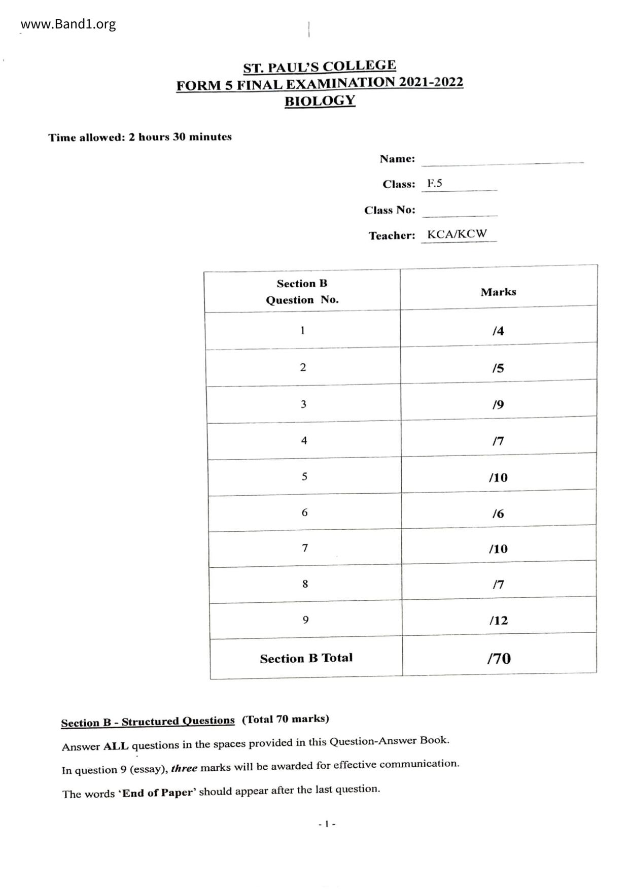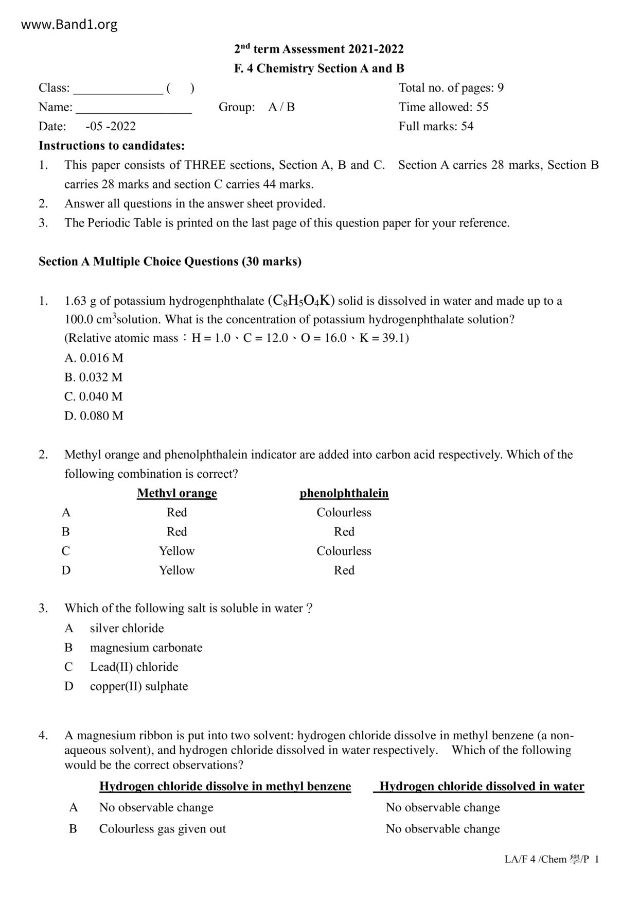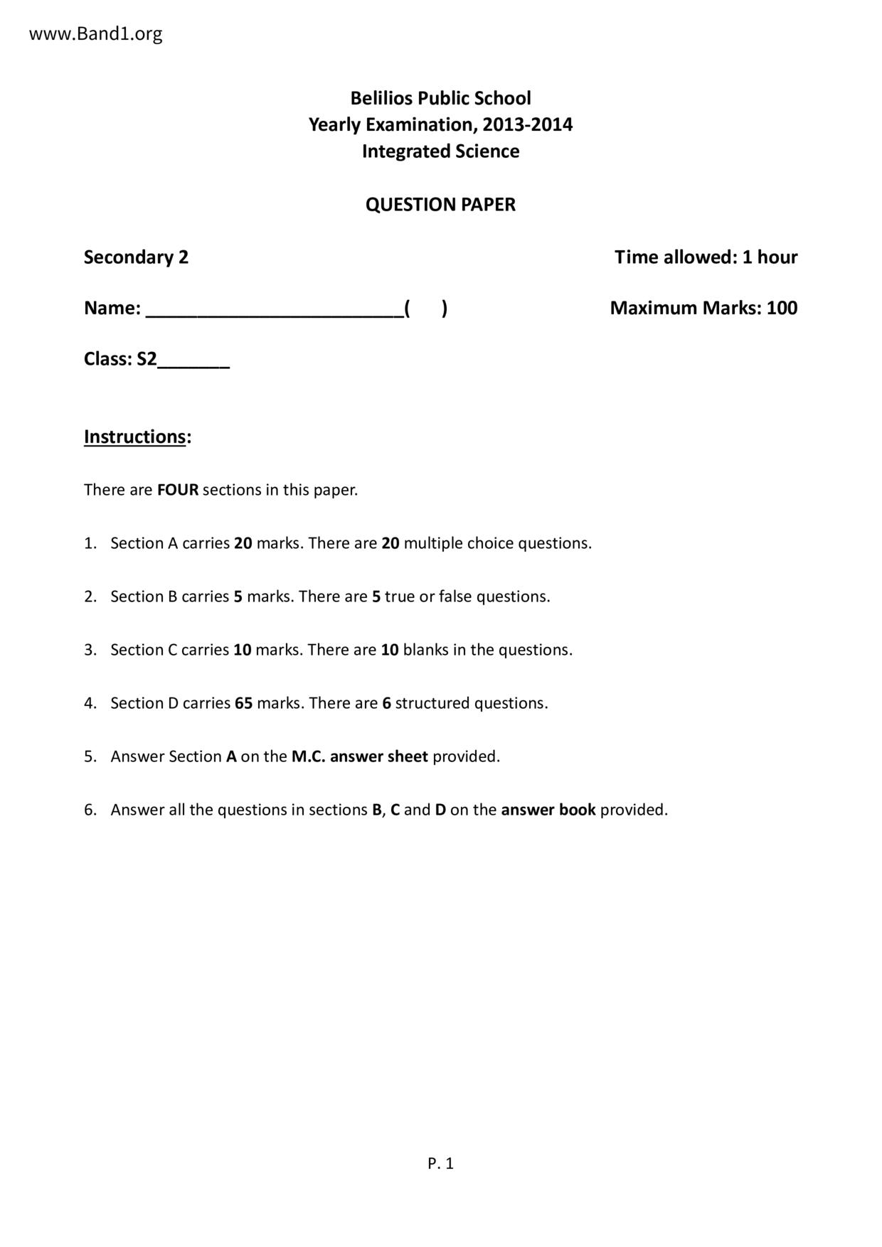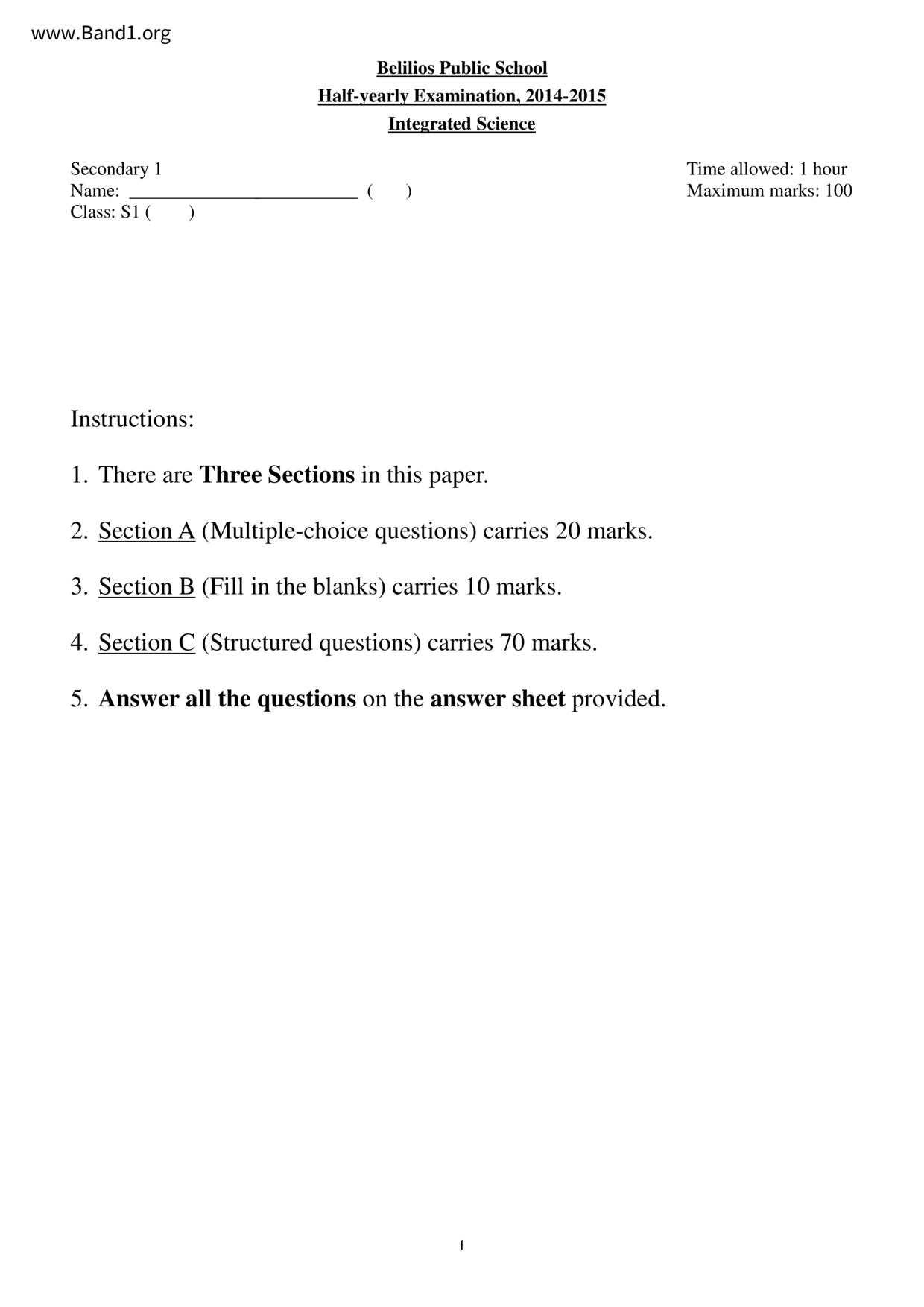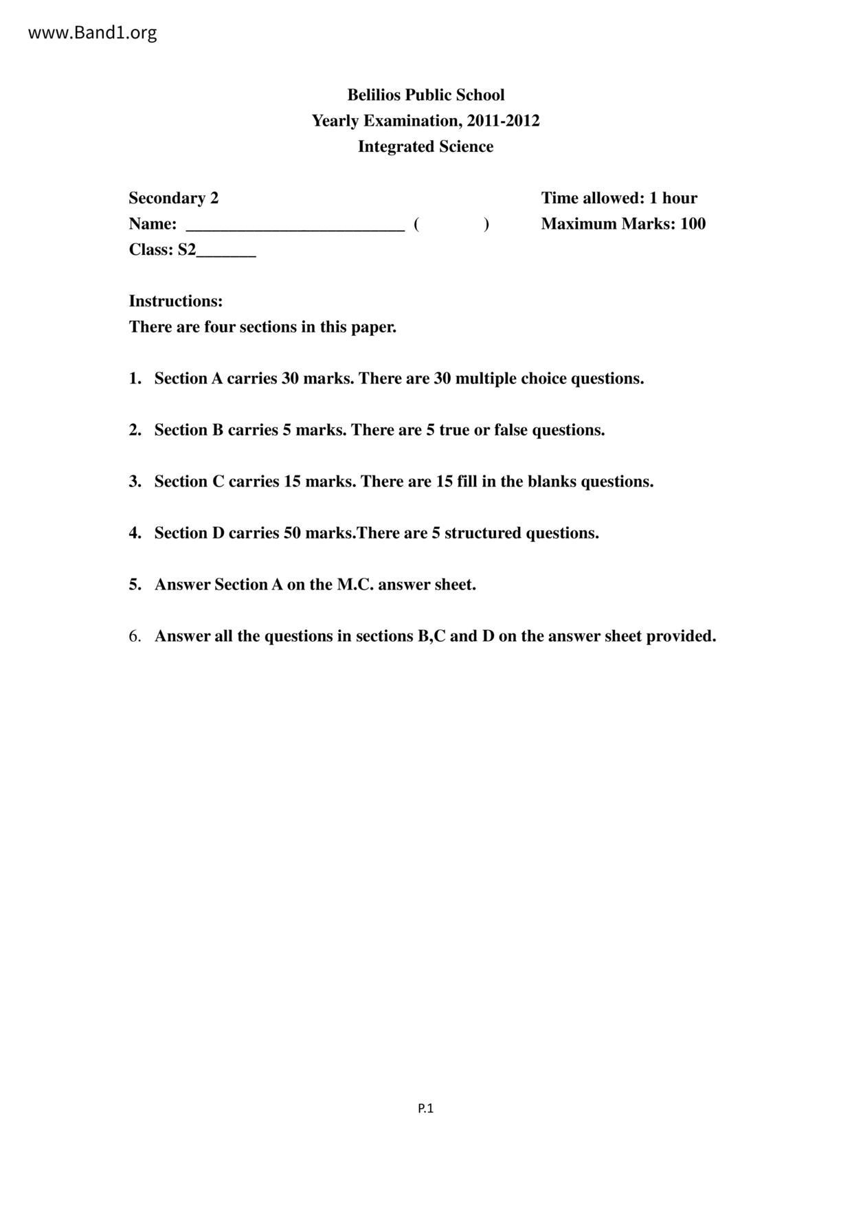 香港 中小學 科學 (HK Science) 試卷 pdf