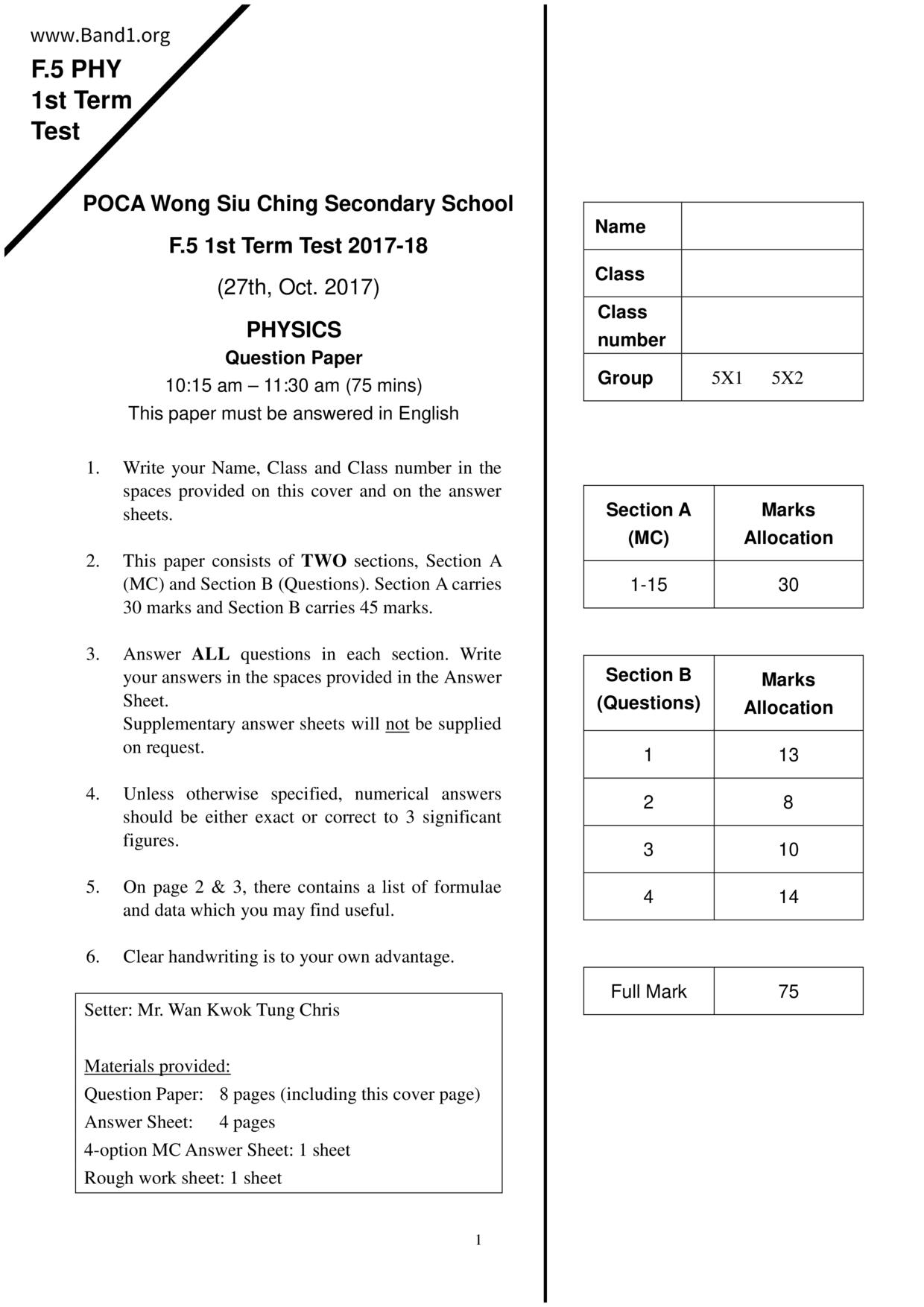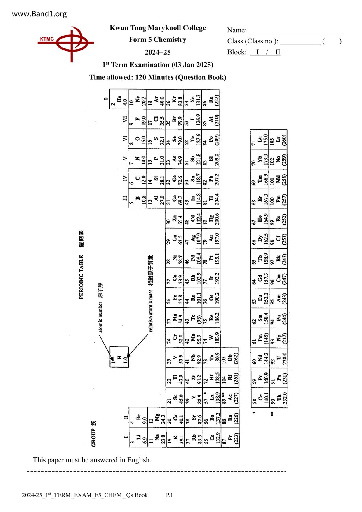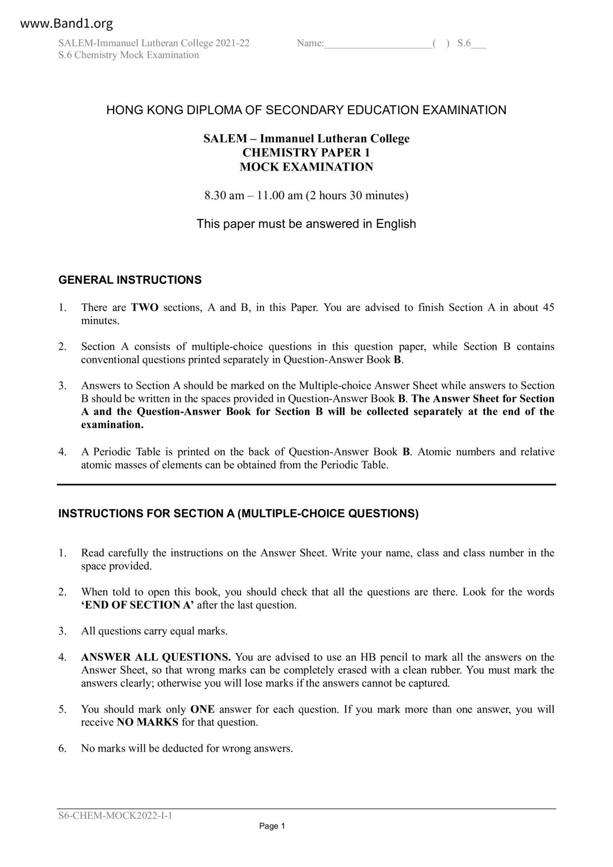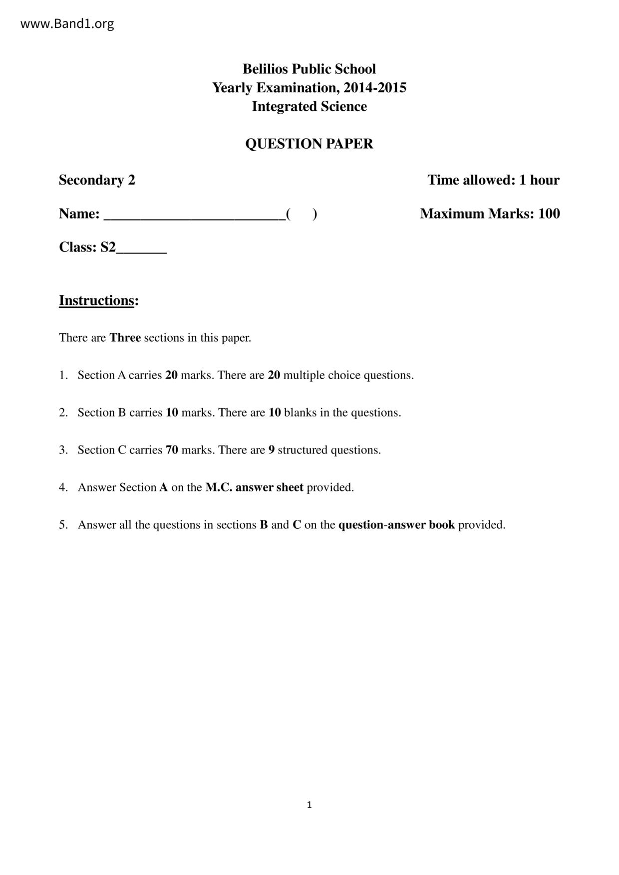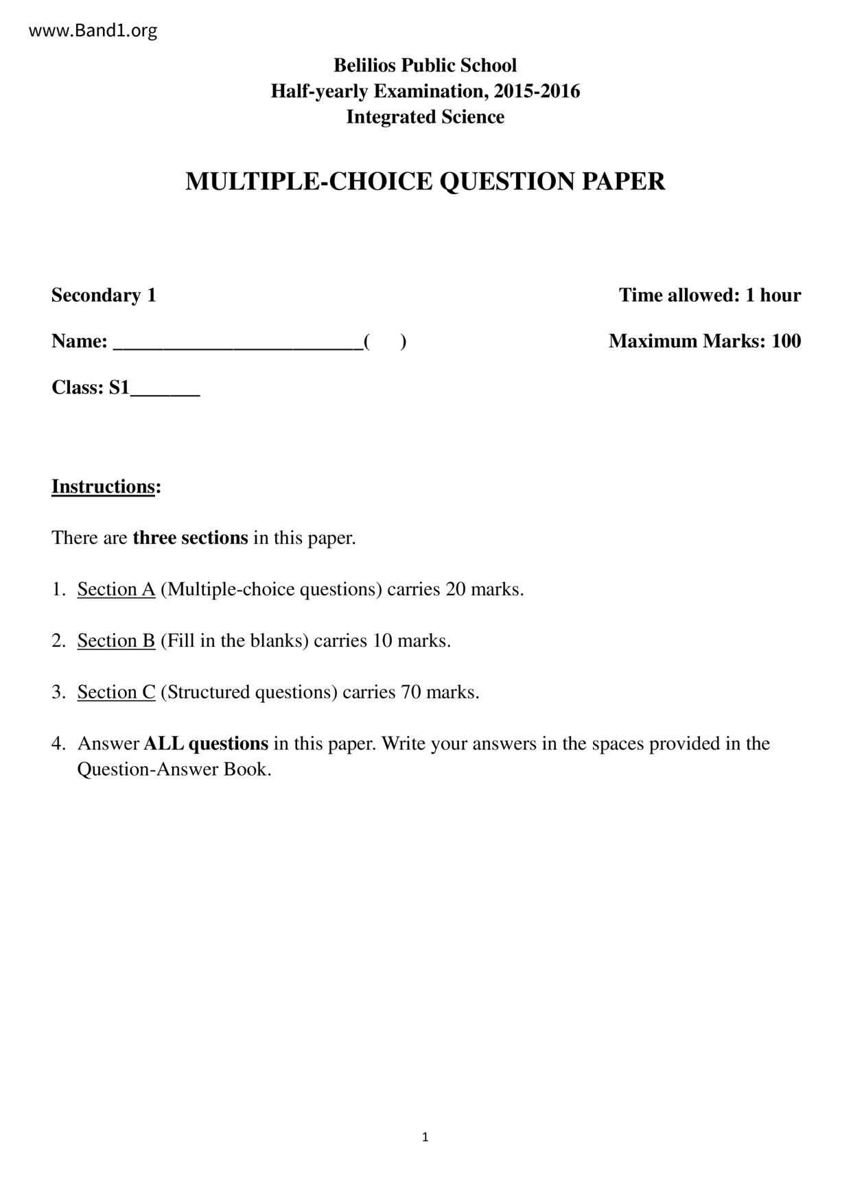 香港 中小學 科學 (HK Science) 試卷 pdf