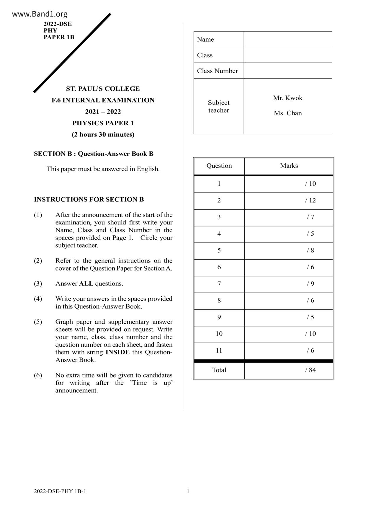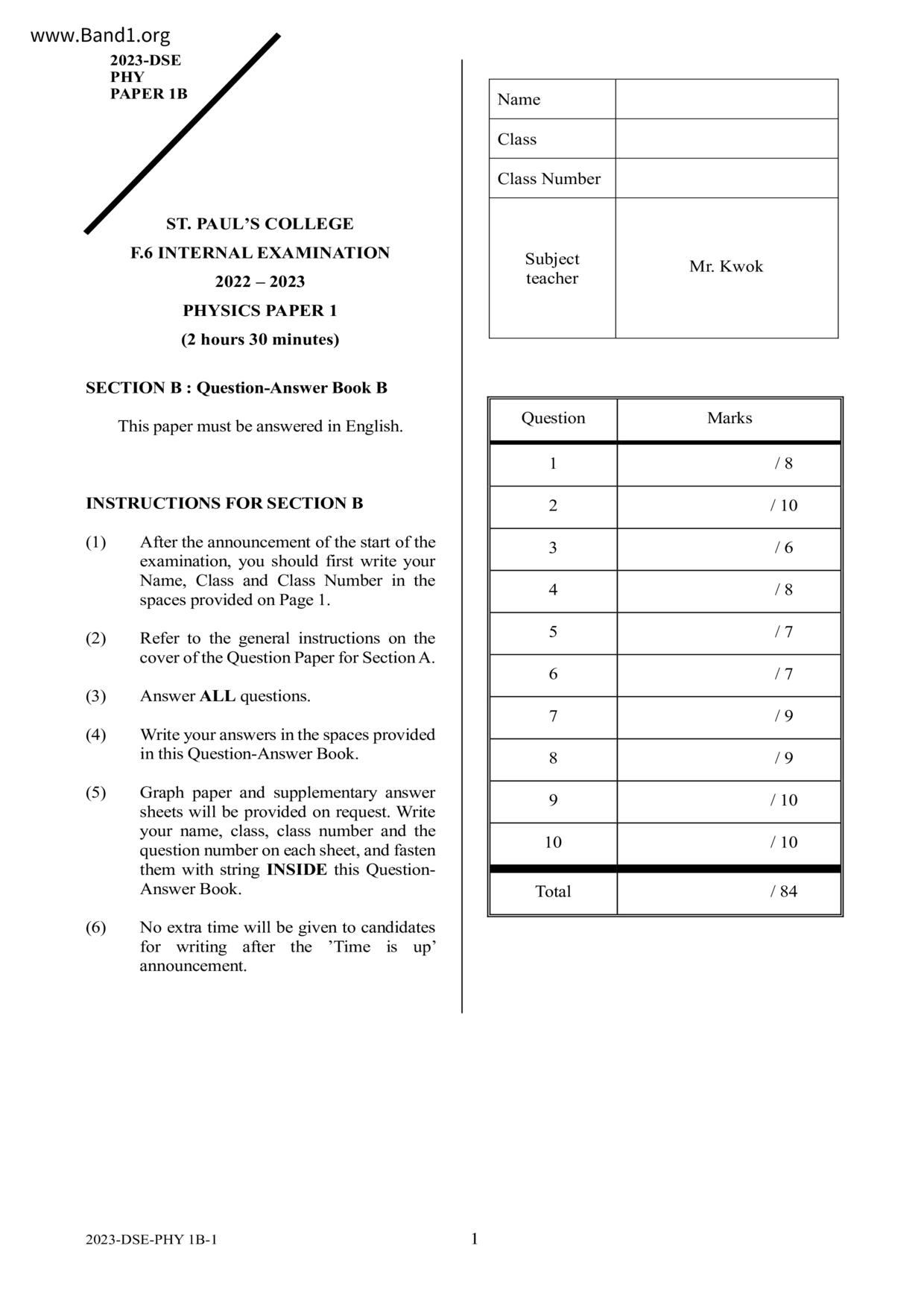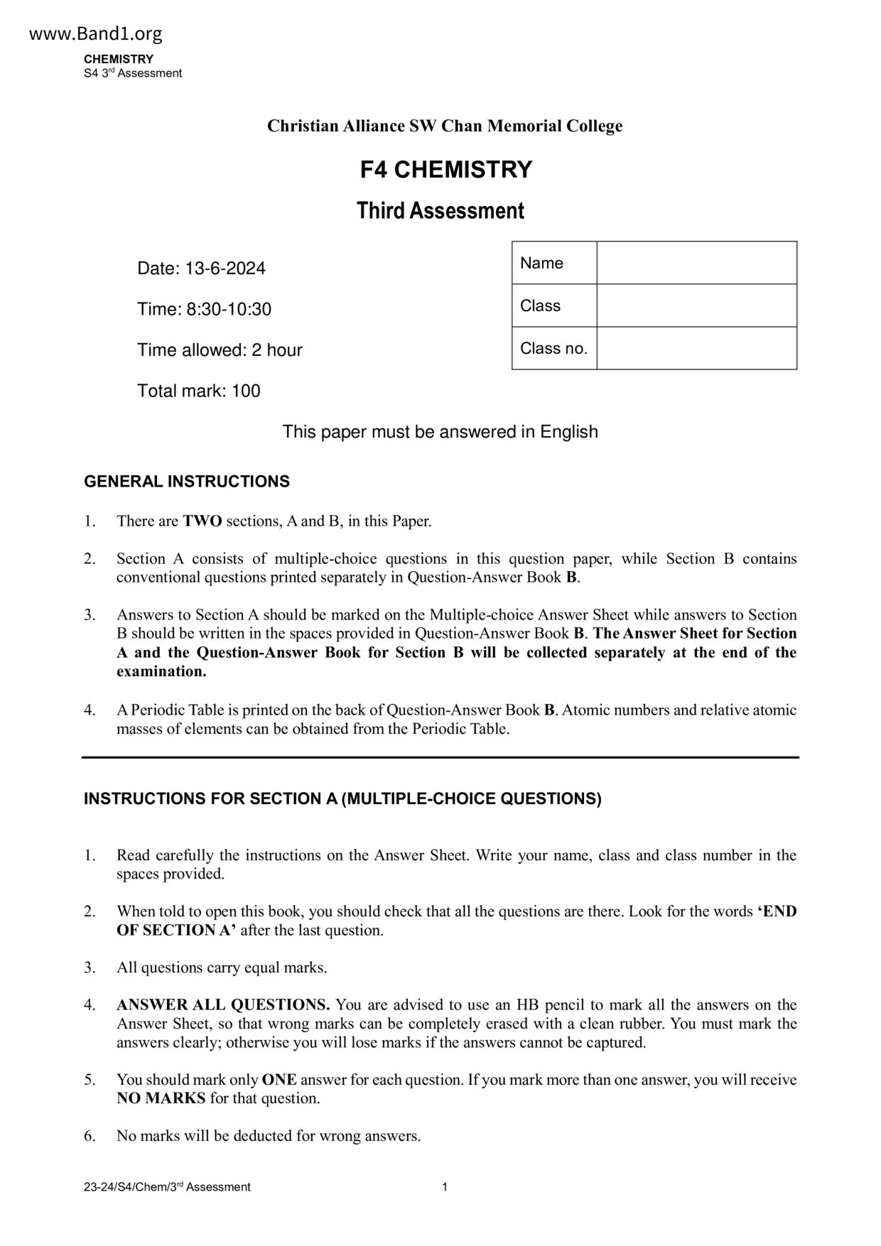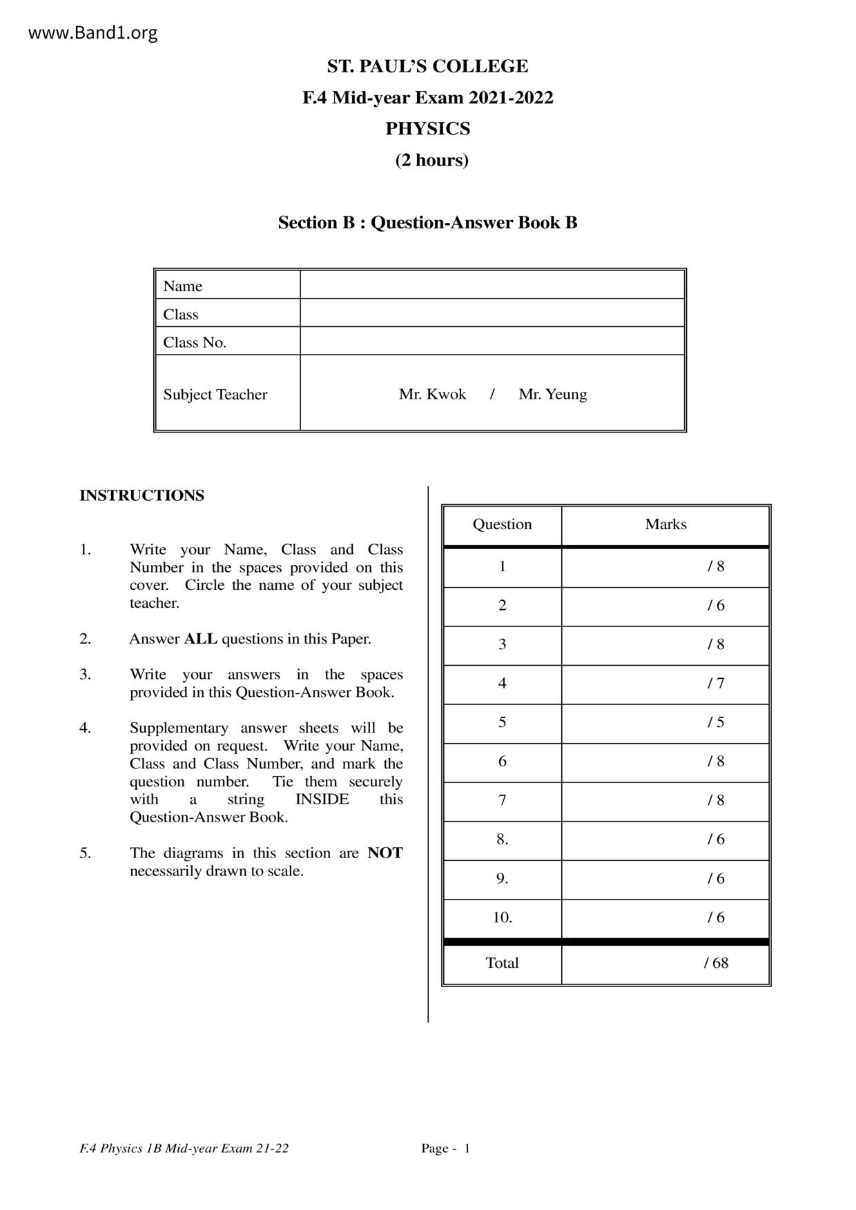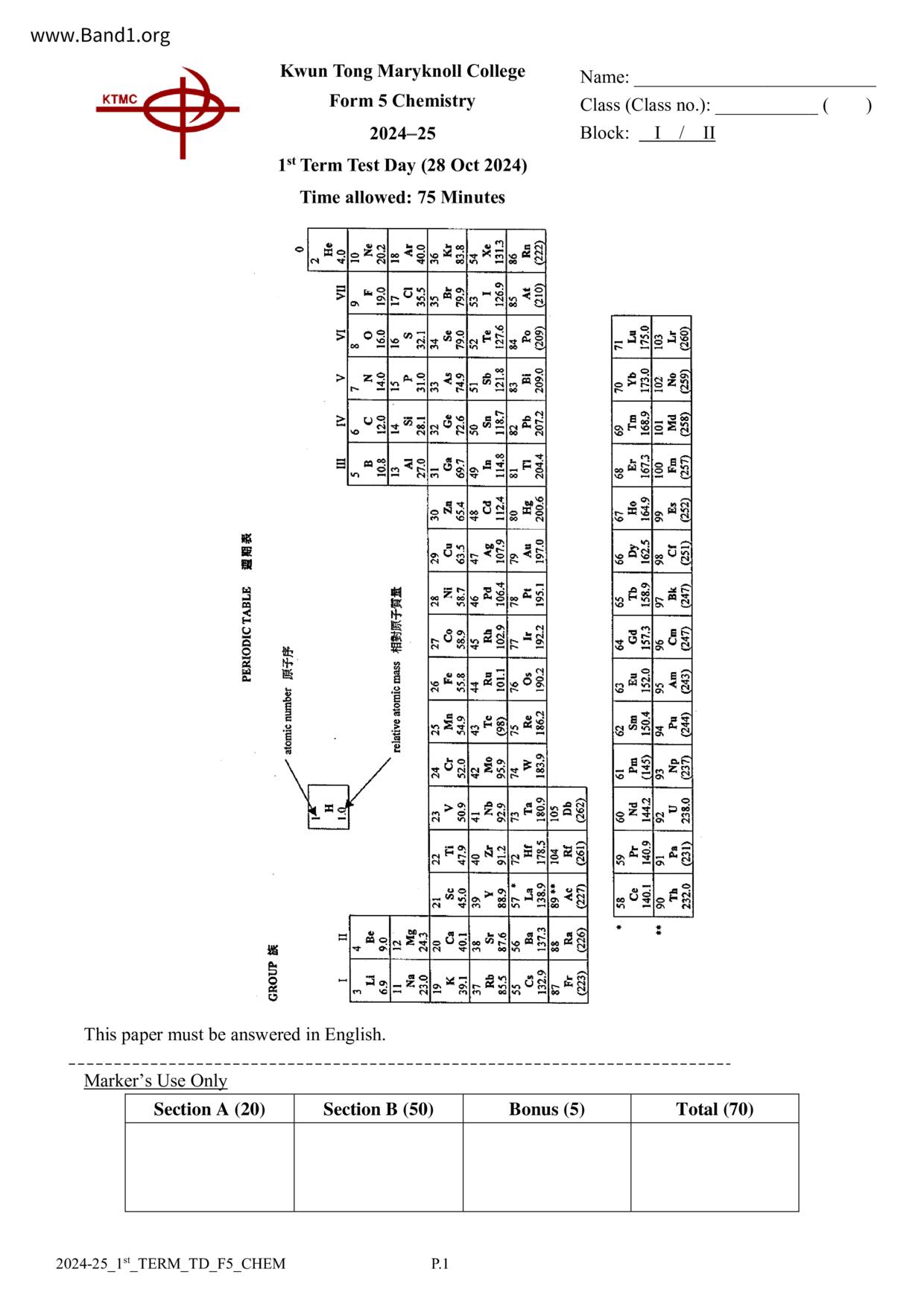 香港 中小學 科學 (HK Science) 試卷 pdf