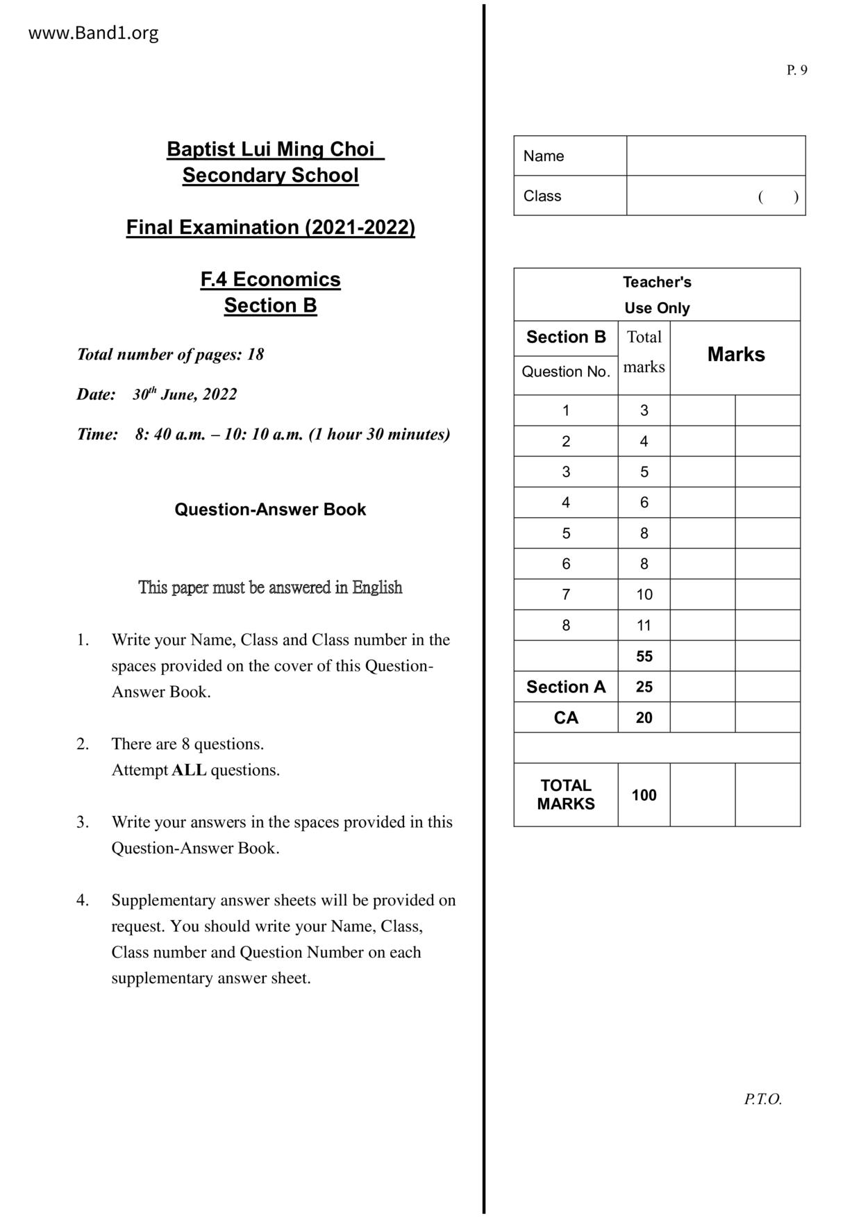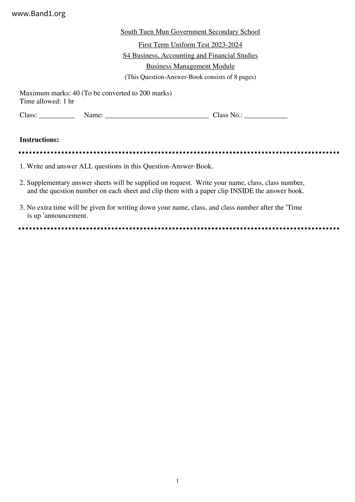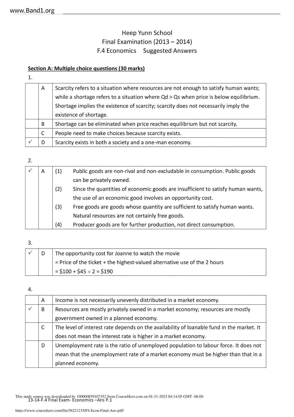 中六 經濟 華仁書院(九龍)
