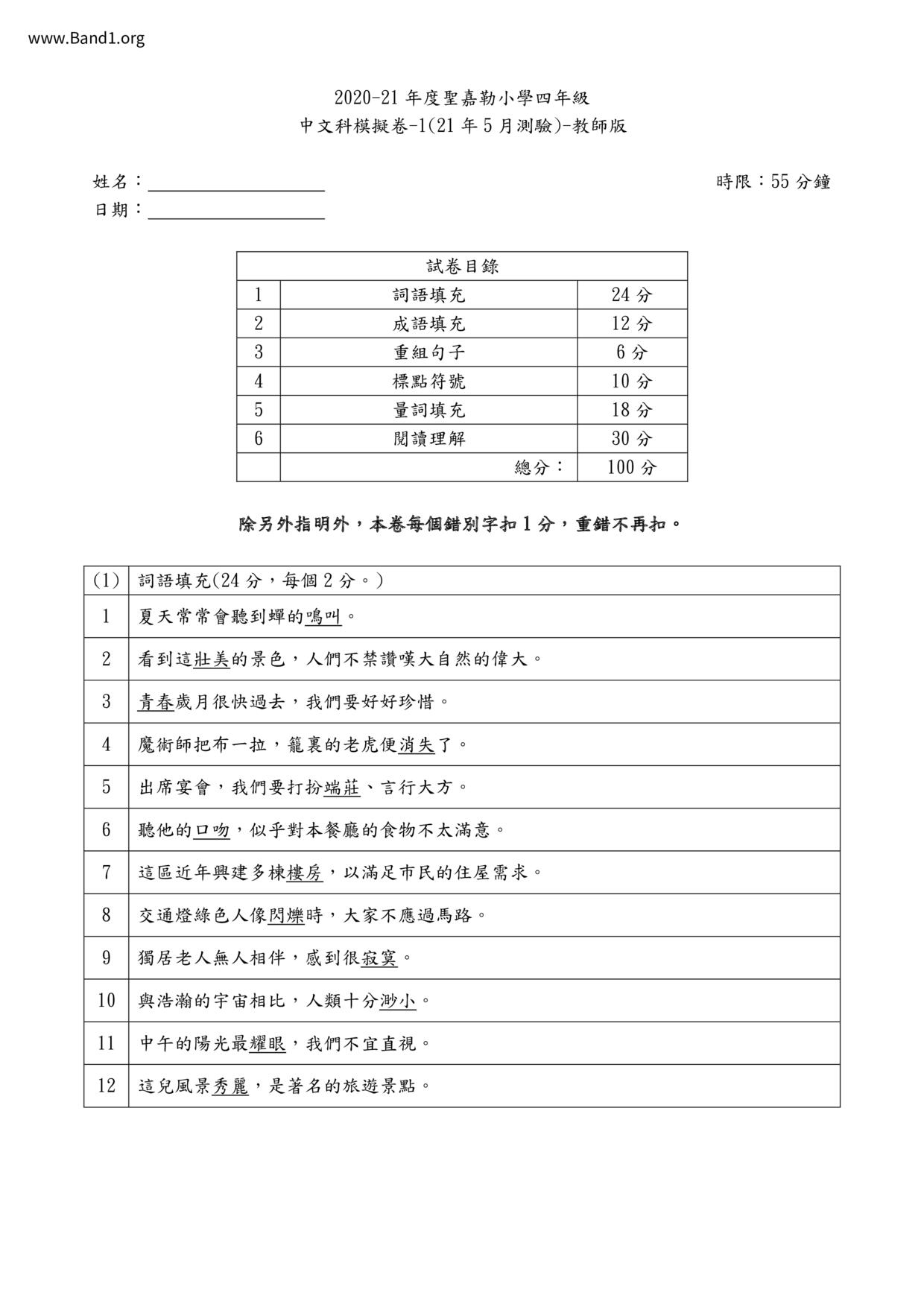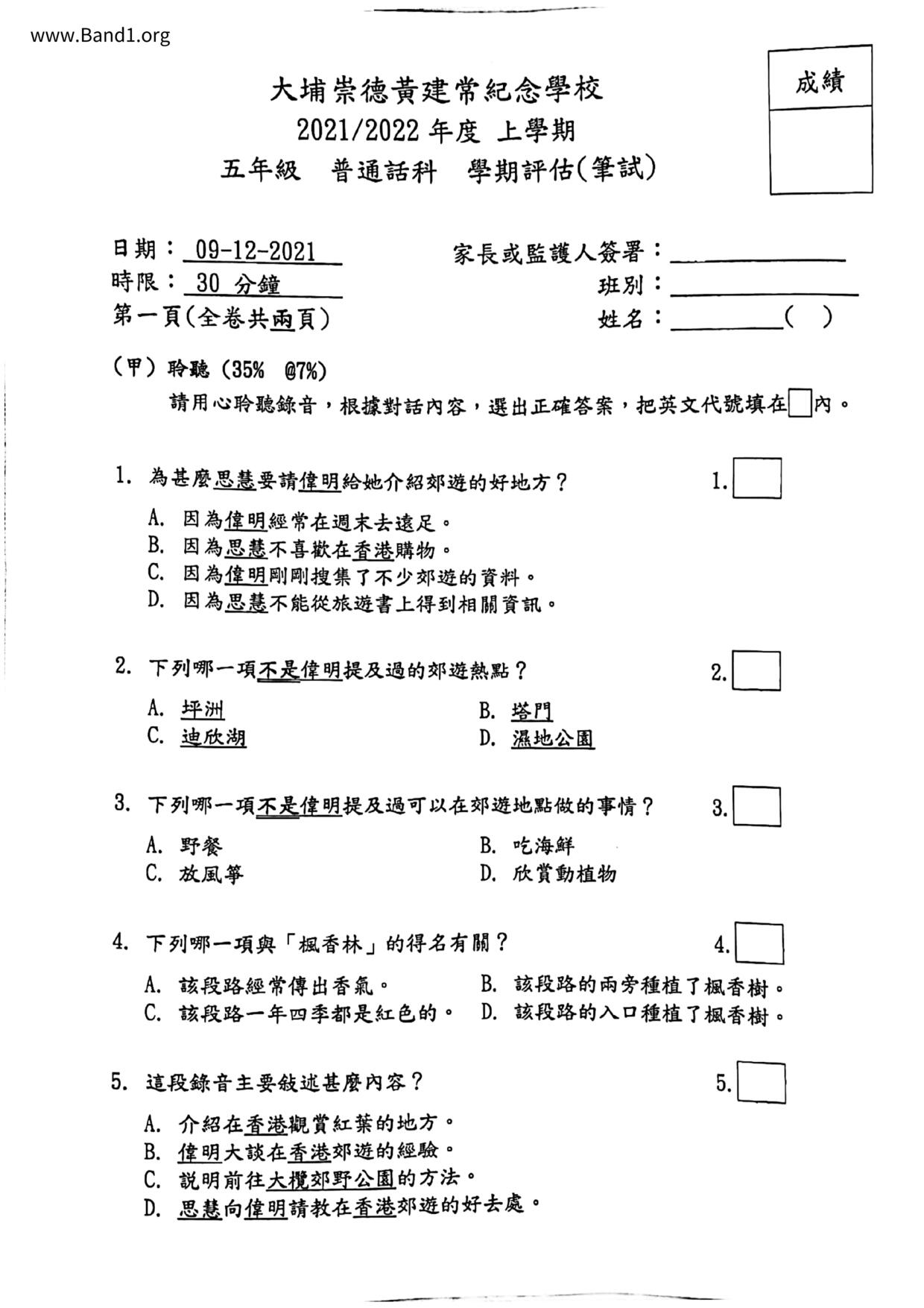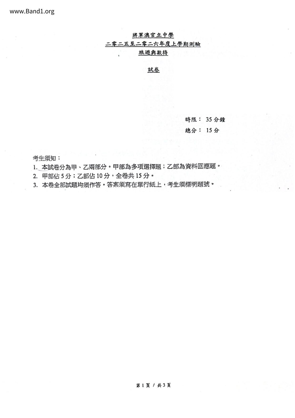 香港 中小學 其他科目 (HK other subjects) 試卷 pdf