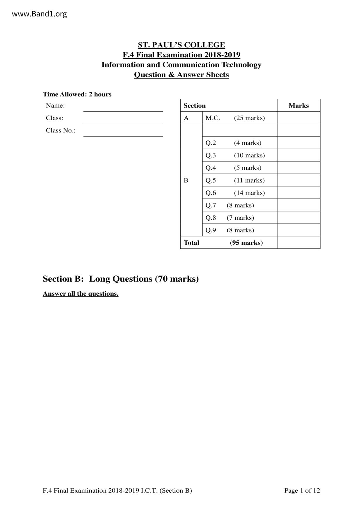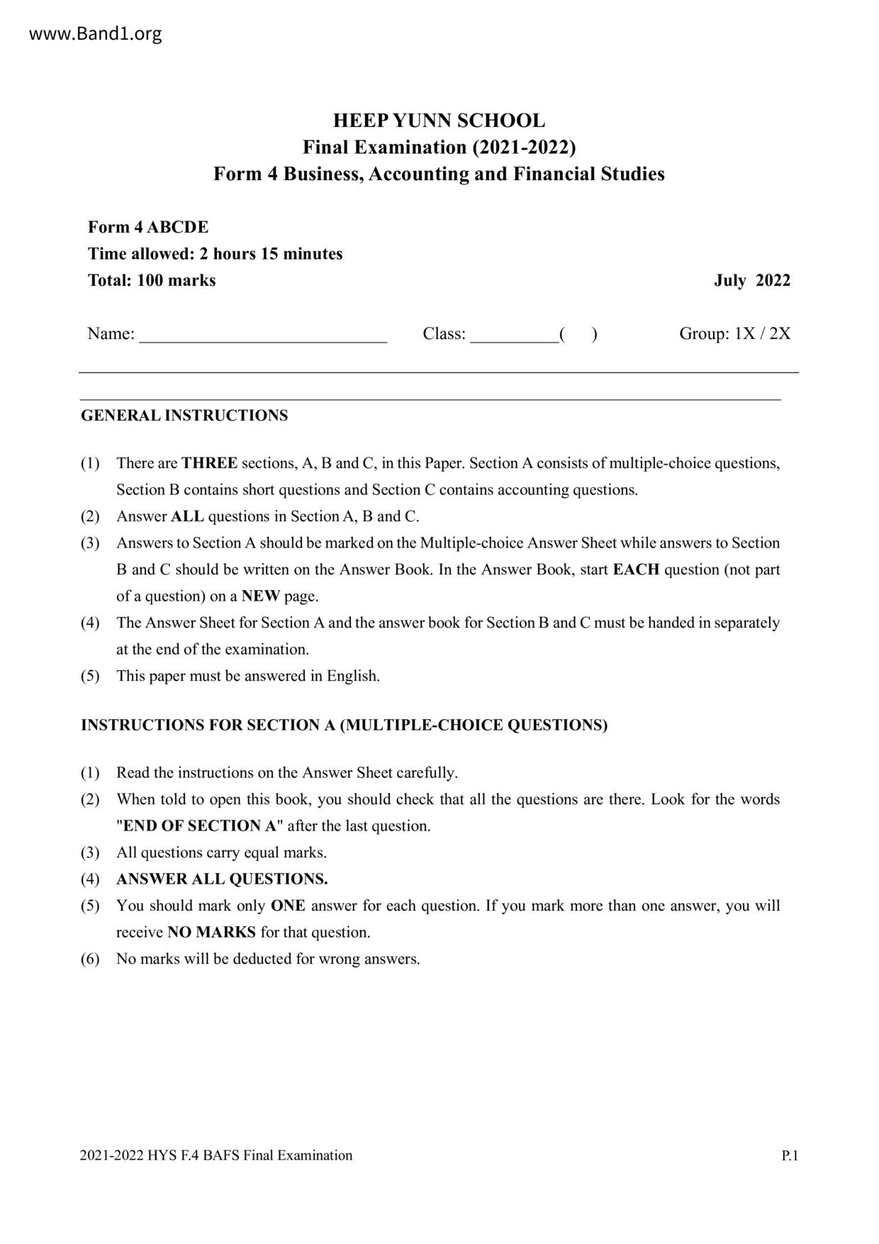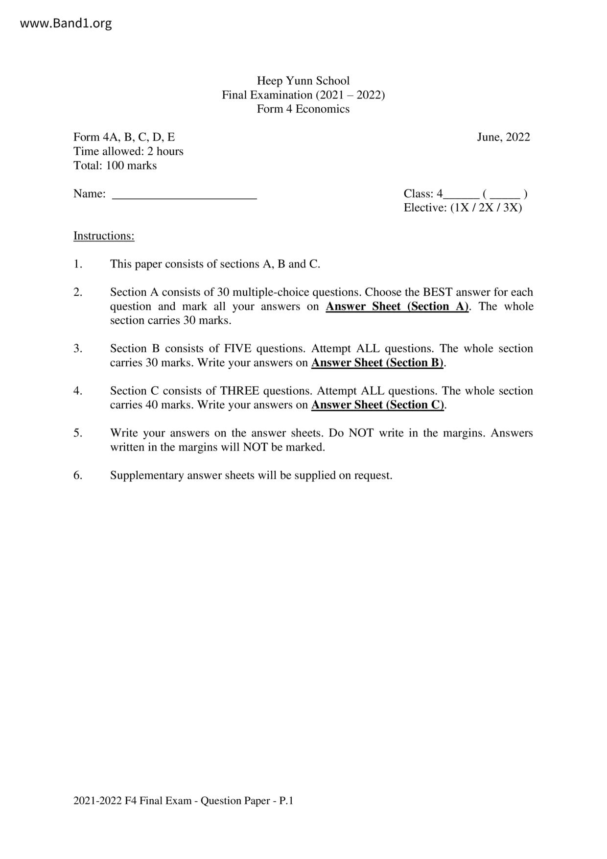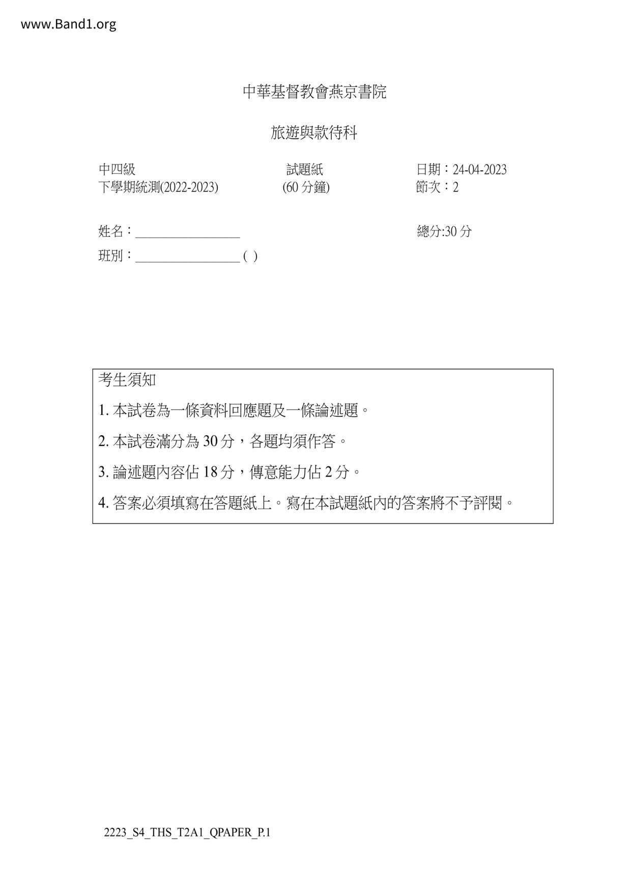 香港 中小學 其他科目 (HK other subjects) 試卷 pdf