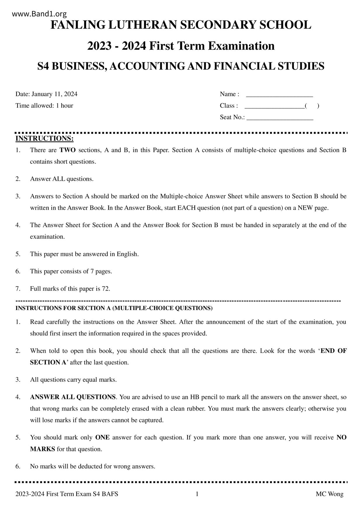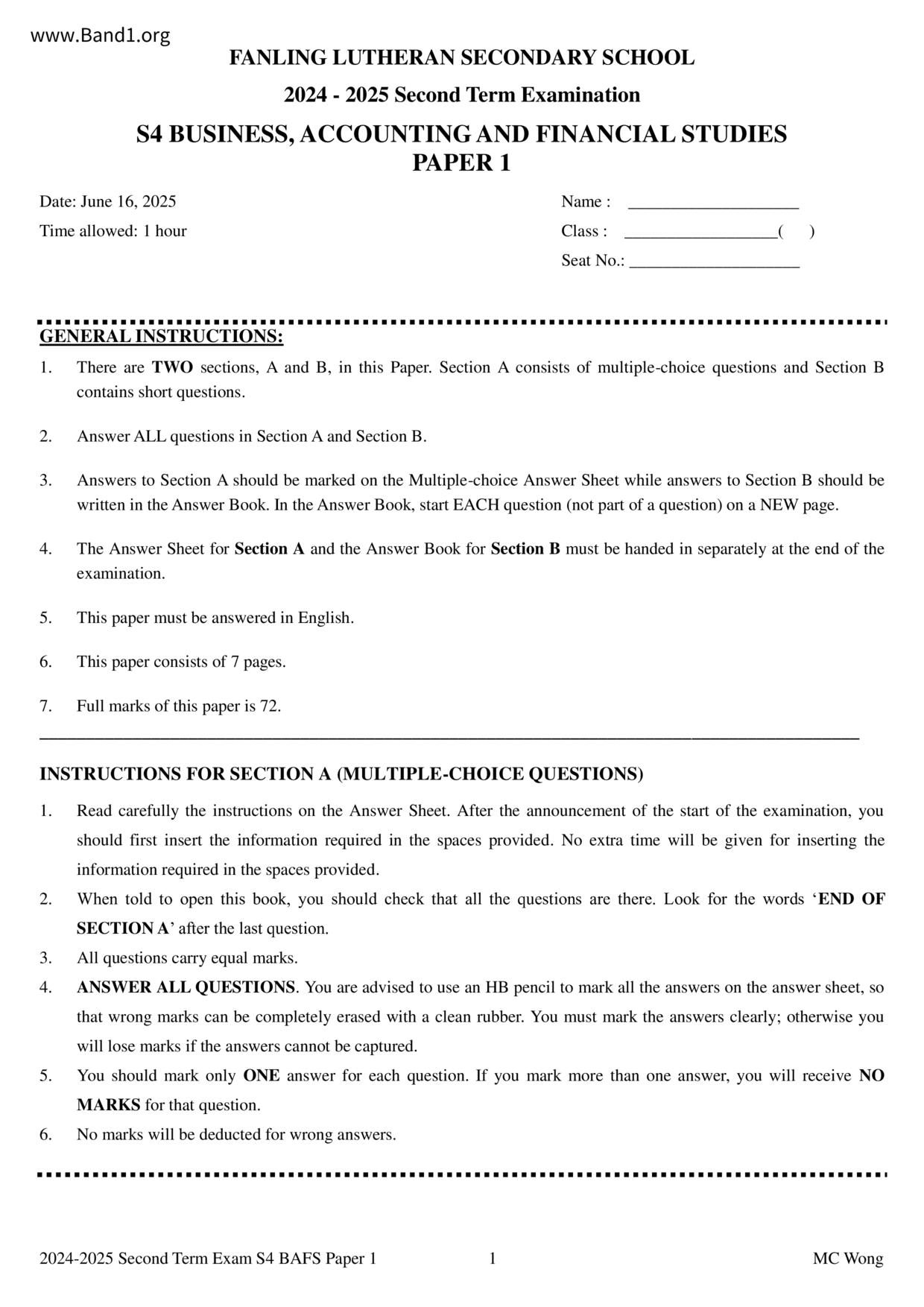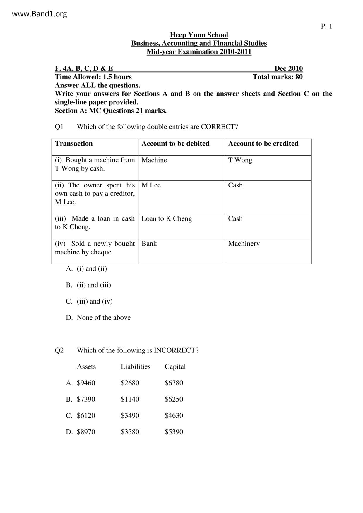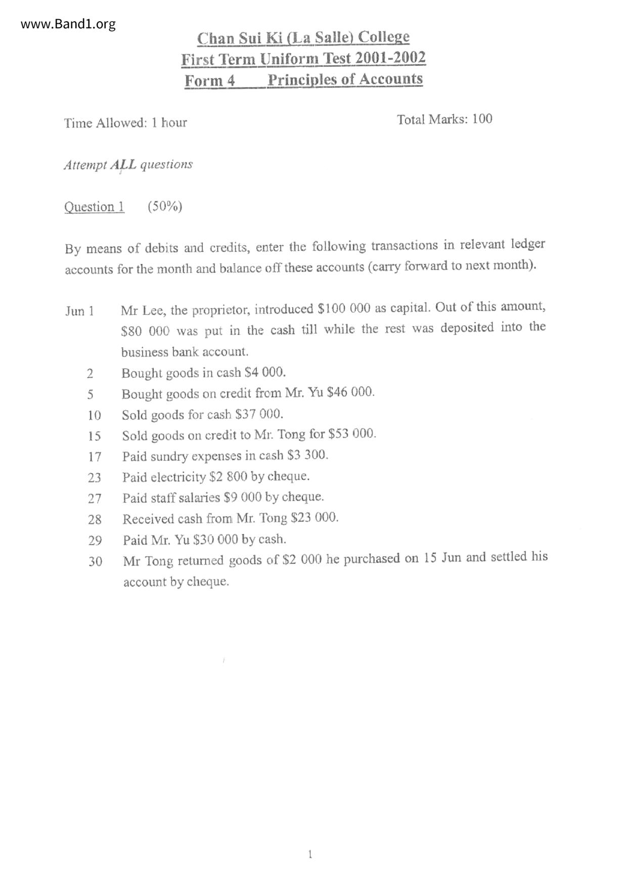 中六 會計 播道書院