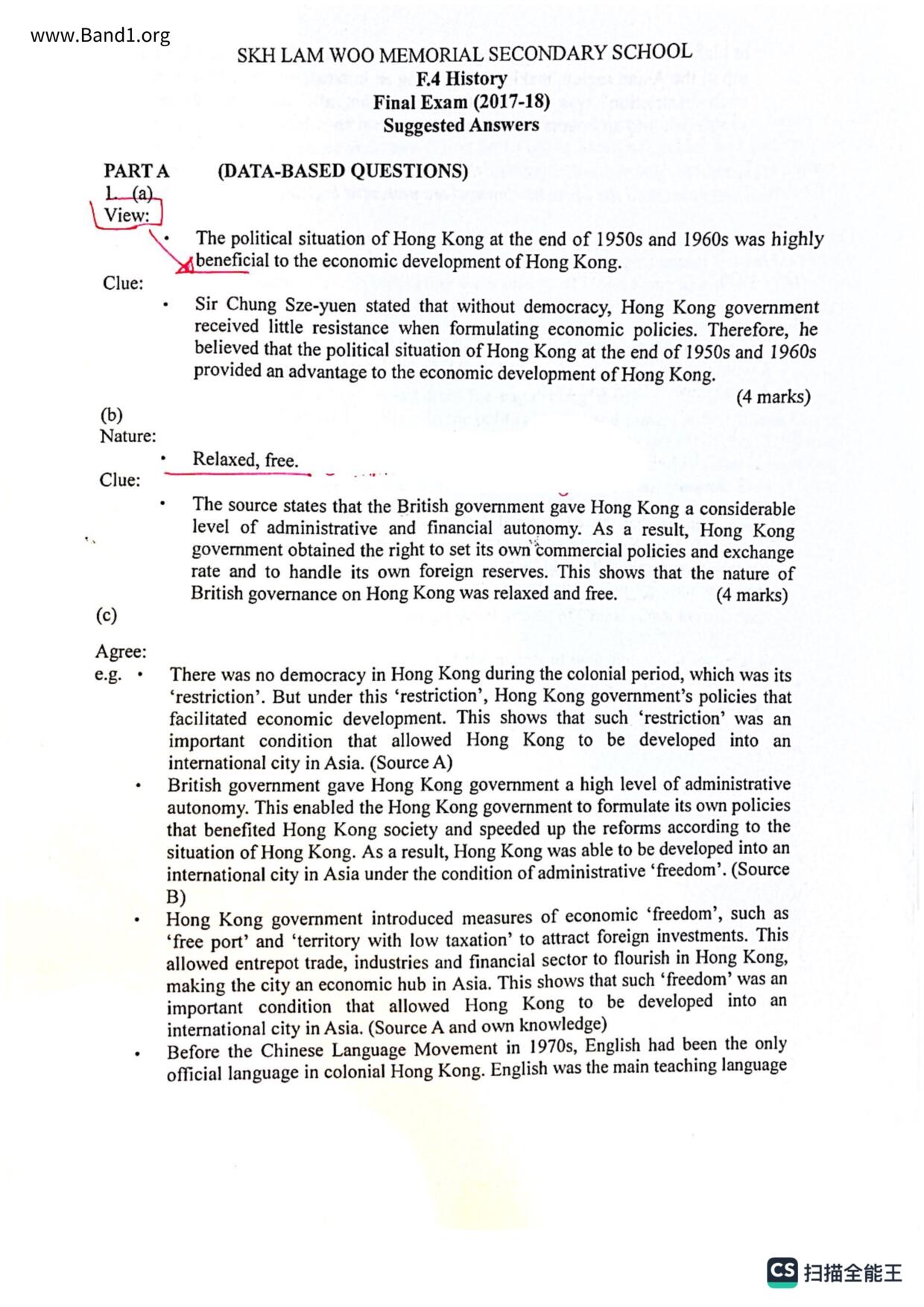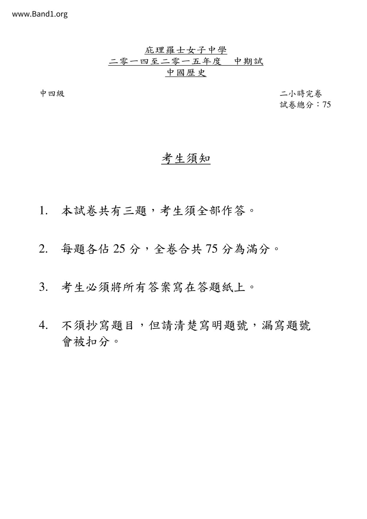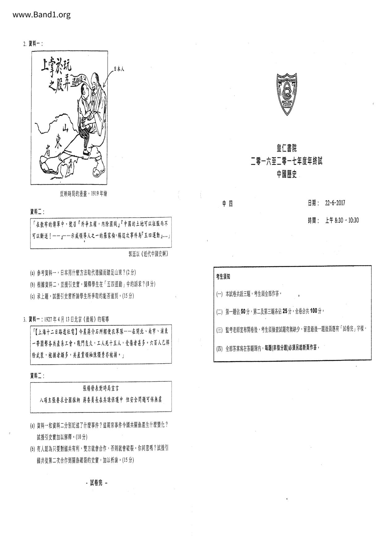 中三 中史 香港真光書院
