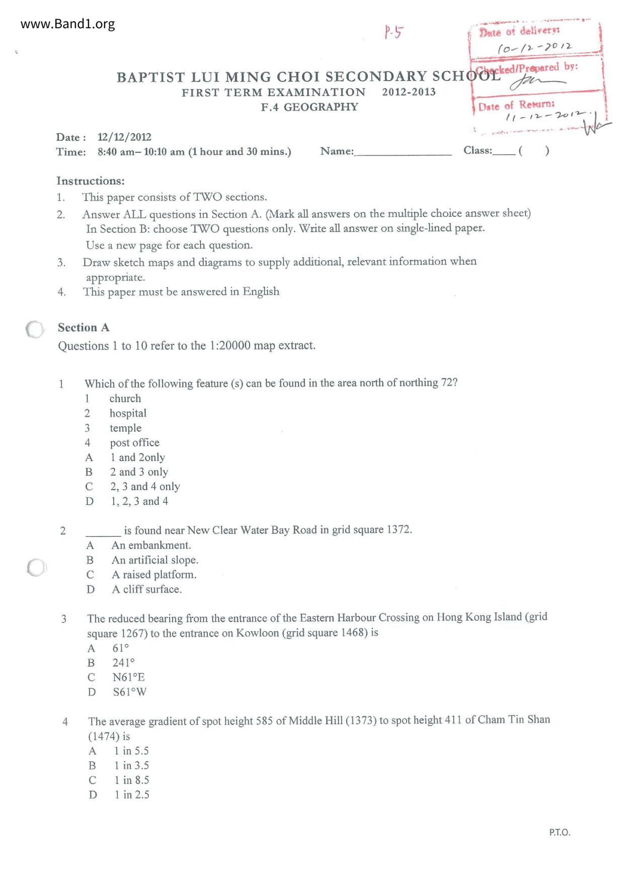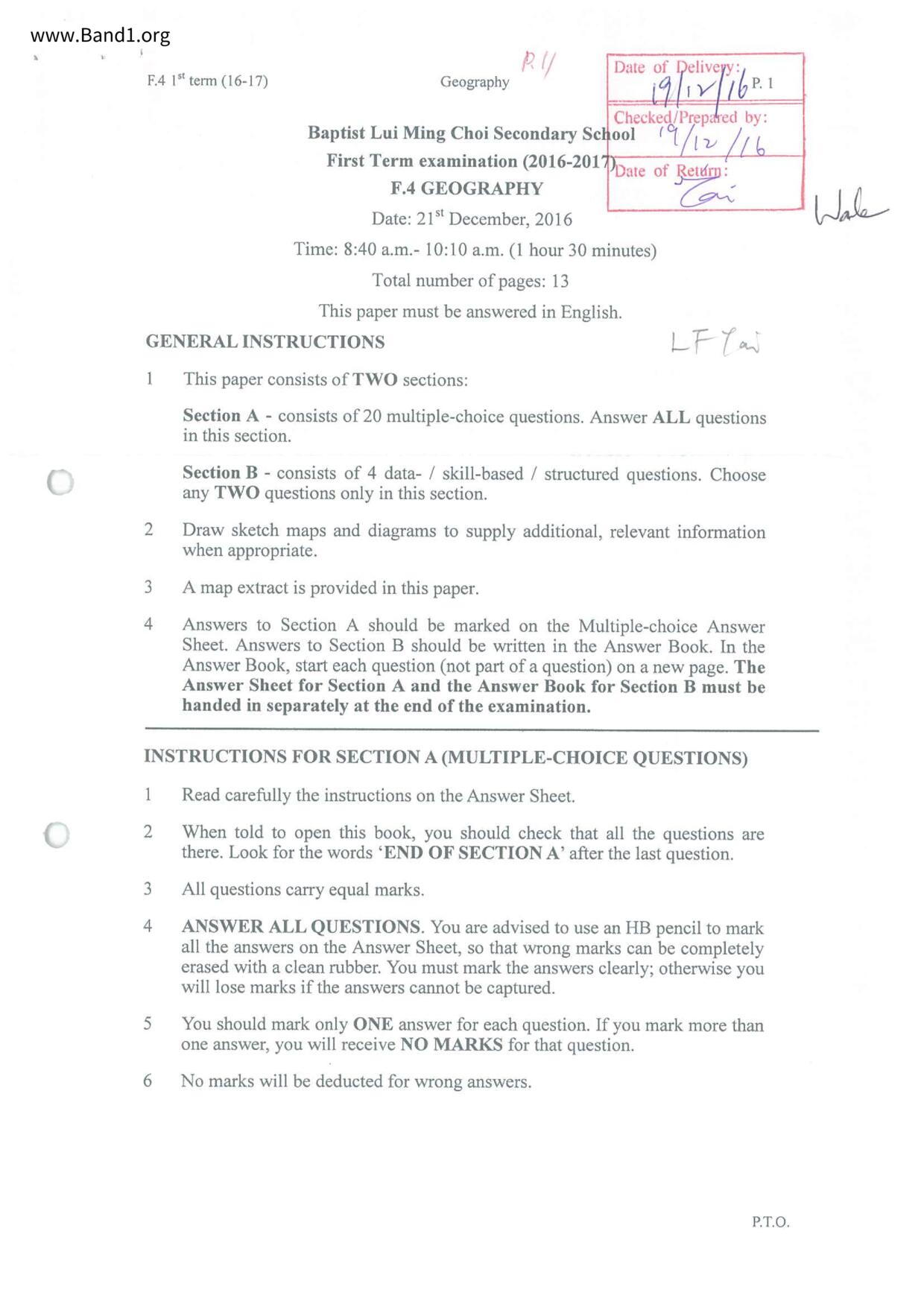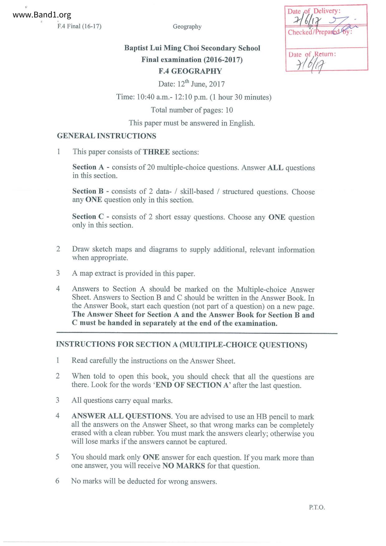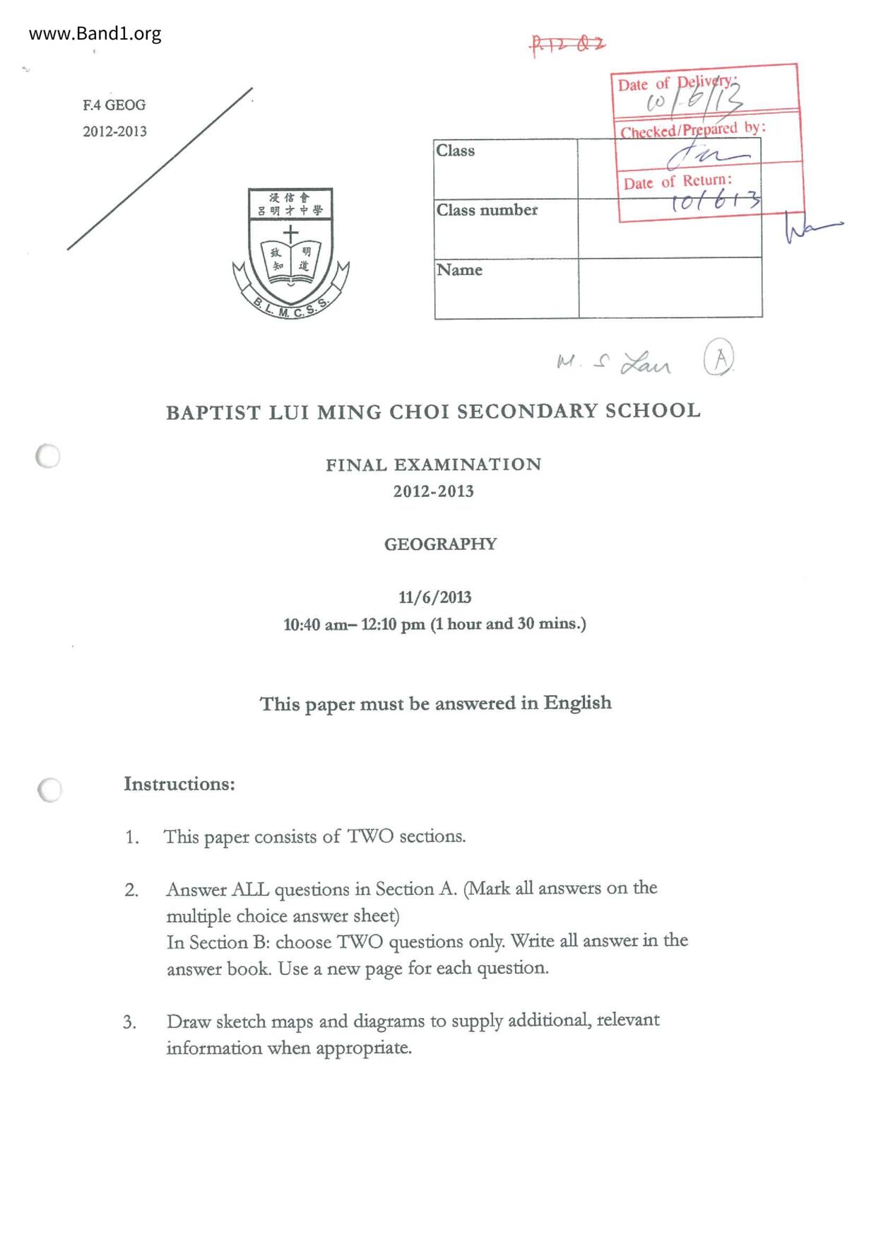中五 西史 浸信會呂明才中學