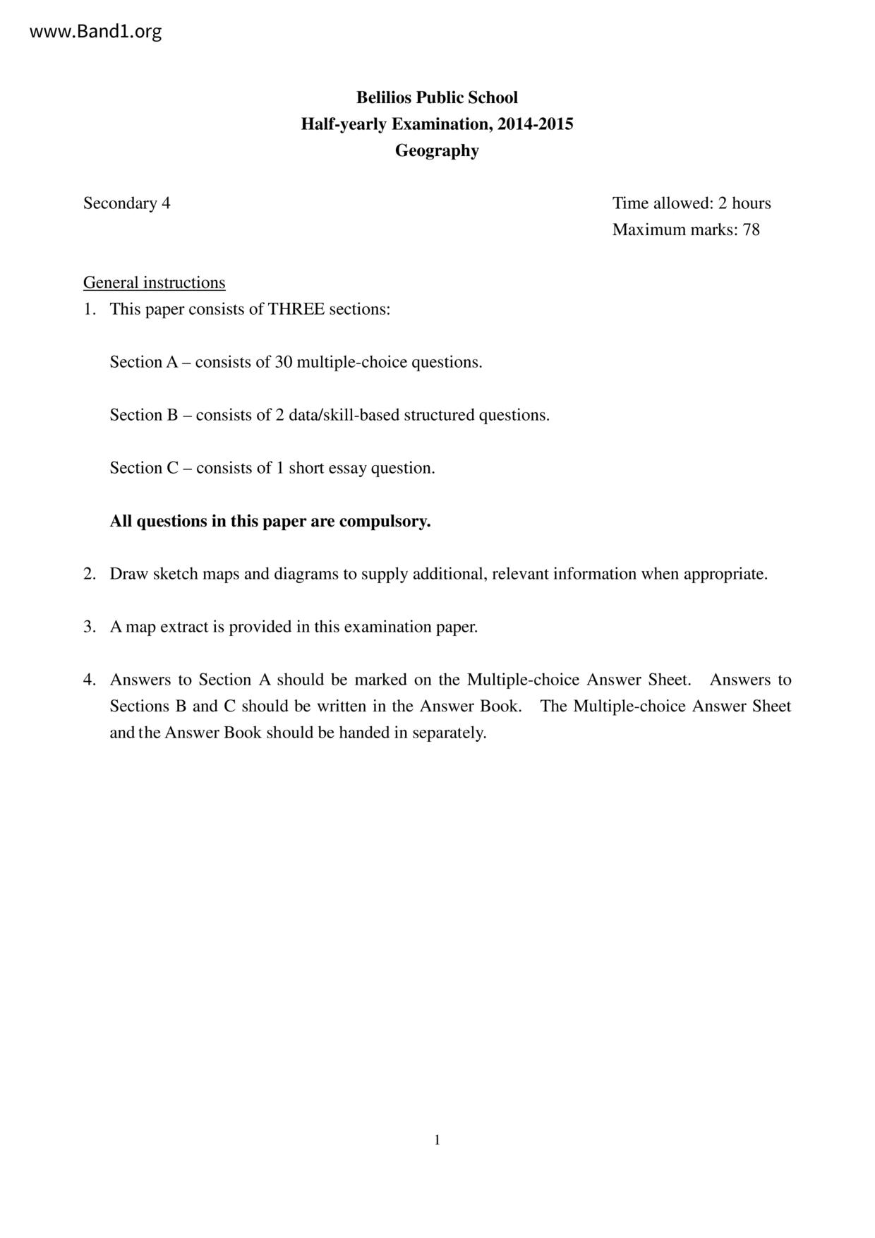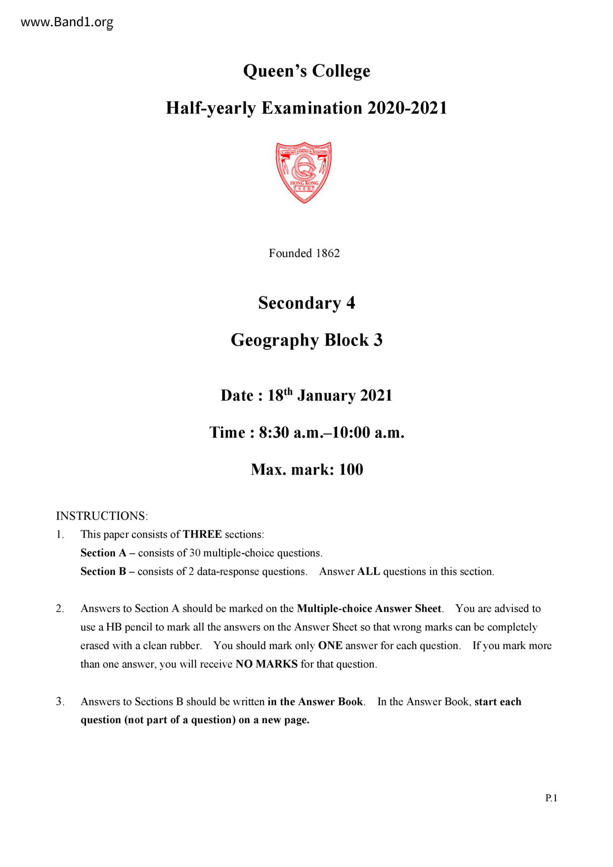 中三 地理 皇仁書院