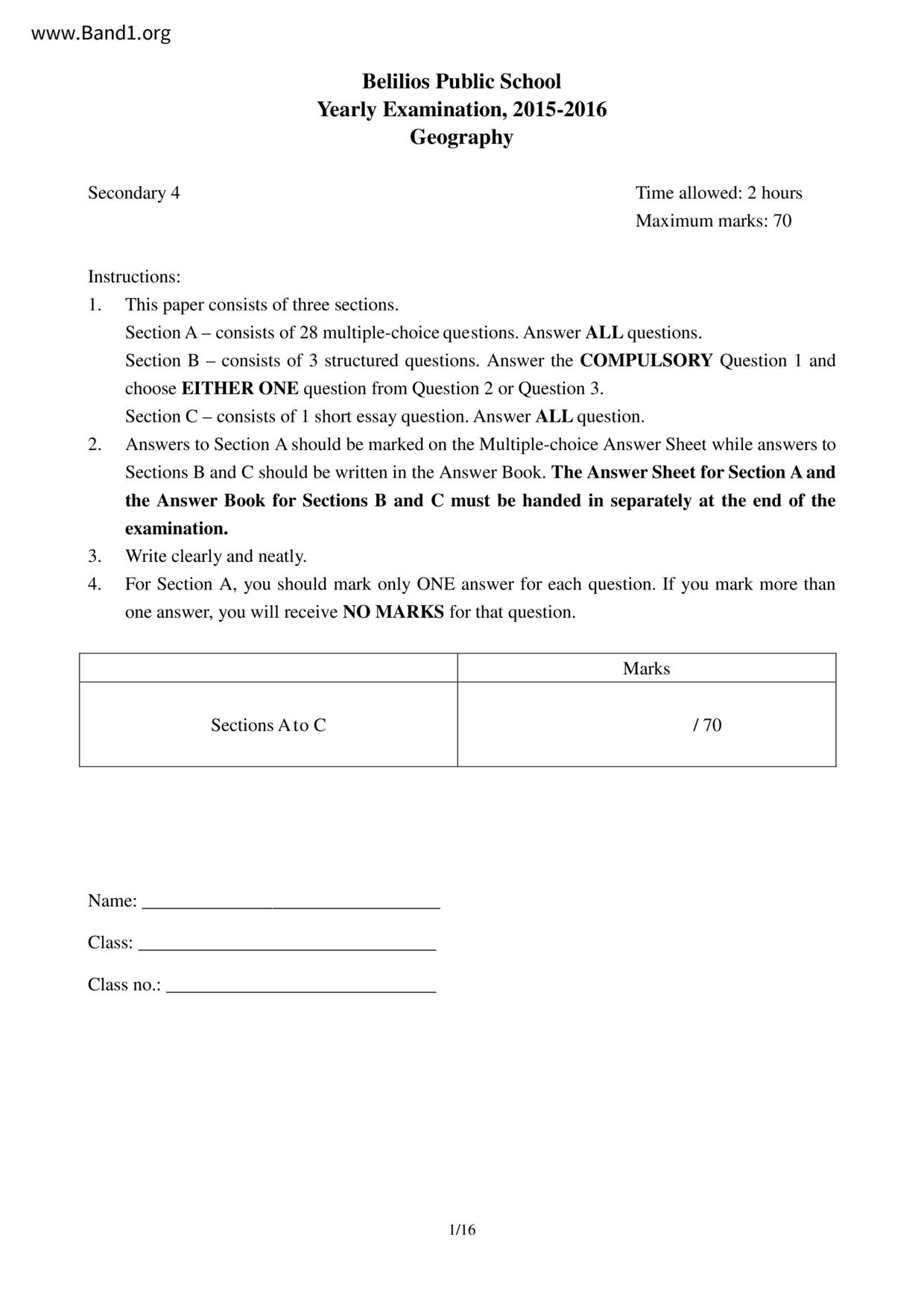中一 地理 聖公會林護紀念中學