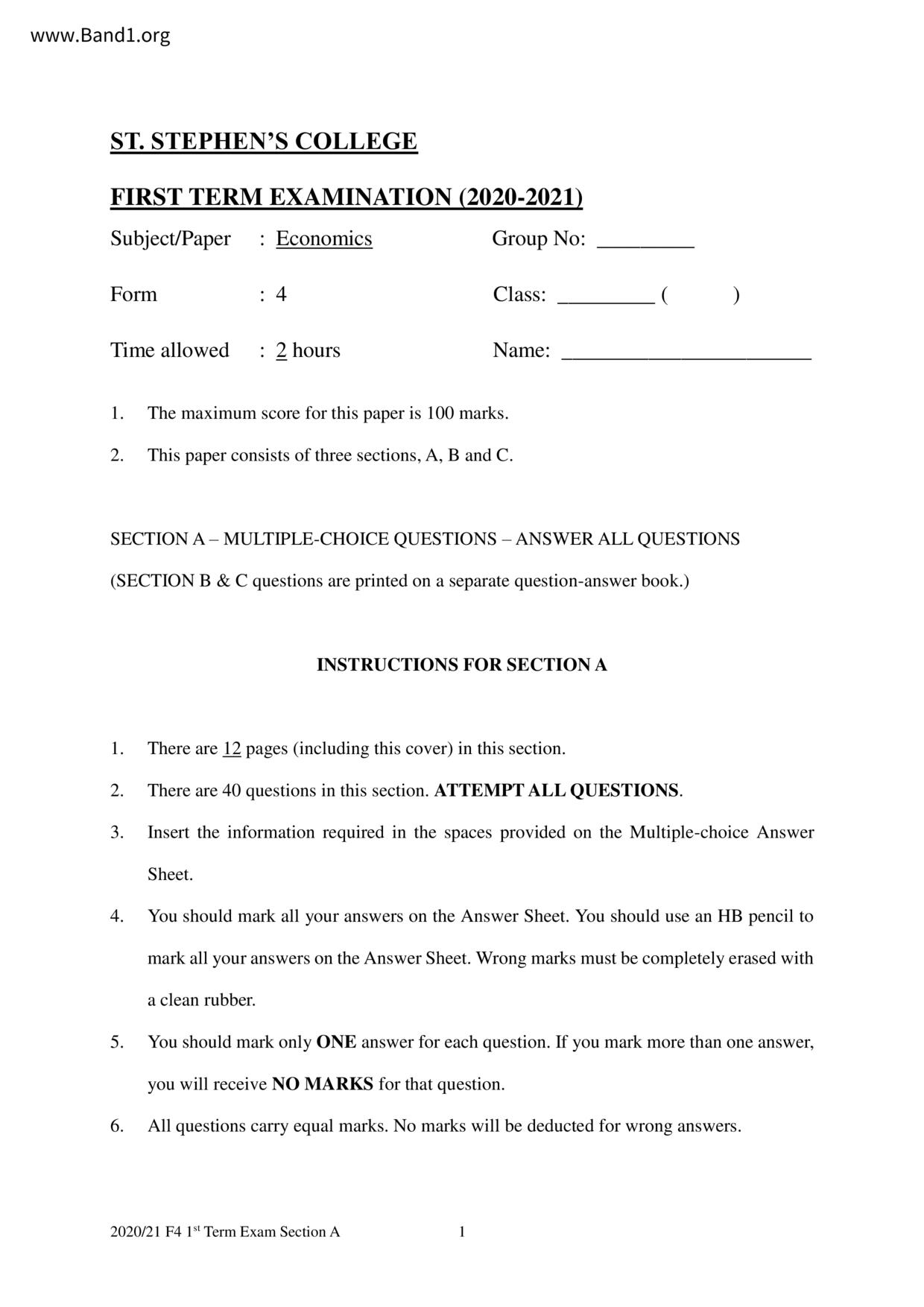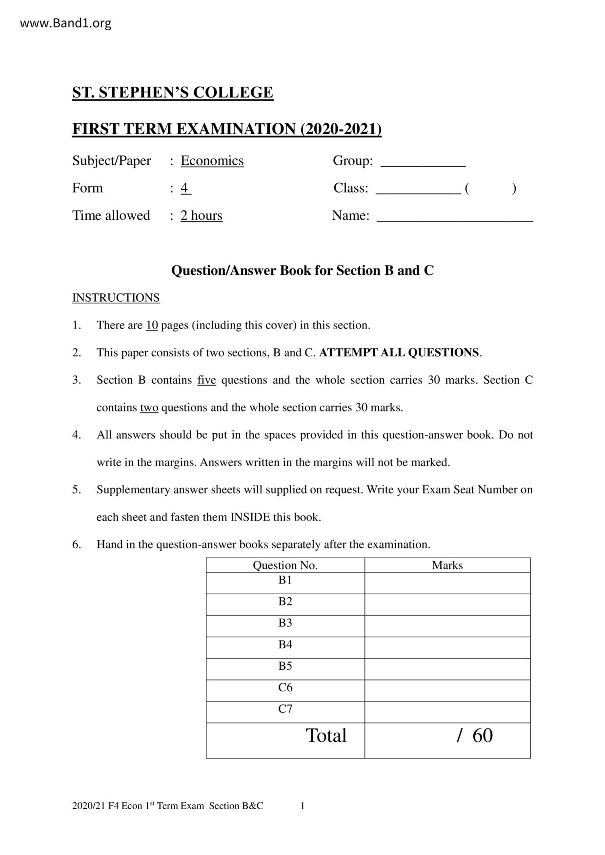 中四 經濟 聖士提反書院