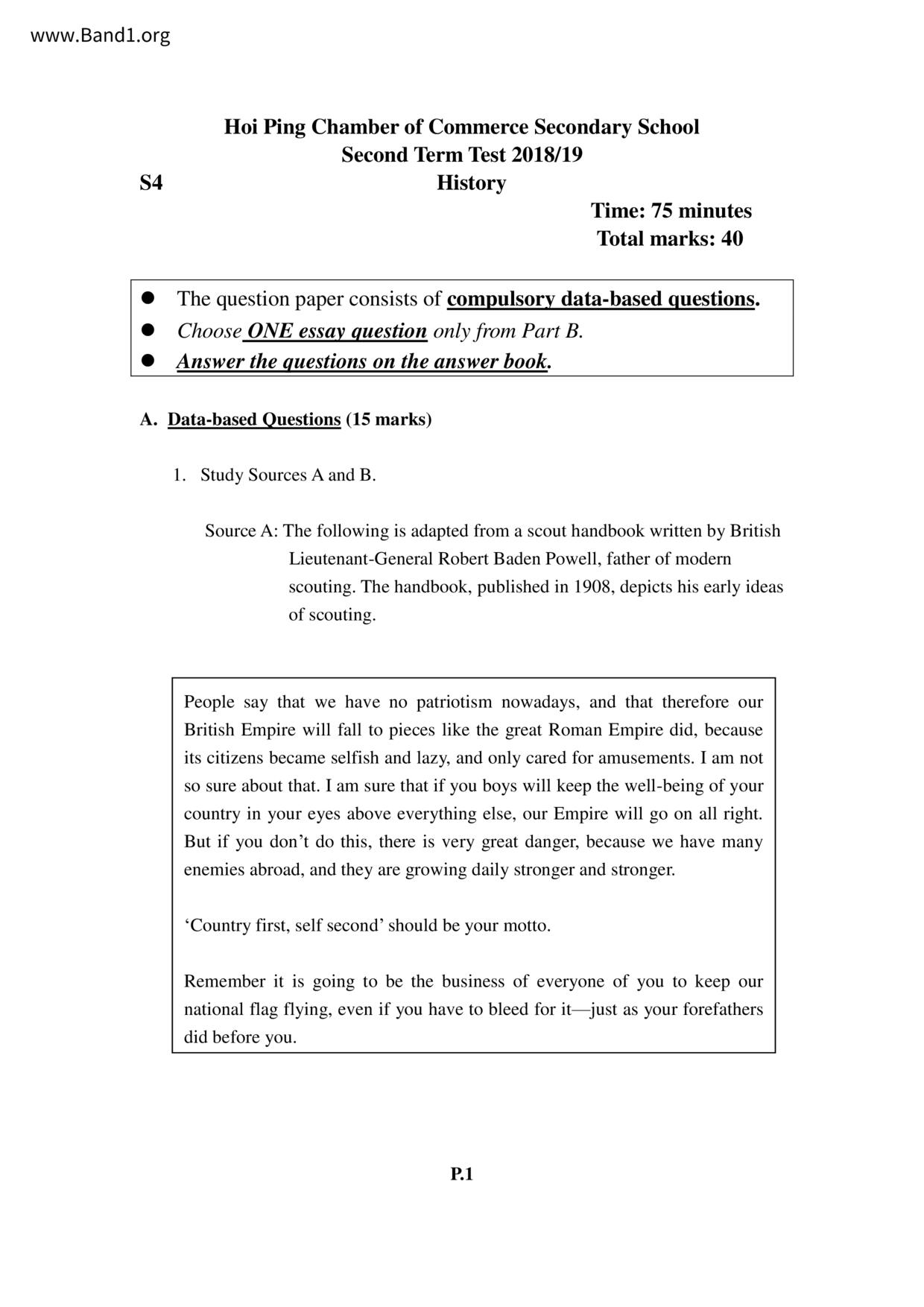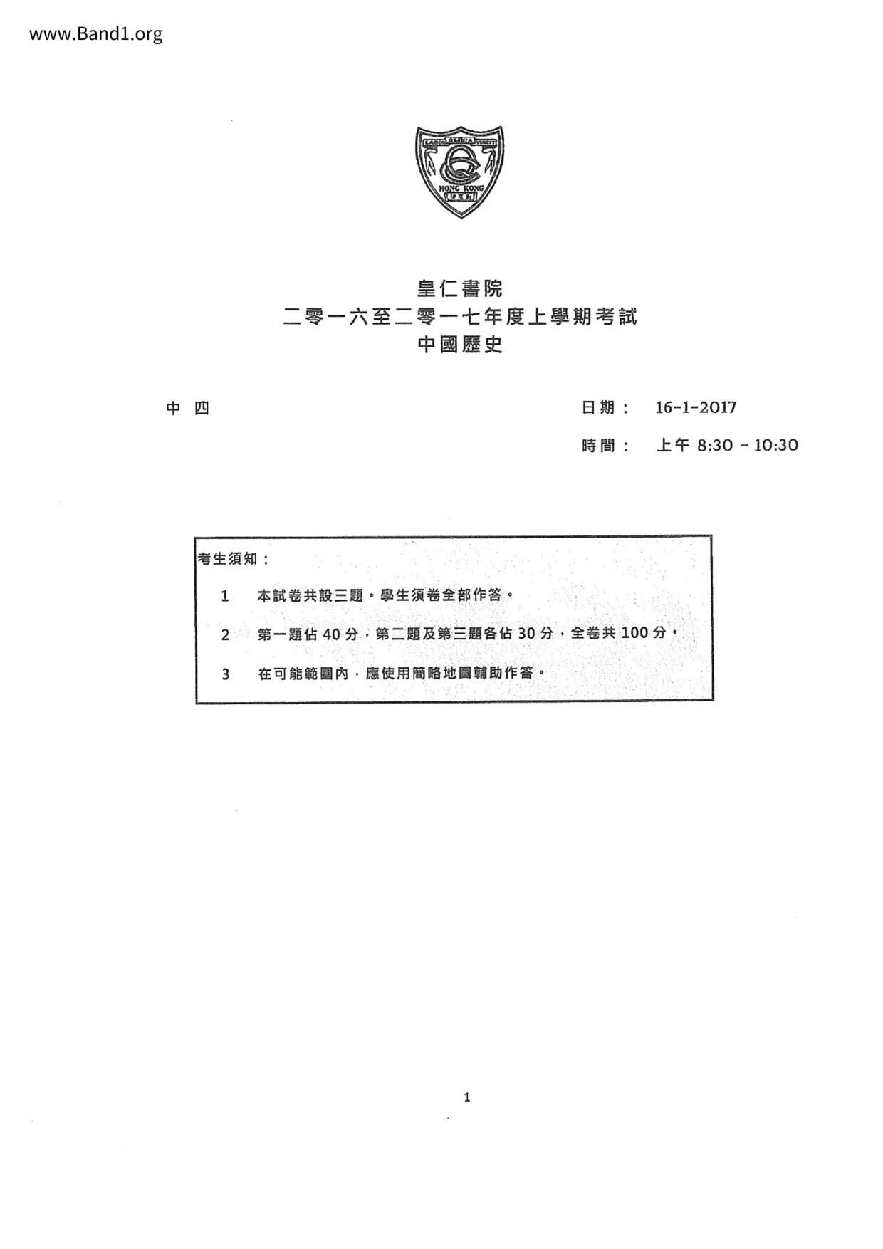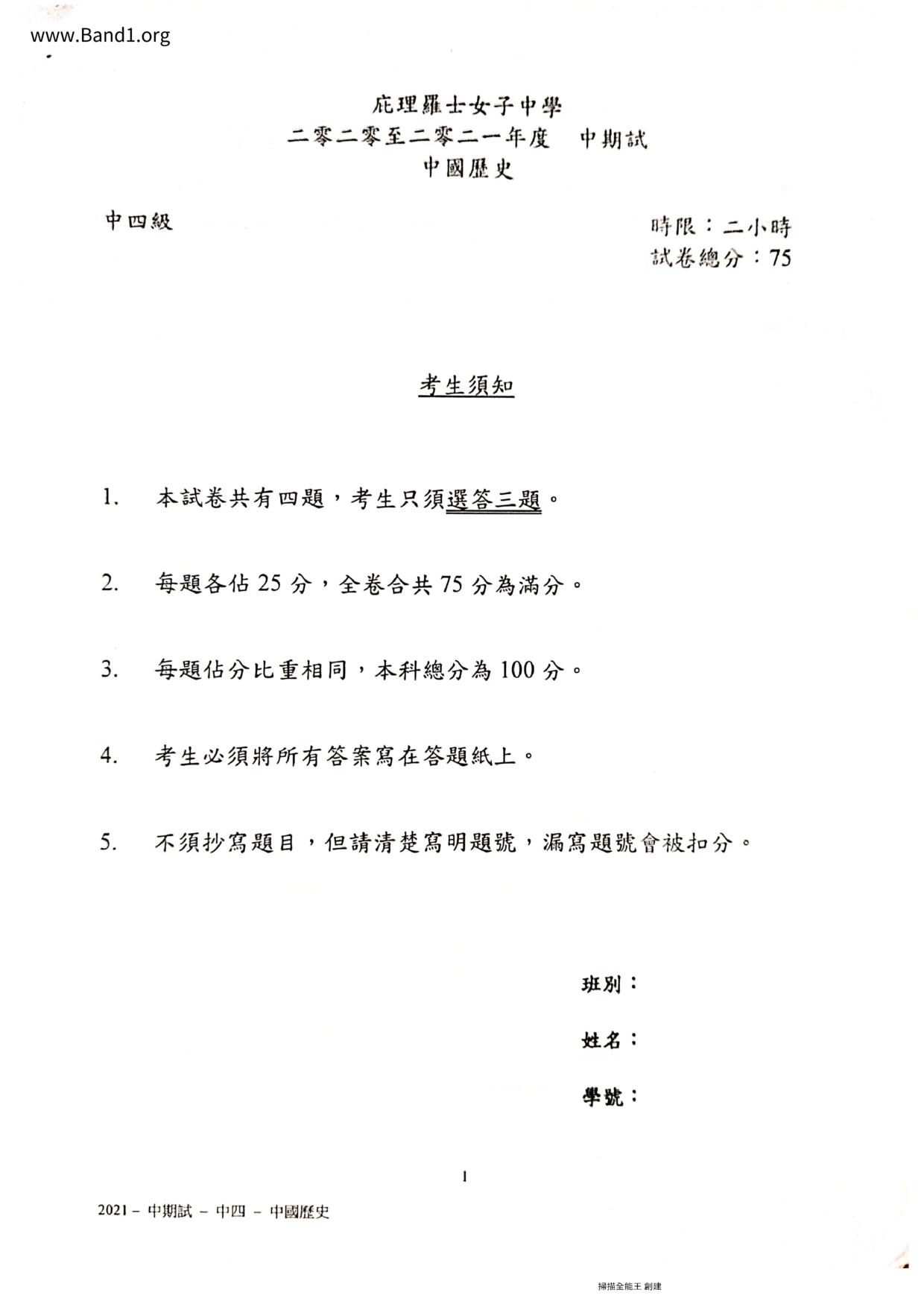 中五 西史 保良局百周年李兆忠紀念中學