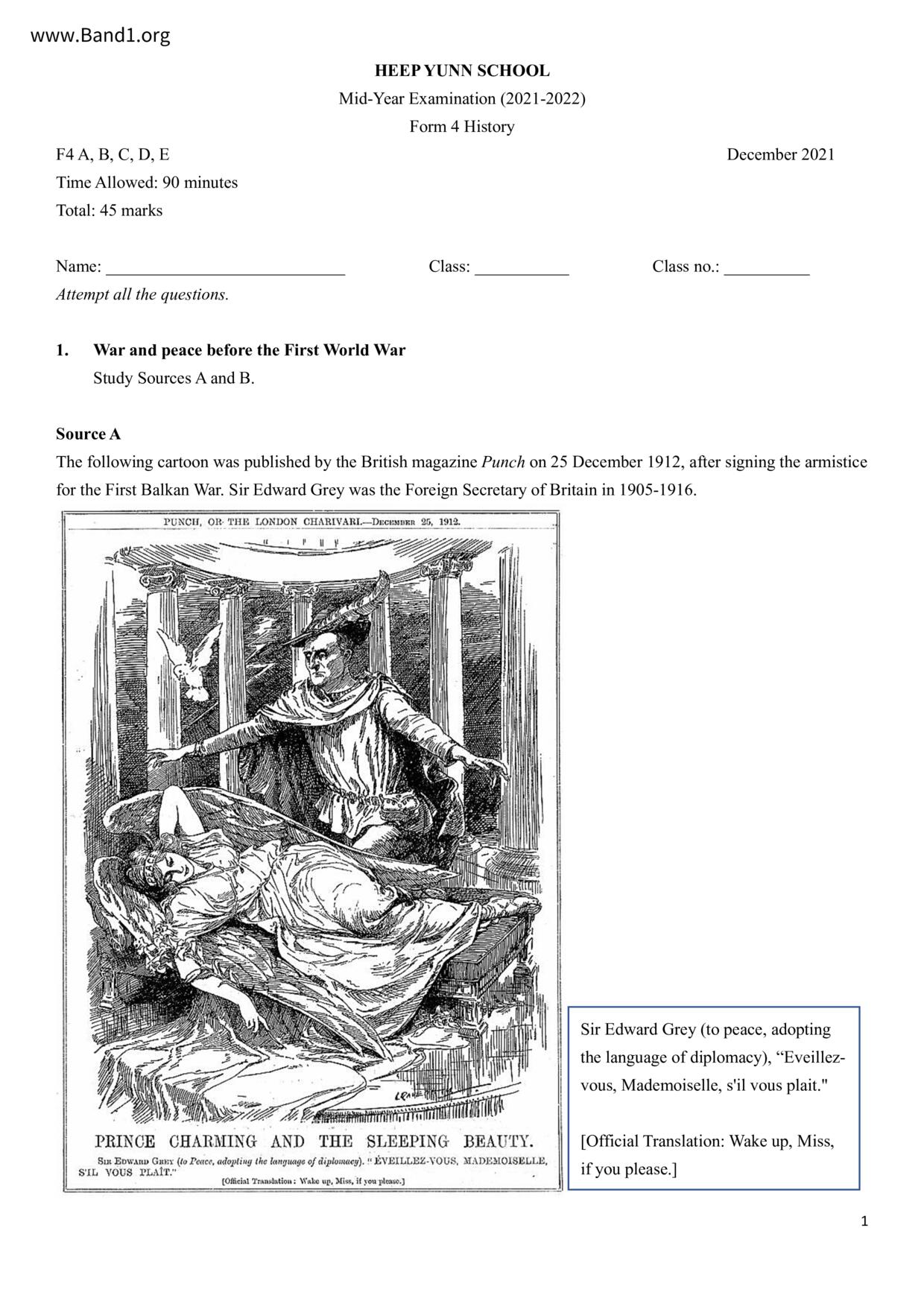 中二 西史 寶血會上智英文書院