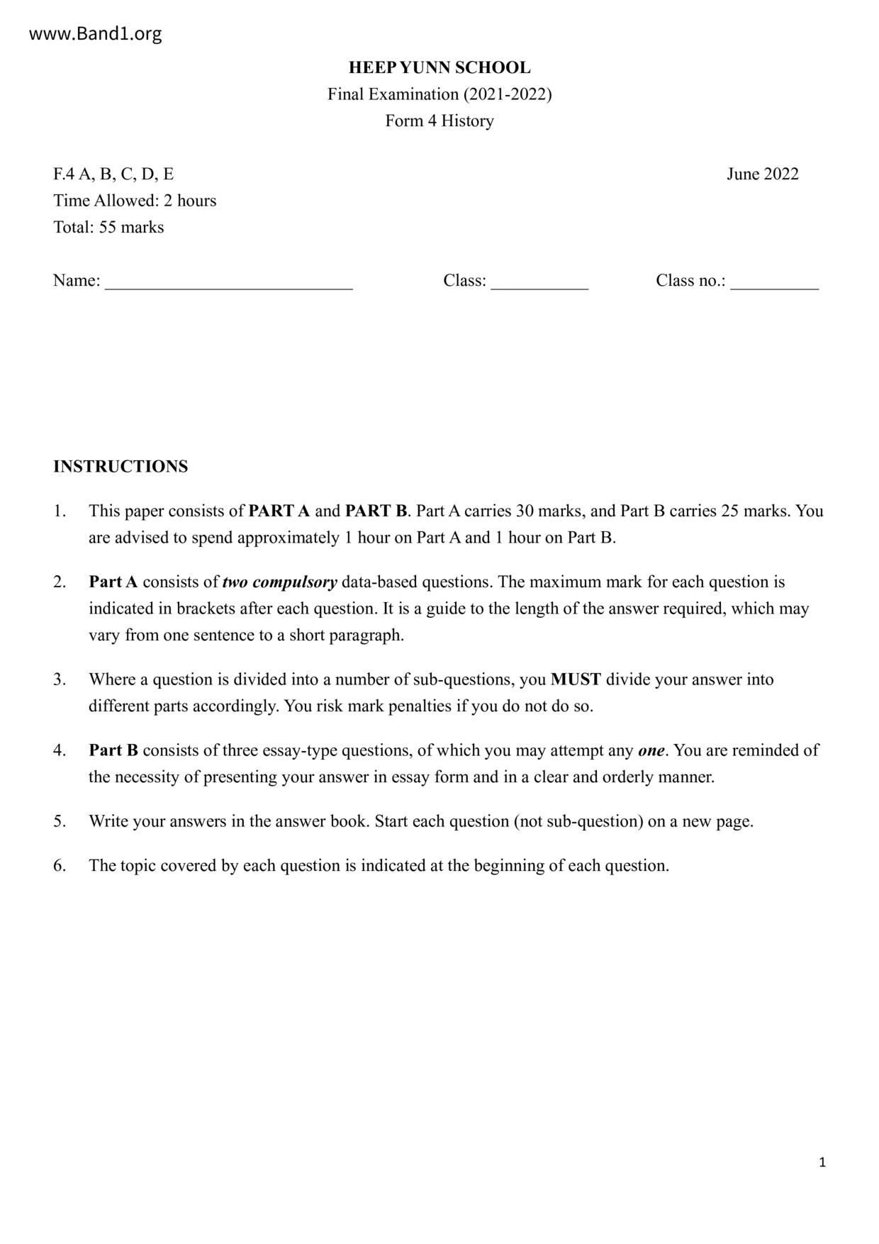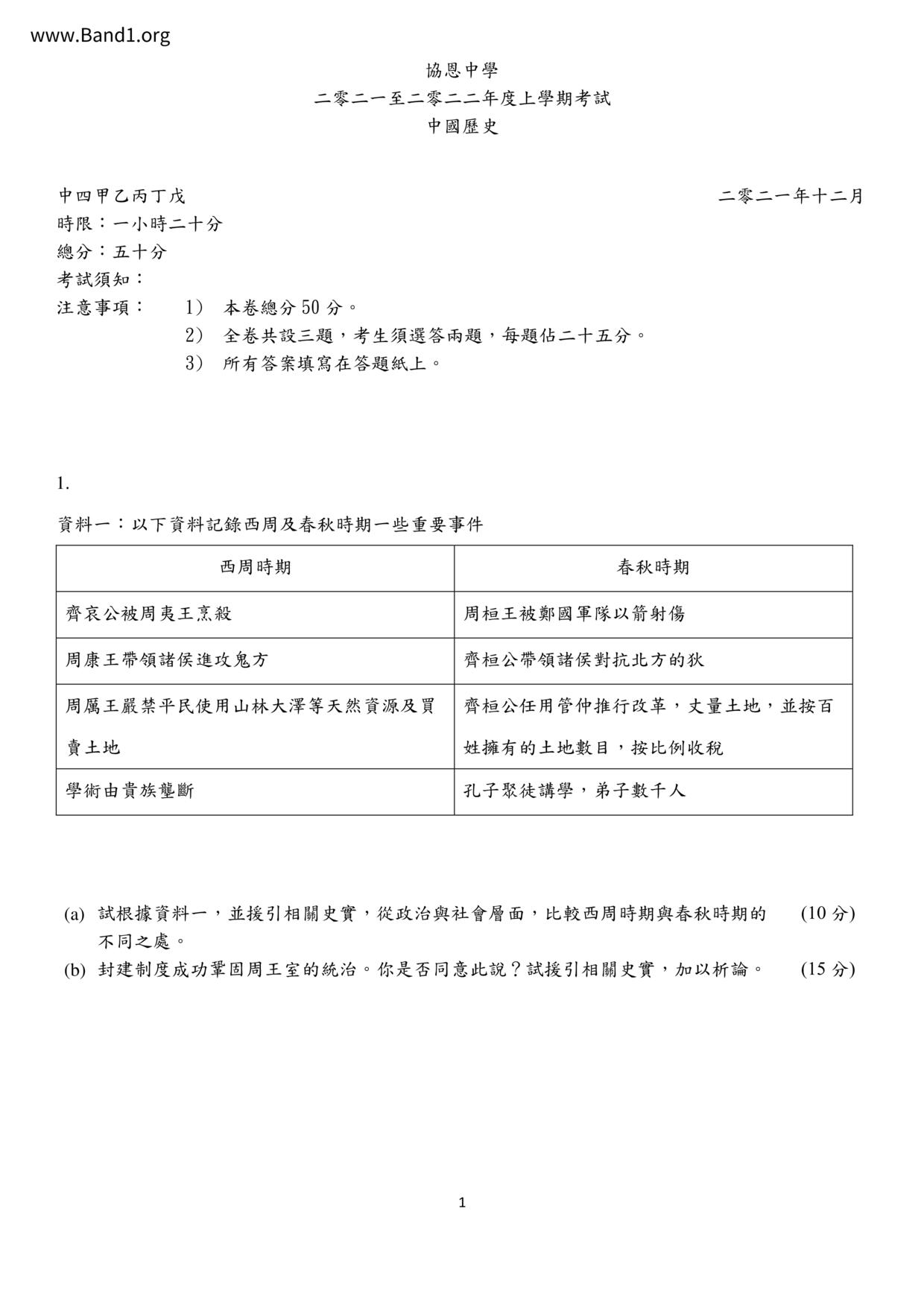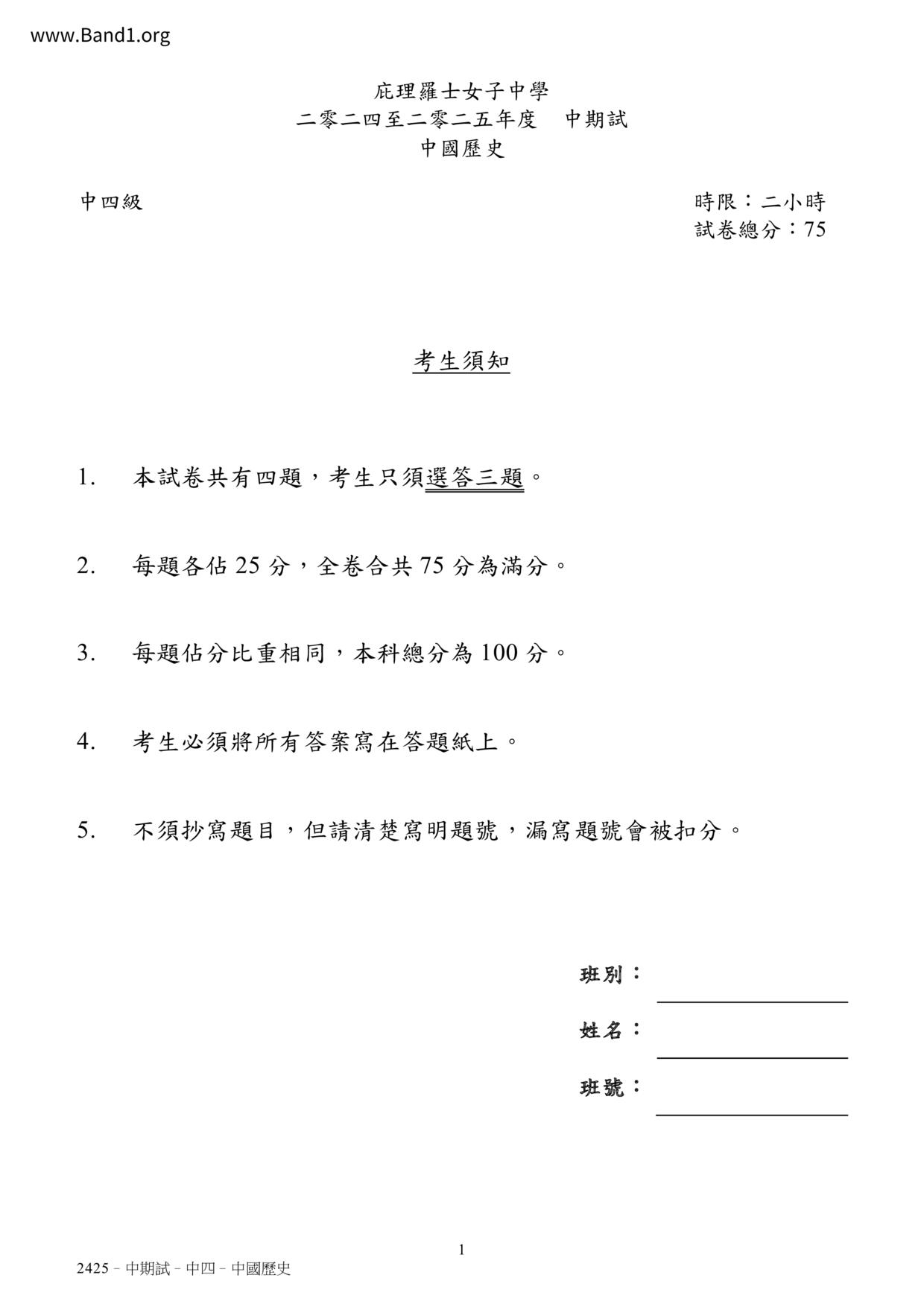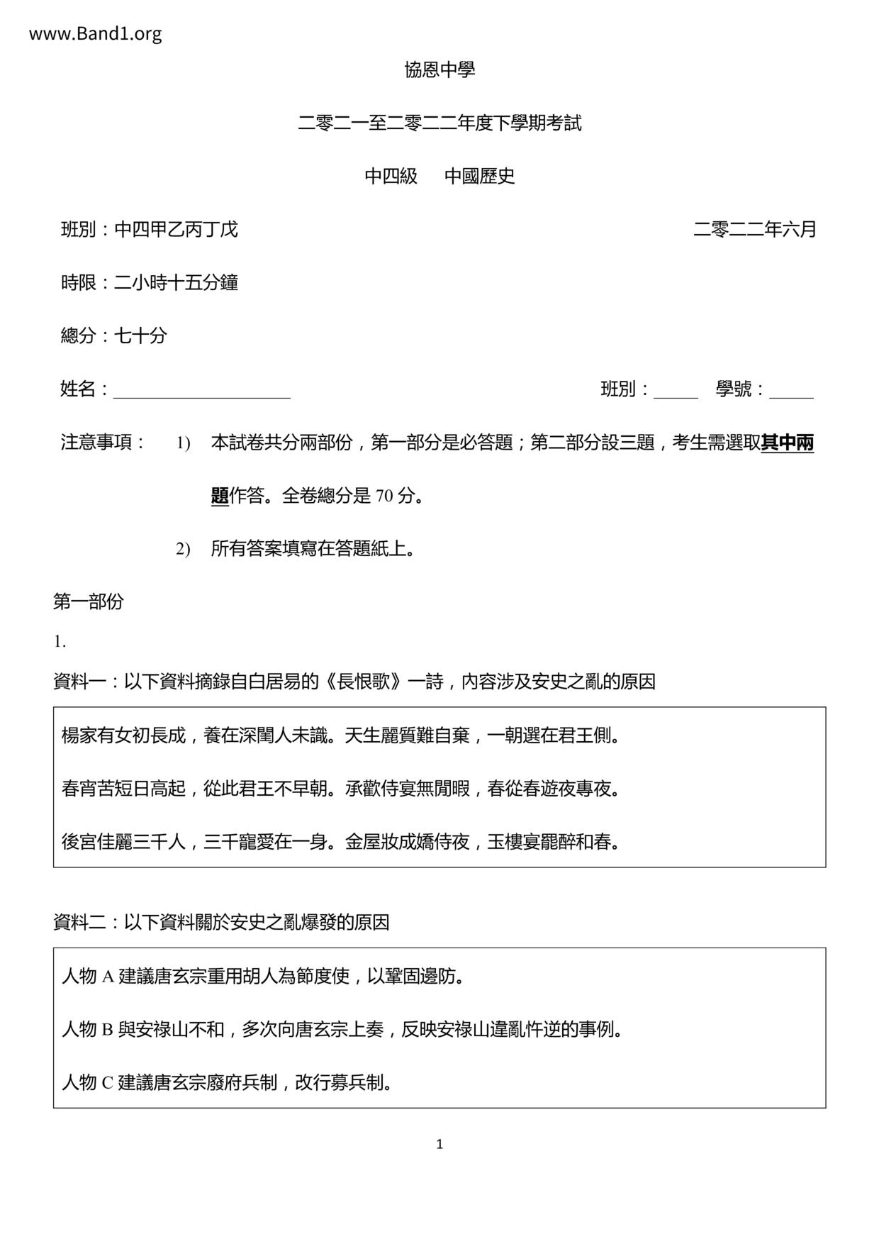 中一 中史 (F1 Chinese History)