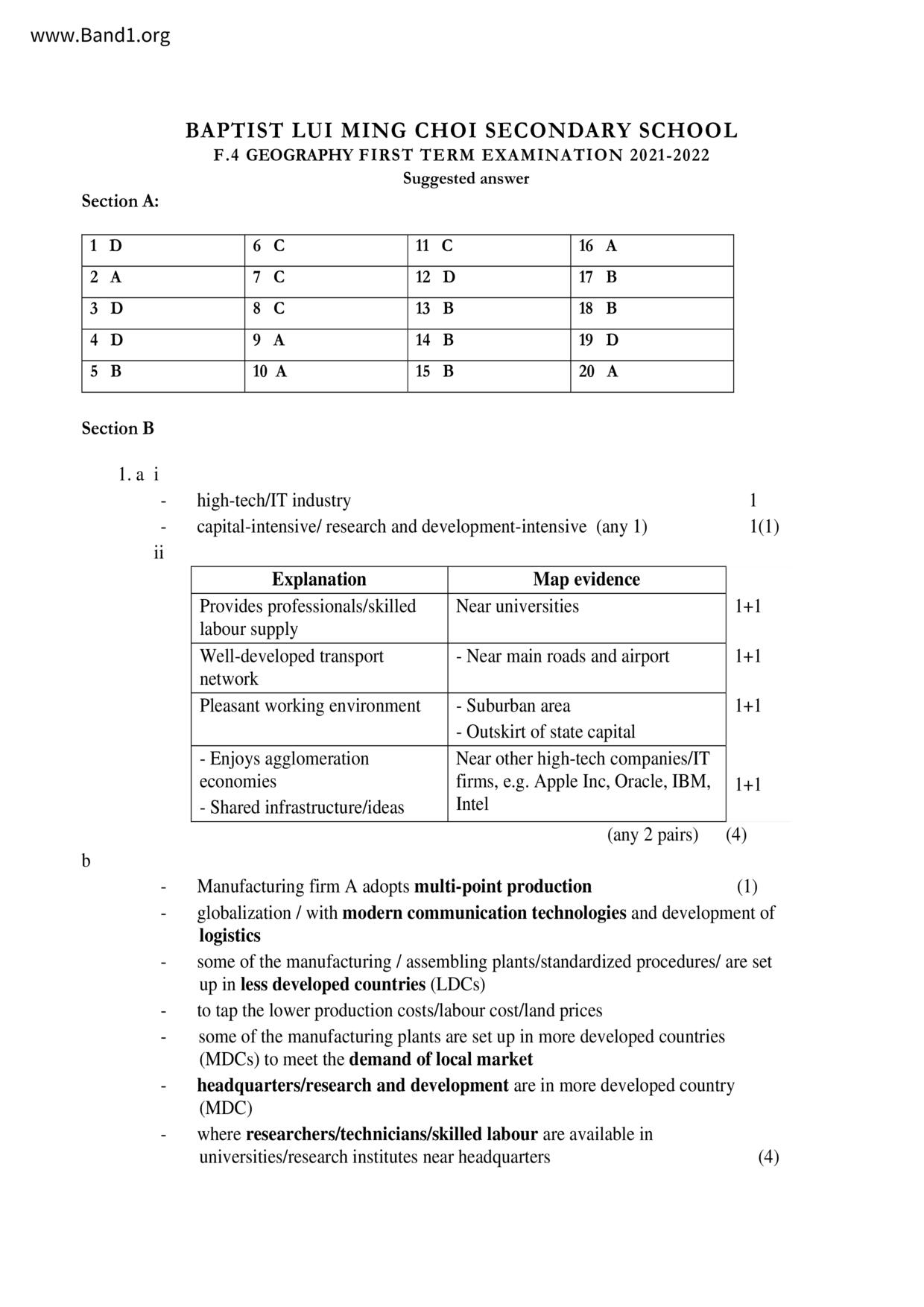 中一 地理 屯門天主教中學