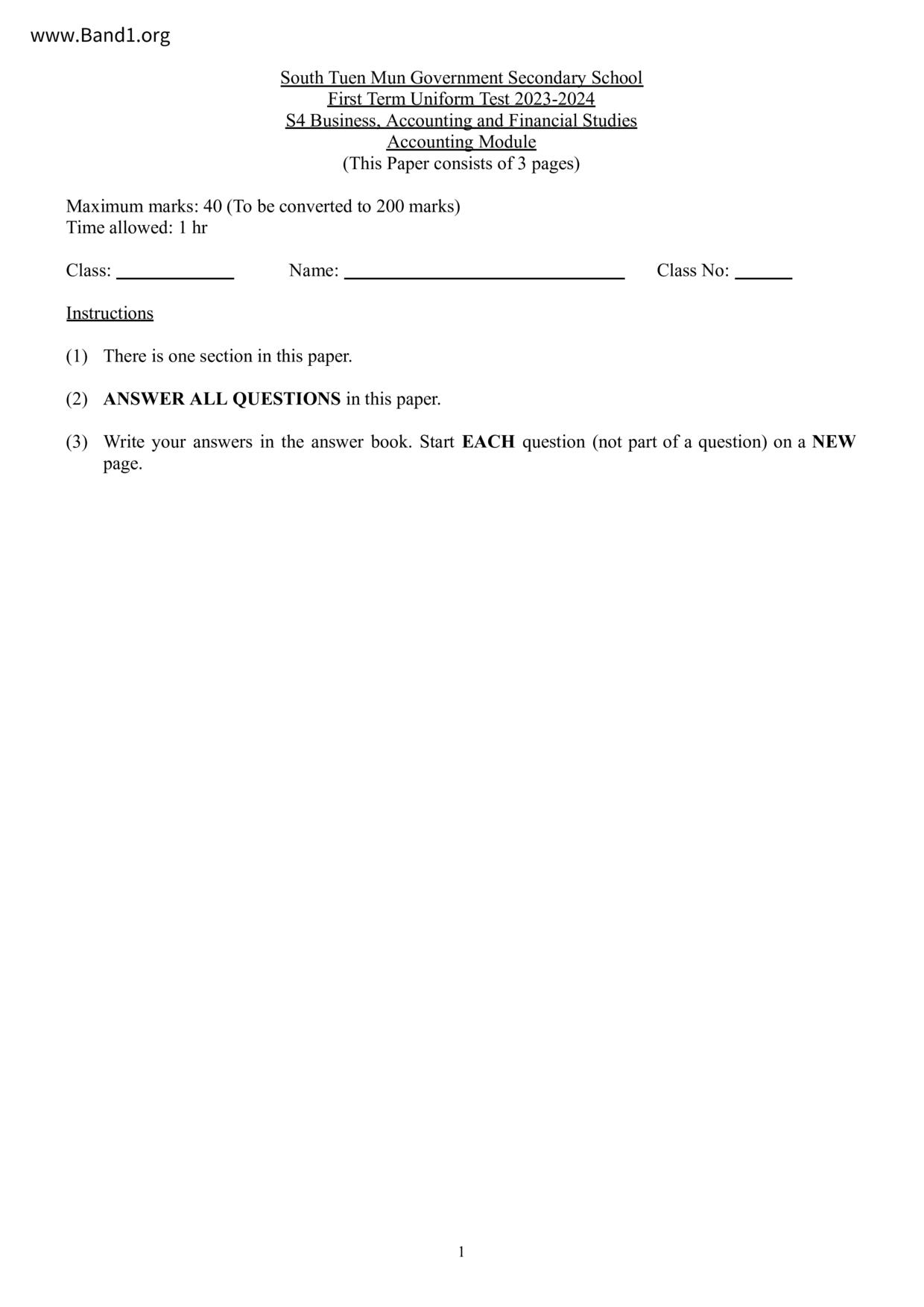 中四 會計 南屯門官立中學