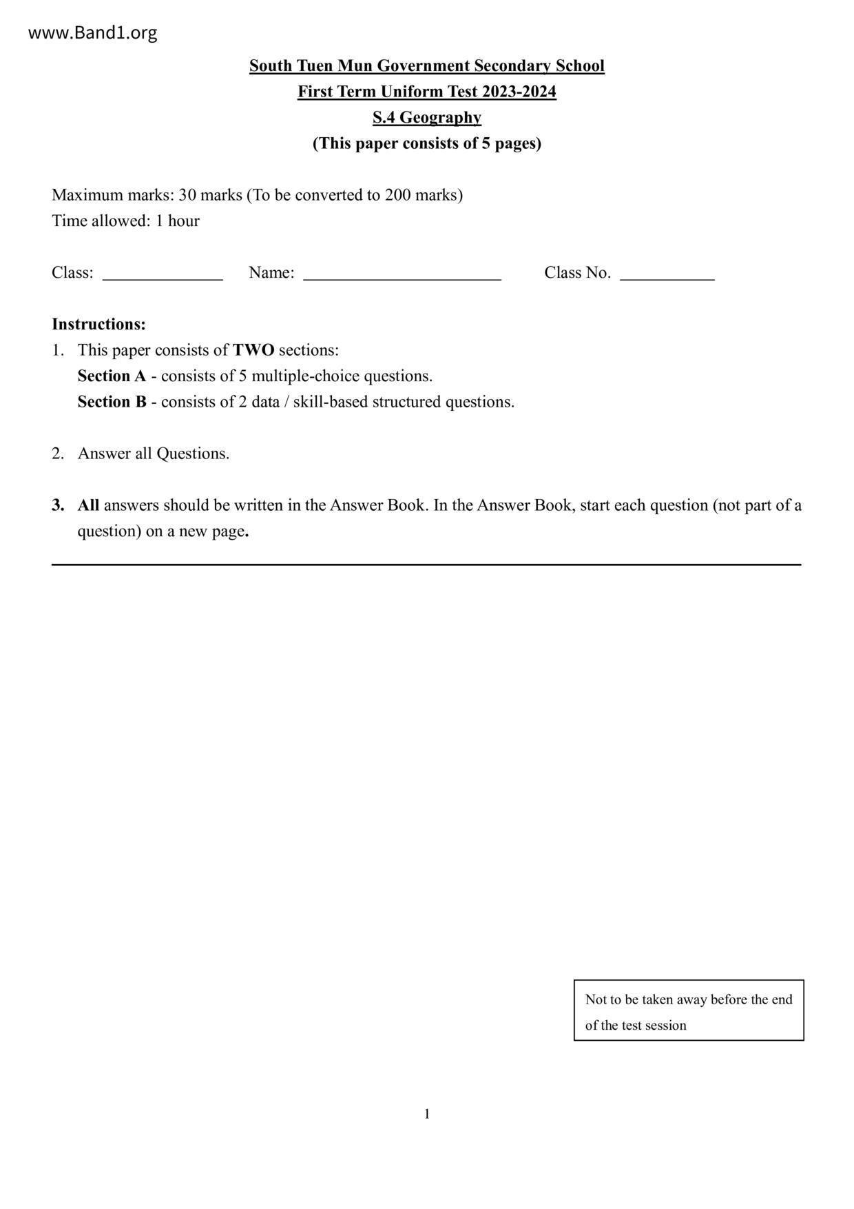 中一 地理 (F1 Geography)
