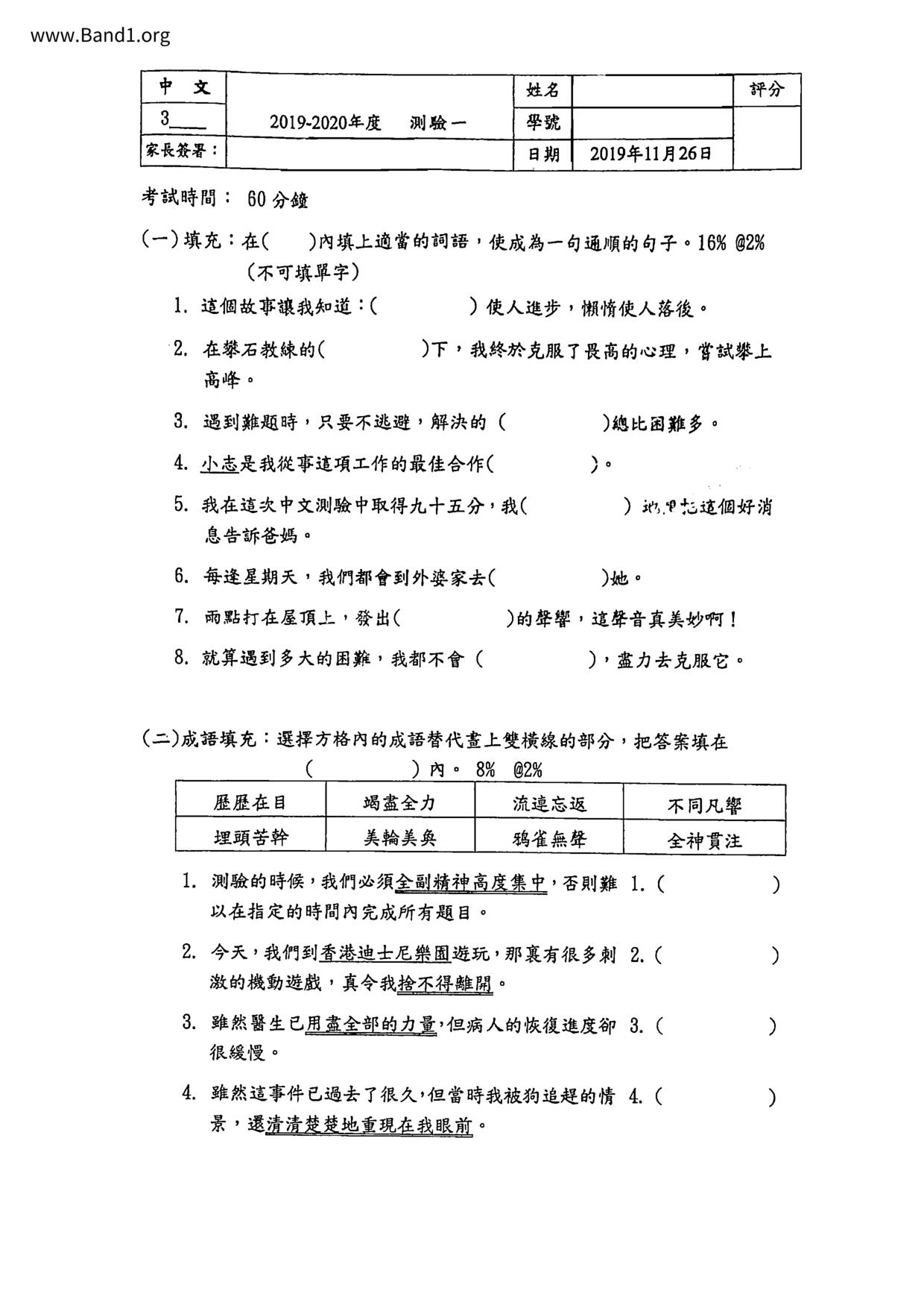 1. 小明為了考試,每天都埋頭苦幹,不斷地練習,最後考了個好成績。